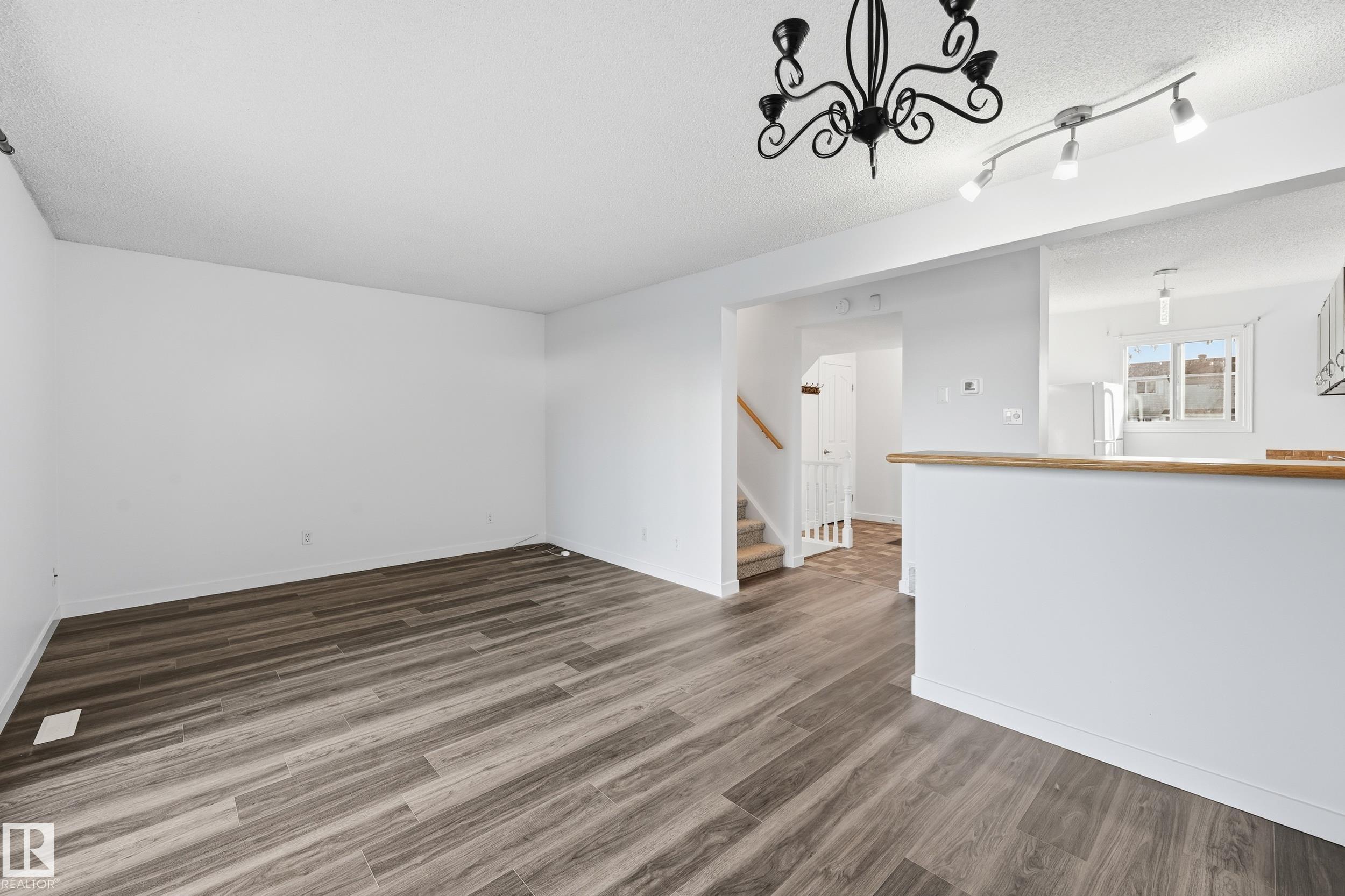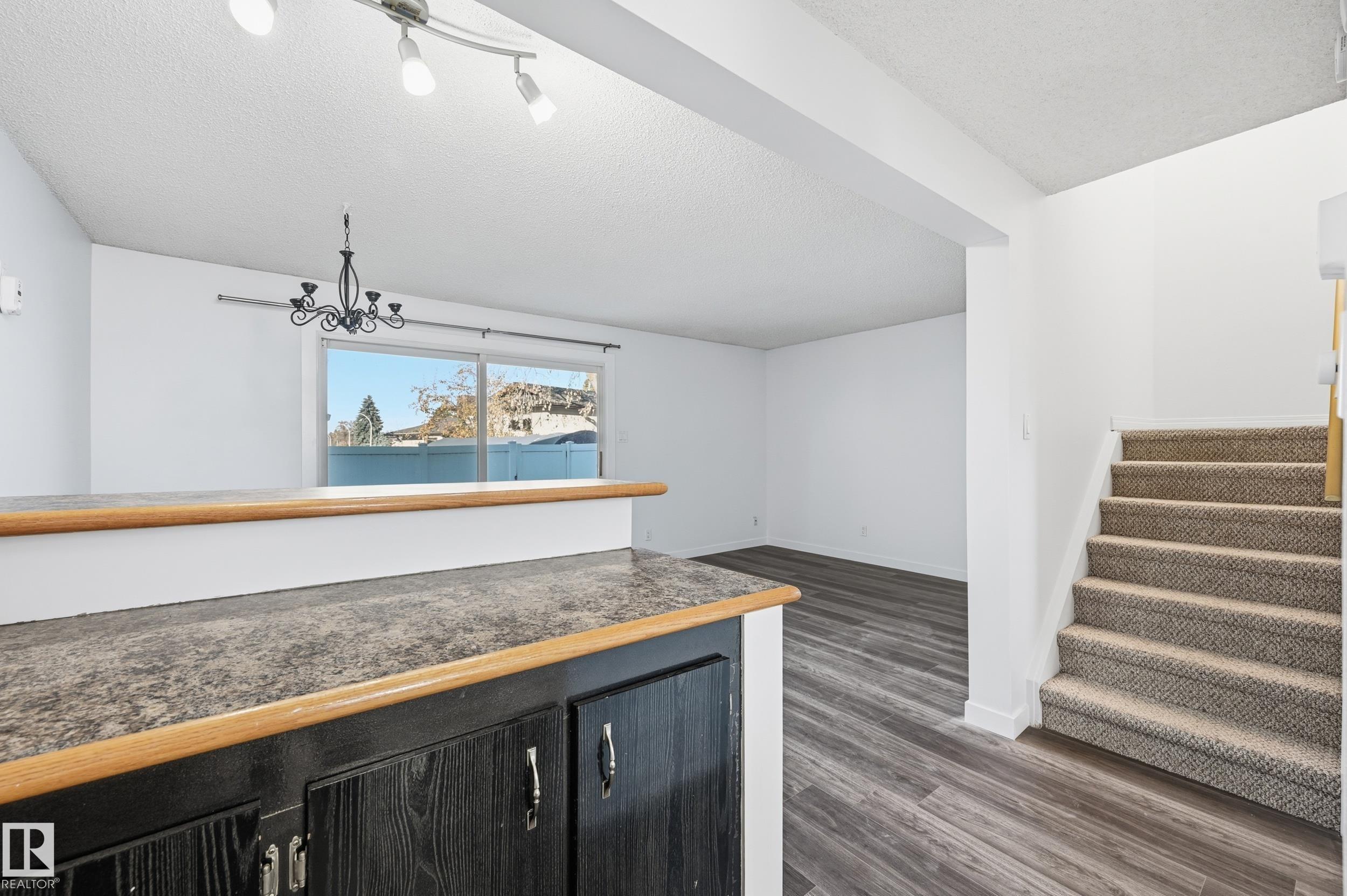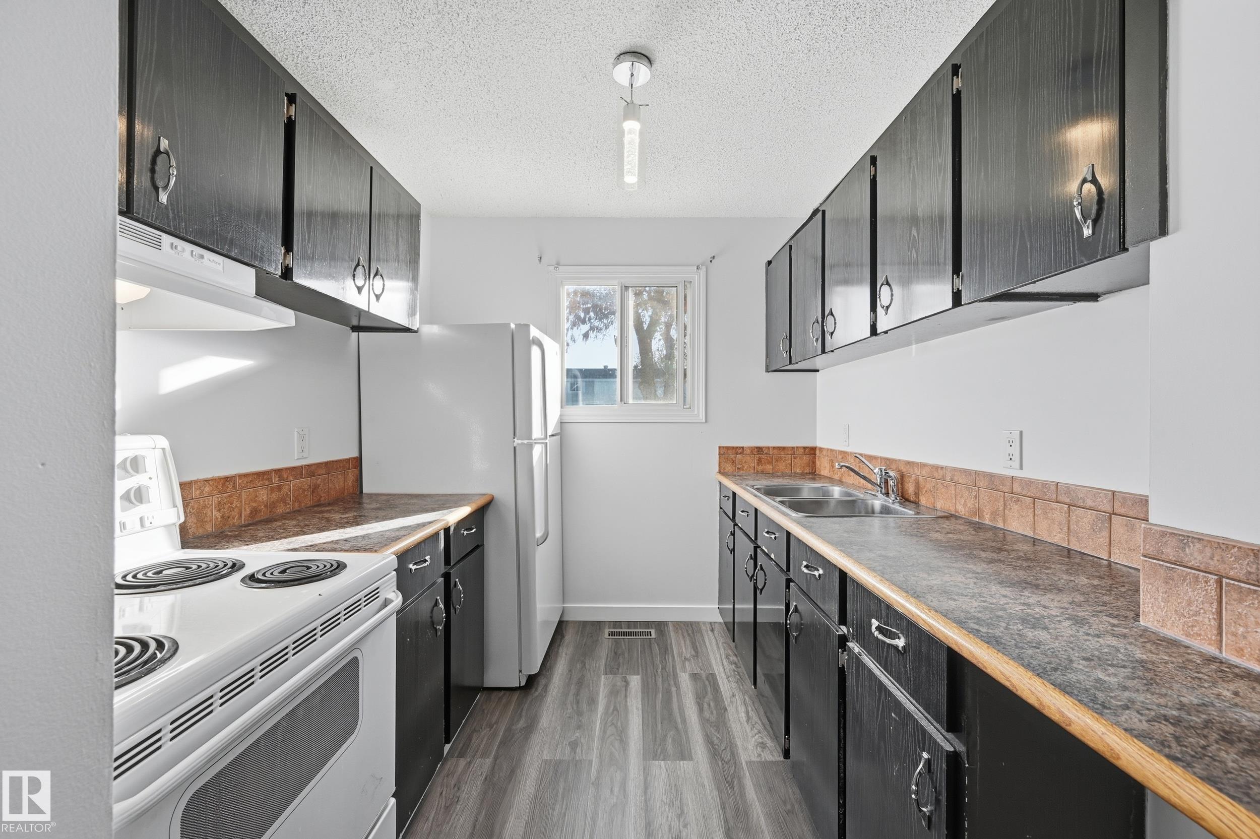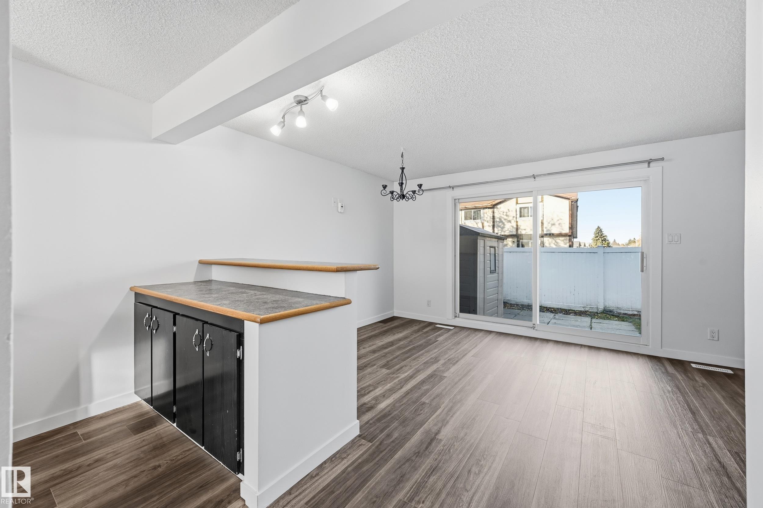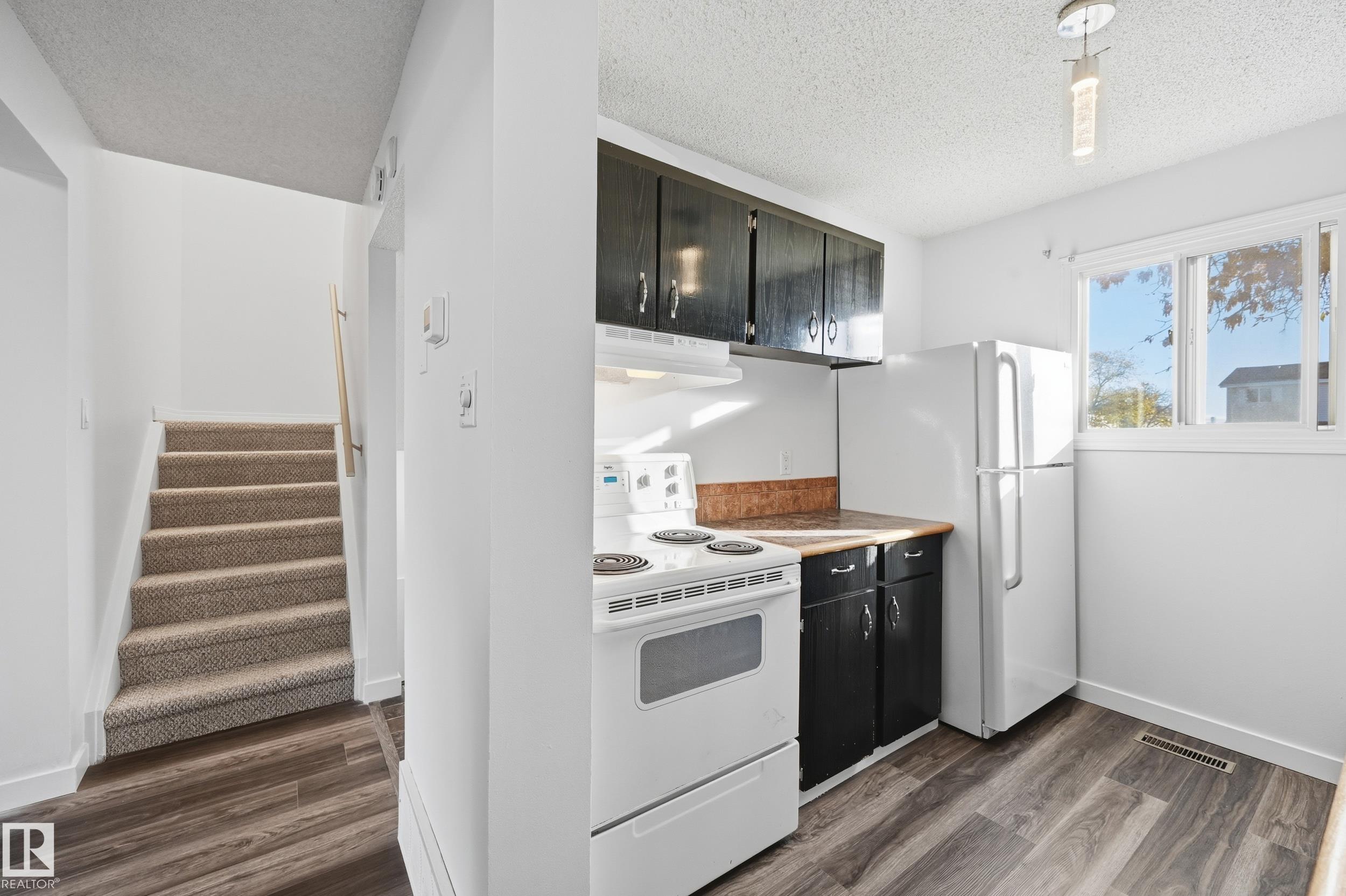 Gorgeous Townhome with Elegant Living Spaces. This beautifully maintained townhome offers 990 sqft of elegant living with 3 beds and 1.5 baths. Featuring stunning curb appeal with a modern vinyl exterior, this home welcomes you with an inviting front entry leading into a spacious and bright living area. The chef?s kitchen impresses from every angle, showcasing tasteful finishes, painted cabinetry, tile flooring, and a functional island bar. Upstairs, you?ll find three generous bedrooms and a full bathroom designed for comfort and practicality. The fully finished basement expands your living space perfect for entertaining or relaxing and includes a large family room and a dedicated laundry area. Step outside to your fully fenced private backyard, with a cement pad ideal for a patio set or BBQ area, plus a storage shed for added convenience. Parking is a breeze with your stall right in front of the unit, along with plenty of visitor parking nearby. Located in a prime area close to schools and parks.