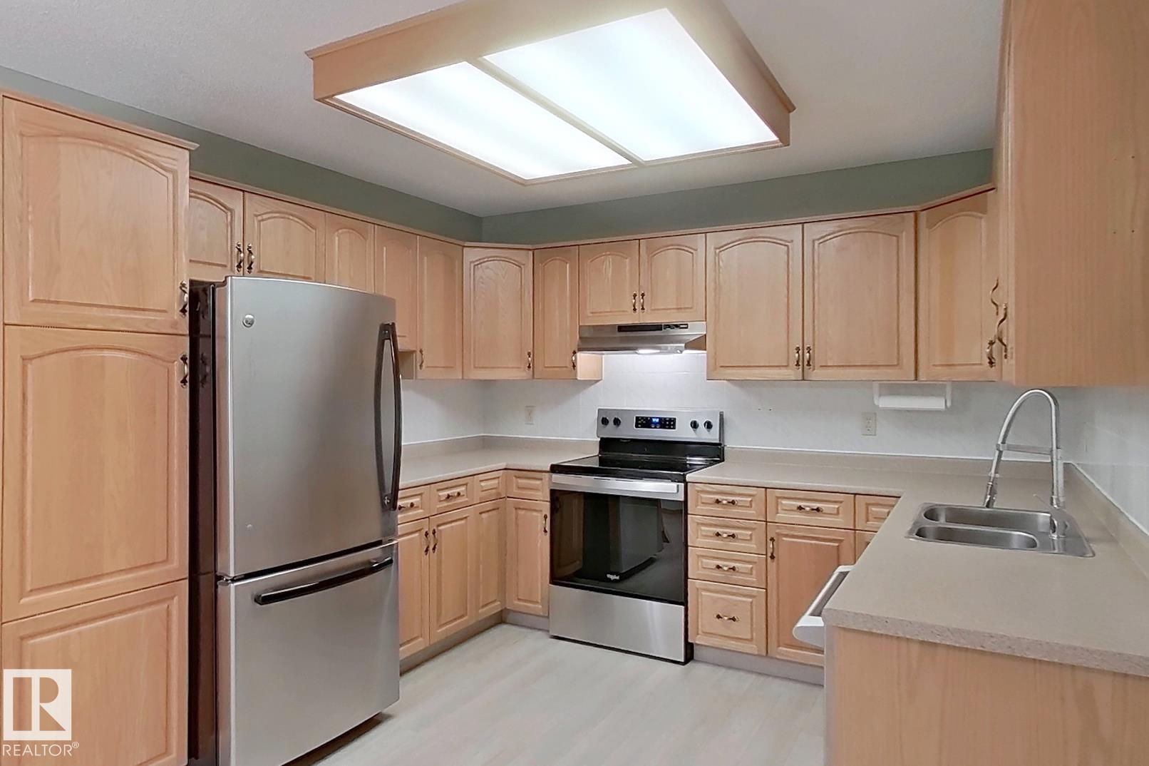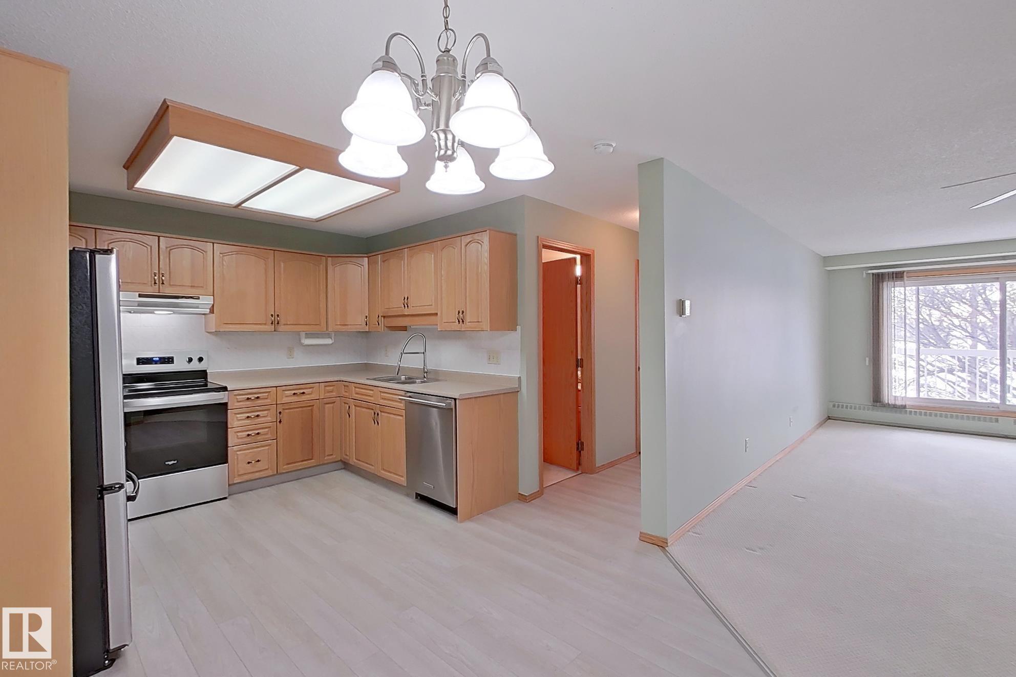 Welcome to Heritage Mansion East - adult 55+ building. Fantastic & bright, third floor condo with south exposure & a view of Kaskitayo Park. This unit offers very functional floor plan with bedrooms on opposite sides, open design & generous room sizes. You will love cooking in fantastic kitchen, that has plenty of cabinet space , stainless steel appliances (including brand new stove) & updated flooring. Living room is connected to a balcony, that overlooks tree crown and a park. Secondary bedroom offers built-in Murphy bed. Unit has central A/C. Primary suite c/w 3 pc ensuite bath & a huge ( 11.3' by 4.98' )walk-in closet. In-suite laundry is spacious & has extra storage space and comes with a freezer. Park your car in underground, heated stall & store your stuff in secure storage cage. Building offers Library, Exercise Room, Craft Room, Social Room, and a Workshop. Great location within walking distance to all Medical, Groceries, & ETS right out front w/a 10 min walk to Century Park LRT. It is your move!