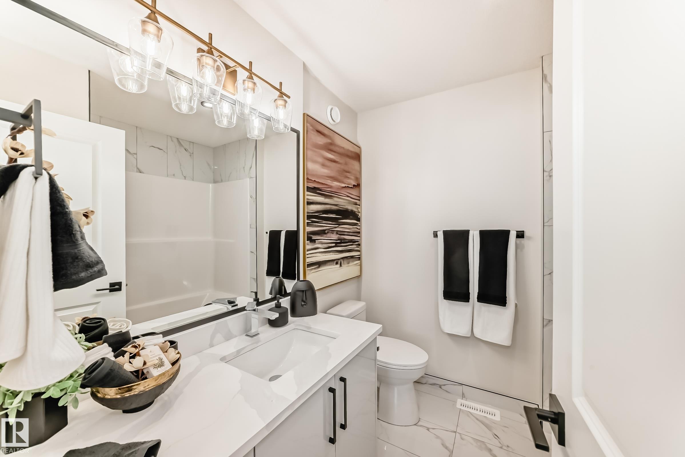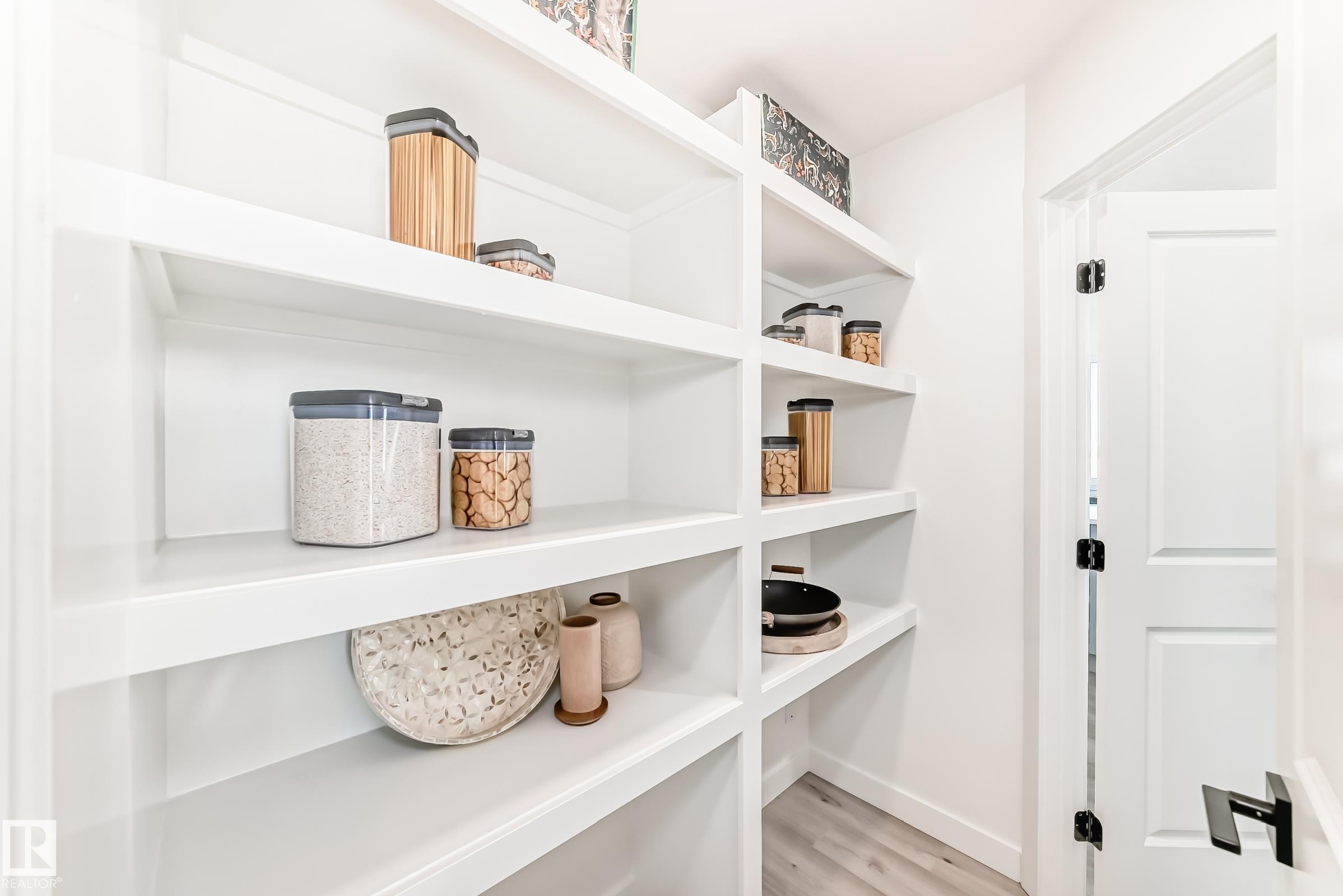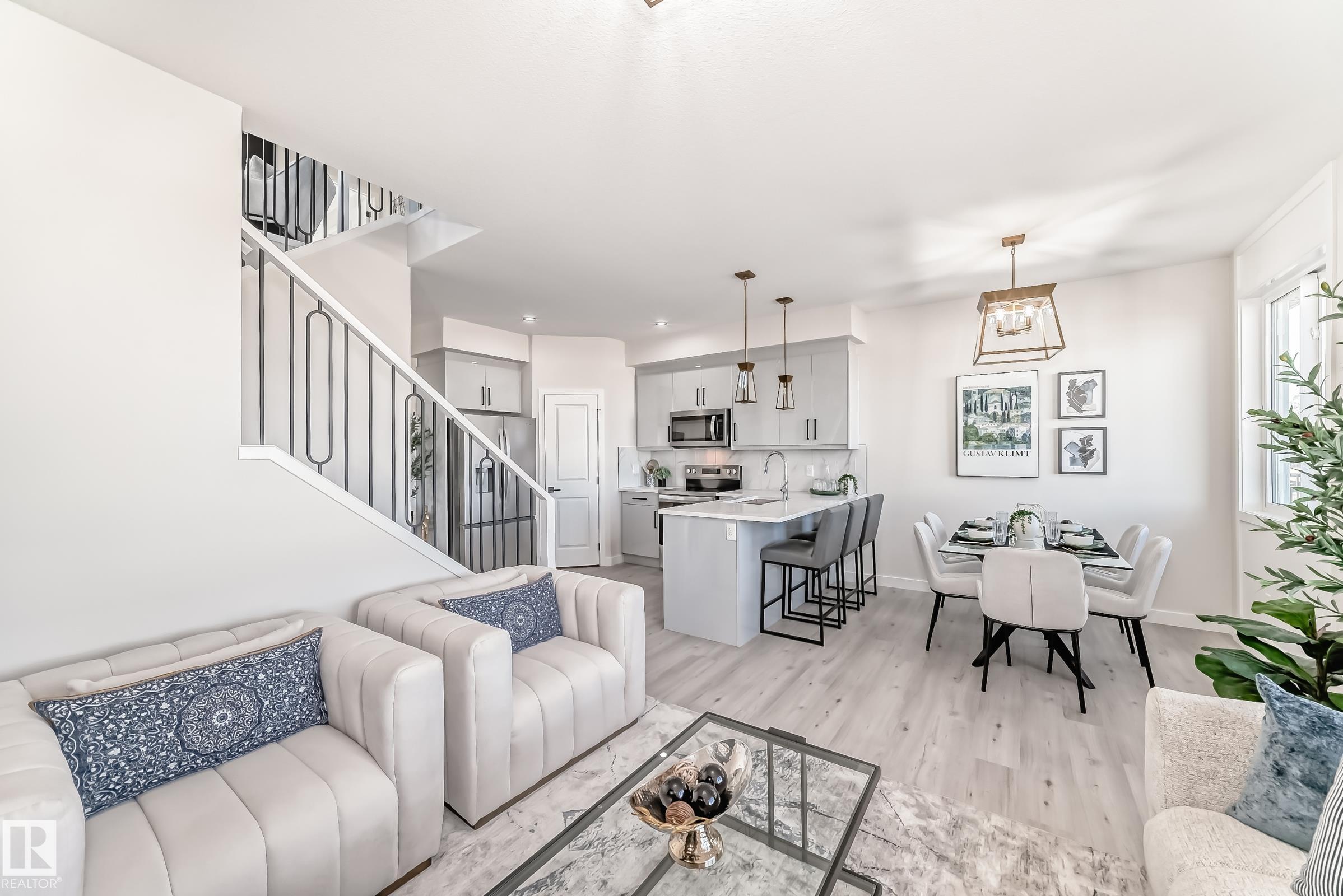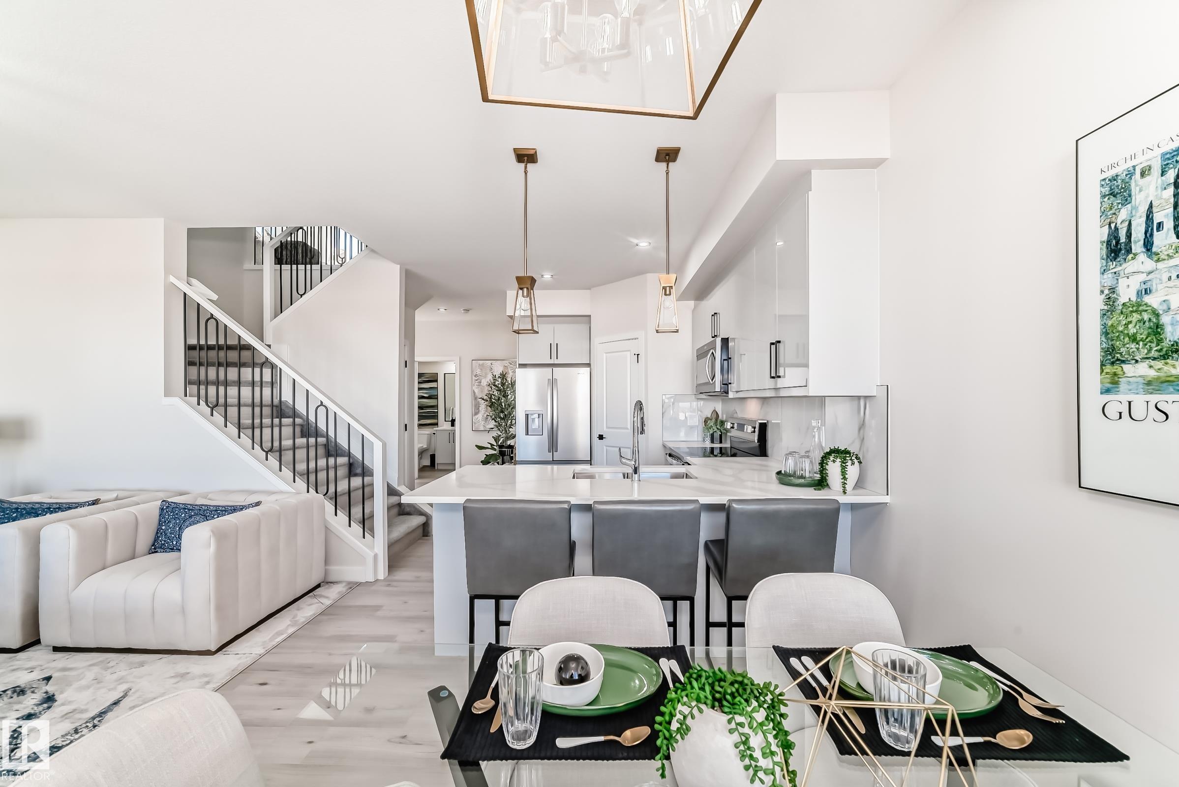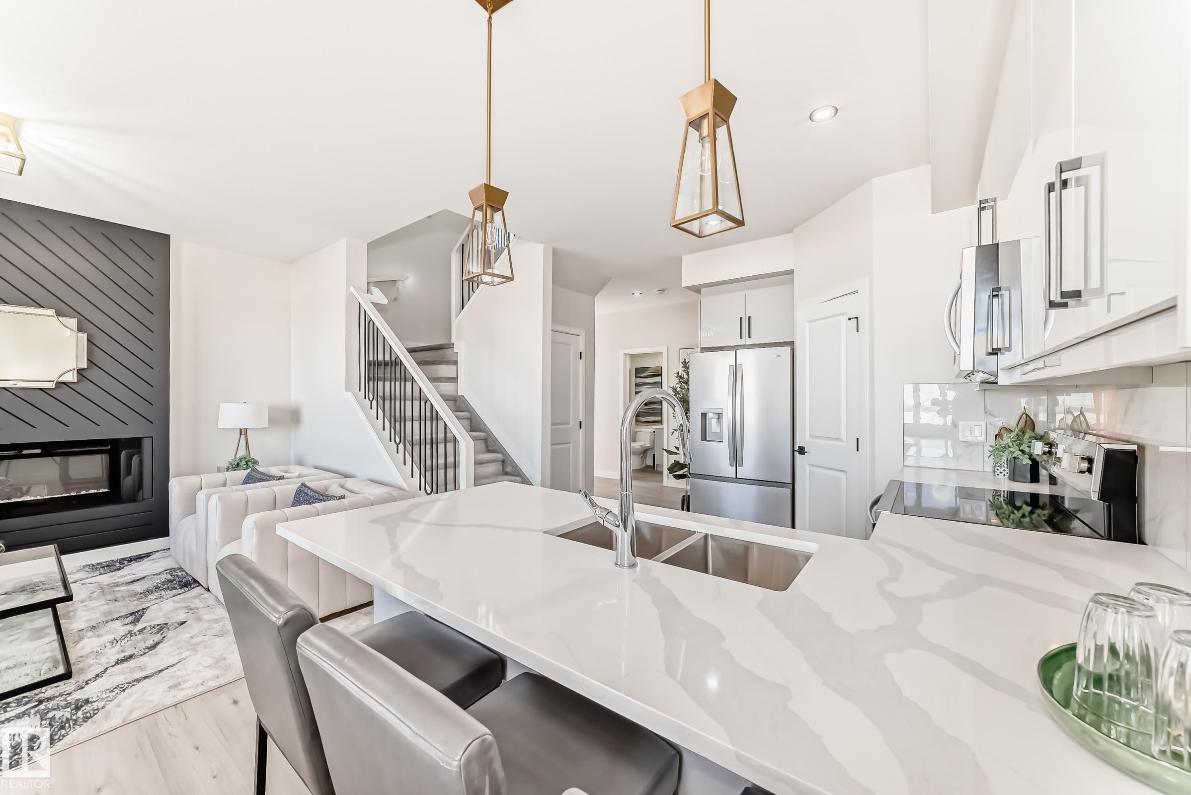Beautiful Duplex in Prescott, Spruce Grove! Welcome to Prescott, a serene and family-friendly community. This front double attached garage duplex backs onto greenspace and includes a finished deck?perfect for relaxing outdoors. The open-concept main floor features a walk-thru pantry and a functional layout ideal for everyday living. Upstairs, the primary suite at the front offers a 5-piece ensuite, while two additional bedrooms, a laundry closet, and a cozy loft complete the level. Includes a separate side entry for future basement development. This home has it all?comfort, space, and potential!