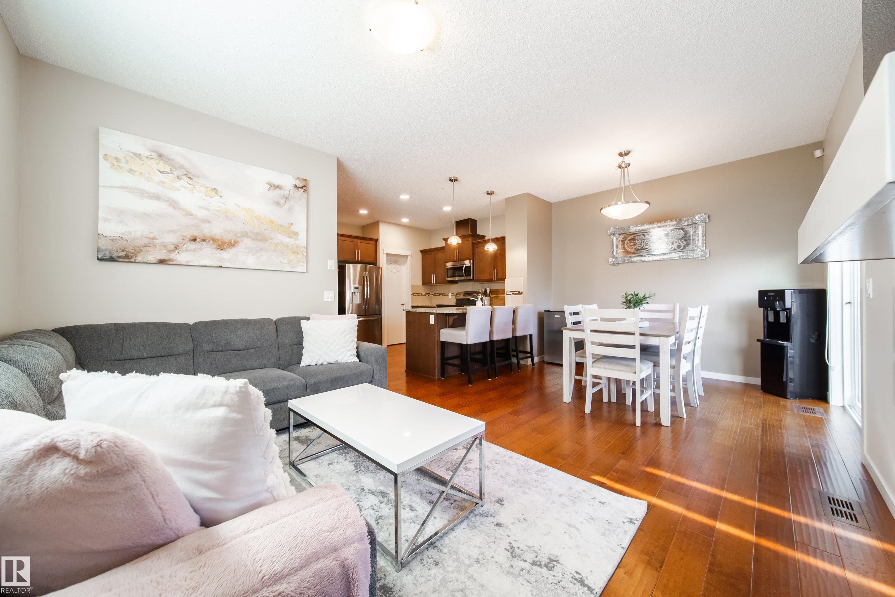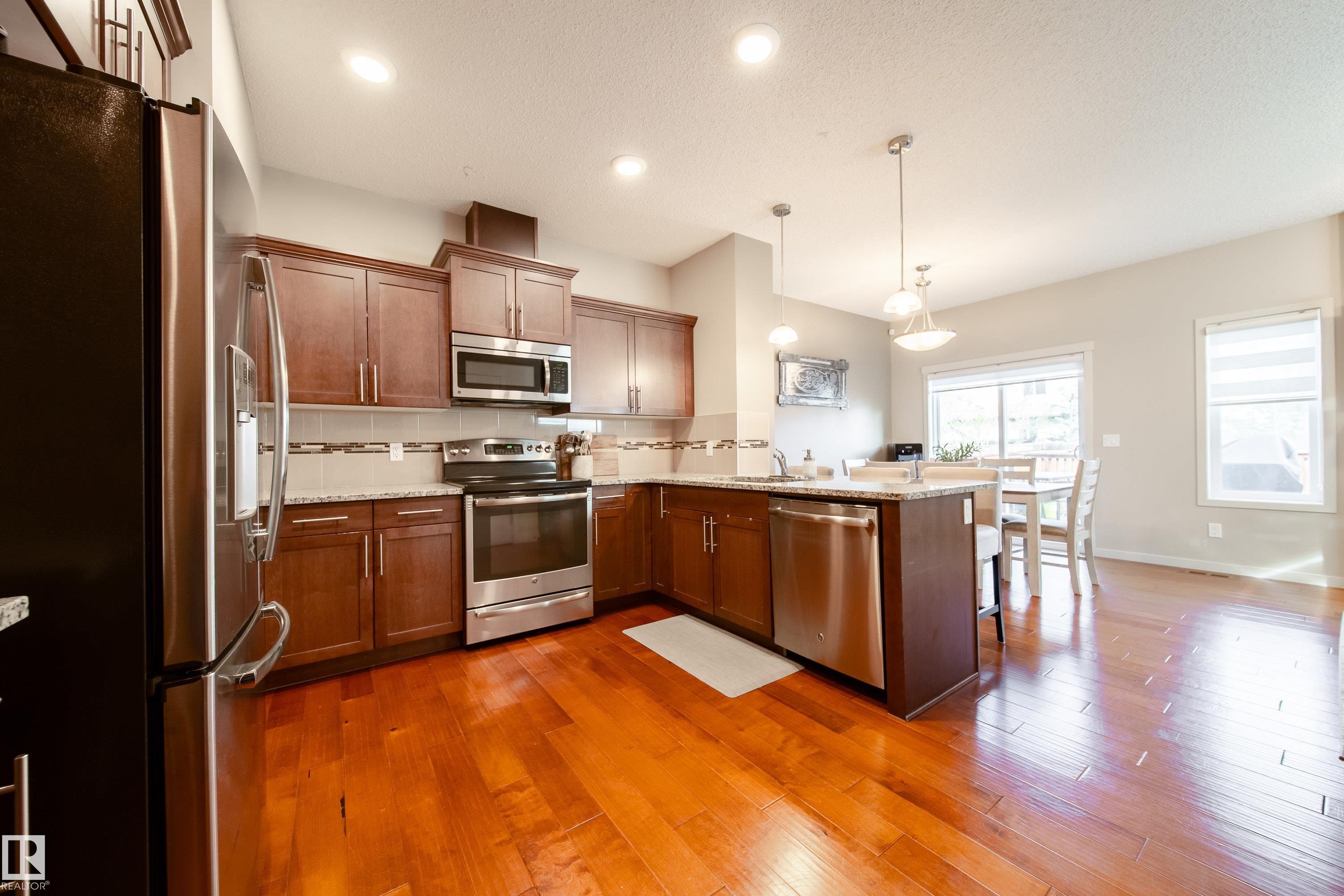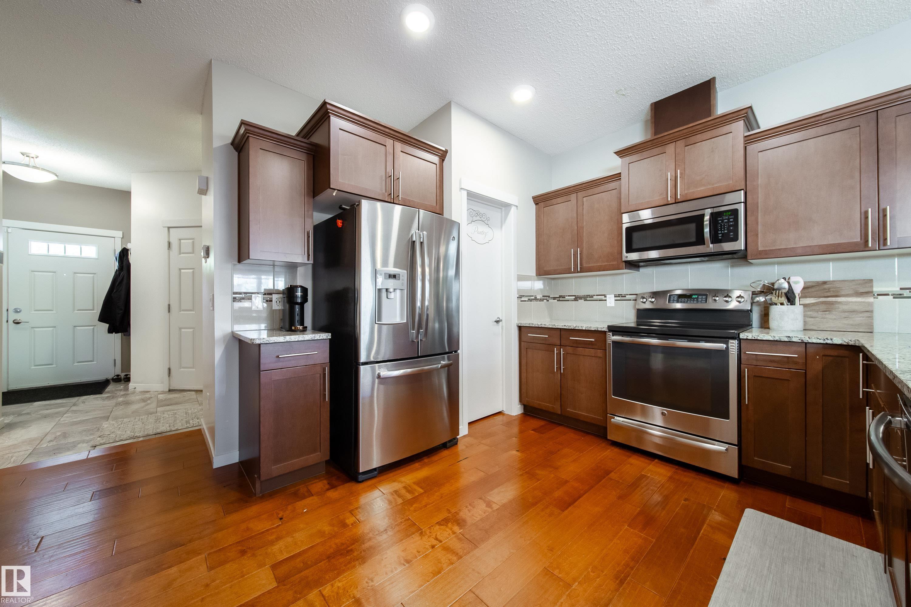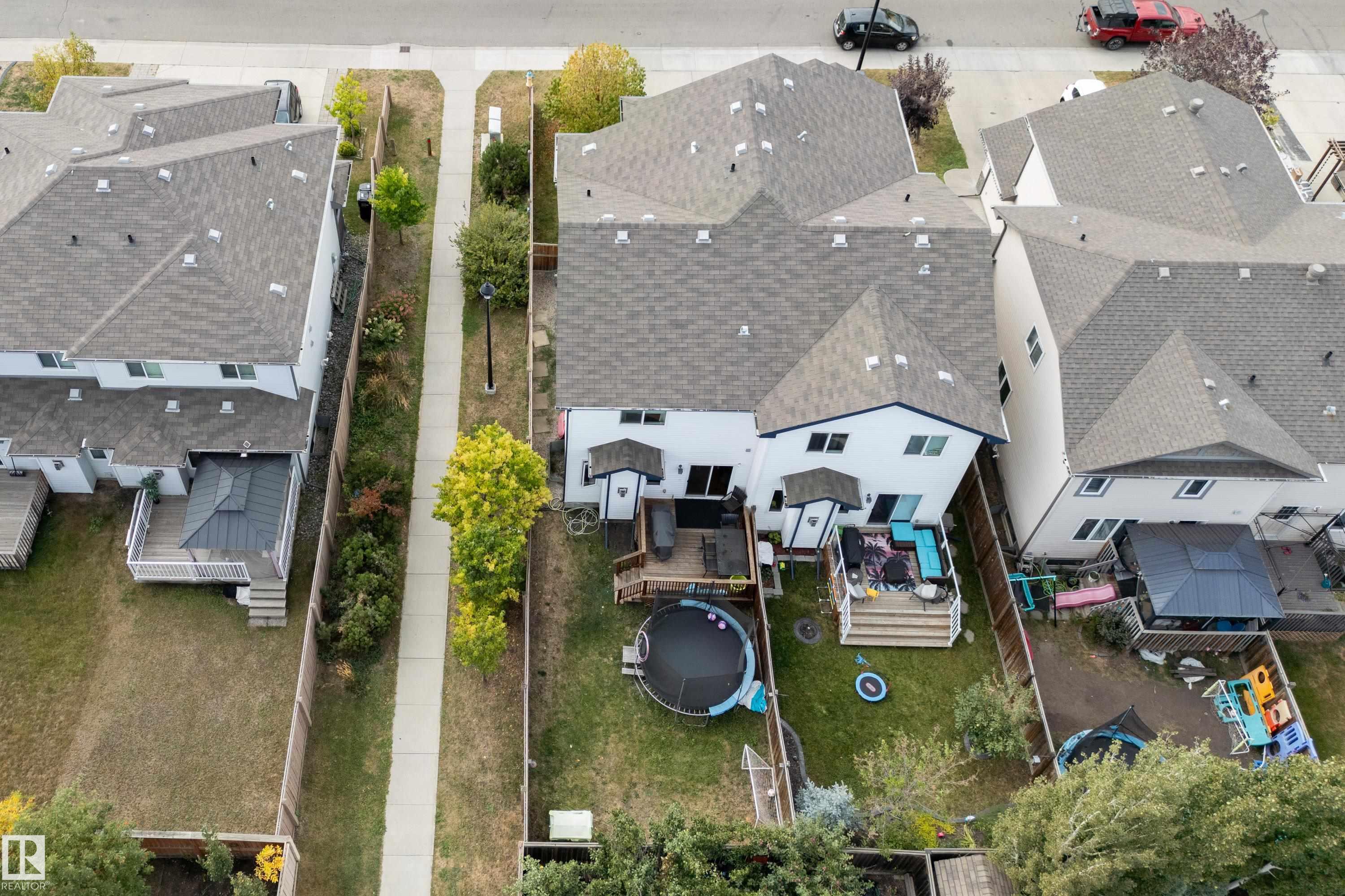Welcome to this beautiful half duplex, the perfect choice for first-time buyers or anyone looking for a solid investment. Offering 4 bedrooms and a fully finished basement, this home has room for everyone. The main floor features an open-concept layout with a U-shaped kitchen, complete with granite countertops, stainless steel appliances, and a spacious pantry, as well as space for your dining table and a bright living area overlooking the backyard. Upstairs, you?ll find a king-sized primary suite with a 4-piece ensuite and walk-in closet, a built-in office or homework nook, two additional large bedrooms, a full bathroom, and convenient laundry. The finished basement features a spacious recreation room, a fourth bedroom, and an additional full bathroom. Outside, enjoy a large deck and a huge backyard with direct access to walking paths that connect to Edmonton?s nature system and ponds. All this is just minutes from the Henday, 127 Street, and every amenity. The perfect investment or your next home!