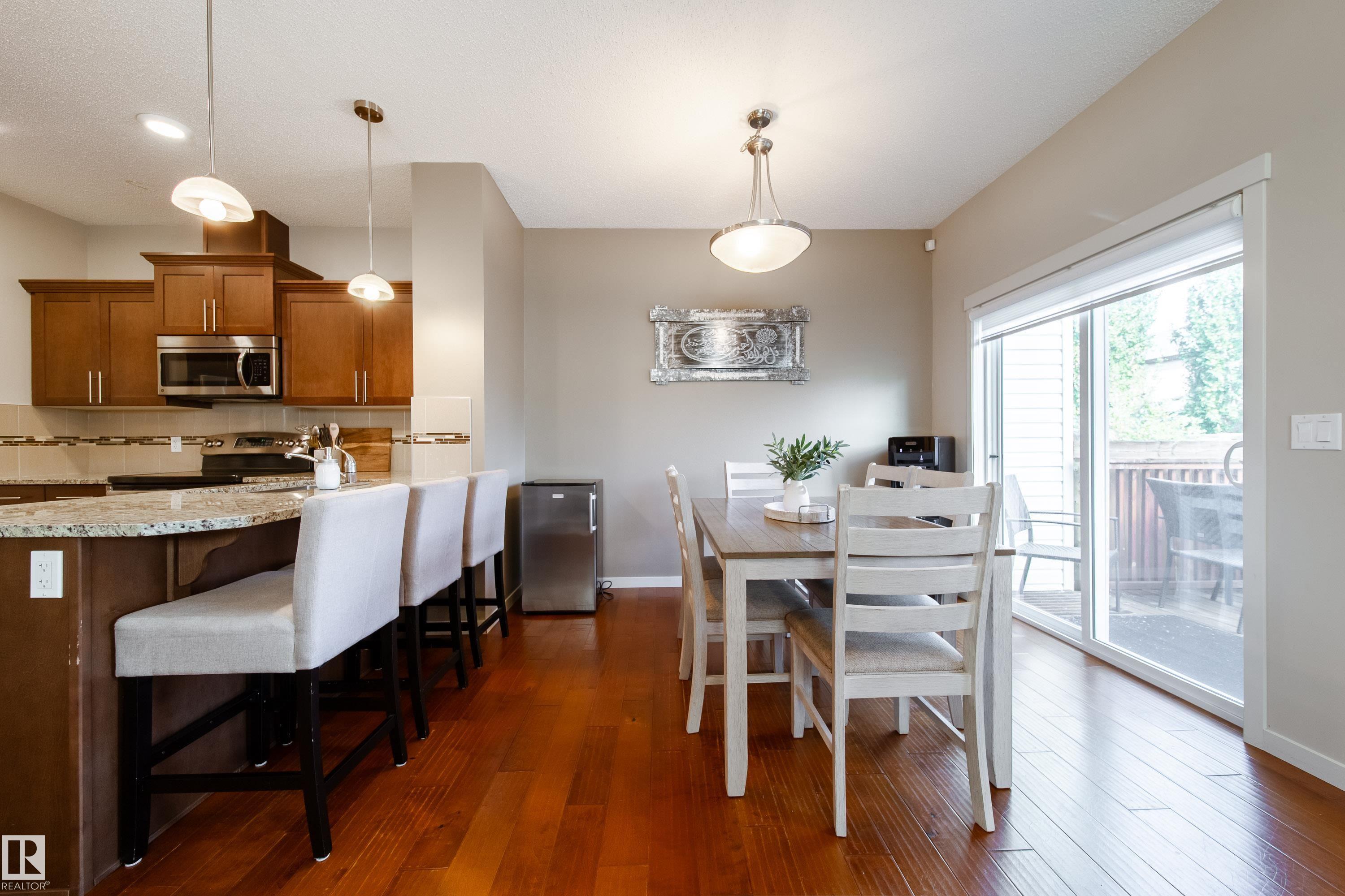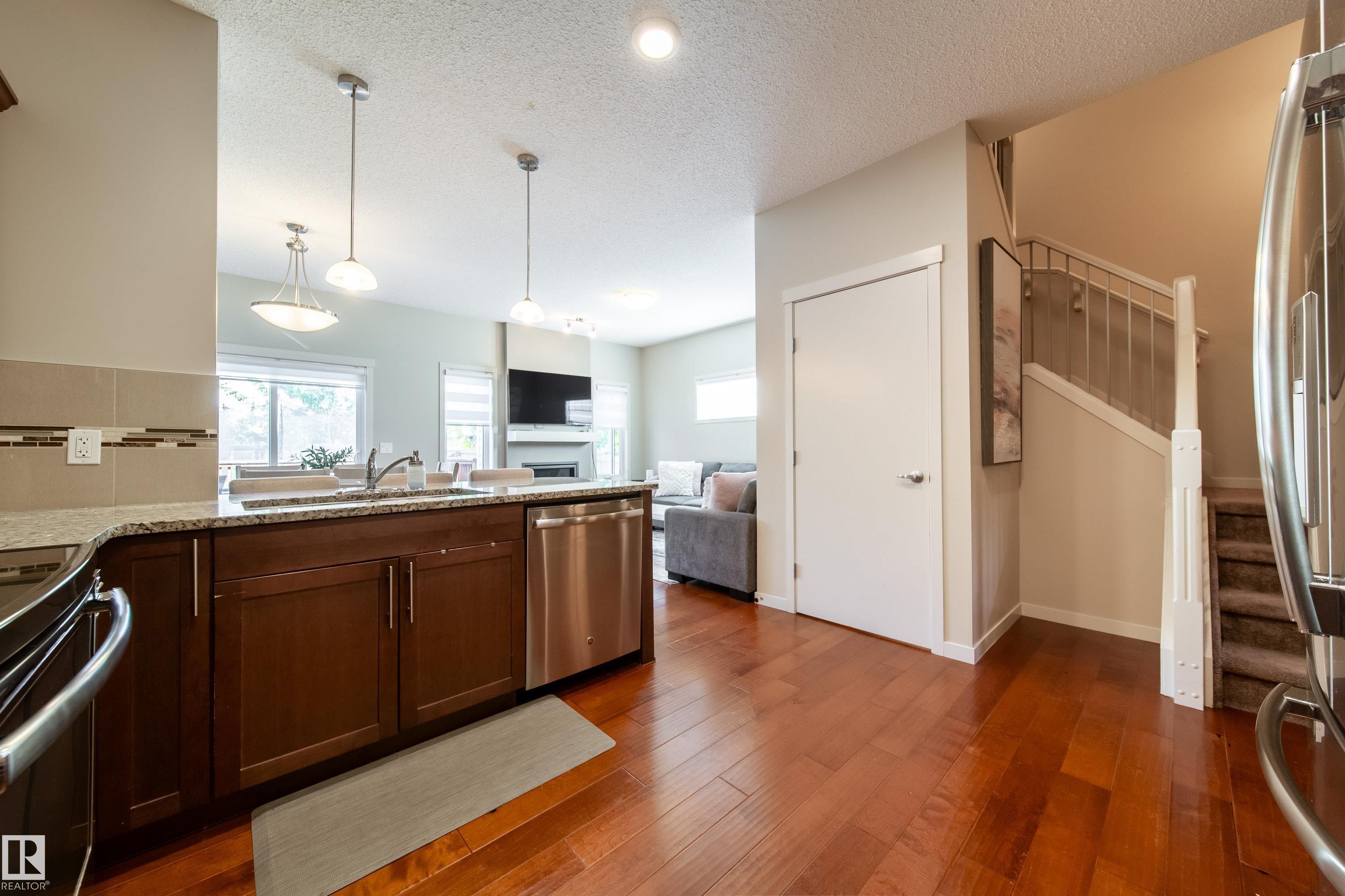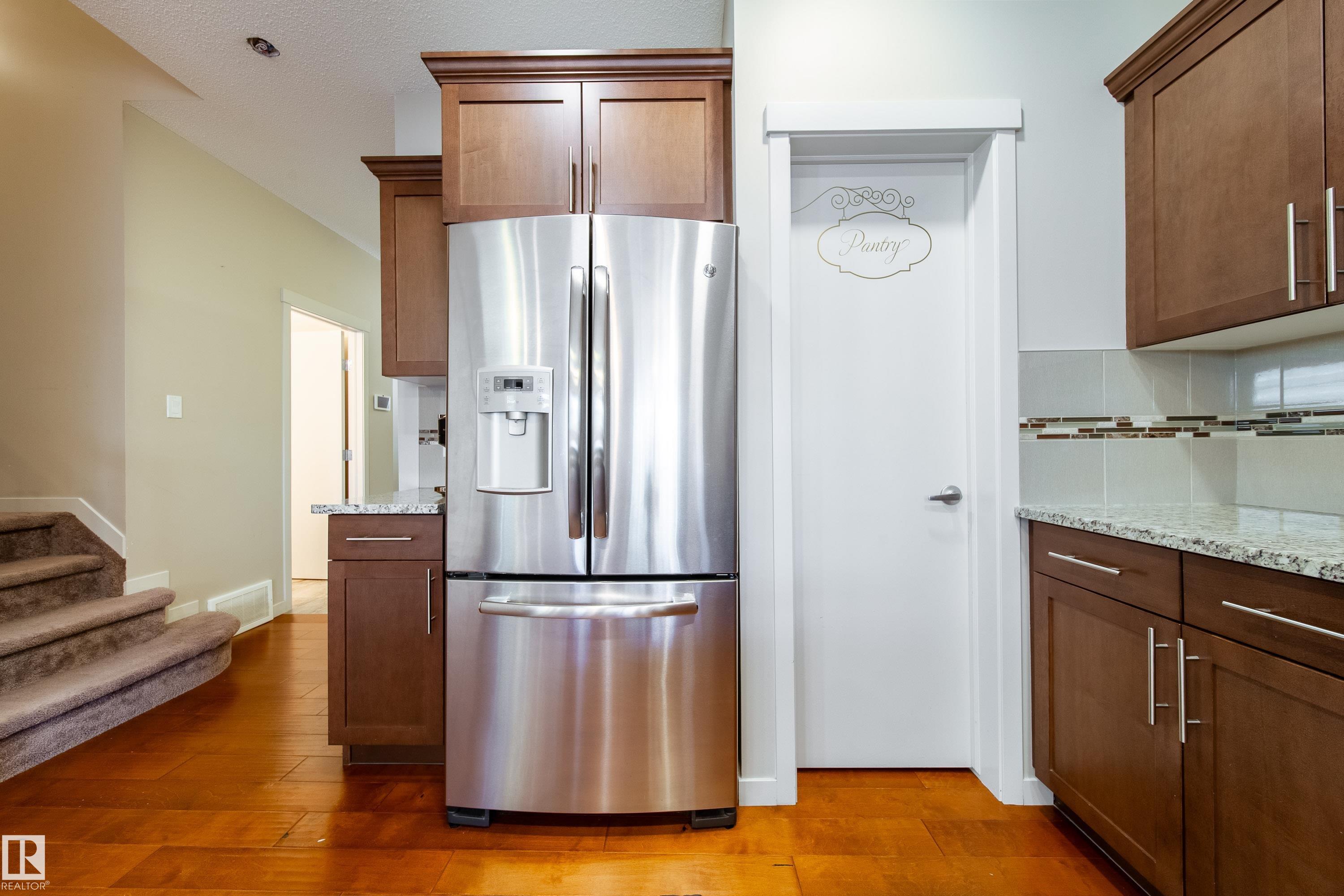 Welcome to this beautiful half duplex, the perfect choice for first-time buyers or anyone looking for a solid investment. Offering 4 bedrooms and a fully finished basement, this home has room for everyone. The main floor features an open-concept layout with a U-shaped kitchen, complete with granite countertops, stainless steel appliances, and a spacious pantry, as well as space for your dining table and a bright living area overlooking the backyard. Upstairs, you?ll find a king-sized primary suite with a 4-piece ensuite and walk-in closet, a built-in office or homework nook, two additional large bedrooms, a full bathroom, and convenient laundry. The finished basement features a spacious recreation room, a fourth bedroom, and an additional full bathroom. Outside, enjoy a large deck and a huge backyard with direct access to walking paths that connect to Edmonton?s nature system and ponds. All this is just minutes from the Henday, 127 Street, and every amenity. The perfect investment or your next home!