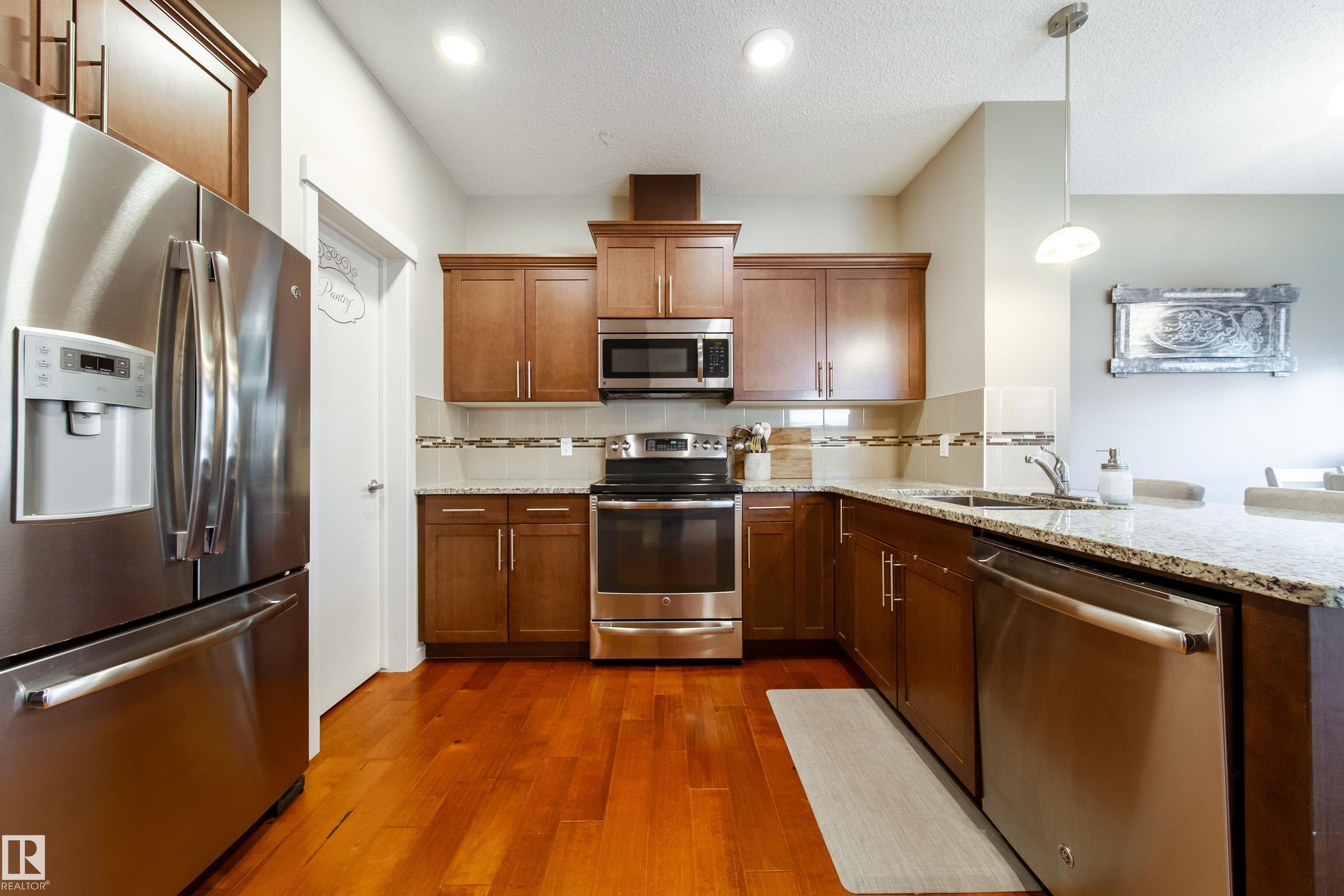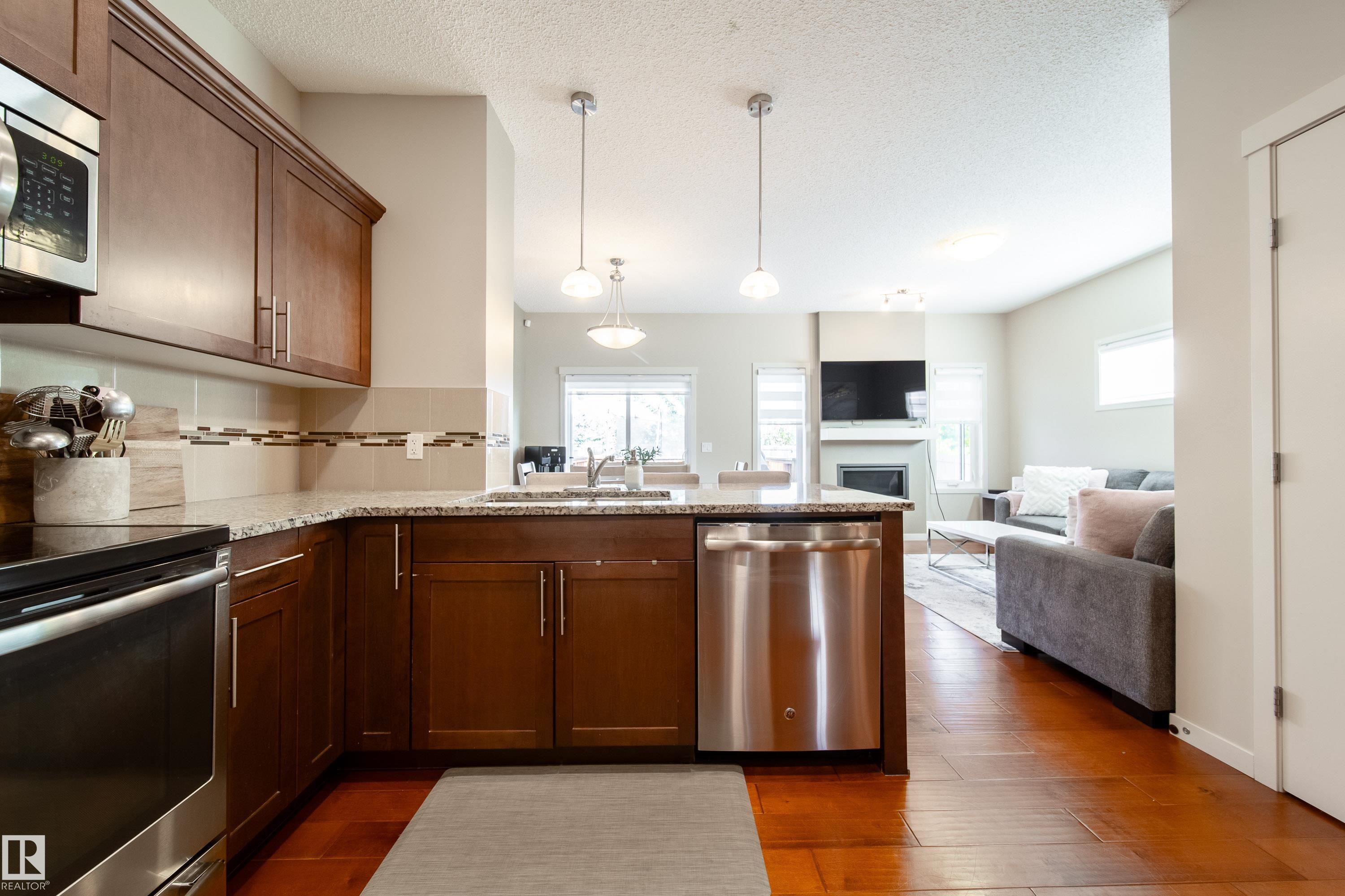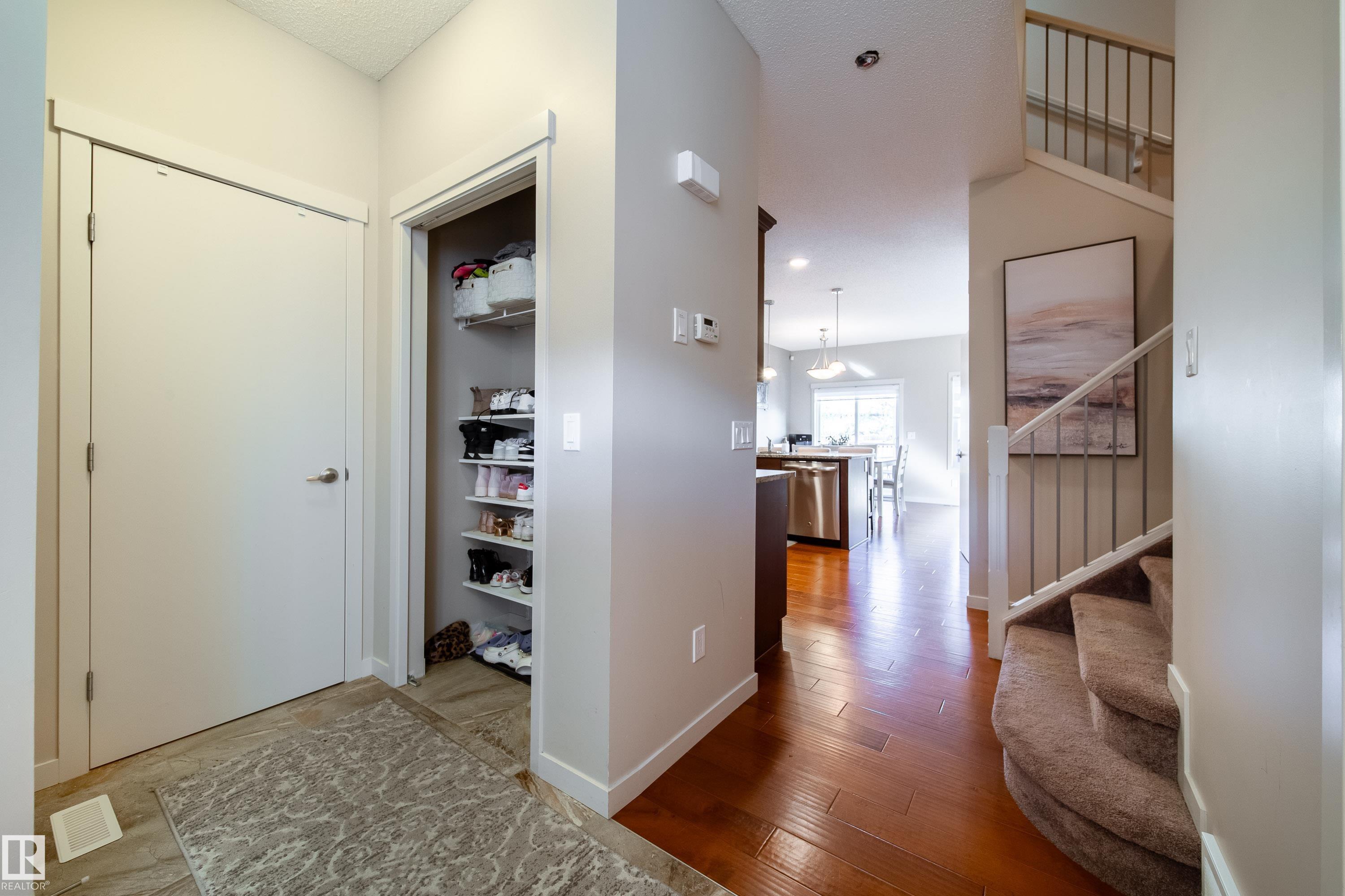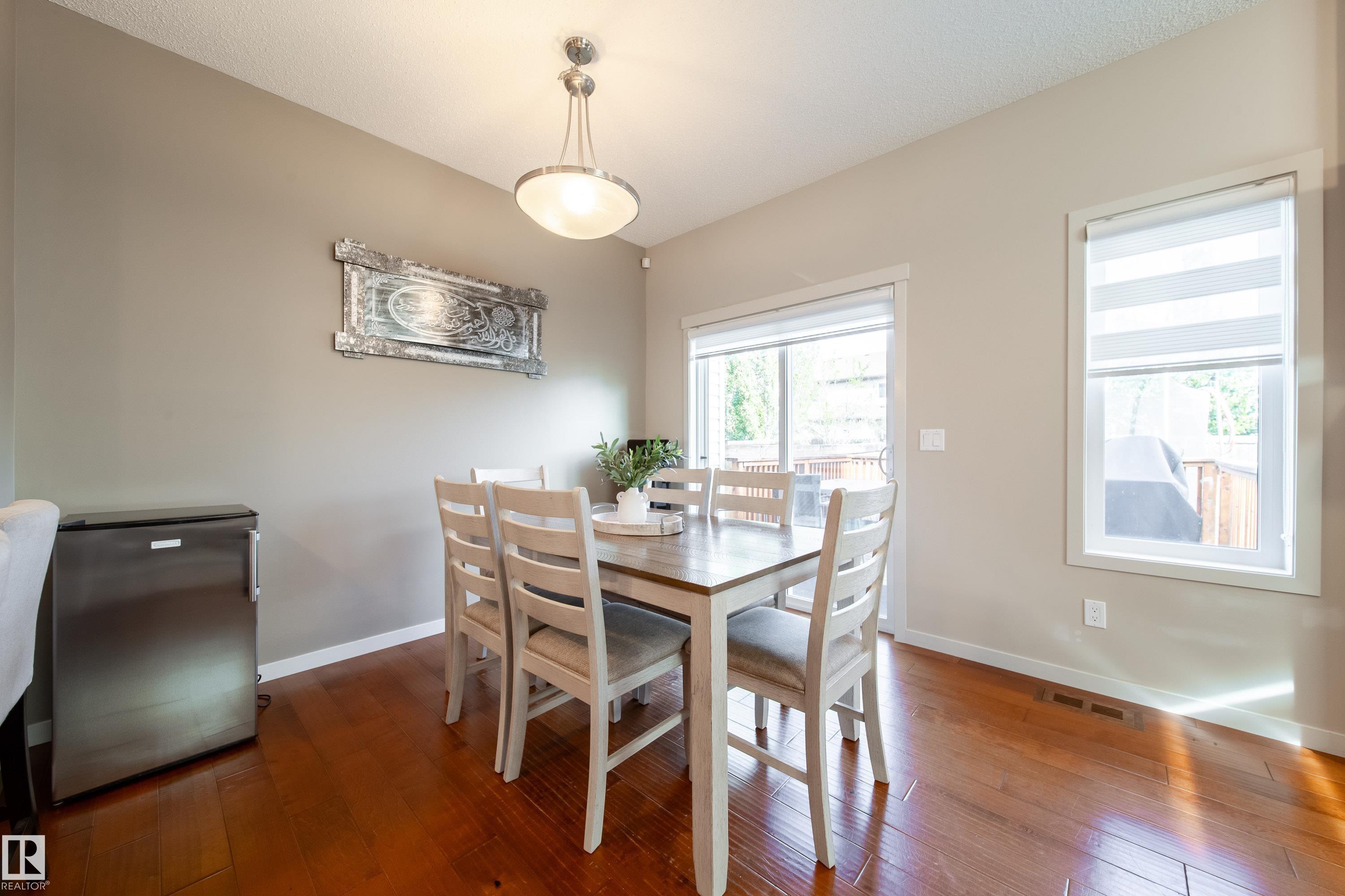 Welcome to this beautiful half duplex, the perfect choice for first-time buyers or anyone looking for a solid investment. Offering 4 bedrooms and a fully finished basement, this home has room for everyone. The main floor features an open-concept layout with a U-shaped kitchen, complete with granite countertops, stainless steel appliances, and a spacious pantry, as well as space for your dining table and a bright living area overlooking the backyard. Upstairs, you?ll find a king-sized primary suite with a 4-piece ensuite and walk-in closet, a built-in office or homework nook, two additional large bedrooms, a full bathroom, and convenient laundry. The finished basement features a spacious recreation room, a fourth bedroom, and an additional full bathroom. Outside, enjoy a large deck and a huge backyard with direct access to walking paths that connect to Edmonton?s nature system and ponds. All this is just minutes from the Henday, 127 Street, and every amenity. The perfect investment or your next home!