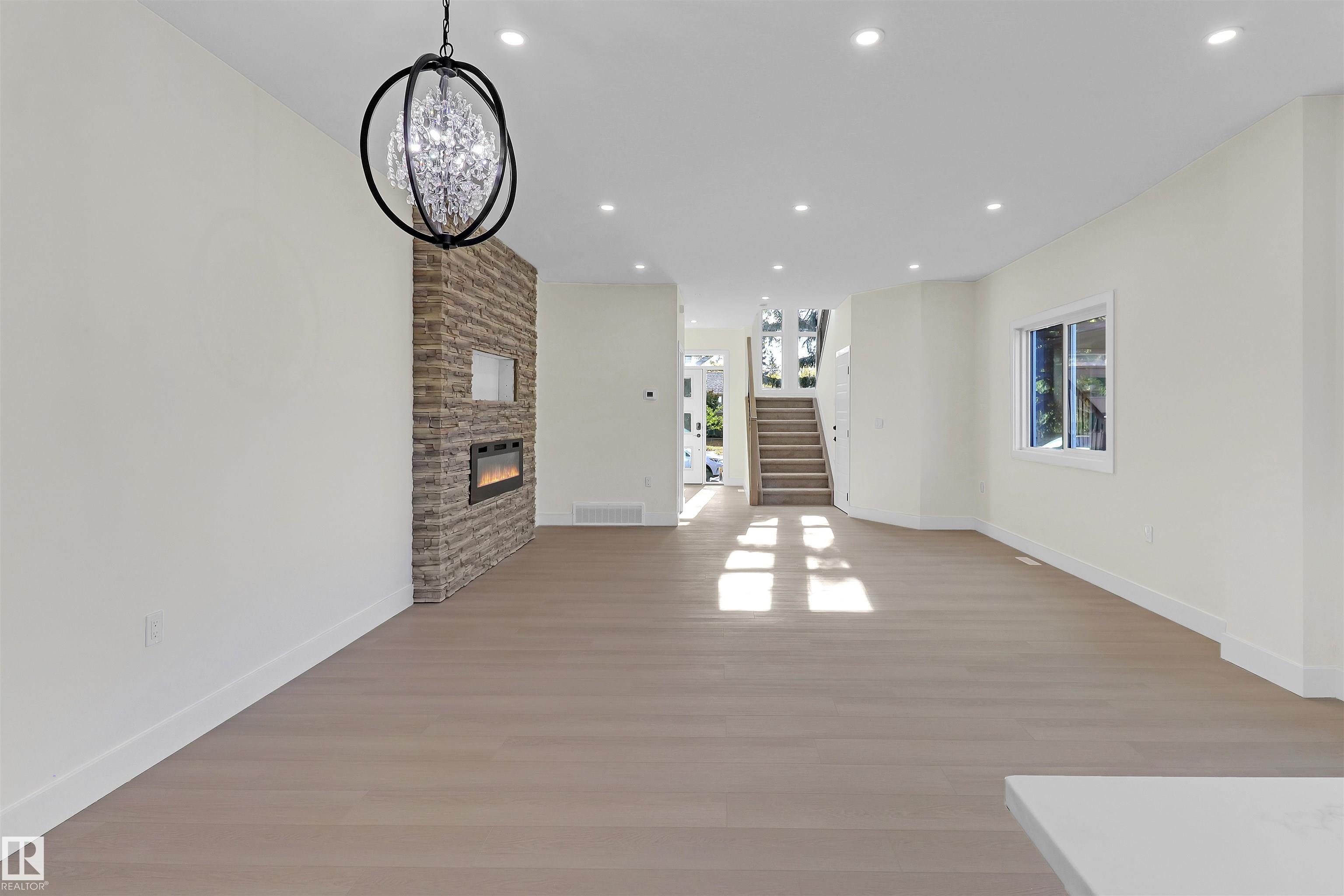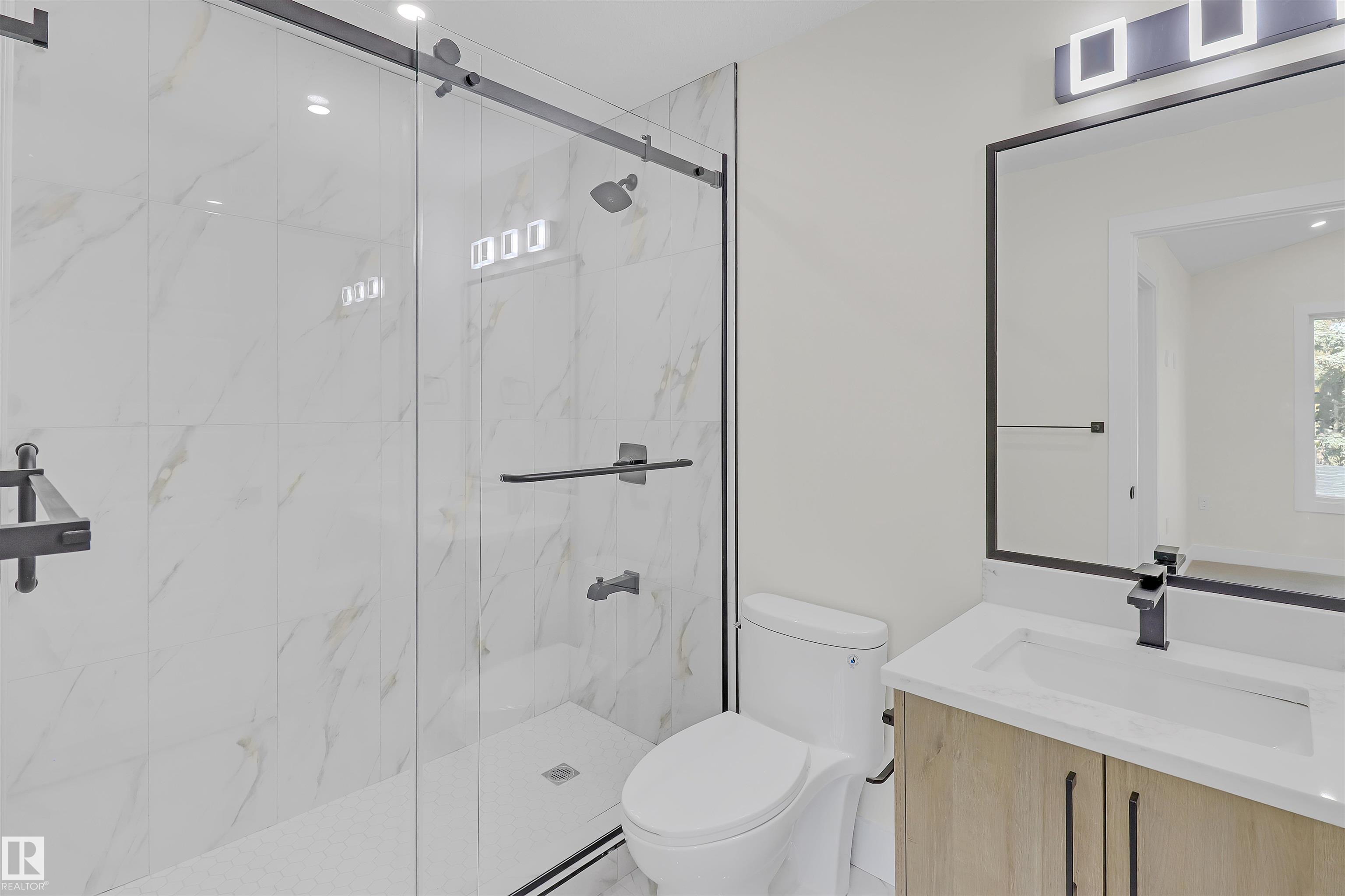 STUNNING 2 STORY BRAND NEW INFILL HOME IN PRESTIGIOUS HOLYROOD COMMUNITY, LOCATED ON A QUIET TREED STREET , MODERN & OPEN DESIGN ,LOADED WITH UPGRADES , S/S APPLIANCES, QUARTZ COUNTERTOPS, LUXURY VINYL FLOORING , 9' CEILING ON MAIN FLOOR , LARGE WINDOWS FOR LOTS OF NATURAL LIGHT, TOTAL OF 5 BEDROOMS + 3.5 BATHS , MAIN FLOOR HAS LARGE FAMILY ROOM WITH F/P SURROUNDED WITH STONE WALL , SPACIOUS KITCHEN WITH KITCHEN ISLAND & PLENTY OF CABINETS , DINING AREA , PANTRY , UPPER FLOOR FEATERES 3 BEDROOMS INCLUDING MASTER BEDROOM WITH ENSUITE , WALK-IN CLOSET & VAULTED CEILING, 2ND ROOM ALSO HAS WALK-IN CLOSET GOOD SIZED 3 RD BEDROOM , LAUNDRY AND 2ND BATH COMPLETES THIS FLOOR , FULLY FINISHED BASEMENT WITH LEGAL SUITE , DECK AND DOUBLE DETACHED CAR GARAGE COMPLETES THIS HOME . CLOSE TO SCHOOLS , SHOPPING , GOLFING AND MANY MORE AMENITIES.
