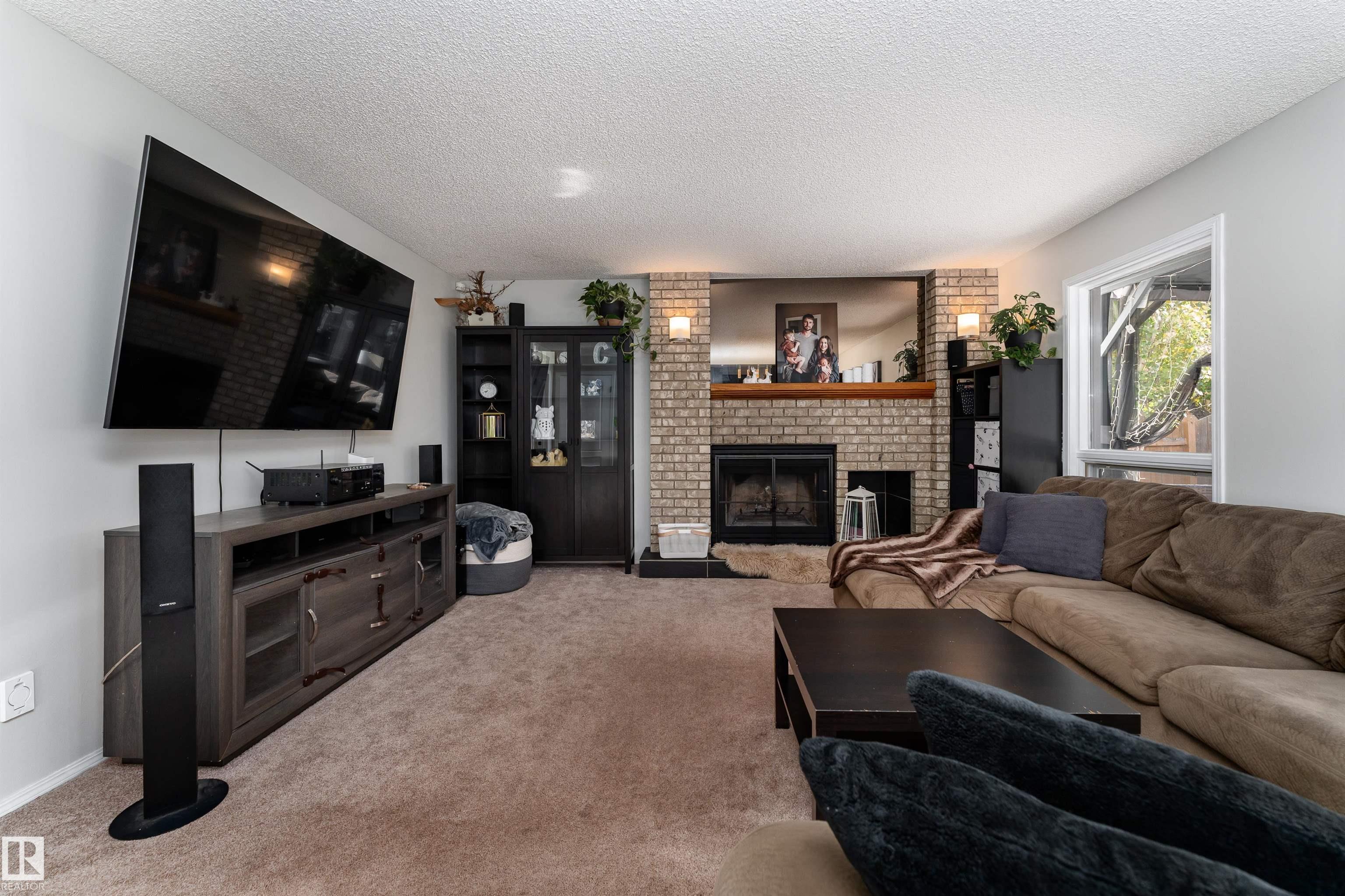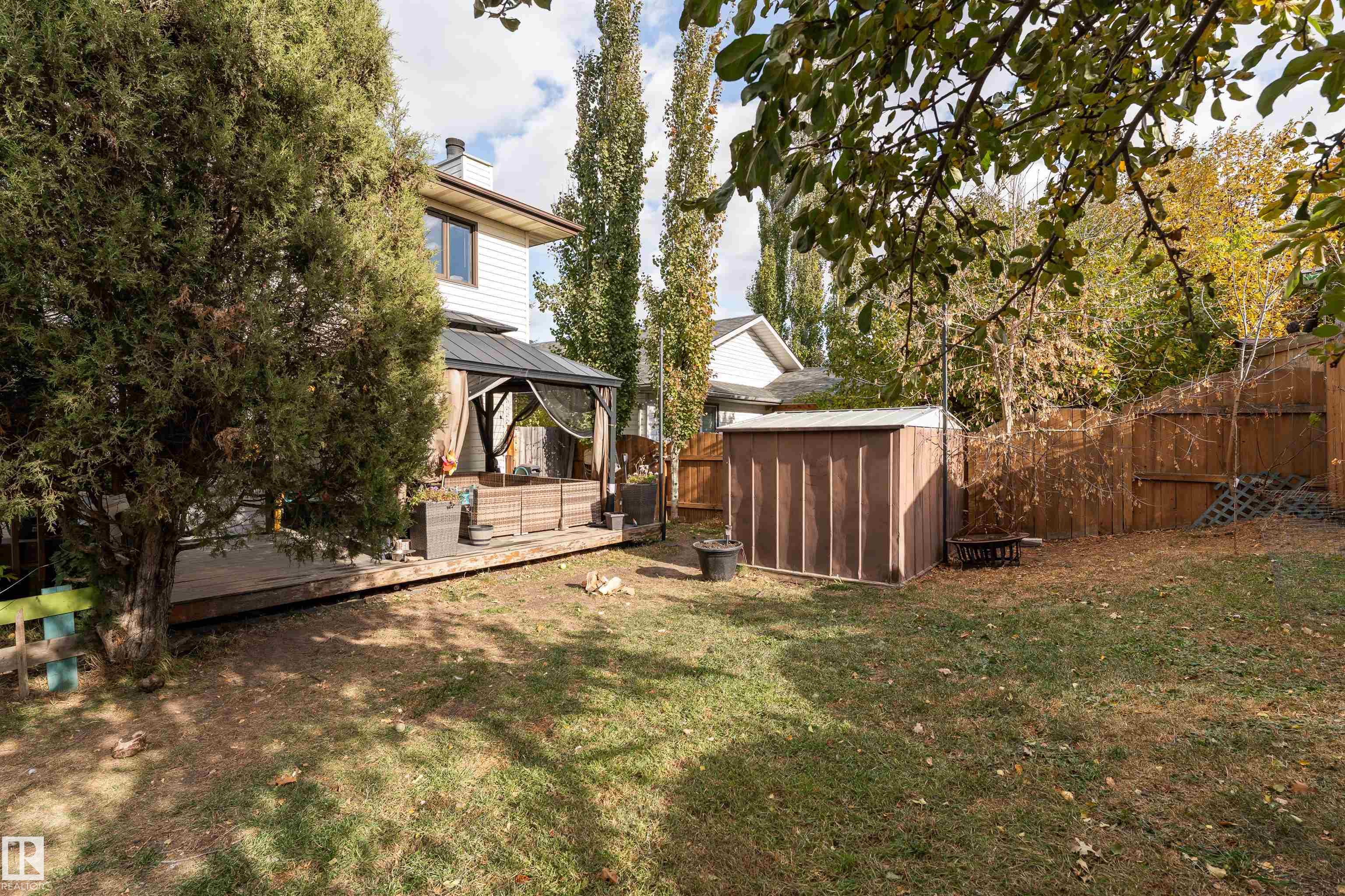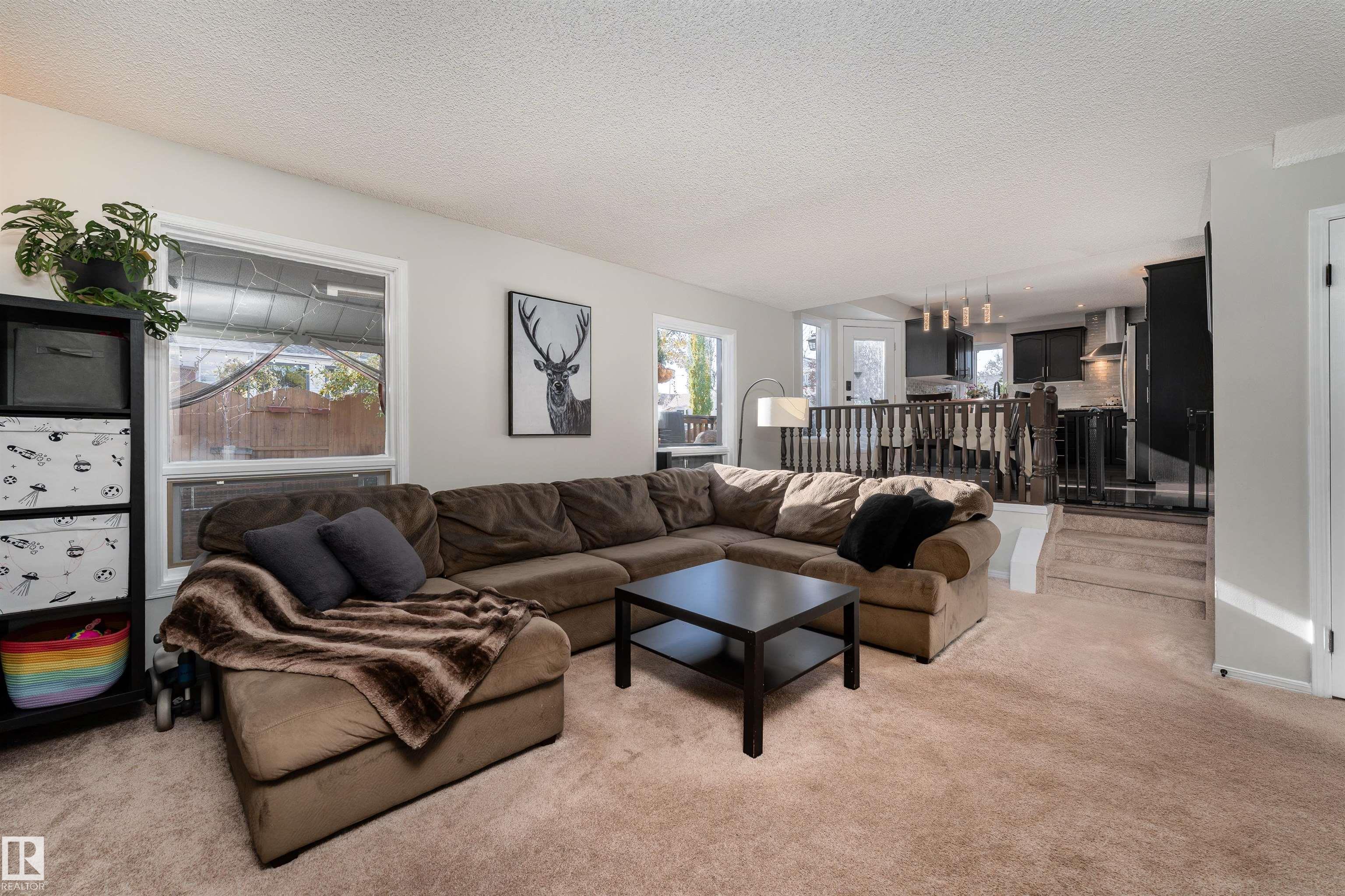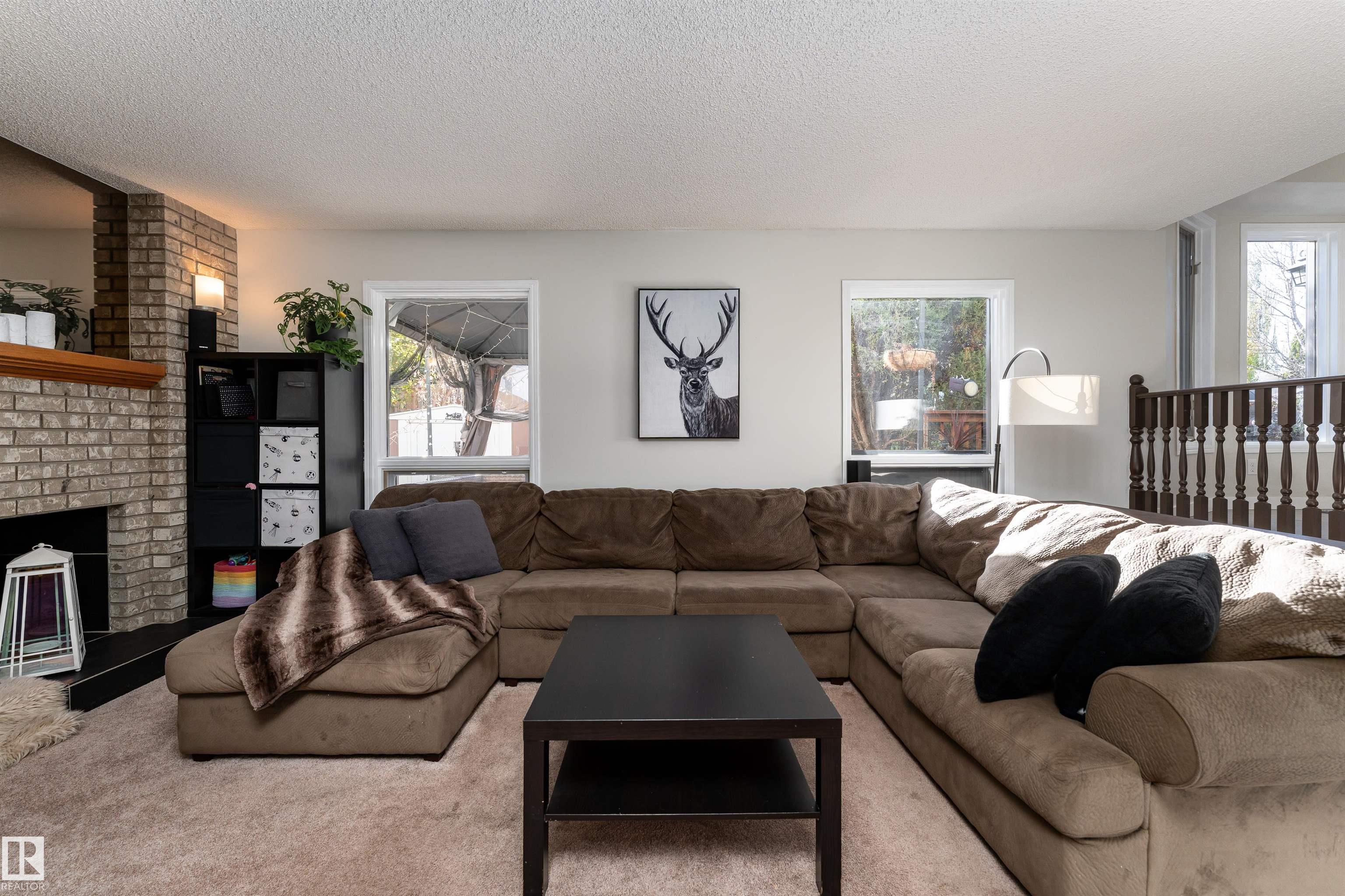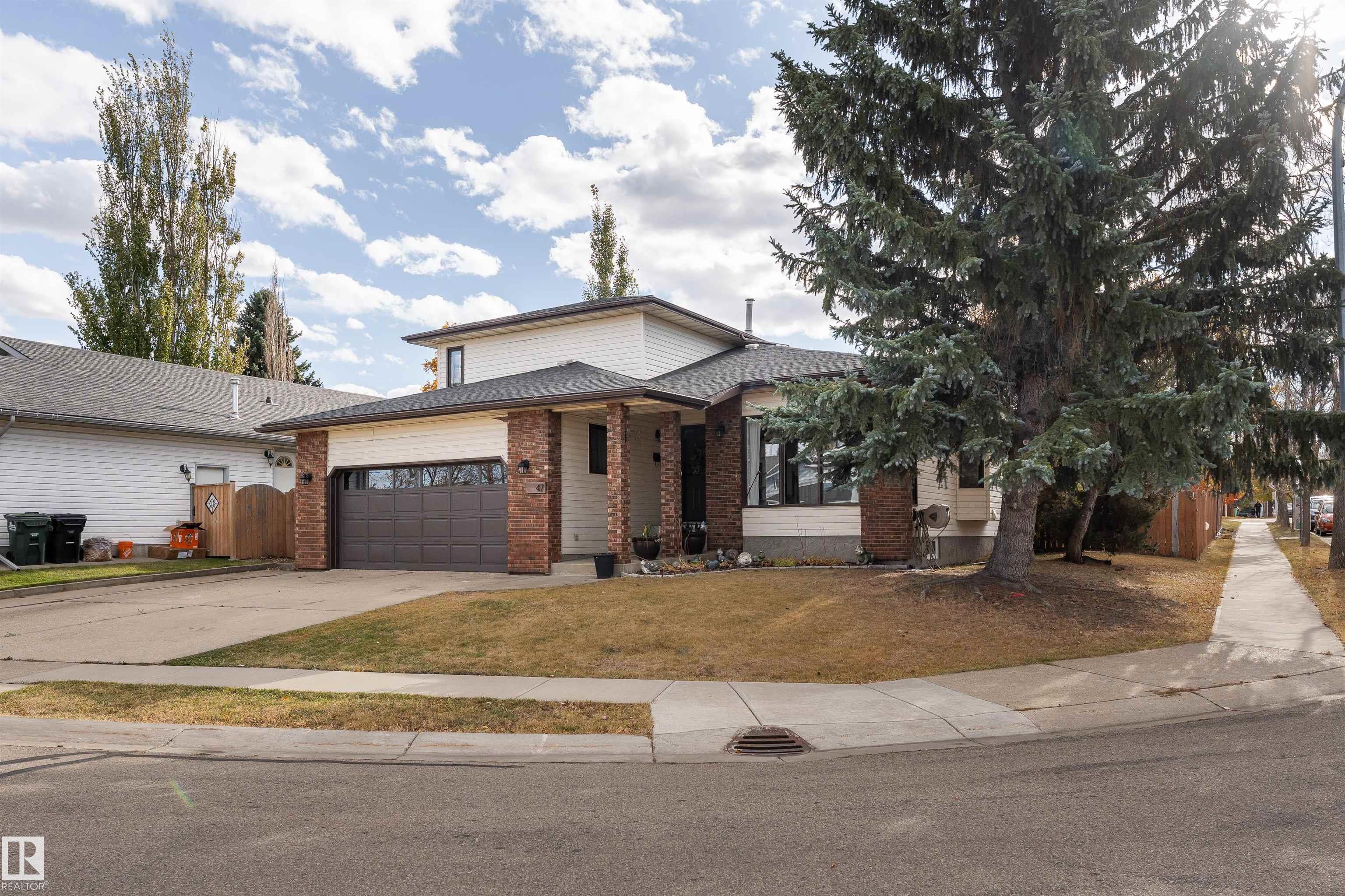 This spacious 1860 sq ft corner-lot home is nestled in the quiet, established community of Clover Bar Ranch and offers exceptional comfort and functionality for family living. The main floor welcomes you with a bright living room, open dining area, and large kitchen featuring stainless steel appliances, a gas cooktop, and plenty of storage. A cozy sunken family room with built-in shelving provides the perfect spot to relax or enjoy movie nights. Upstairs, the primary suite includes a walk-in closet with custom organization and ensuite, while two additional bedrooms and a full bath offer great family space. The finished basement boasts 9 ft ceilings, a large rec room, oversized storage, an extra bedroom, and a full bath. Enjoy a south-facing yard with an oversized deck?ideal for entertaining. Complete with air conditioning, heated double garage, new roof (2024), newer hot water tank, and hardwired security system, this home combines space, comfort, and convenience in an unbeatable location.