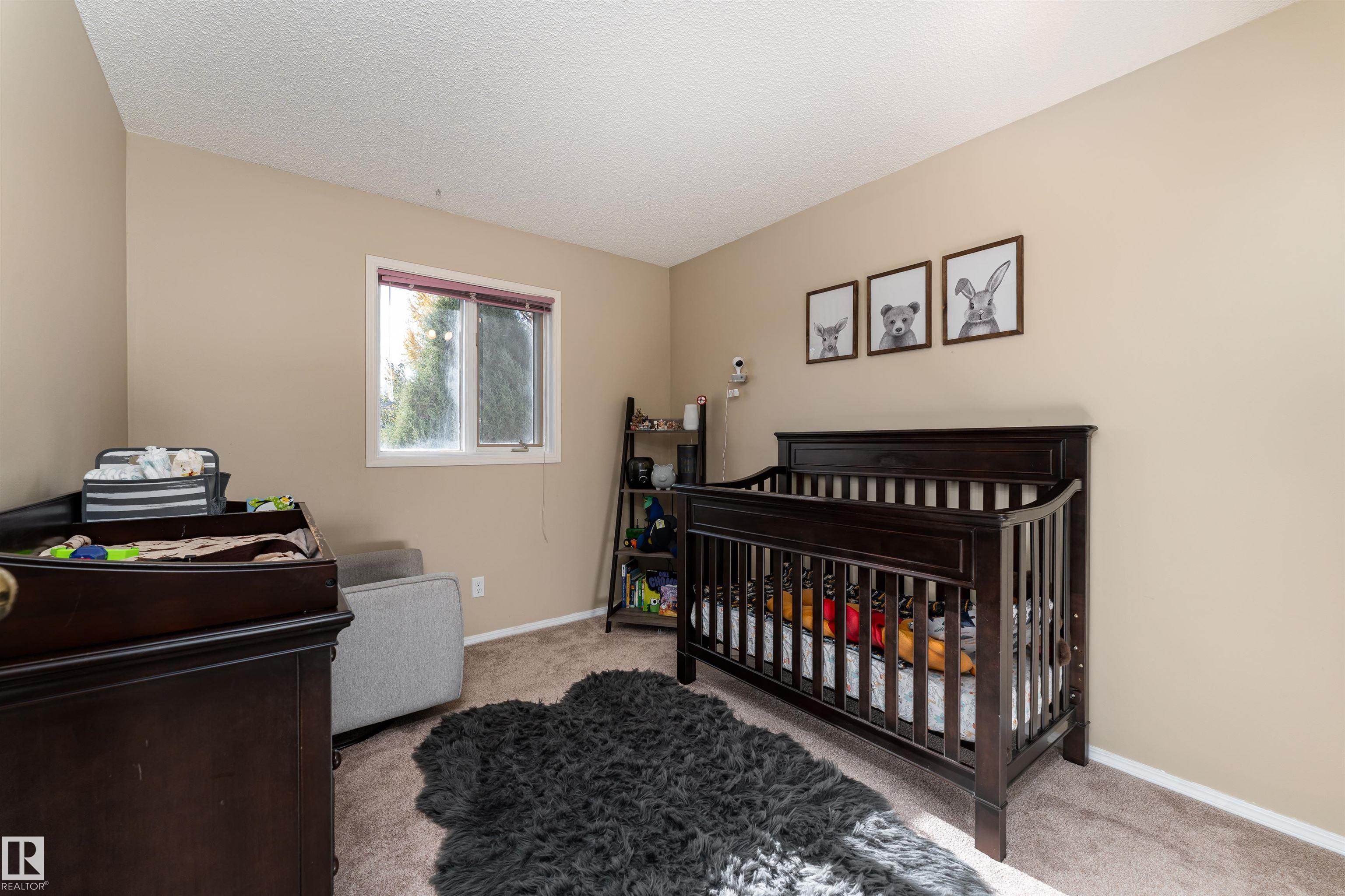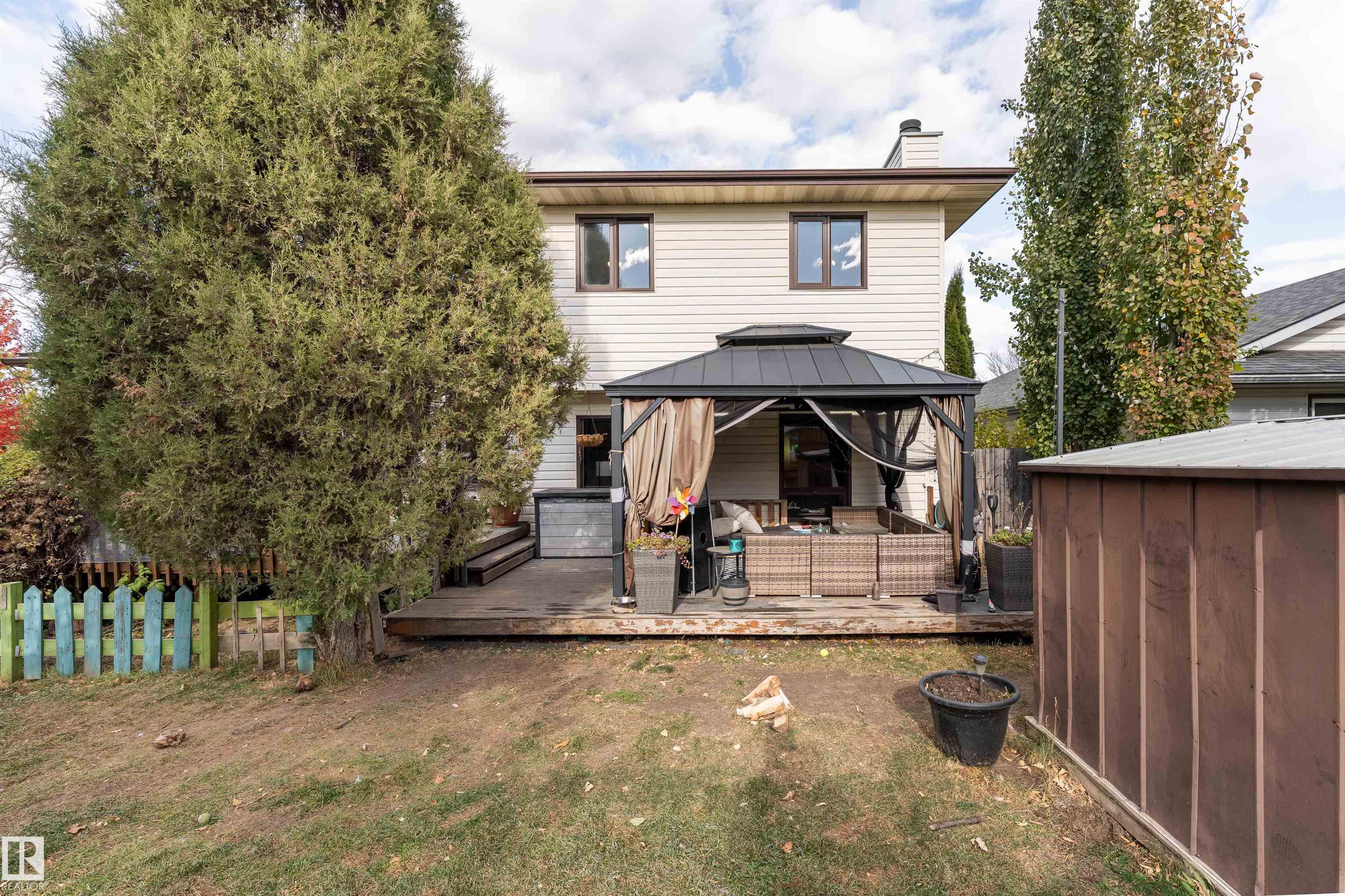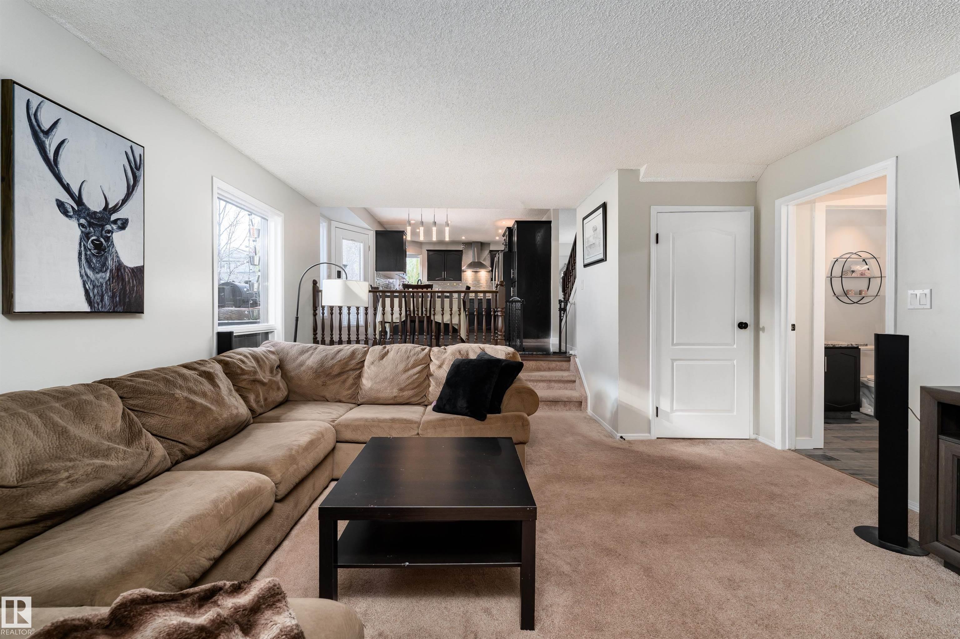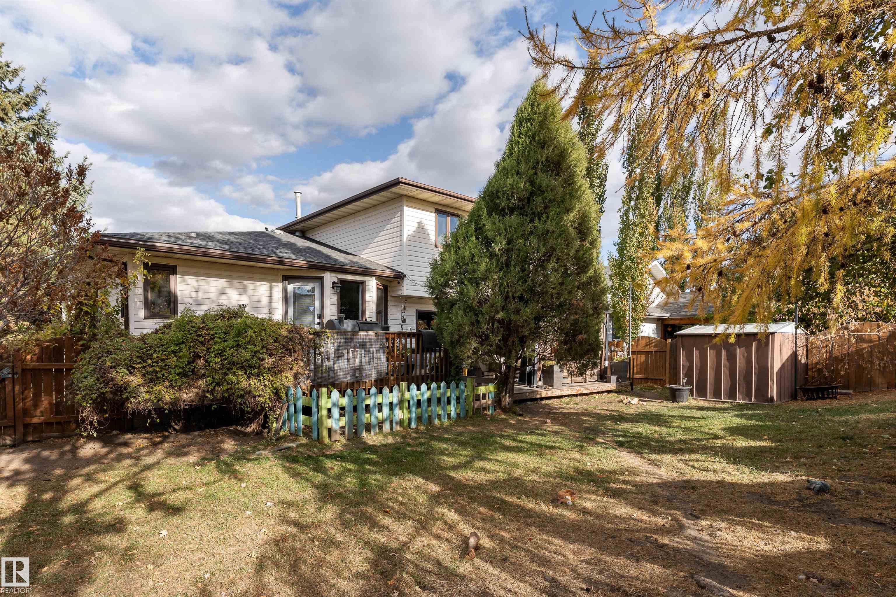 This spacious 1860 sq ft corner-lot home is nestled in the quiet, established community of Clover Bar Ranch and offers exceptional comfort and functionality for family living. The main floor welcomes you with a bright living room, open dining area, and large kitchen featuring stainless steel appliances, a gas cooktop, and plenty of storage. A cozy sunken family room with built-in shelving provides the perfect spot to relax or enjoy movie nights. Upstairs, the primary suite includes a walk-in closet with custom organization and ensuite, while two additional bedrooms and a full bath offer great family space. The finished basement boasts 9 ft ceilings, a large rec room, oversized storage, an extra bedroom, and a full bath. Enjoy a south-facing yard with an oversized deck?ideal for entertaining. Complete with air conditioning, heated double garage, new roof (2024), newer hot water tank, and hardwired security system, this home combines space, comfort, and convenience in an unbeatable location.