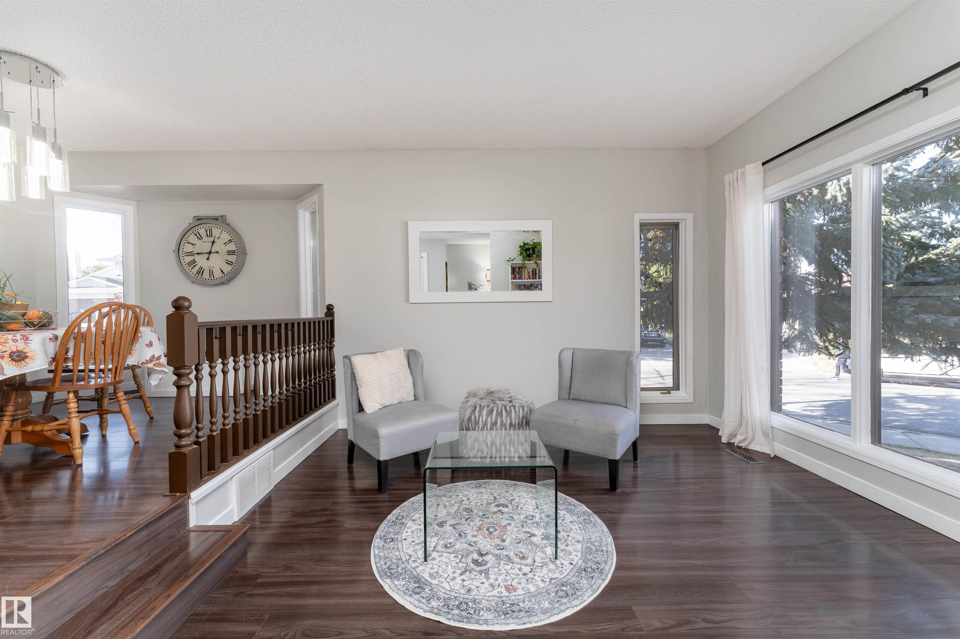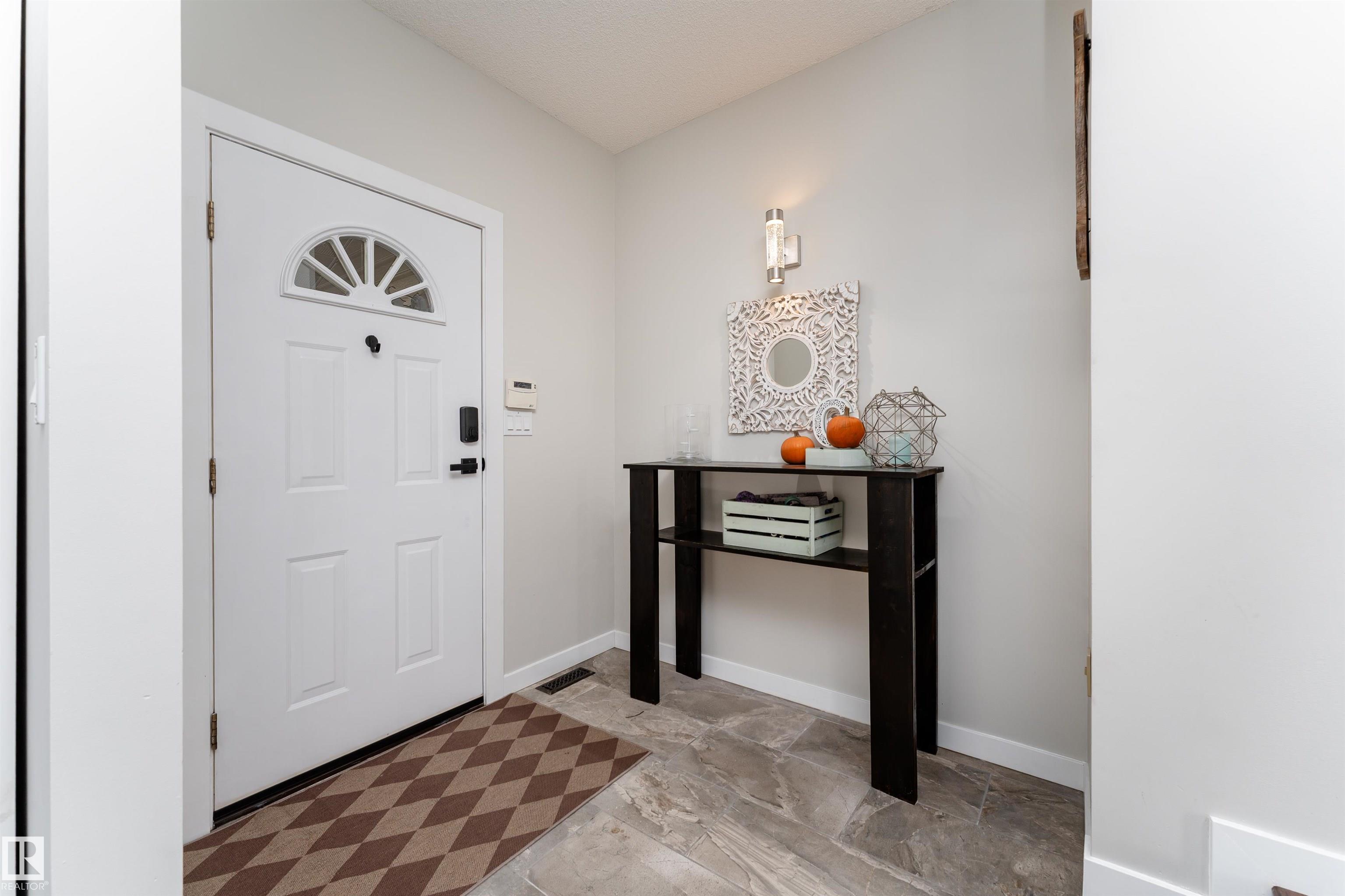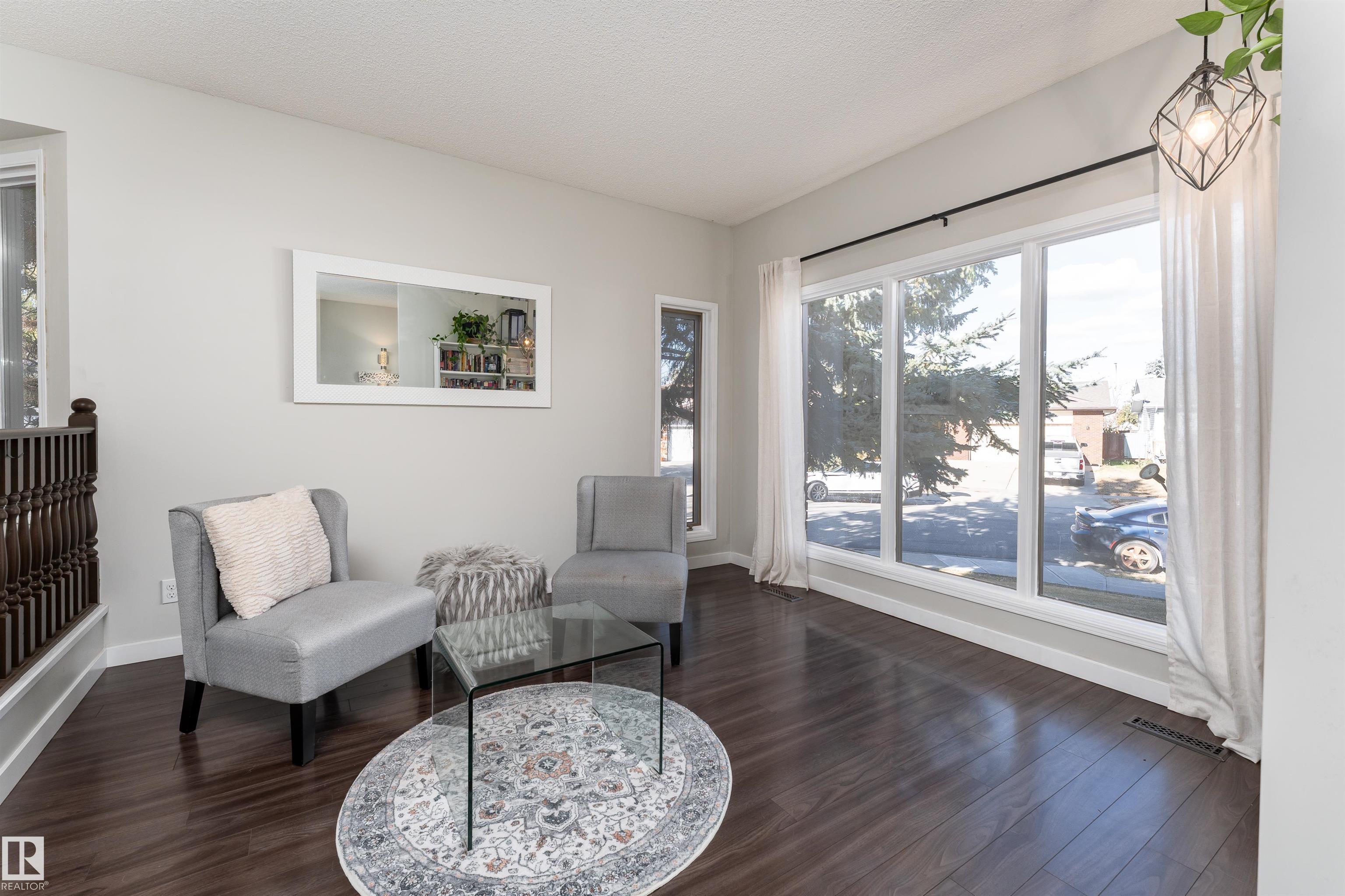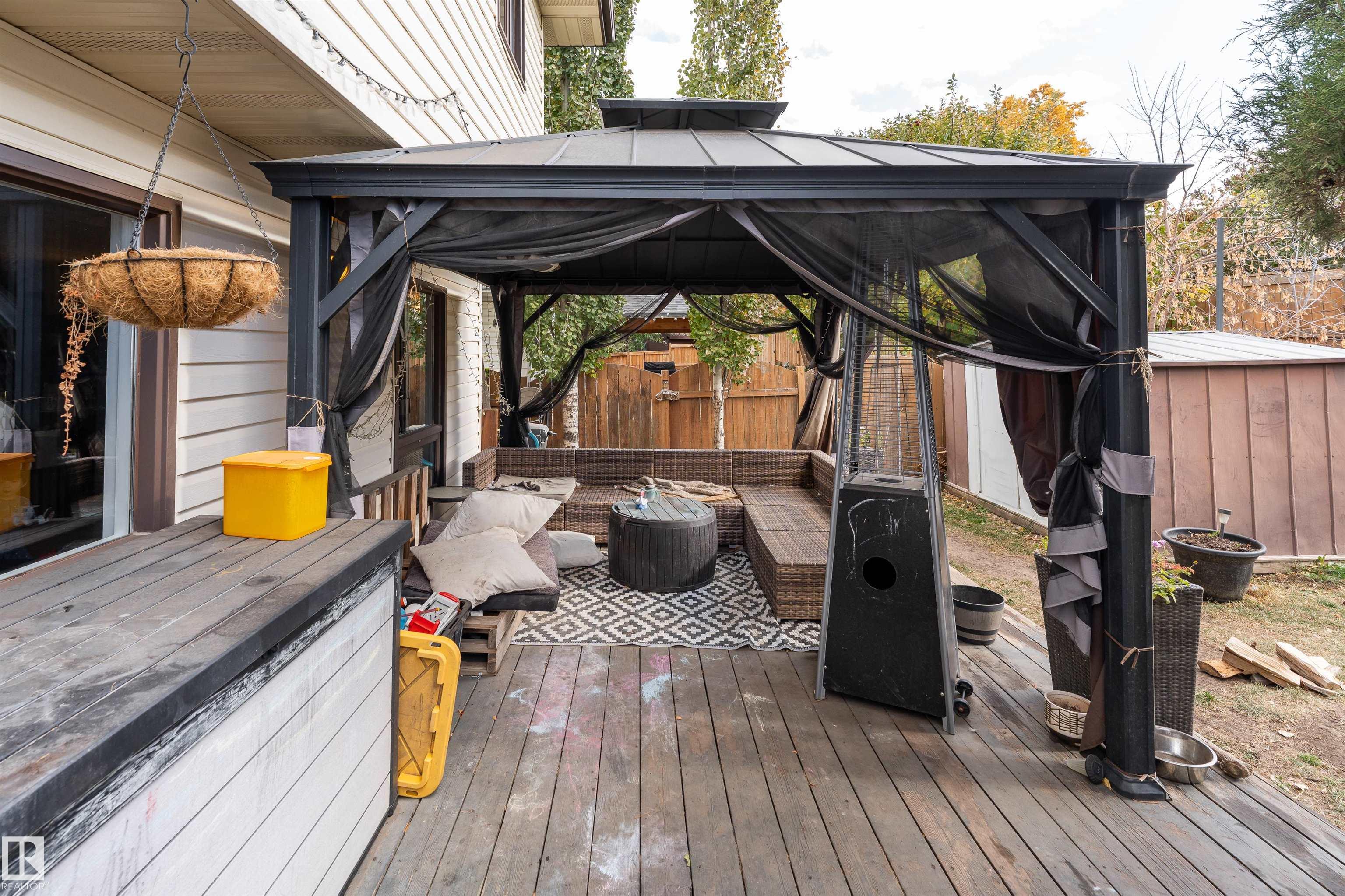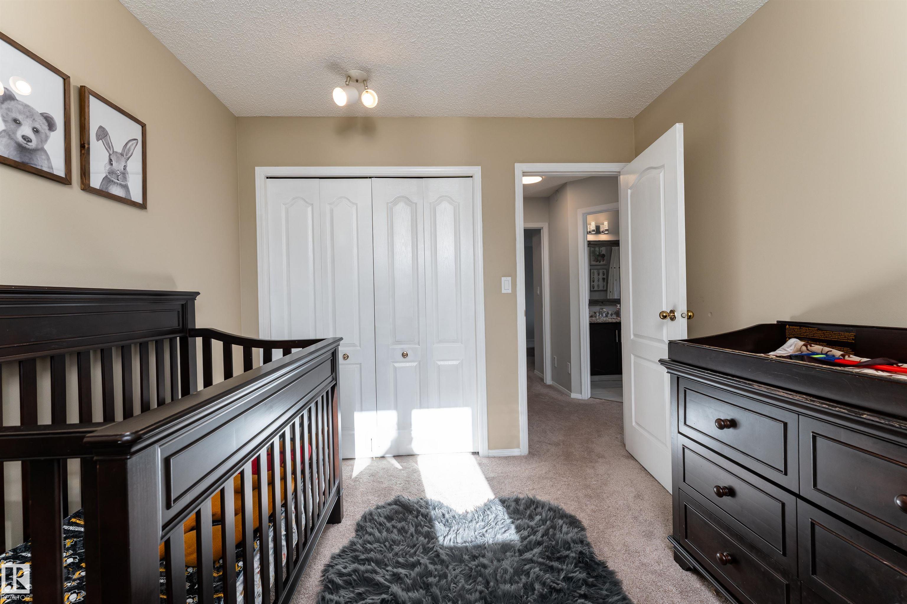 This spacious 1860 sq ft corner-lot home is nestled in the quiet, established community of Clover Bar Ranch and offers exceptional comfort and functionality for family living. The main floor welcomes you with a bright living room, open dining area, and large kitchen featuring stainless steel appliances, a gas cooktop, and plenty of storage. A cozy sunken family room with built-in shelving provides the perfect spot to relax or enjoy movie nights. Upstairs, the primary suite includes a walk-in closet with custom organization and ensuite, while two additional bedrooms and a full bath offer great family space. The finished basement boasts 9 ft ceilings, a large rec room, oversized storage, an extra bedroom, and a full bath. Enjoy a south-facing yard with an oversized deck?ideal for entertaining. Complete with air conditioning, heated double garage, new roof (2024), newer hot water tank, and hardwired security system, this home combines space, comfort, and convenience in an unbeatable location.