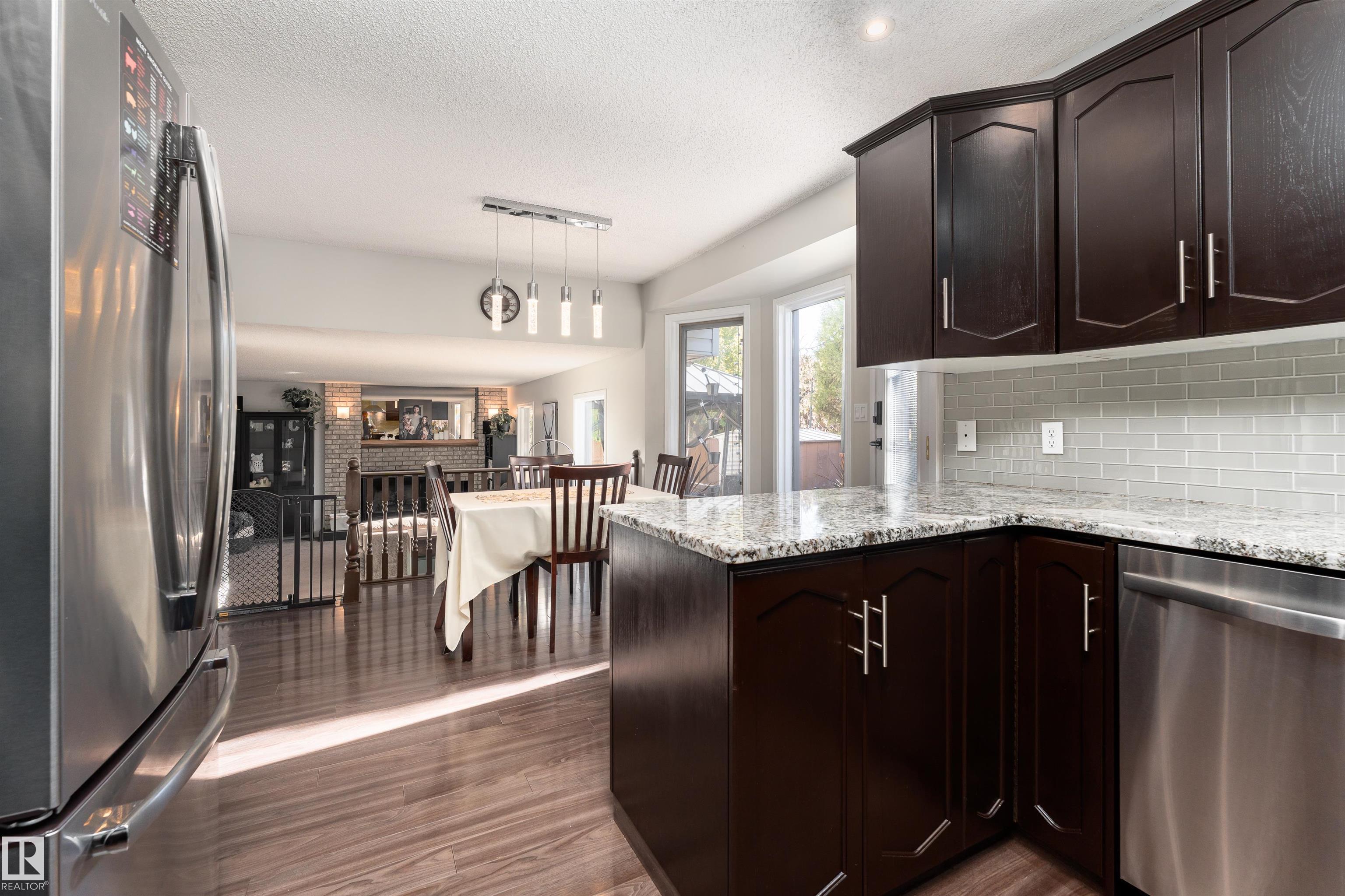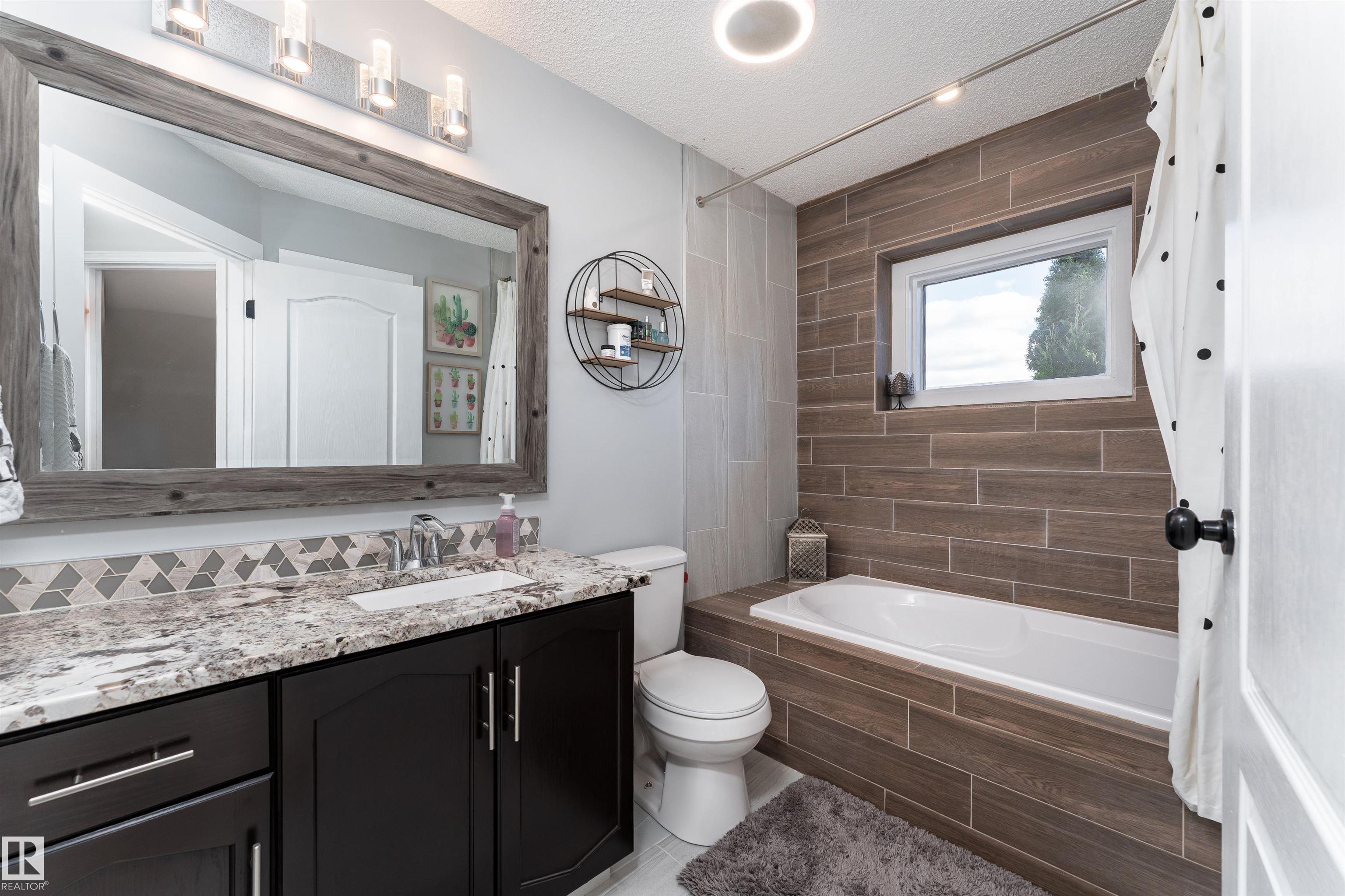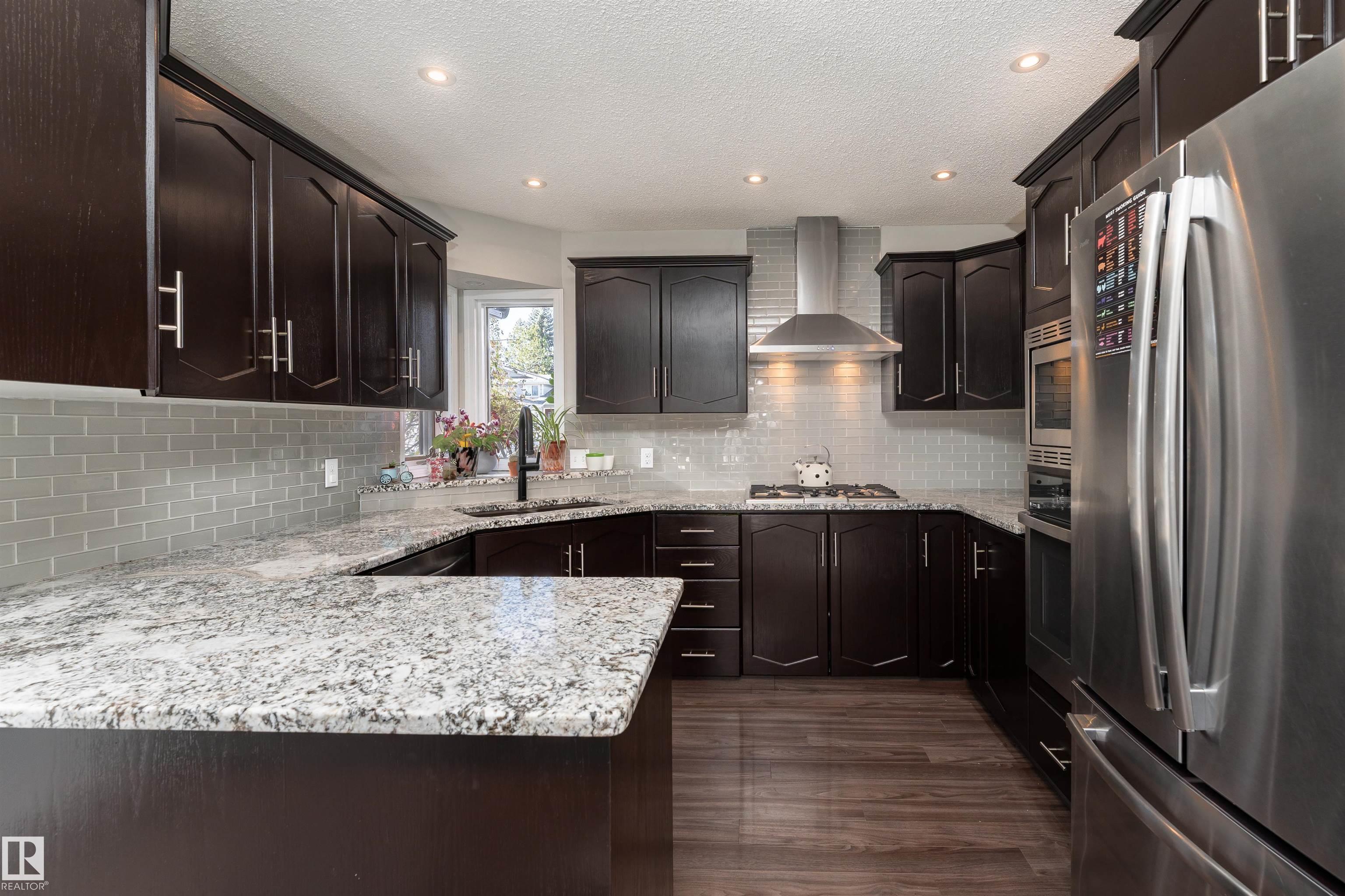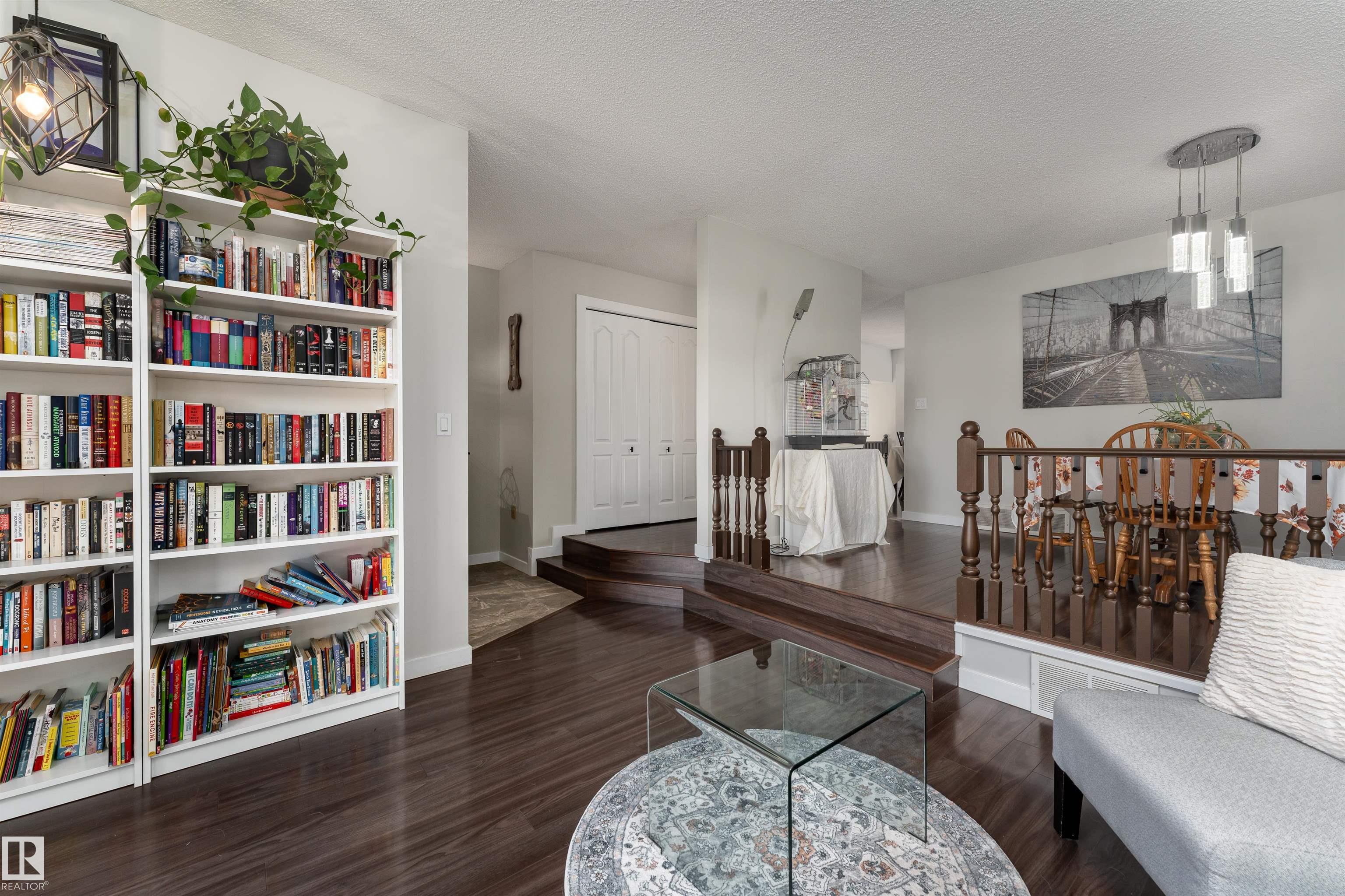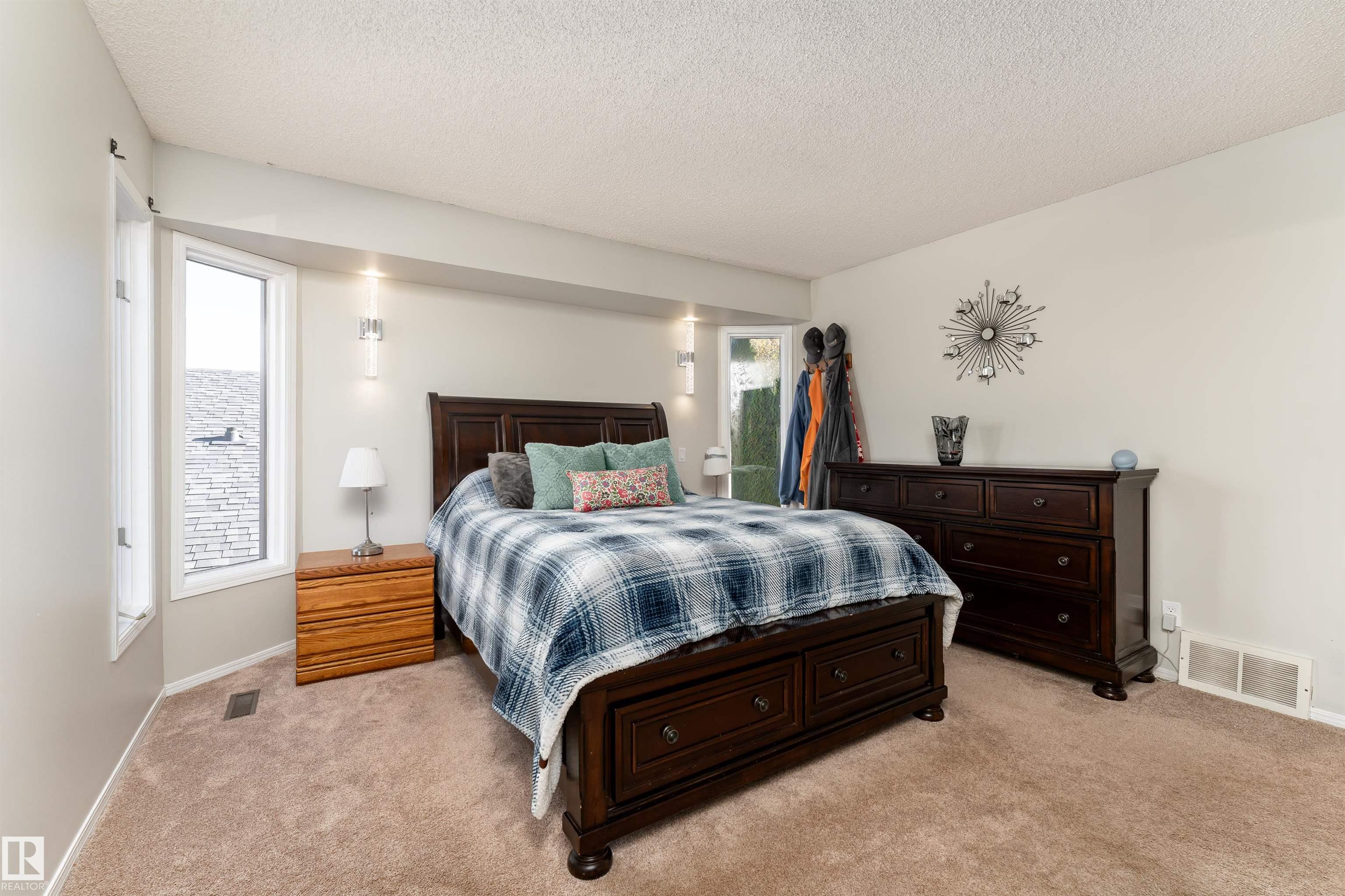 This spacious 1860 sq ft corner-lot home is nestled in the quiet, established community of Clover Bar Ranch and offers exceptional comfort and functionality for family living. The main floor welcomes you with a bright living room, open dining area, and large kitchen featuring stainless steel appliances, a gas cooktop, and plenty of storage. A cozy sunken family room with built-in shelving provides the perfect spot to relax or enjoy movie nights. Upstairs, the primary suite includes a walk-in closet with custom organization and ensuite, while two additional bedrooms and a full bath offer great family space. The finished basement boasts 9 ft ceilings, a large rec room, oversized storage, an extra bedroom, and a full bath. Enjoy a south-facing yard with an oversized deck?ideal for entertaining. Complete with air conditioning, heated double garage, new roof (2024), newer hot water tank, and hardwired security system, this home combines space, comfort, and convenience in an unbeatable location.