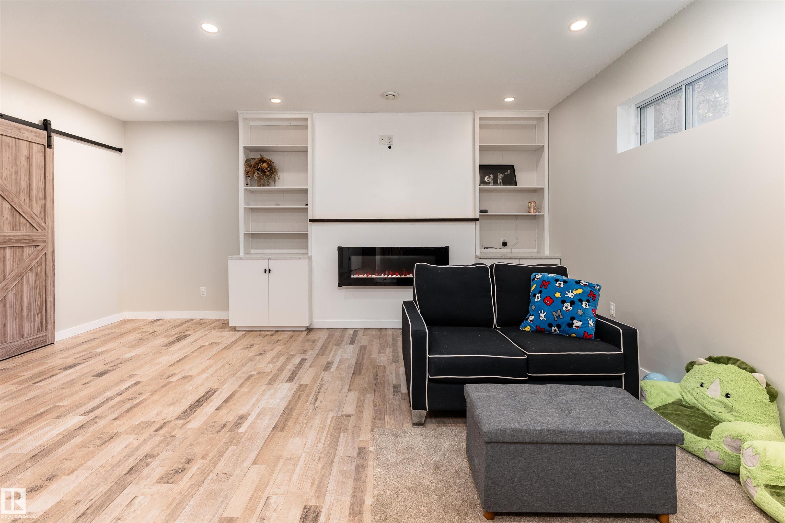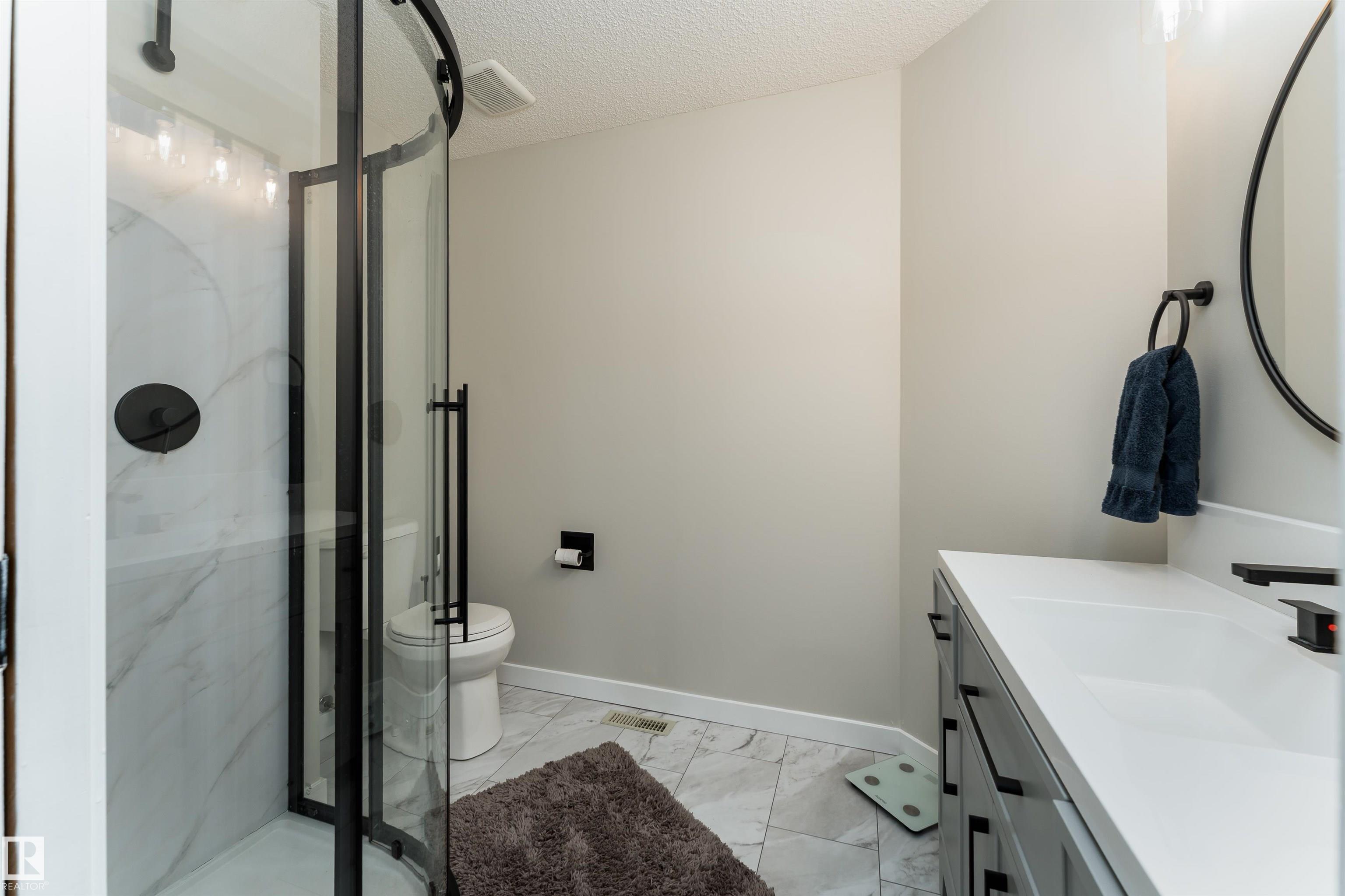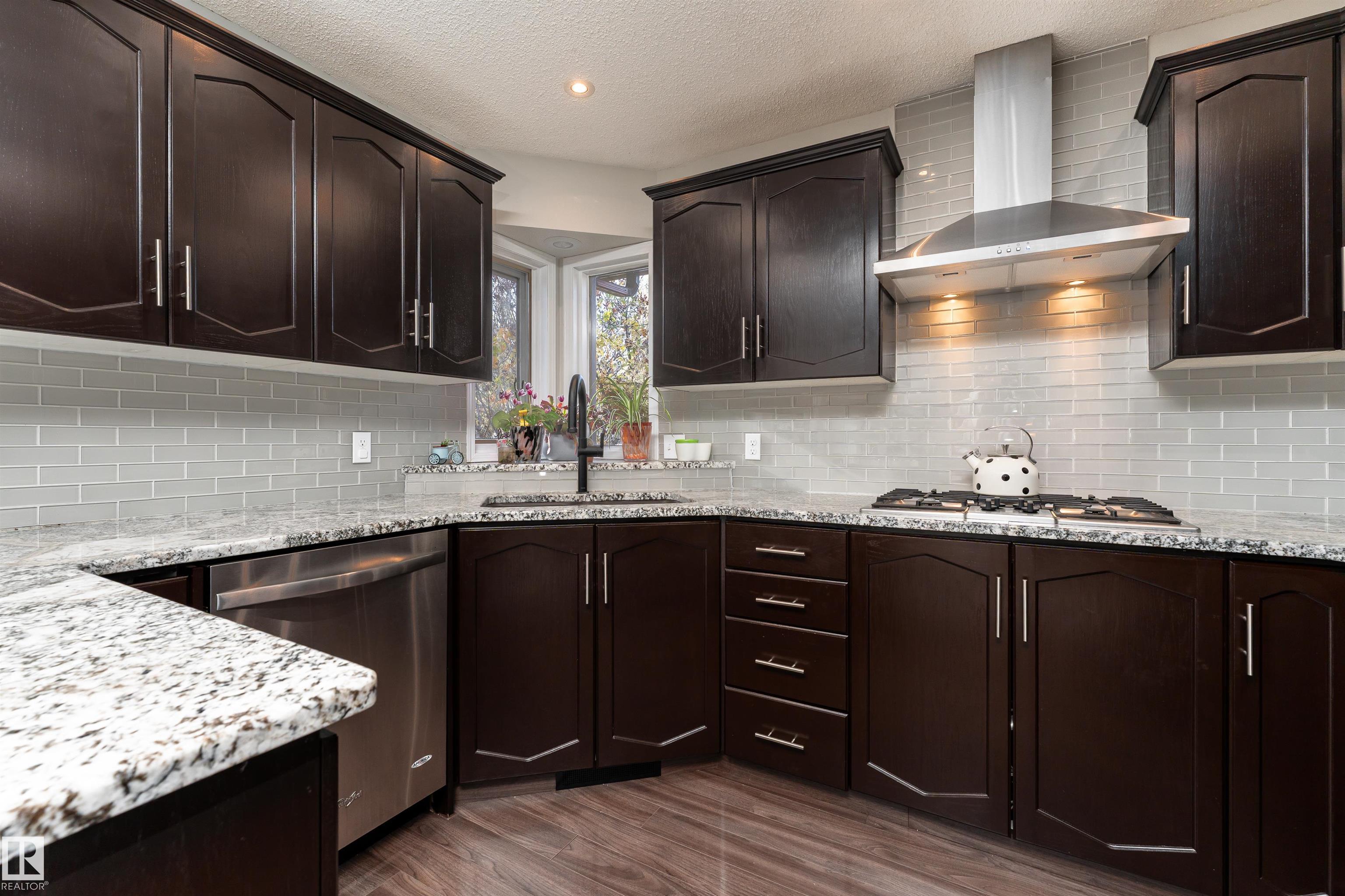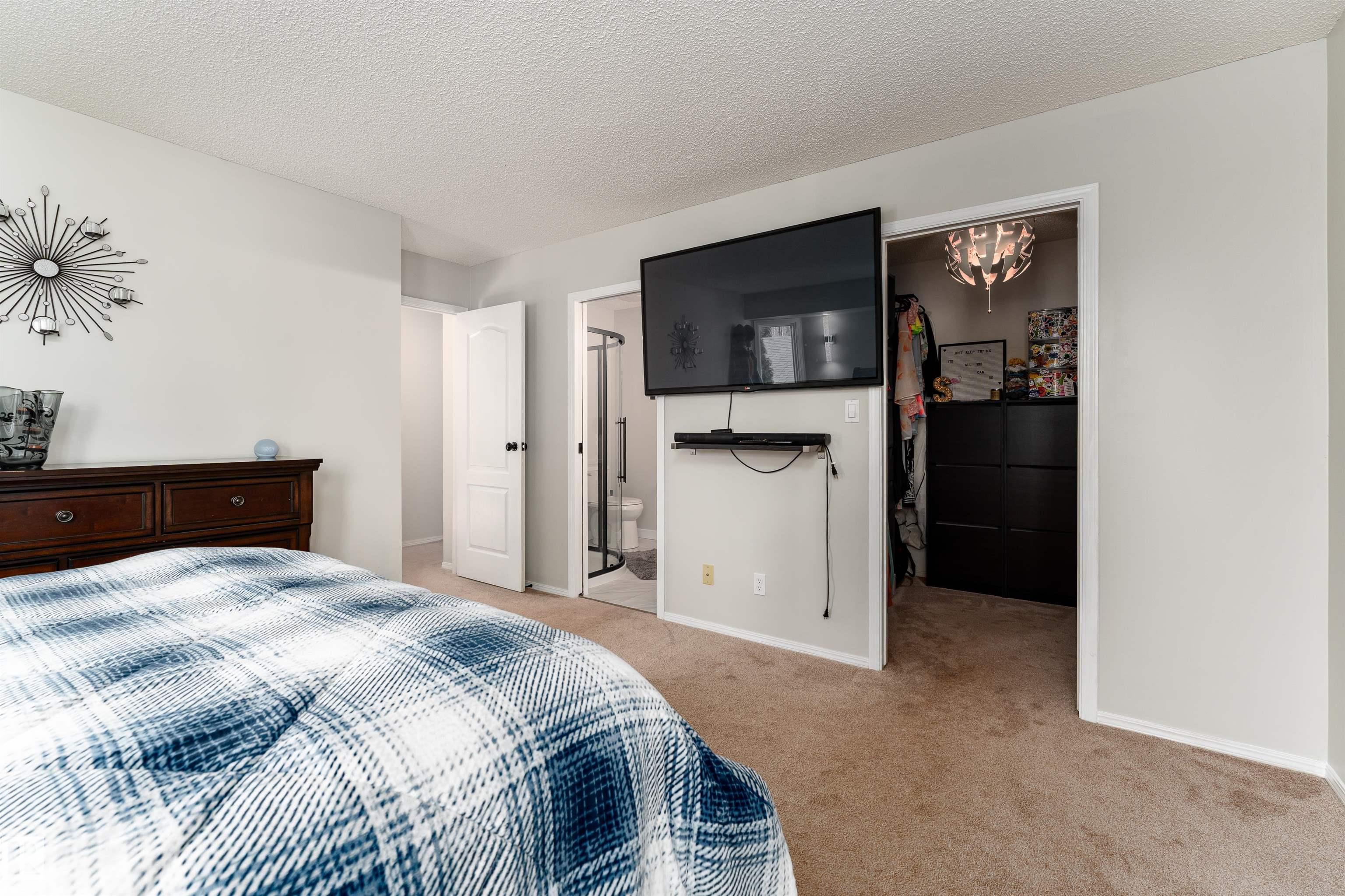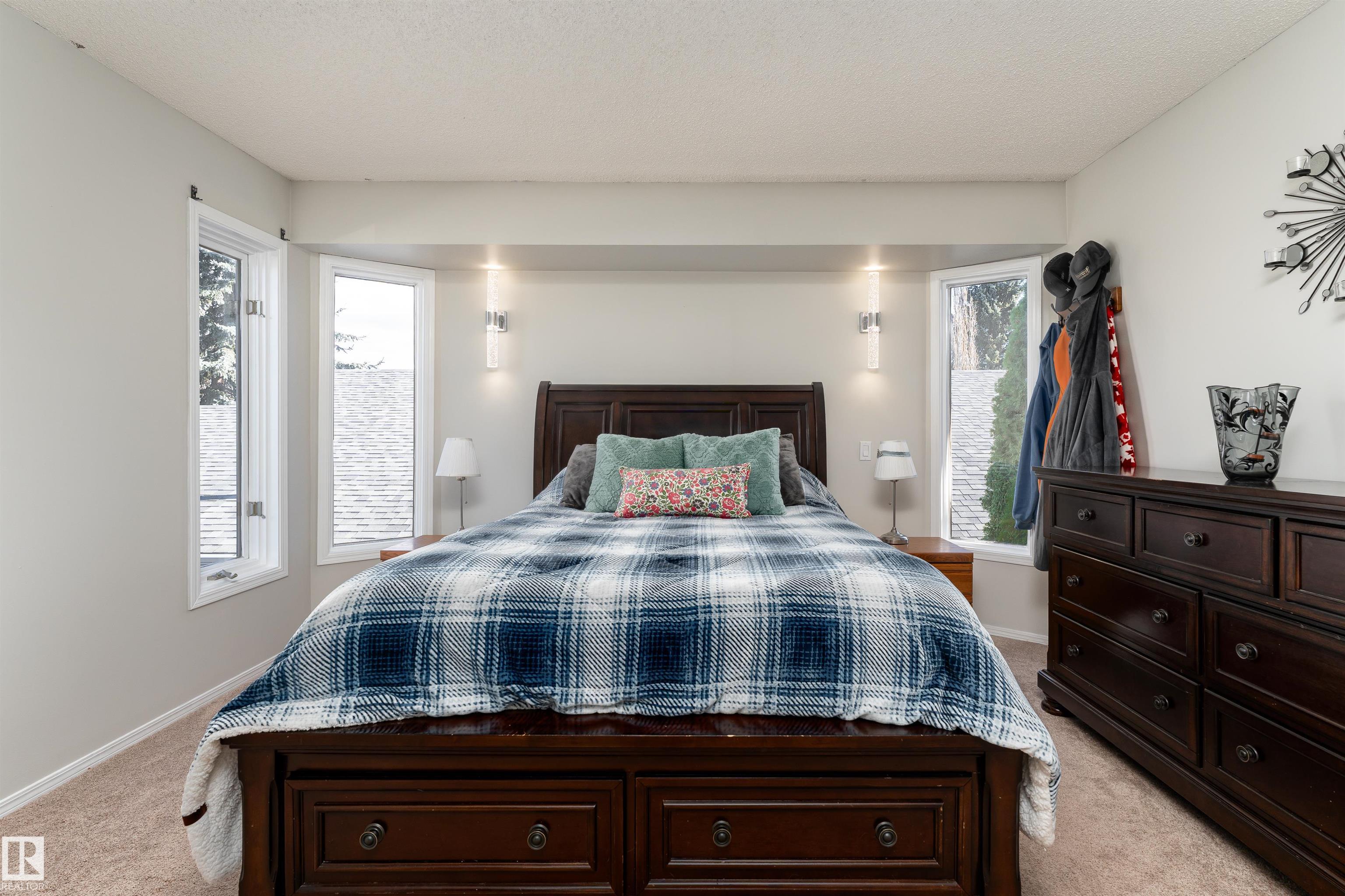 This spacious 1860 sq ft corner-lot home is nestled in the quiet, established community of Clover Bar Ranch and offers exceptional comfort and functionality for family living. The main floor welcomes you with a bright living room, open dining area, and large kitchen featuring stainless steel appliances, a gas cooktop, and plenty of storage. A cozy sunken family room with built-in shelving provides the perfect spot to relax or enjoy movie nights. Upstairs, the primary suite includes a walk-in closet with custom organization and ensuite, while two additional bedrooms and a full bath offer great family space. The finished basement boasts 9 ft ceilings, a large rec room, oversized storage, an extra bedroom, and a full bath. Enjoy a south-facing yard with an oversized deck?ideal for entertaining. Complete with air conditioning, heated double garage, new roof (2024), newer hot water tank, and hardwired security system, this home combines space, comfort, and convenience in an unbeatable location.