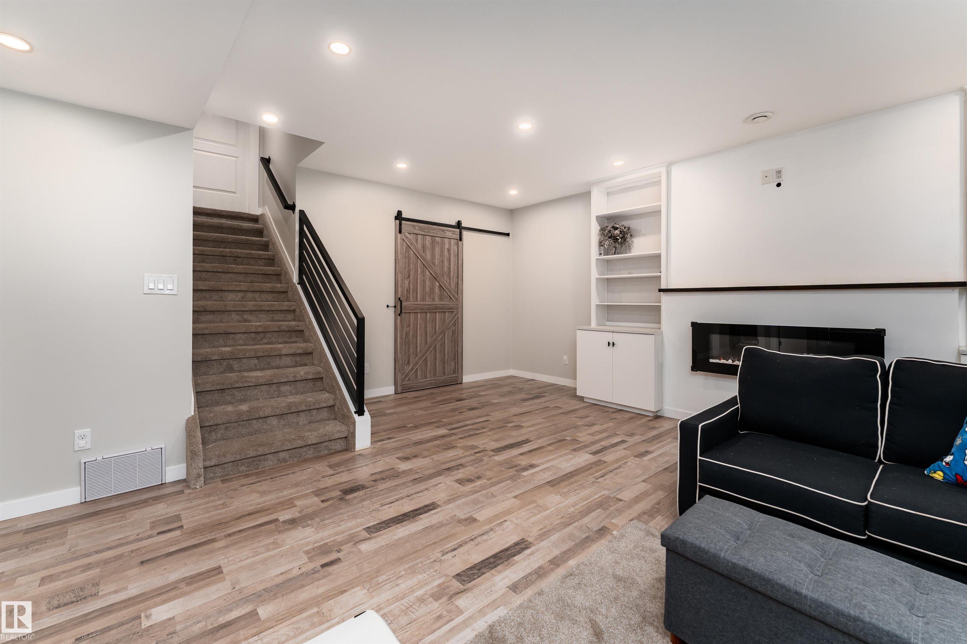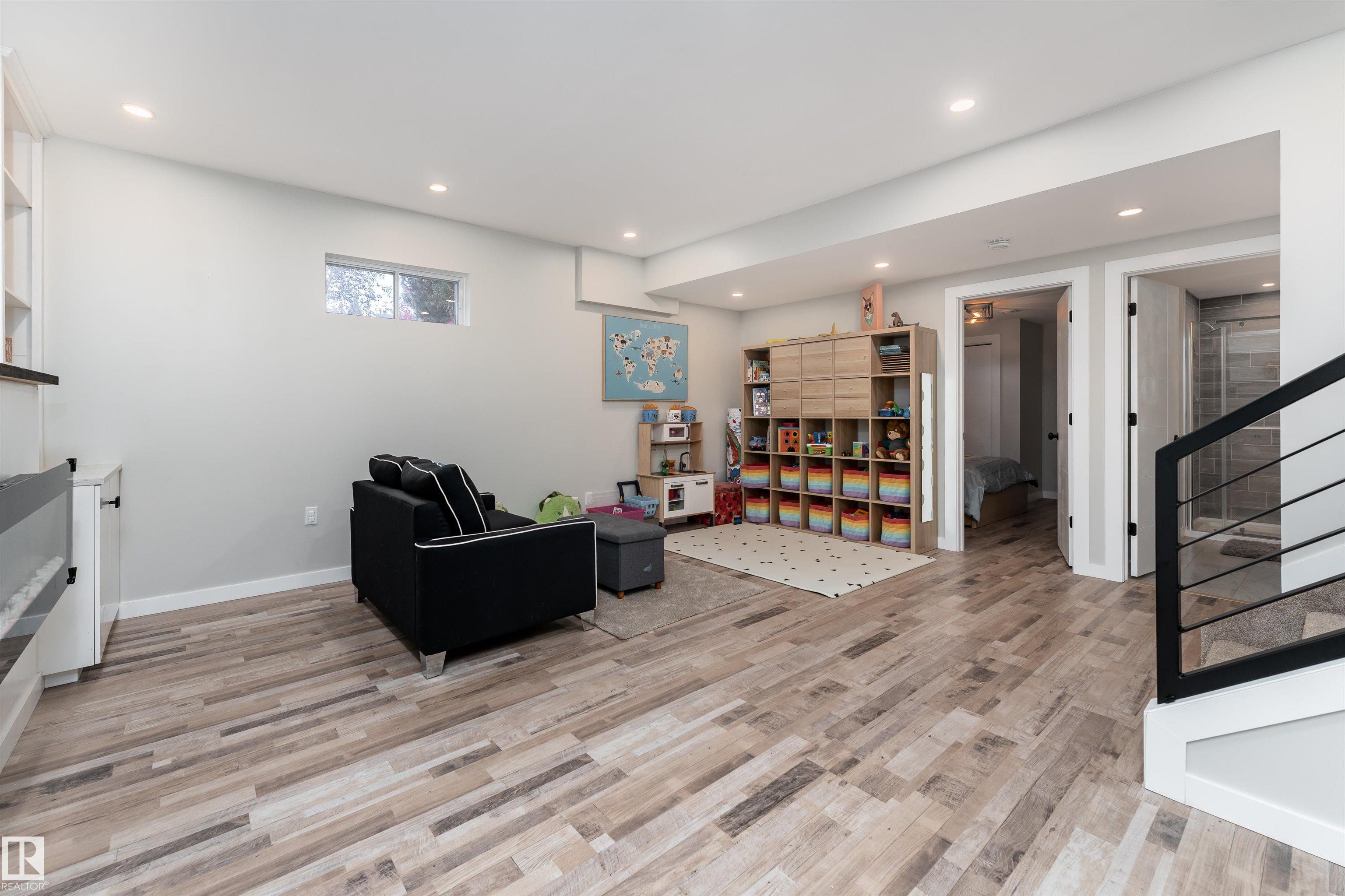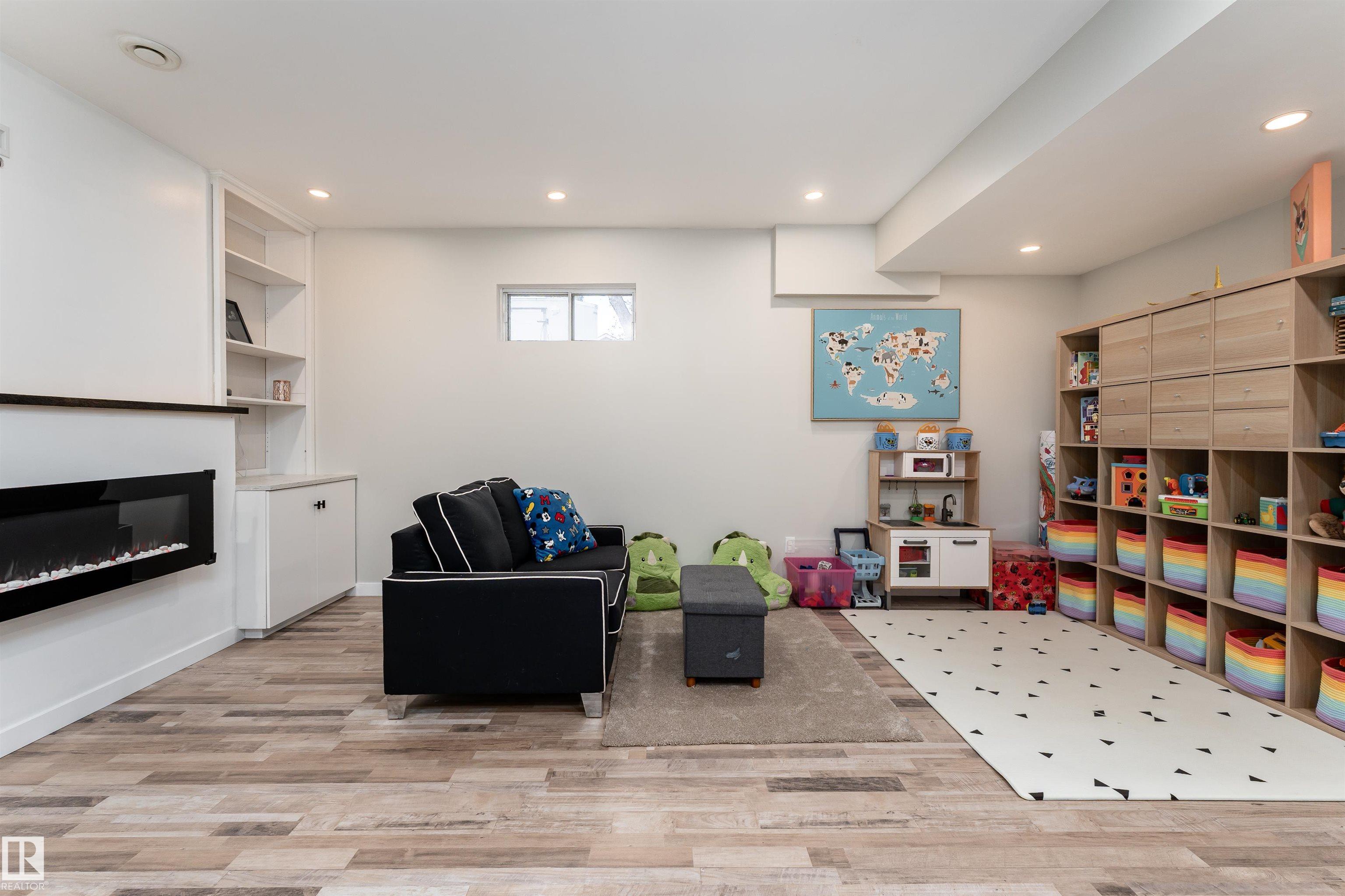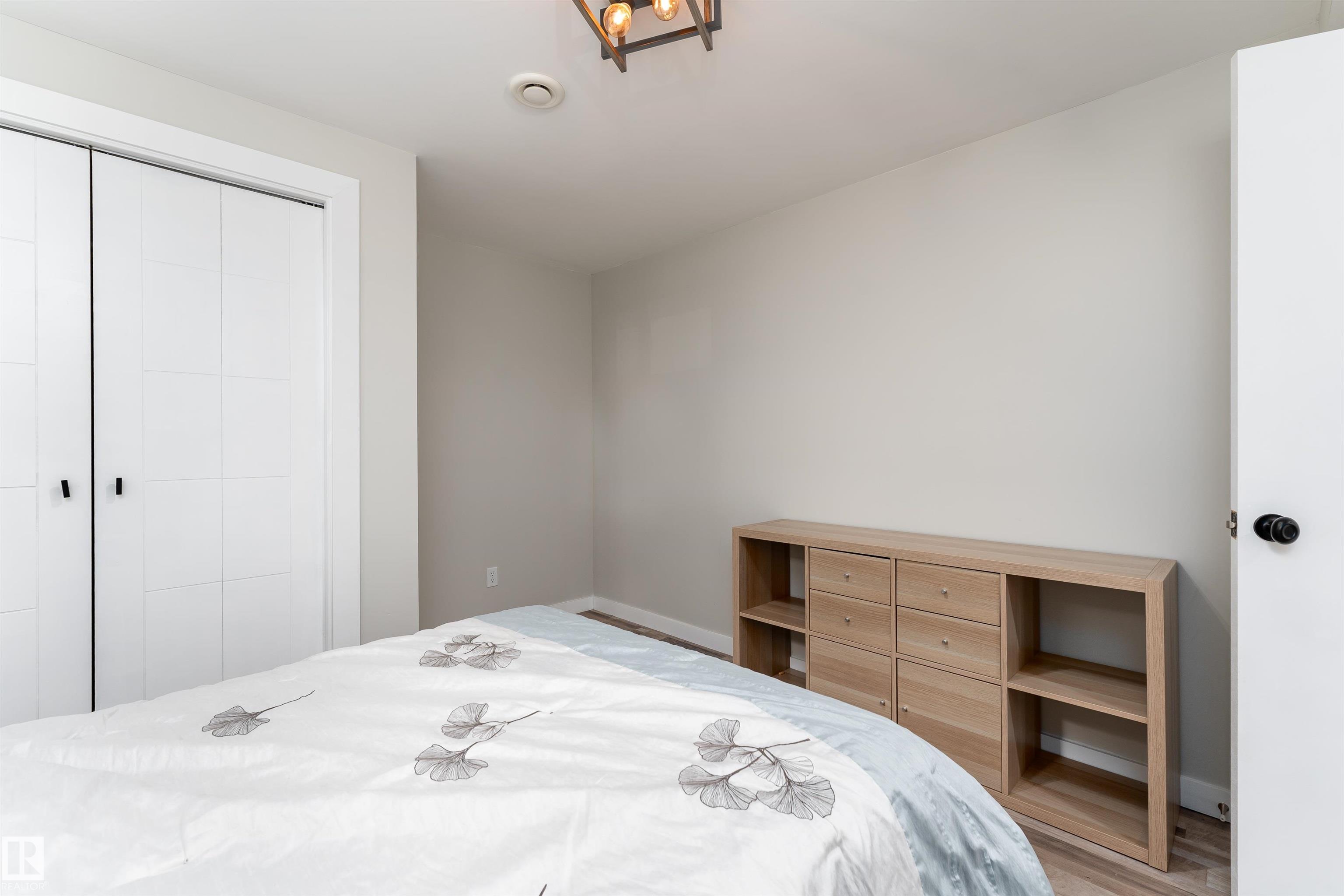 This spacious 1860 sq ft corner-lot home is nestled in the quiet, established community of Clover Bar Ranch and offers exceptional comfort and functionality for family living. The main floor welcomes you with a bright living room, open dining area, and large kitchen featuring stainless steel appliances, a gas cooktop, and plenty of storage. A cozy sunken family room with built-in shelving provides the perfect spot to relax or enjoy movie nights. Upstairs, the primary suite includes a walk-in closet with custom organization and ensuite, while two additional bedrooms and a full bath offer great family space. The finished basement boasts 9 ft ceilings, a large rec room, oversized storage, an extra bedroom, and a full bath. Enjoy a south-facing yard with an oversized deck?ideal for entertaining. Complete with air conditioning, heated double garage, new roof (2024), newer hot water tank, and hardwired security system, this home combines space, comfort, and convenience in an unbeatable location.
