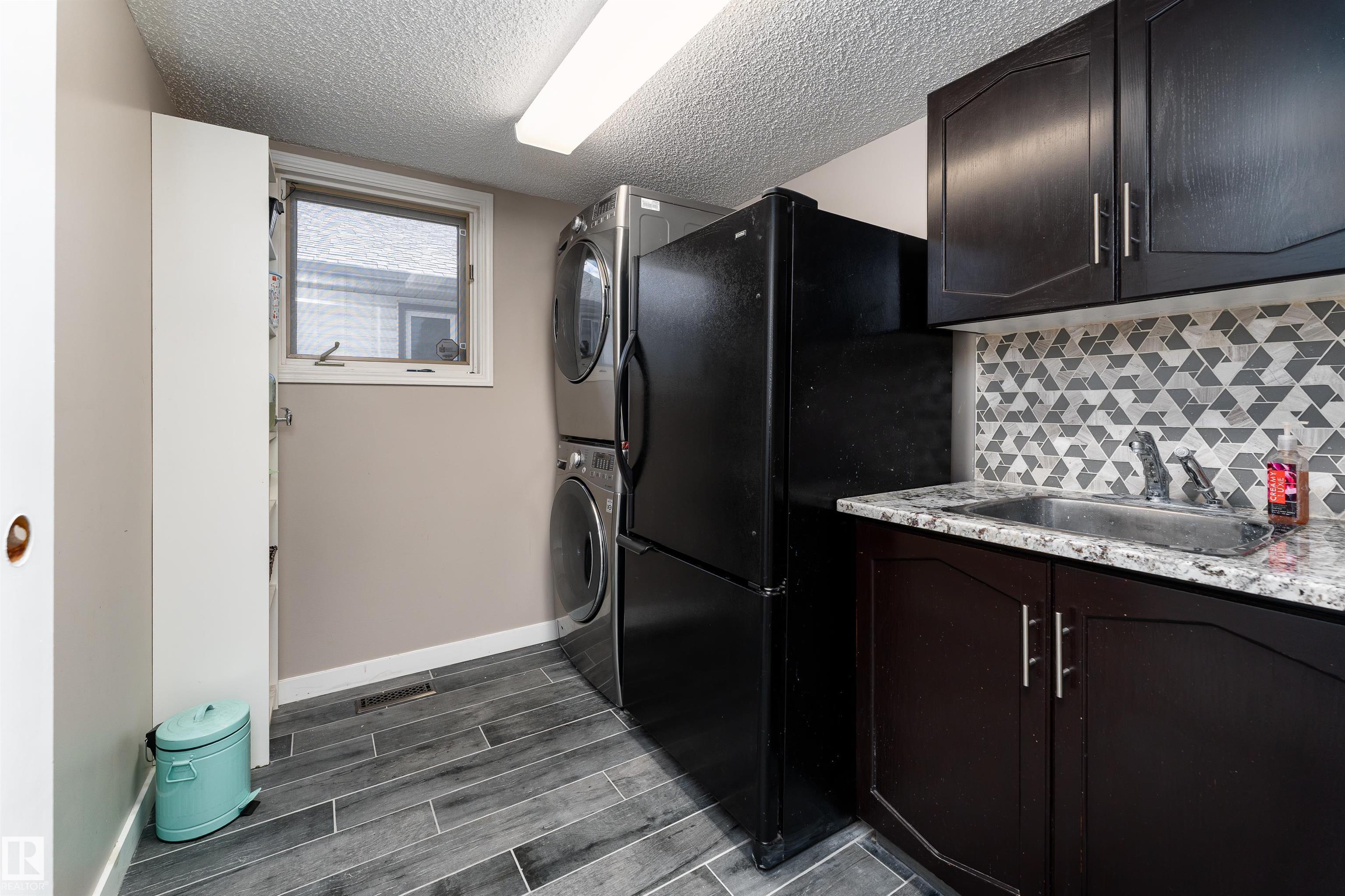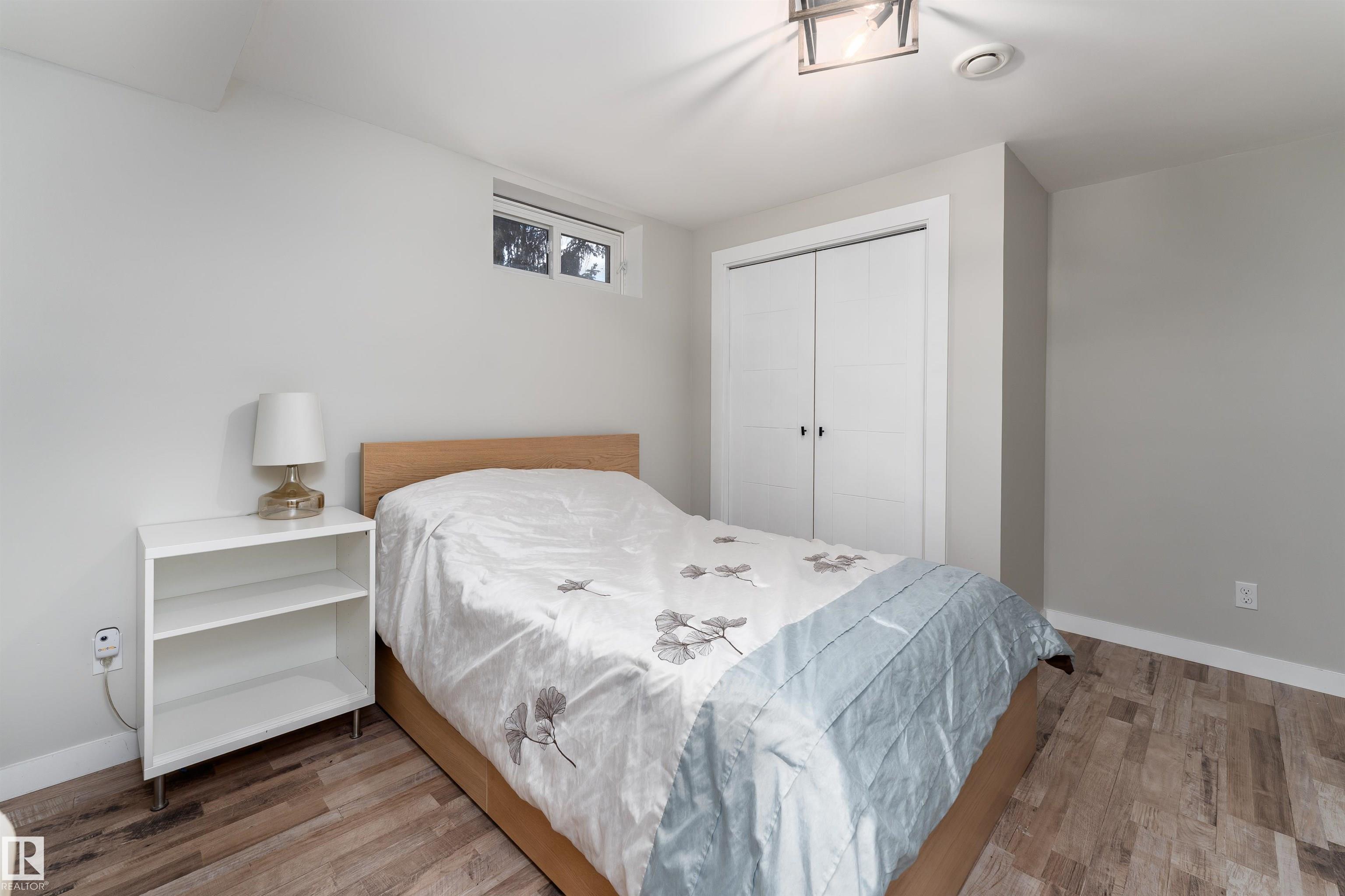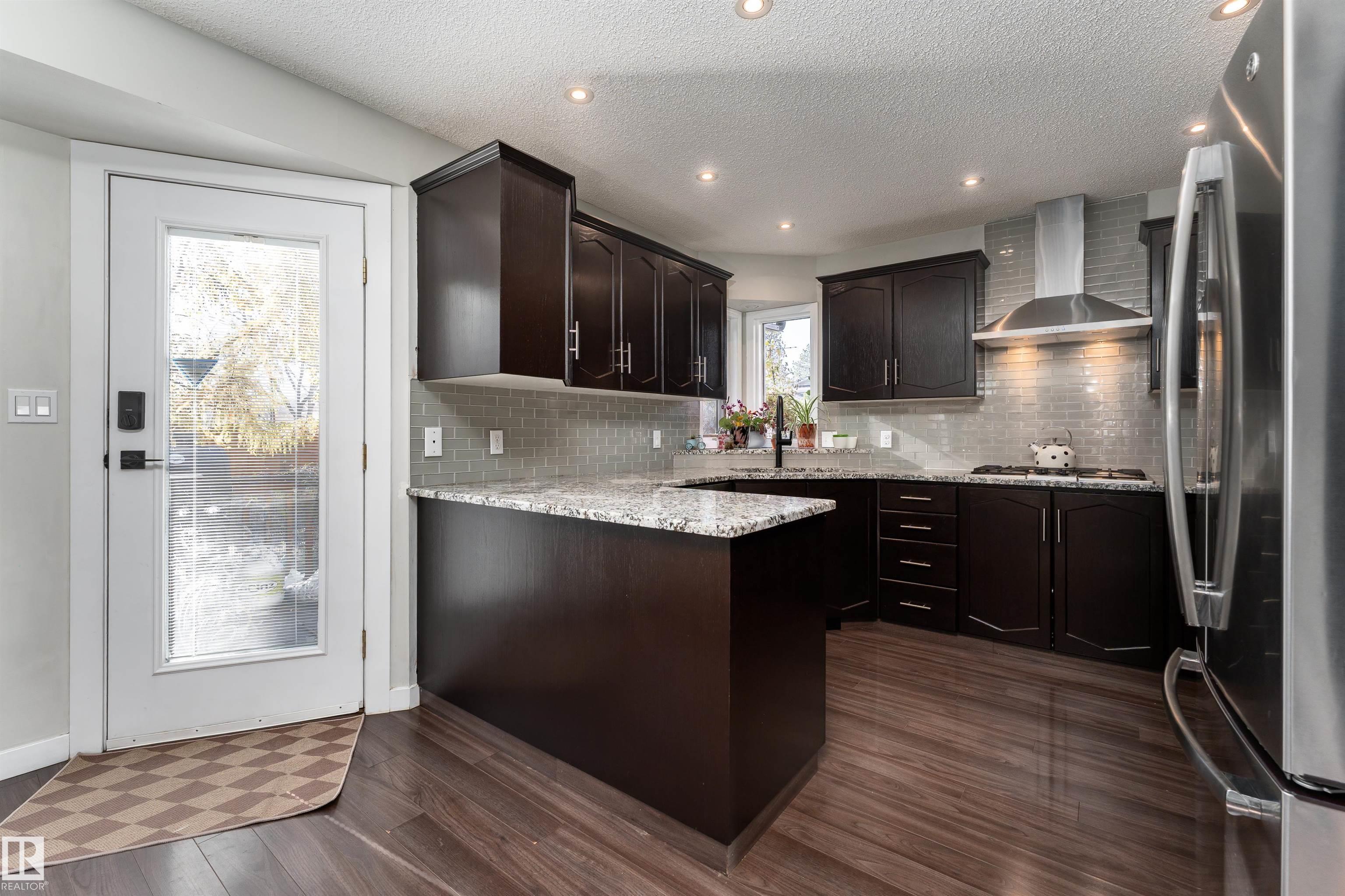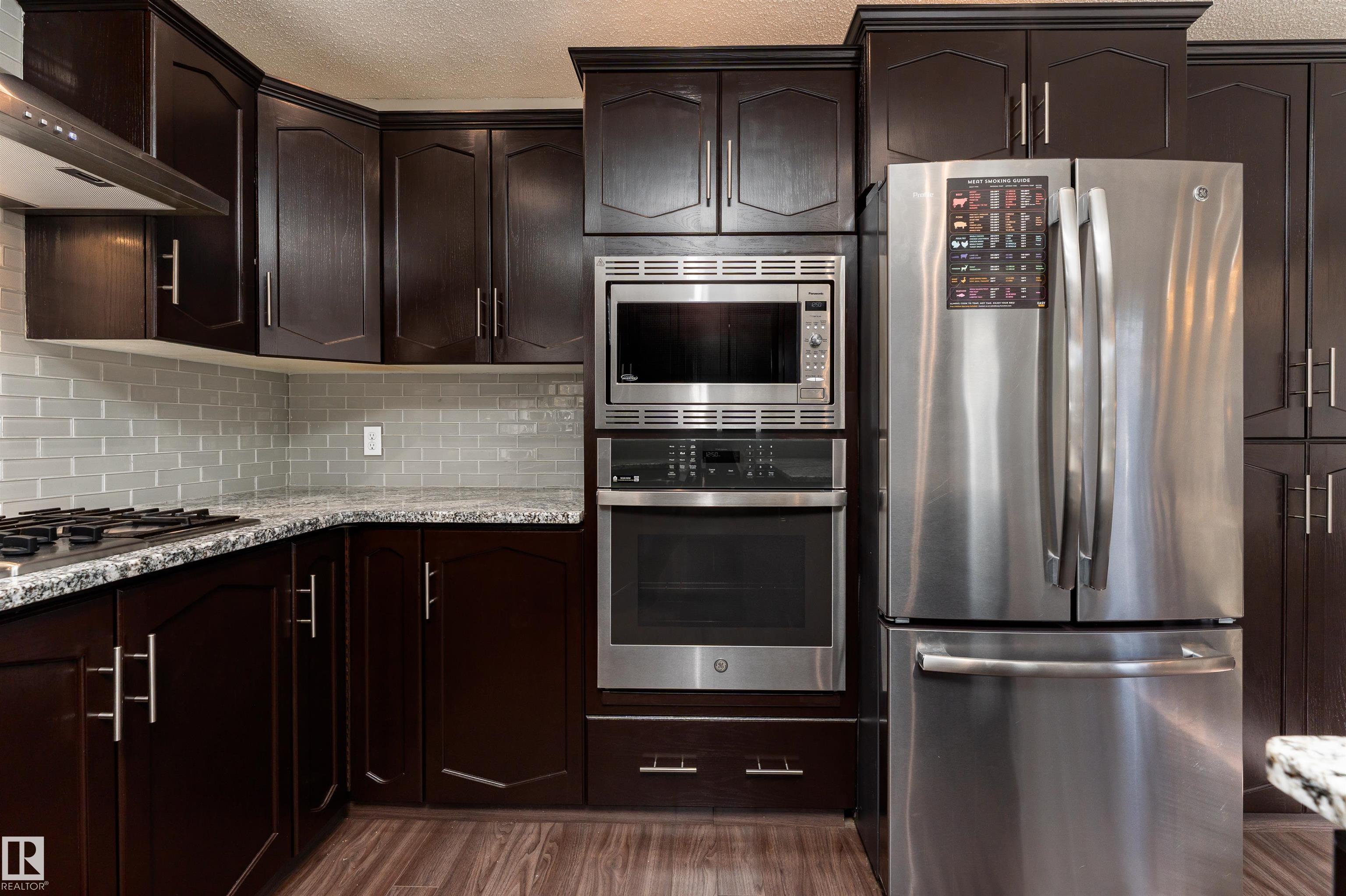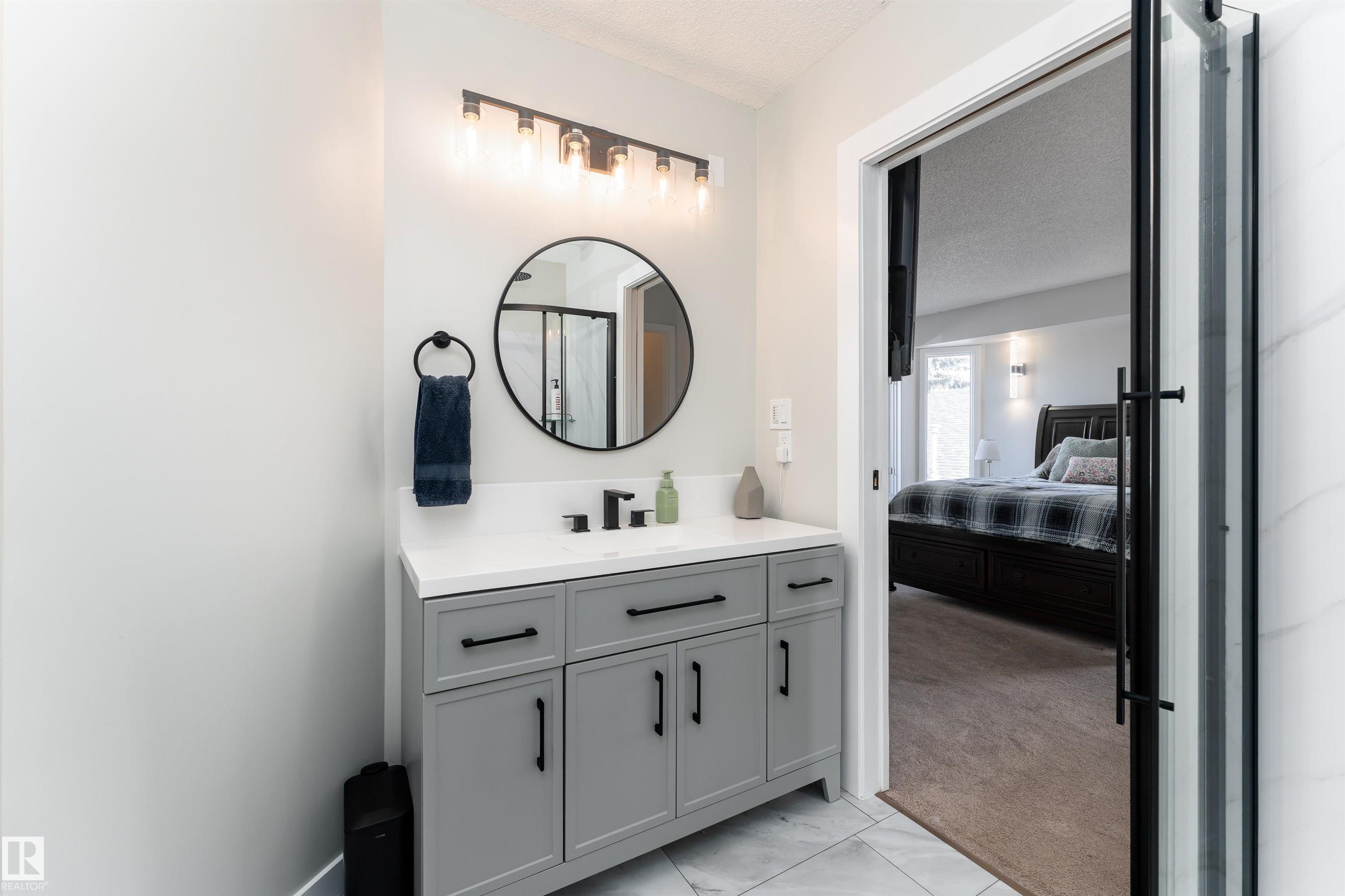 This spacious 1860 sq ft corner-lot home is nestled in the quiet, established community of Clover Bar Ranch and offers exceptional comfort and functionality for family living. The main floor welcomes you with a bright living room, open dining area, and large kitchen featuring stainless steel appliances, a gas cooktop, and plenty of storage. A cozy sunken family room with built-in shelving provides the perfect spot to relax or enjoy movie nights. Upstairs, the primary suite includes a walk-in closet with custom organization and ensuite, while two additional bedrooms and a full bath offer great family space. The finished basement boasts 9 ft ceilings, a large rec room, oversized storage, an extra bedroom, and a full bath. Enjoy a south-facing yard with an oversized deck?ideal for entertaining. Complete with air conditioning, heated double garage, new roof (2024), newer hot water tank, and hardwired security system, this home combines space, comfort, and convenience in an unbeatable location.