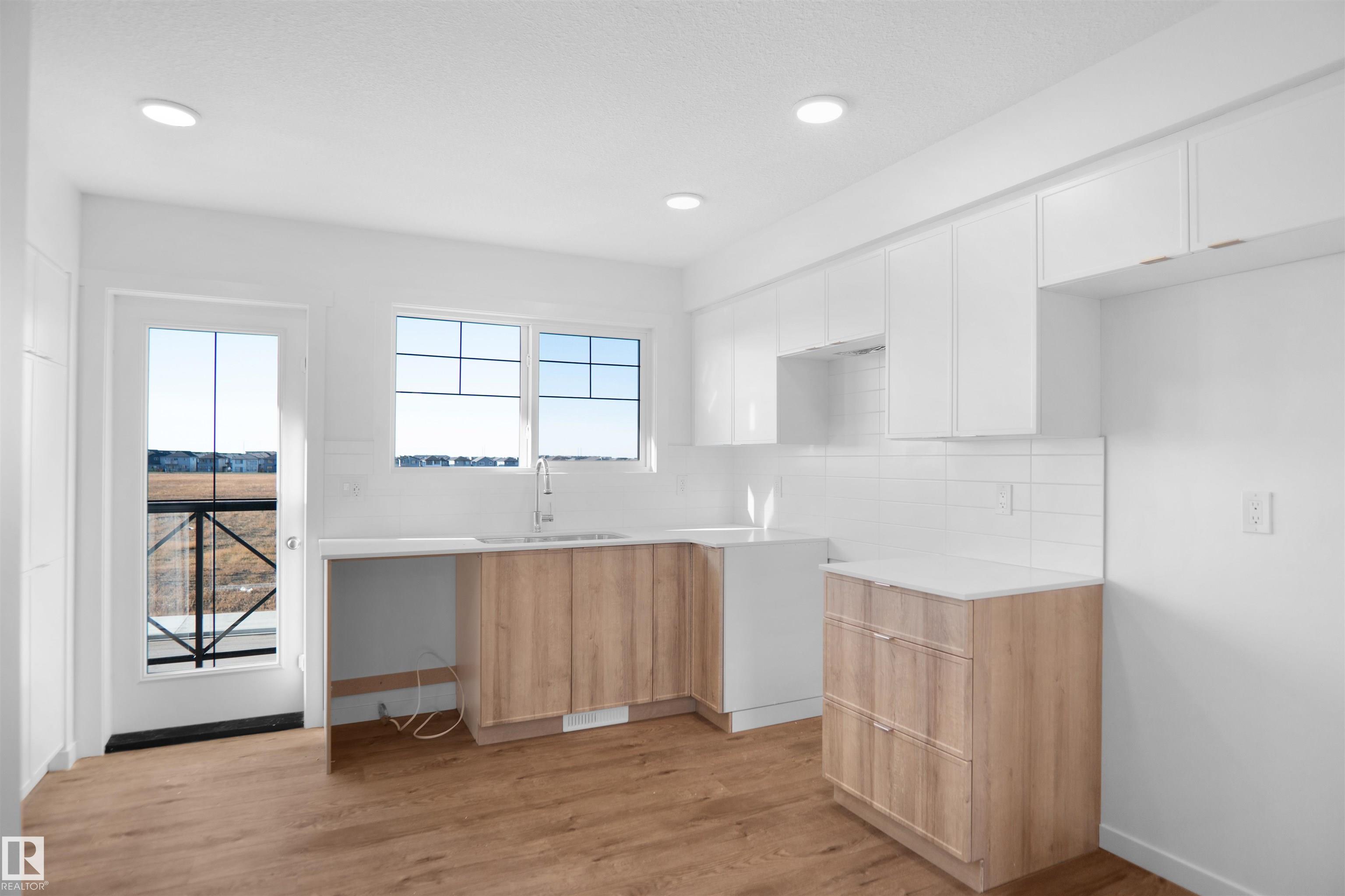 NO CONDO FEES and AMAZING VALUE! You read that right welcome to this brand new townhouse unit the ?Abbey? Built by StreetSide Developments and is located in one of Edmonton's newest premier South East communities of Aster. With almost 1098 square Feet, it comes with front yard landscaping and a single over sized attached garage, this opportunity is perfect for a young family or young couple. Your main floor is complete with upgrade luxury Vinyl Plank flooring throughout the great room and the kitchen. The main entrance/ main floor has a good sized Den that can be also used as a bedroom, it also had a 2 piece bathroom. Highlighted in your new kitchen are upgraded cabinets, upgraded counter tops and a tile back splash. The upper level has 2 bedrooms and 2 full bathrooms. This home is now move in ready!