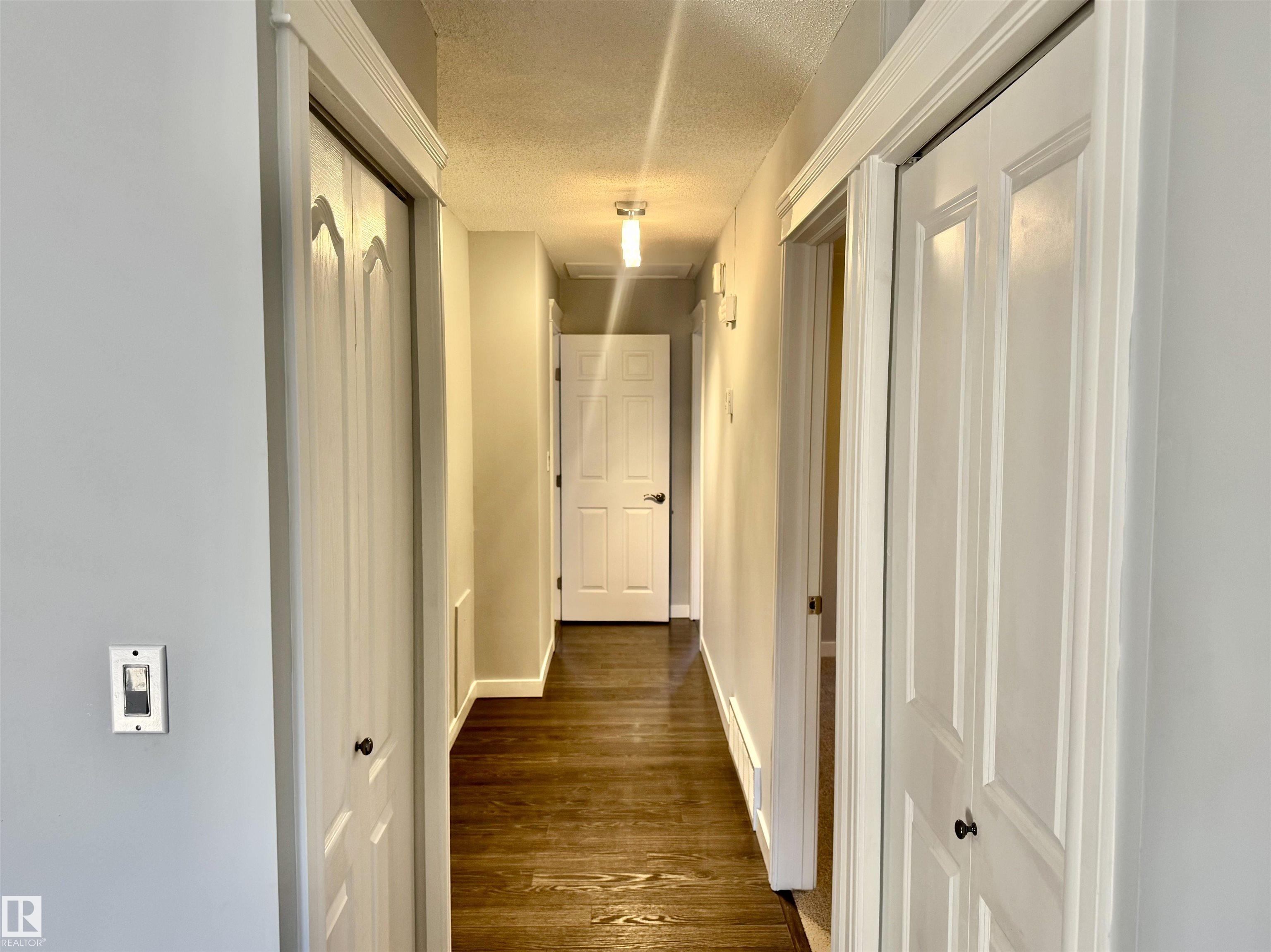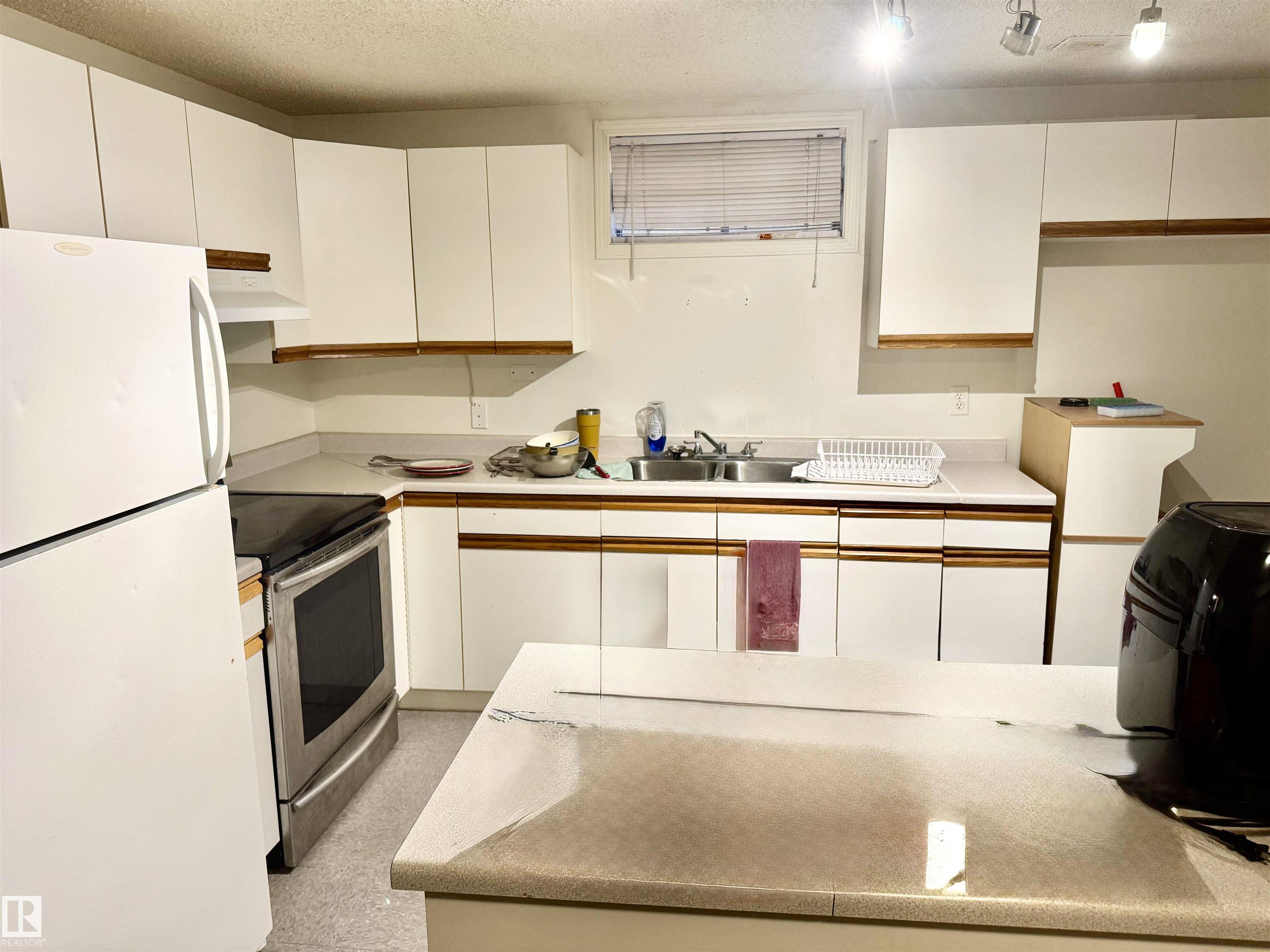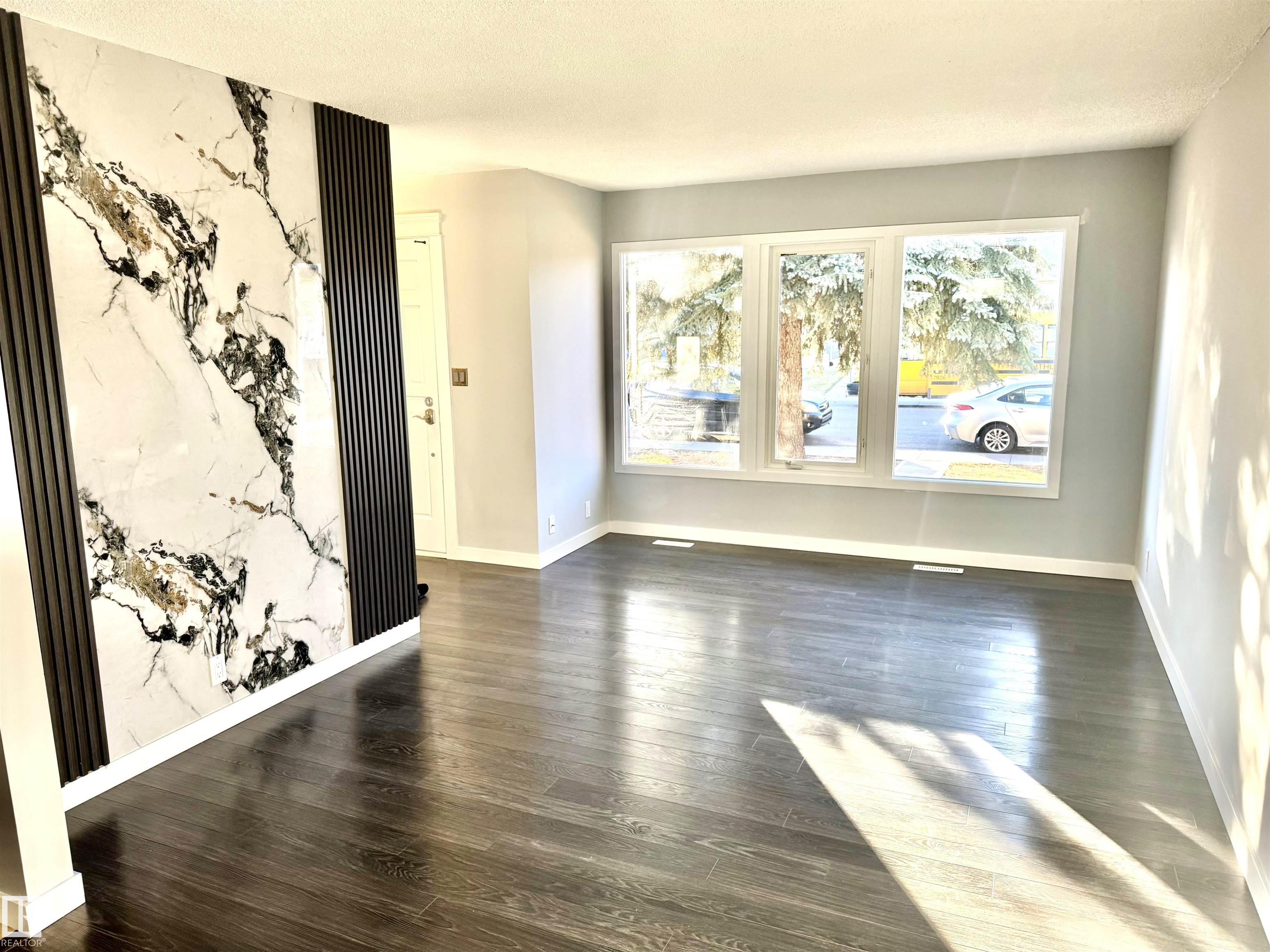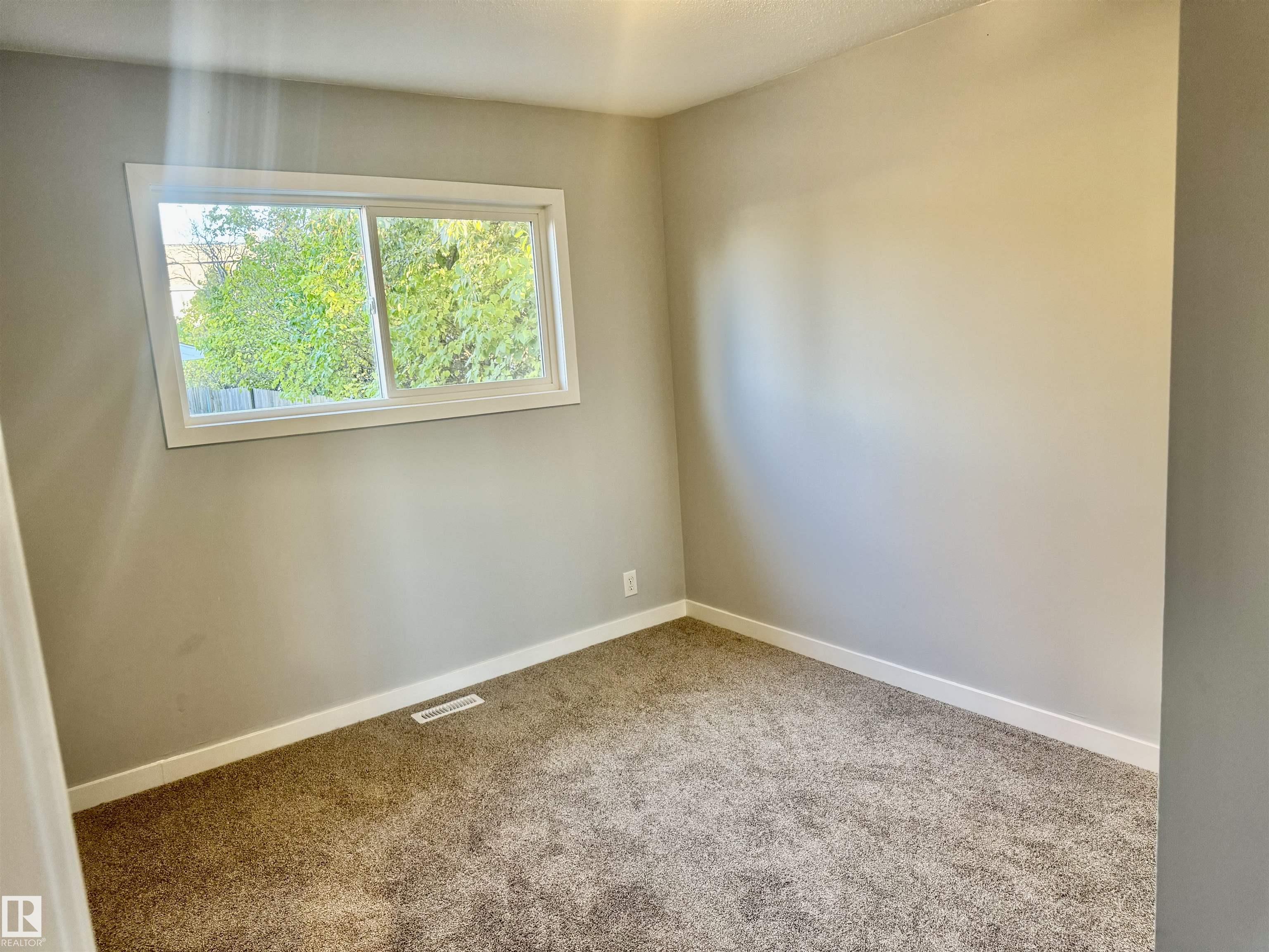 BEAUTIFULLY RENOVATED 1/2 Duplex in "Canora" with a 2nd Basement Kitchen on a Quiet Tree Lined Street * This Freshly Painted property features 3 bedrooms up & 1 Spacious Bedroom down, with 2 Separate Living Rooms & common area laundry room with laundry sink in the finished basement. The upstairs Kitchen has newer Dark maple cabinets with lots of storage, plenty of counterspace and newer appliances. Upgrades include newer windows, new vinyl flooring, new upstairs carpet, and a Stylish freshly updated washroom. The Newer updated lighting fixtures makes this main floor homes Really Modern, Warm & Chic'. Major Improvements to this property include a Hi-Efficiency Furnace, Newer HWT & A DOUBLE GARAGE built within the last 5 - 6 Years. Leading through the Newer Primary Bedroom patio door is a LARGE Patio deck to a fully fenced & private little yard. This Half Duplex is PERFECT for the the Extended Family Needing TWO Kitchens! Quick Possession Available