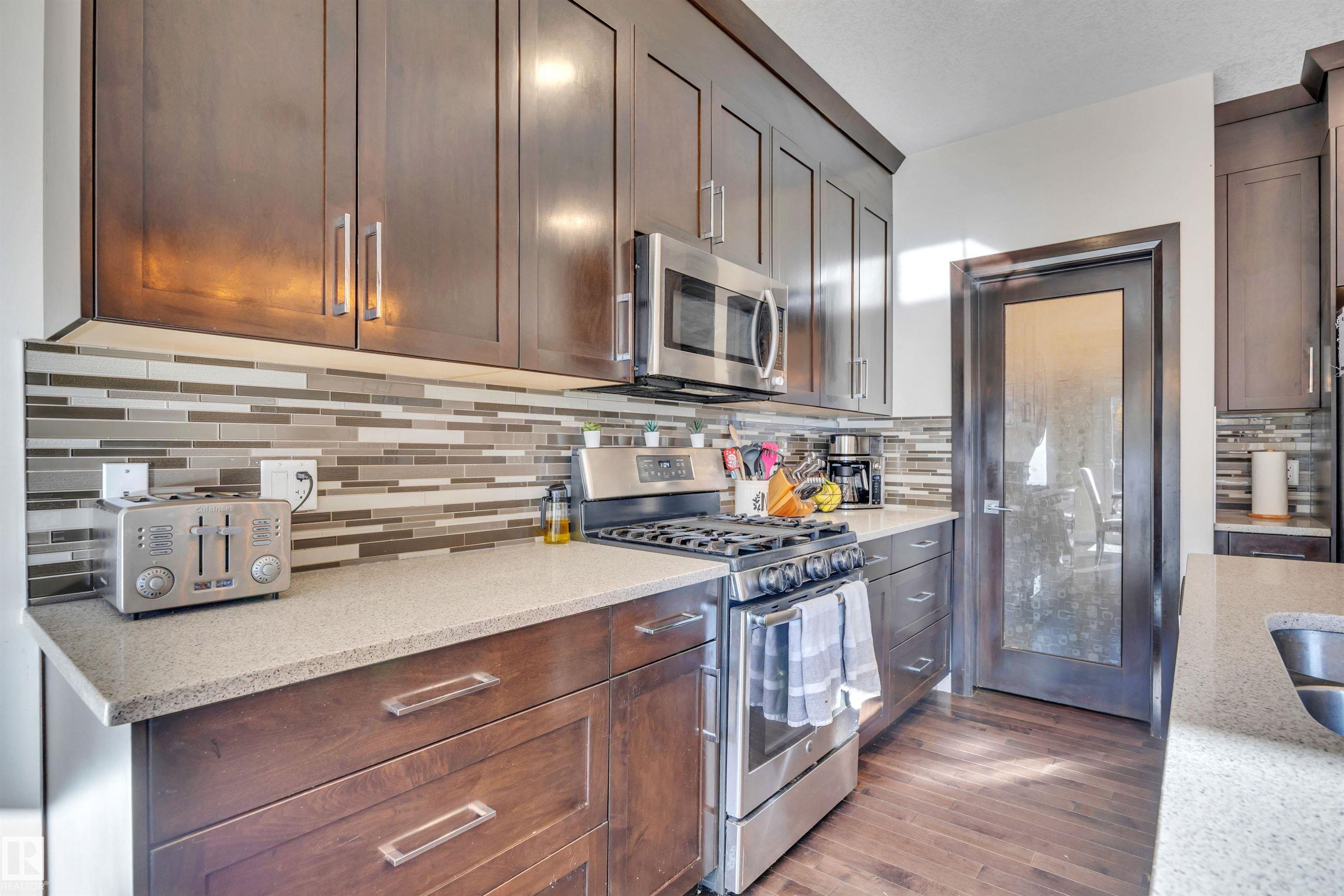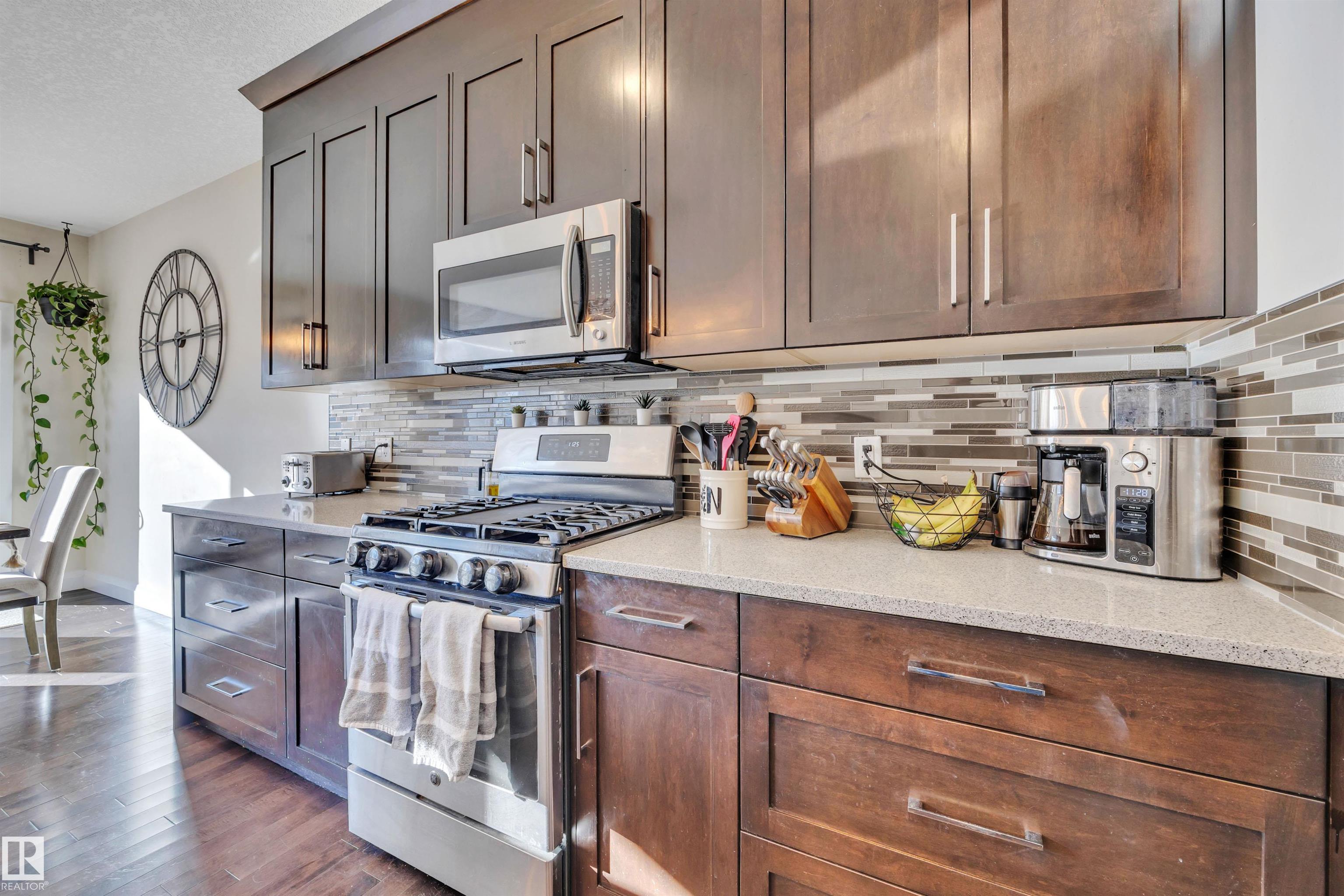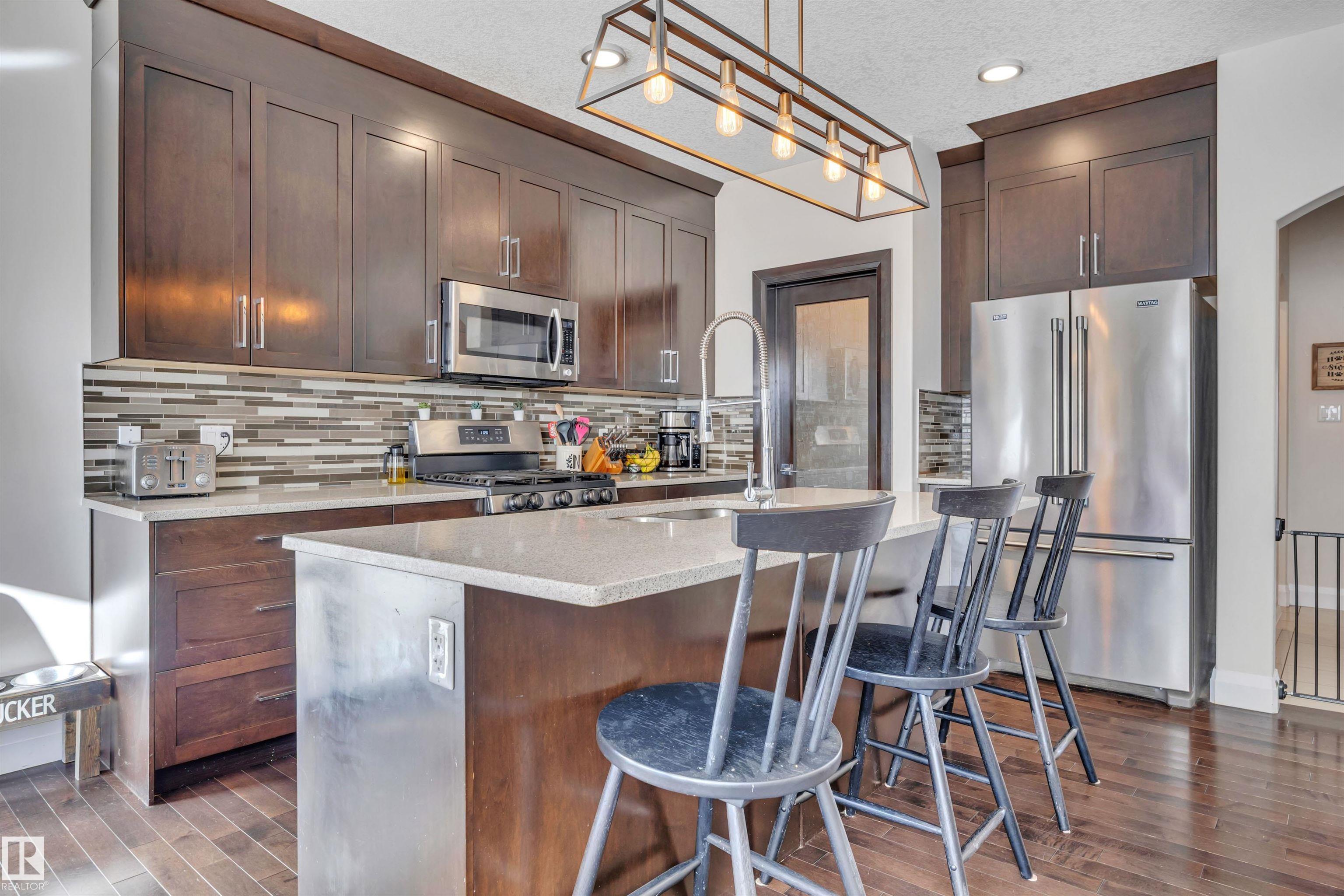 Incredible VALUE! LARGE 1800+sqft half duplex in the beautiful neighborhood of Southfork! 3 bedrooms, 2.5 baths, BONUS ROOM, attached garage, 9FT Ceilings, CENTRAL AC, fully landscaped and fenced. TRULY MOVE-IN READY! Main floor offers high ceilings, open concept living, HARDWOOD floors, BEAUTIFUL STONE-FACING GAS FIREPLACE. HUGE kitchen with GRANITE countertops, tons of cabinetspace, corner pantry and SS appliances. Upgraded light fixtures throughout! Upstairs is the bonus room offering so much more living space for the family. Huge Primary bedroom with a massive WALK-IN closet, 5pc luxurious ensuite with separate W/I shower and soaker tub! 2 more great-sized bedrooms, 4 pc bath and UPSTAIRS laundry complete the upper level. Partially finished basement featuring a bedroom/office, exercise space and more room to make it your own! SOUTH FACING backyard has all of the sun exposure to lounge on the deck and enjoy those beautiful summer/fall days! MOVE-IN and enjoy, tons of VALUE!!