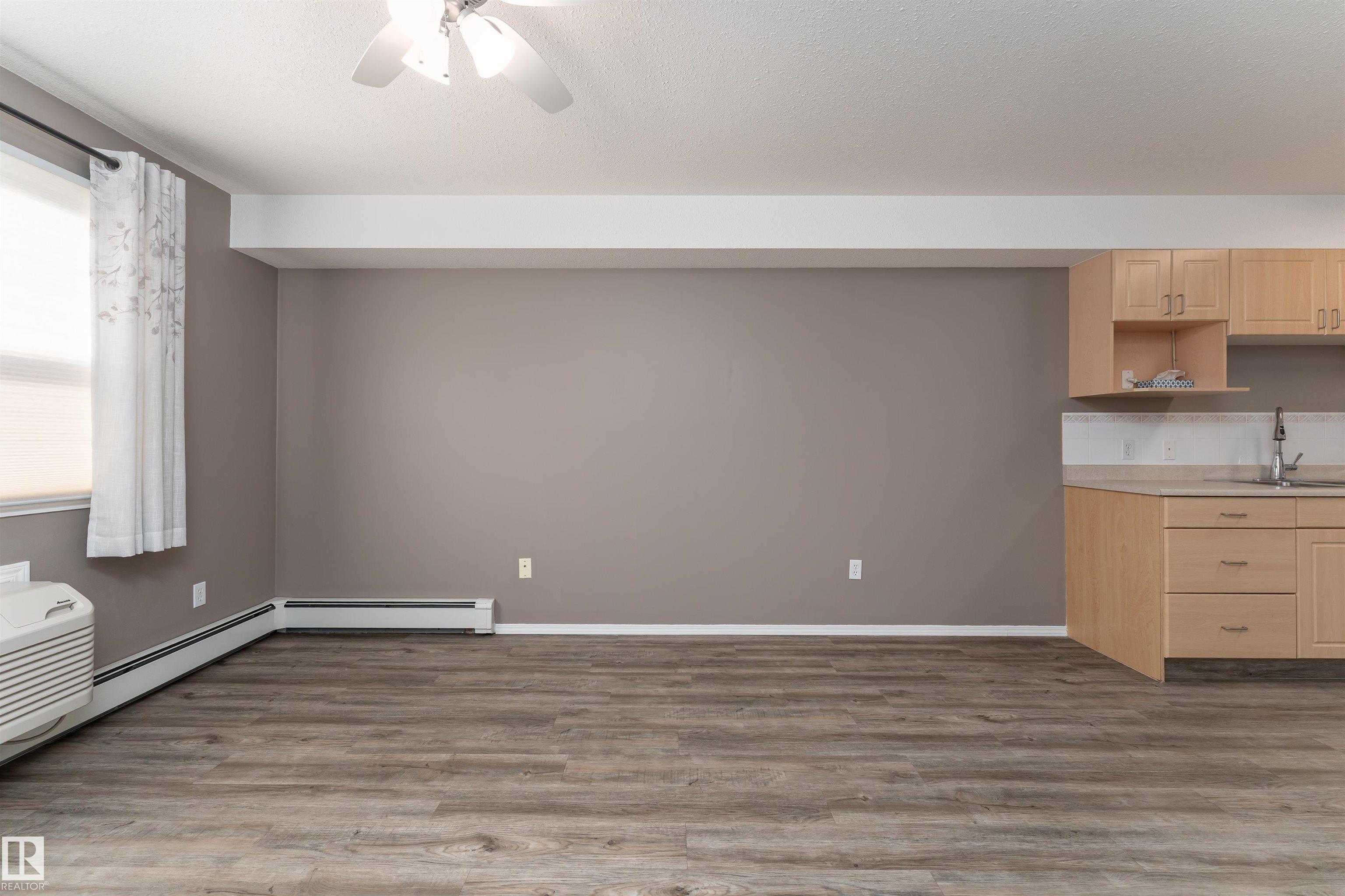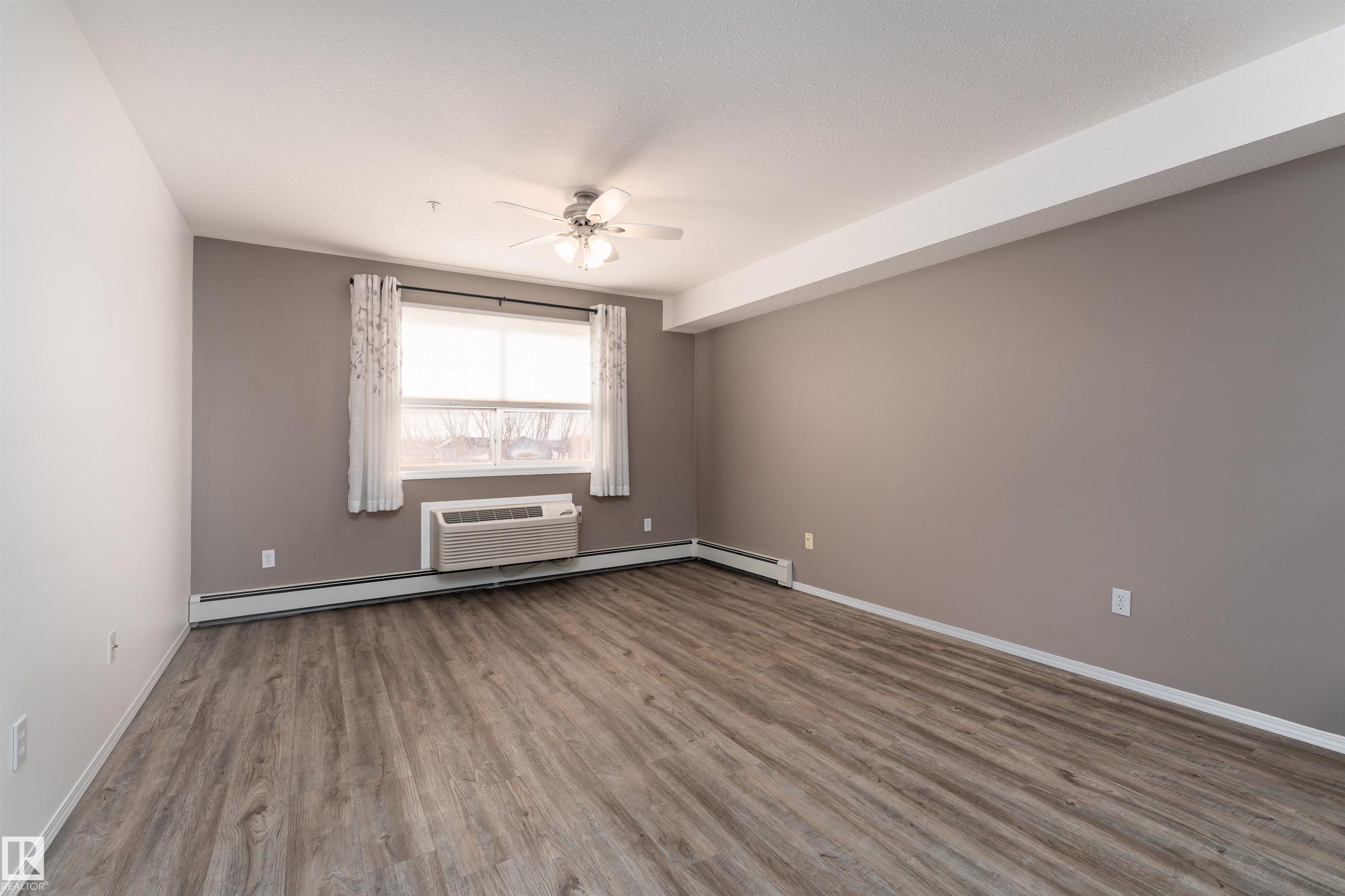 Located on the third floor of The Gardens (Southfort) condo complex, this air-conditioned one-bedroom plus den unit offers 771 sq/ft of comfortable living space. The southeast-facing layout features a bright den, a cozy kitchen overlooking the living room, a 3-piece bathroom with a convenient sit-down shower, a storage room, and ample closet space throughout. Easy-care luxury vinyl plank flooring adds warmth and style to the home and this home is wheel chair accessible. Residents of The Gardens enjoy access to a variety of on-site amenities, including a dining room, games room, fitness room, hair salon, chapel, guest suite, and same-floor laundry facilities.