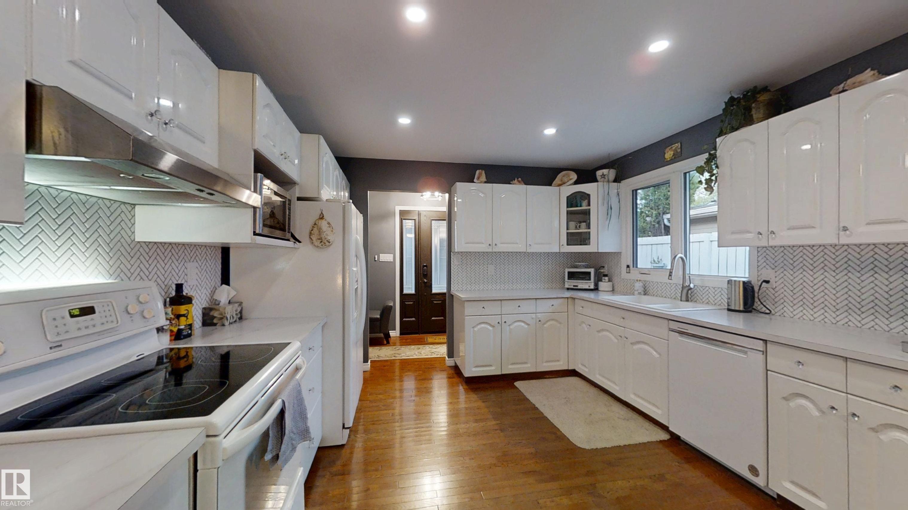 ABSOLUTELY STUNNING home in the prestige neighborhood of Leduc Estates. WOW, must see this lot/yard, beautiful newly landscaped, fruit tree/shrubs, & the PATIO, gorgeous stamped concrete, huge deck! Tons of modern upgrades, rich hardwood floors on main level, lrg living room, huge bright kitchen, gorgeous windows, tons of natural light, newer countertops, new (rare) white composite sink, new inside doors & spacious dining area. 4 bedrooms, 3 bathrooms, fully finished with tons of storage! The upper level has a master suite is c/w new flex room, a lrg ensuite, picturesque windows, plus another bedroom & full 5pc bath, newly renovated. A cozy family room with free standing gas fireplace, 2 more generously sized bedrooms, another renovated bathroom, plus huge laundry space & TONS of storage. This is a must see, Fred John's park/reservoir a couple steps away, quiet, mature sought-after neighborhood! Dbl heated garage, 220amp, newer furnace/HWT, roof & R60 insulation, all major renos complete! Move in ready!