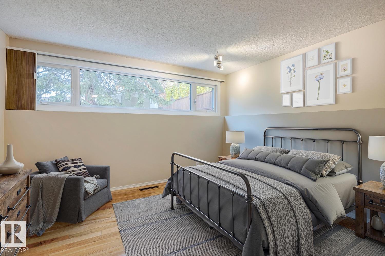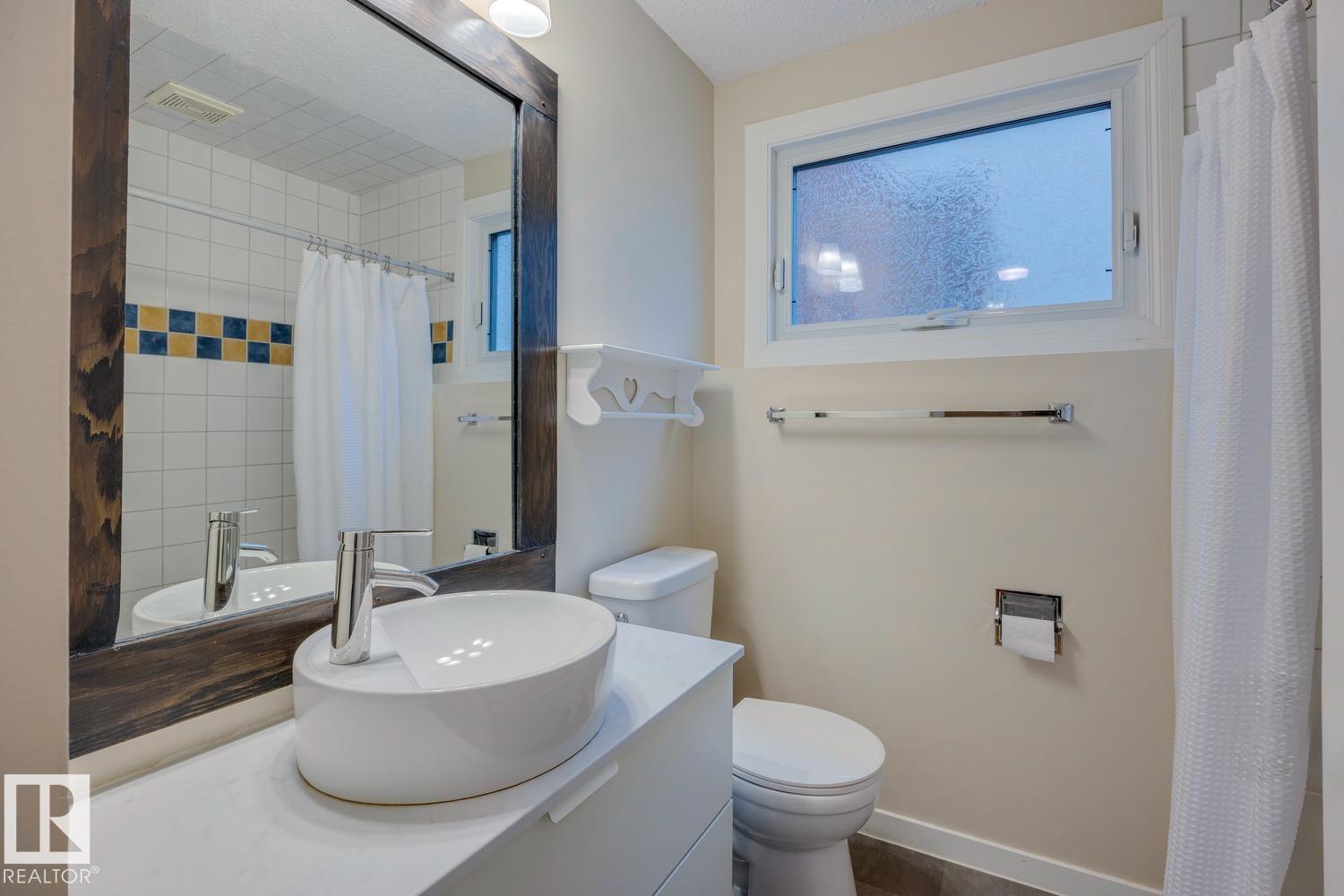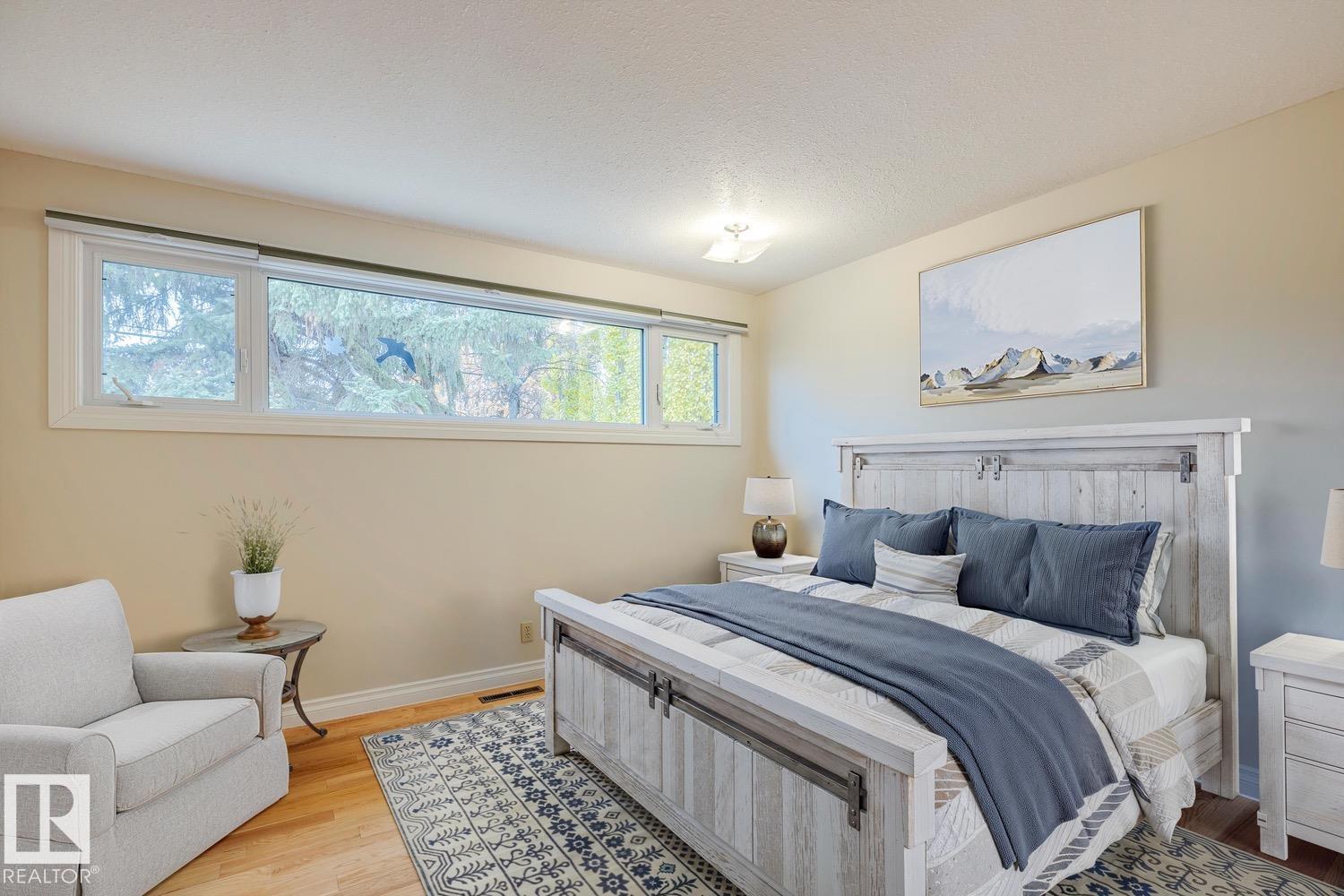 Terrific family home located in the desirable community of Rio Terrace! This unique 4-level split is located on a very quiet street, sits upon a beautiful 6300+ sqft lot, offers 1900+ sqft of living space, 4 total bedrooms, 2 full baths, and has undergone major renovations! The main floor features a spacious floor plan, great kitchen w/s.s. appliances and granite counters, open beam living area w/lavish fireplace, and formal dining. Upstairs you will find 2 good sized bedrooms and full bath. The lower level offers 2 additional bedrooms and additional full bath. The fully finished basement features a huge rec area and storage space. Outside you will enjoy the very private yard and mature landscaping. Extensive renovations include: newer kitchen, windows, roof, flooring, furnace, electrical, appliances, paint, exterior, driveway, landscaping, and much more! Located steps to great schools, public transit, close proximity to the University of Alberta and downtown. Great opportunity in a great area!