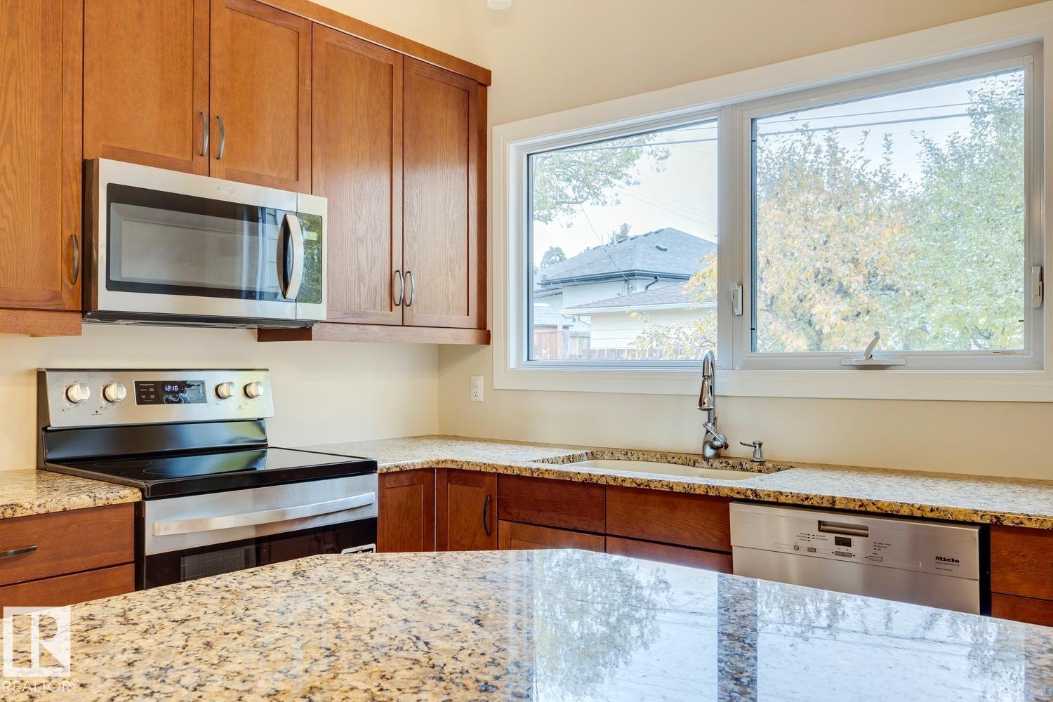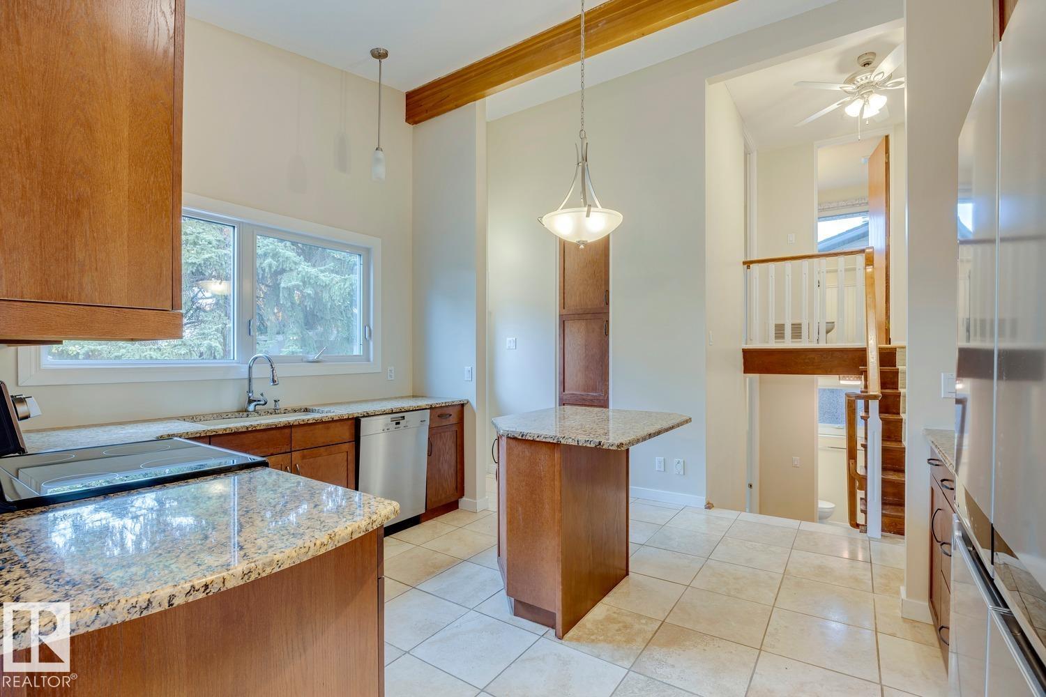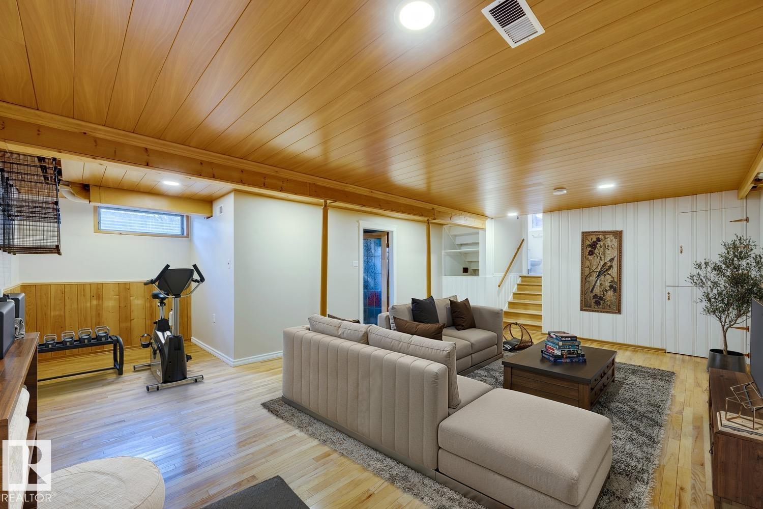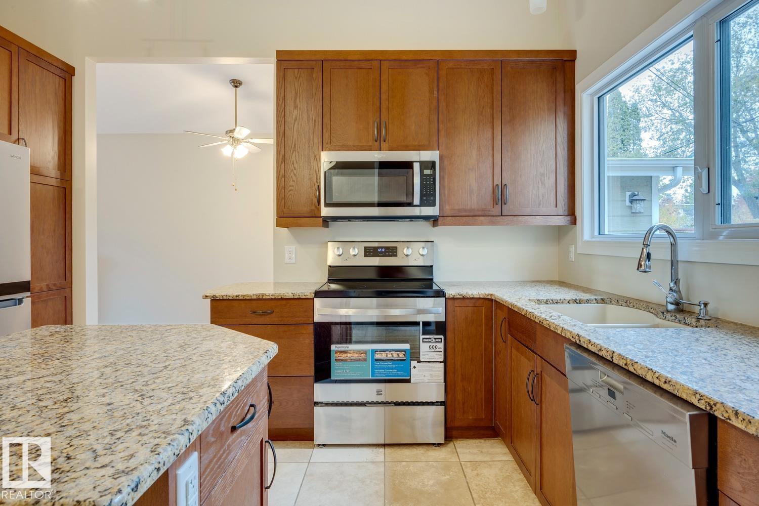 Terrific family home located in the desirable community of Rio Terrace! This unique 4-level split is located on a very quiet street, sits upon a beautiful 6300+ sqft lot, offers 1900+ sqft of living space, 4 total bedrooms, 2 full baths, and has undergone major renovations! The main floor features a spacious floor plan, great kitchen w/s.s. appliances and granite counters, open beam living area w/lavish fireplace, and formal dining. Upstairs you will find 2 good sized bedrooms and full bath. The lower level offers 2 additional bedrooms and additional full bath. The fully finished basement features a huge rec area and storage space. Outside you will enjoy the very private yard and mature landscaping. Extensive renovations include: newer kitchen, windows, roof, flooring, furnace, electrical, appliances, paint, exterior, driveway, landscaping, and much more! Located steps to great schools, public transit, close proximity to the University of Alberta and downtown. Great opportunity in a great area!