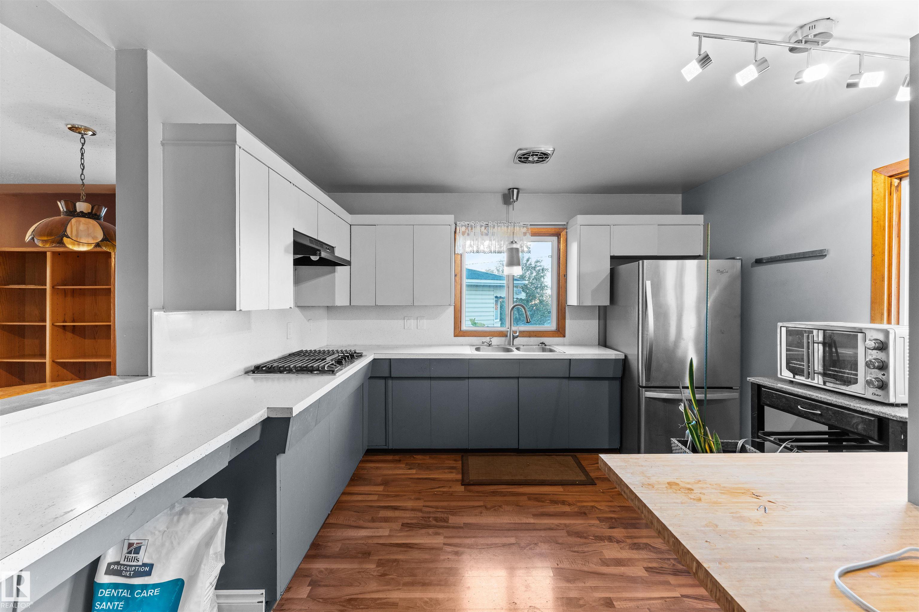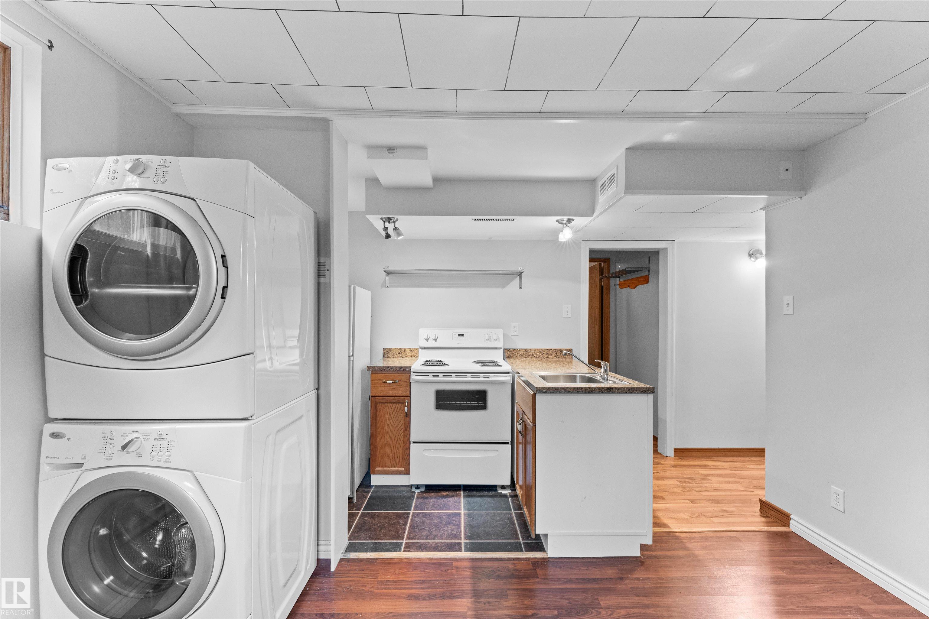 This spacious 3+4 bedroom bungalow offers an incredible home for a growing family or multi-generational living. Over the years, many upgrades have been completed, including electrical, plumbing, heating, insulation, newer flooring, shingles, furnace, hot water tank, bathrooms & more. The bright, open kitchen flows nicely into a huge living room & a good-sized dining area. Main floor has 3 comfortable bedrooms, a 3 pc bathroom, and a two-piece ensuite with conveniently located laundry in the master suite. The fully finished lower level includes two kitchens, two bedrooms, a den, a family room, a bonus room, & 2 bathrooms ? perfect for extended family or in-law living. Outside, you?ll find an oversized double garage plus a concrete pad for extra parking or RV storage. The large lot sits on a crescent surrounded by mature trees. Close to the University of Alberta, Whyte Avenue, schools, public transit, & an approximate five-minute drive to the up-and-coming Rollie Miles Rec Center!