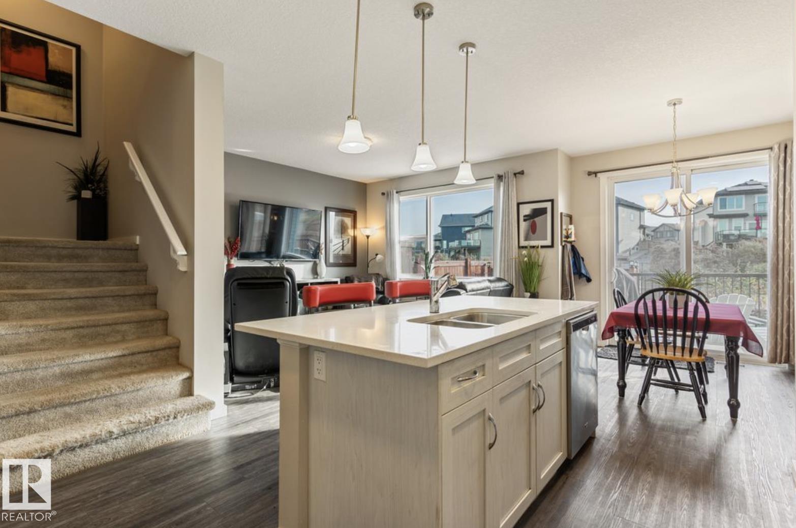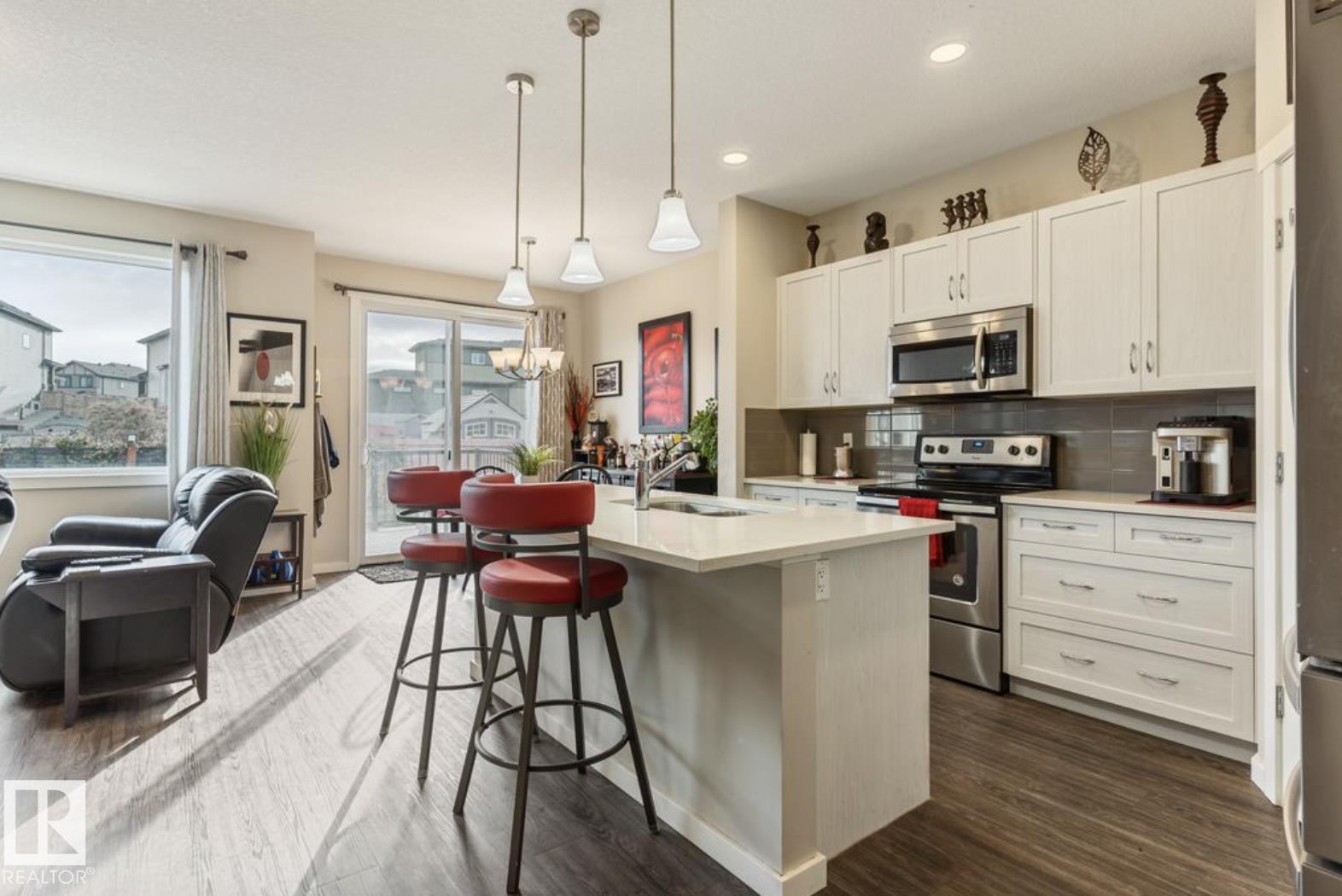 Welcome to this stunning 3-bedroom, 3-bath half duplex in the desirable community of Trumpeter, offering over 1,600 sq. ft. of modern living space and a fully insulated double-car garage. The main floor features 9-ft ceilings throughout and a bright open-concept design that seamlessly connects the kitchen, dining area, and living room, along with a convenient main-floor washroom. The kitchen impresses with snowy white quartz countertops and elegant beige cabinetry, creating a perfect blend of warmth and sophistication. Upstairs you?ll find two additional bathrooms, three spacious bedrooms with ample closet space, and a versatile bonus room ideal for family entertainment or a home office. The professionally landscaped yard offers a sizeable deck and hot tub, providing the perfect space to relax and unwind. This home combines style, comfort, and functionality in one of Edmonton?s most sought-after neighbourhoods.