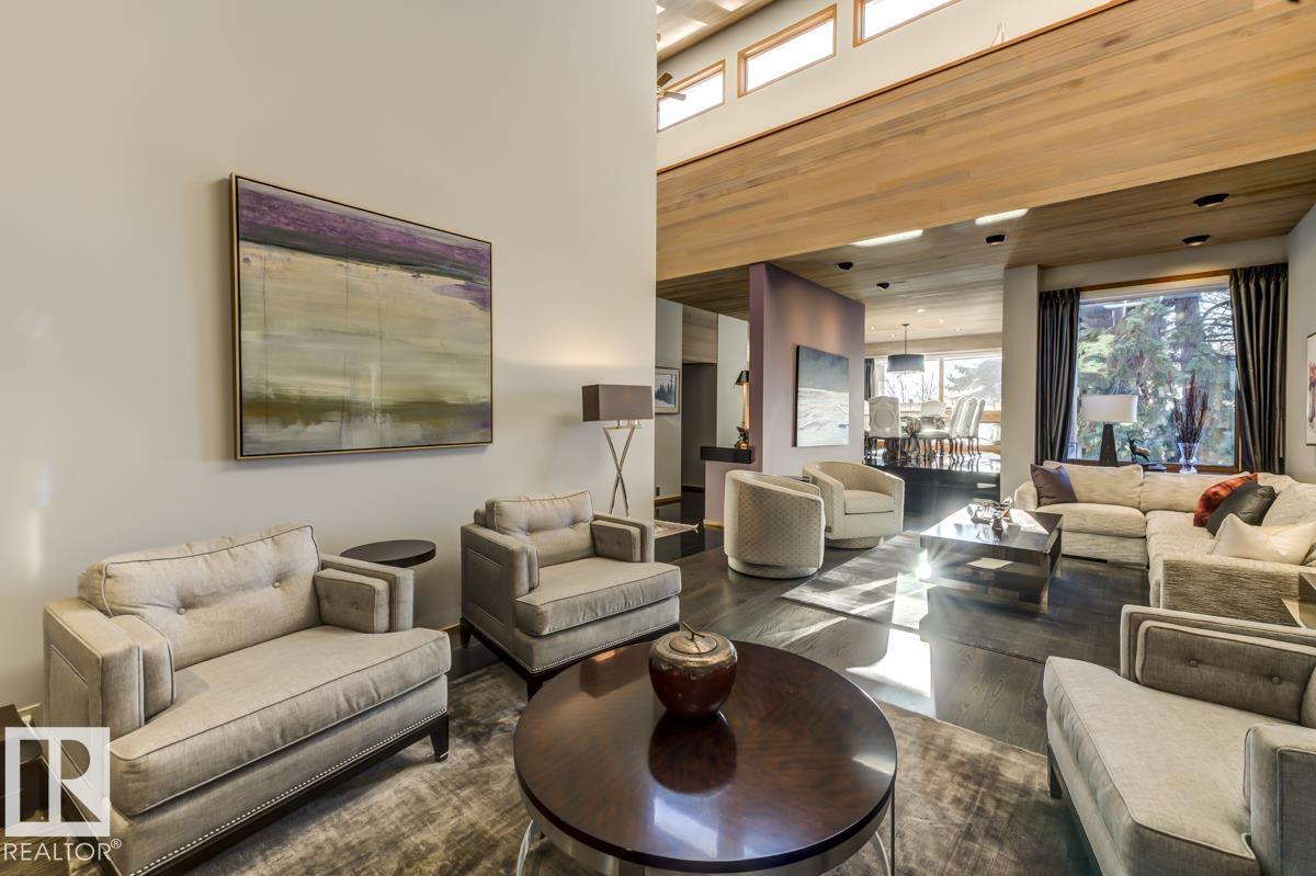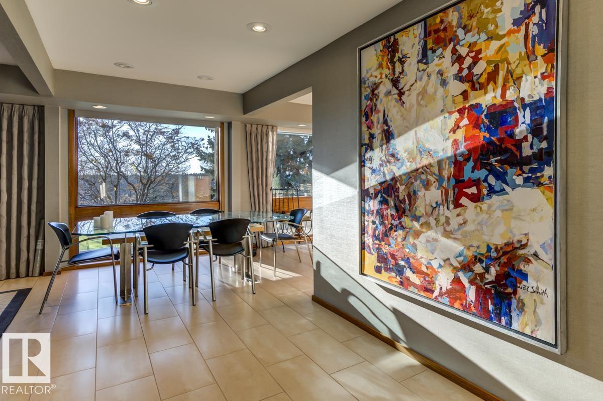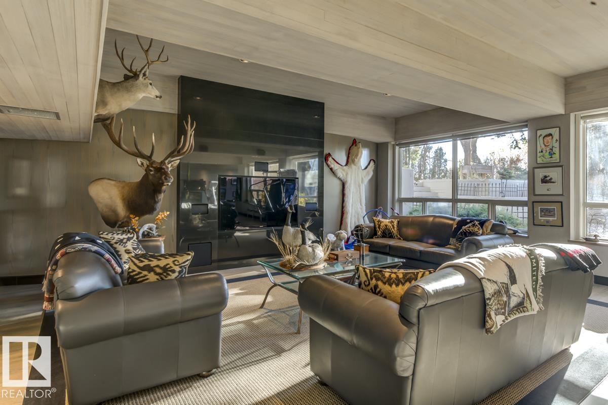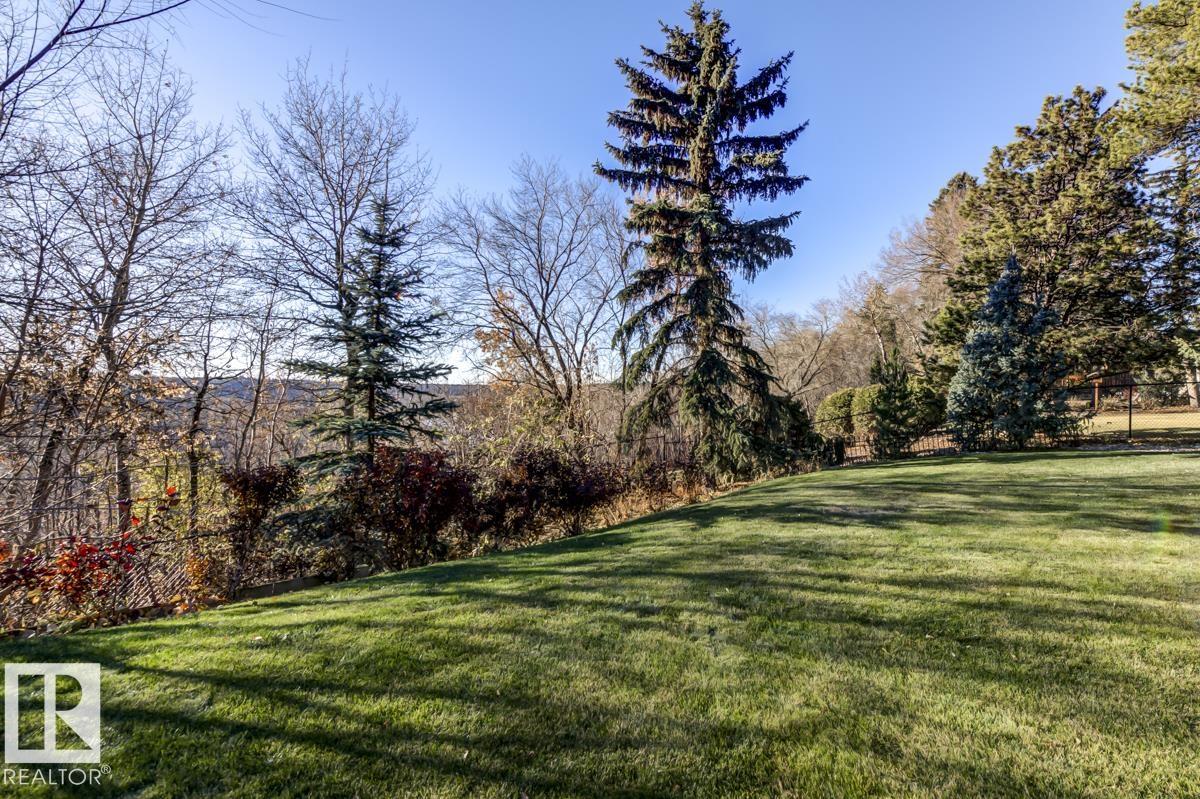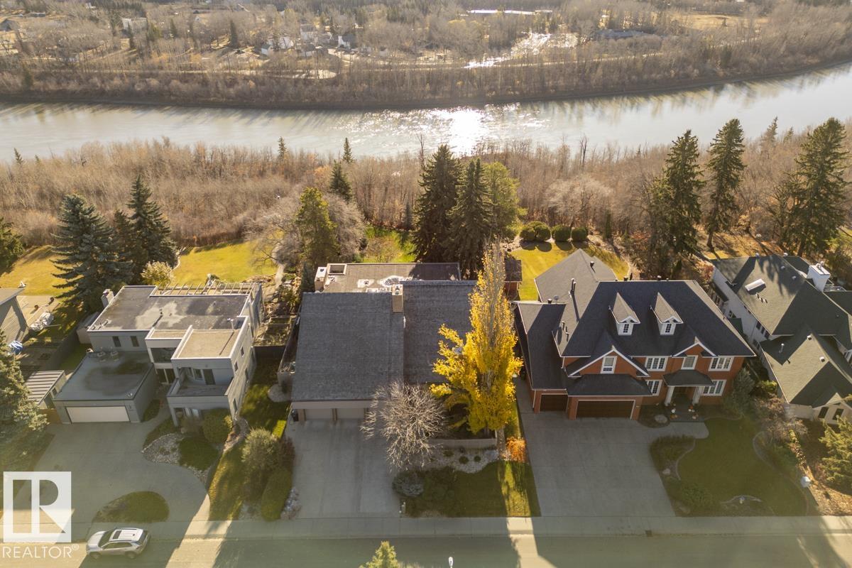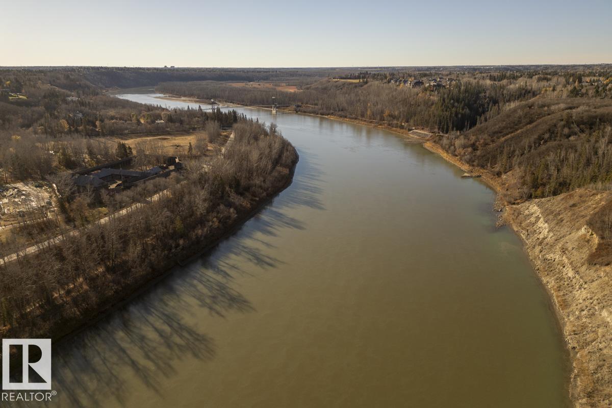 Discover an unparalleled opportunity to own in one of Edmonton?s most coveted river valley locations. This exceptional 6,581 sq.ft (total sq.ft) home rests on an expansive 11,990 sq.ft lot with panoramic views that rarely come to market. Every space captures the beauty of its surroundings, from the vaulted living room with wood-burning fireplace to the chef?s dream kitchen and elegant dining & family rooms. The main floor is designed for both comfort & entertaining, while the upper level showcases a luxurious primary suite with marble steam shower, walk-in closet, & serene river views. Four additional bedrooms, including one with a private balcony, offer room for family & guests. The WALKOUT basement features a spacious rec room with kitchenette, gorgeous wood-paneled office, and a 3pc bath with steam shower. Blending extensive upgrades with timeless craftsmanship, this rare offering invites you to live immersed in the beauty and tranquility of Edmonton?s river valley?where every day feels like a retreat.