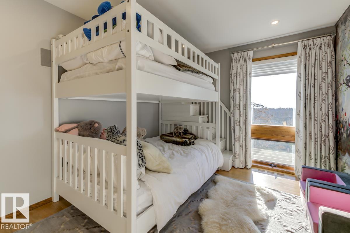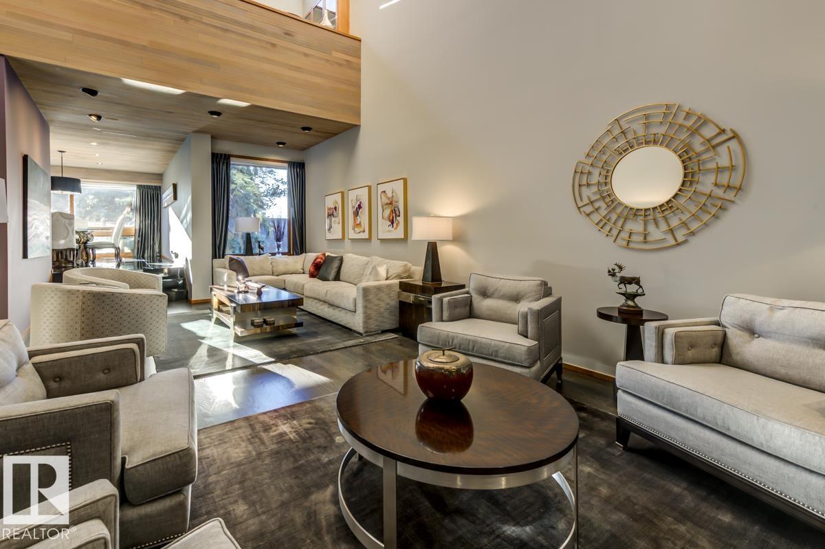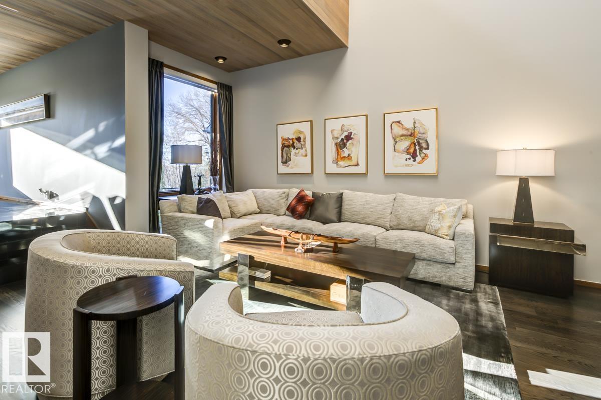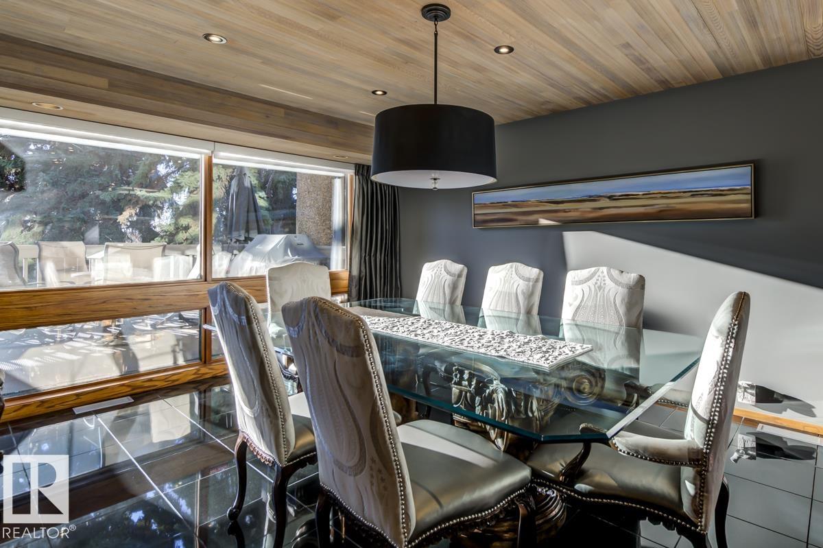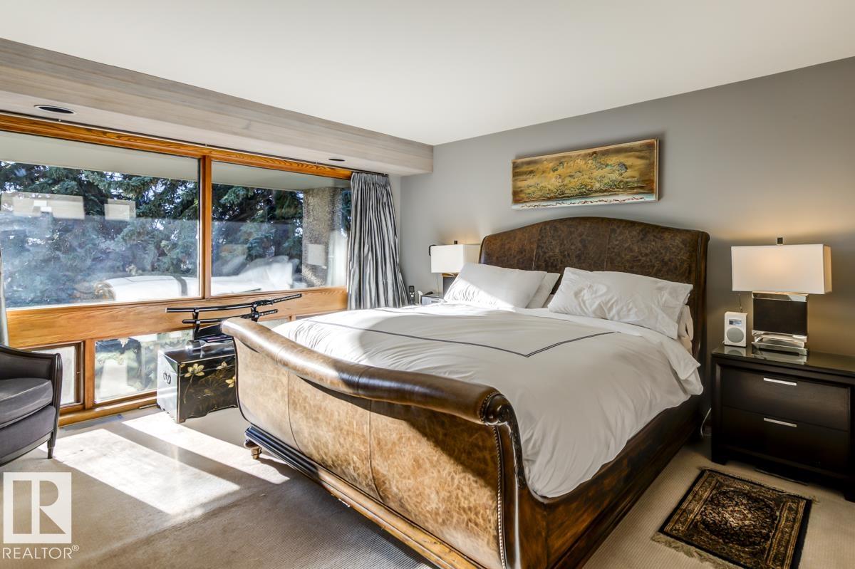 Discover an unparalleled opportunity to own in one of Edmonton?s most coveted river valley locations. This exceptional 6,581 sq.ft (total sq.ft) home rests on an expansive 11,990 sq.ft lot with panoramic views that rarely come to market. Every space captures the beauty of its surroundings, from the vaulted living room with wood-burning fireplace to the chef?s dream kitchen and elegant dining & family rooms. The main floor is designed for both comfort & entertaining, while the upper level showcases a luxurious primary suite with marble steam shower, walk-in closet, & serene river views. Four additional bedrooms, including one with a private balcony, offer room for family & guests. The WALKOUT basement features a spacious rec room with kitchenette, gorgeous wood-paneled office, and a 3pc bath with steam shower. Blending extensive upgrades with timeless craftsmanship, this rare offering invites you to live immersed in the beauty and tranquility of Edmonton?s river valley?where every day feels like a retreat.