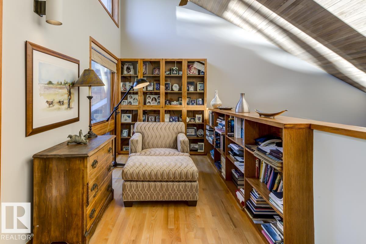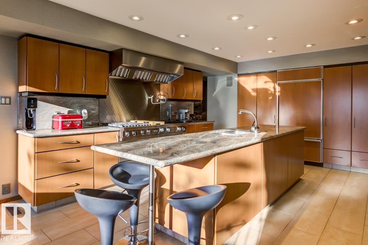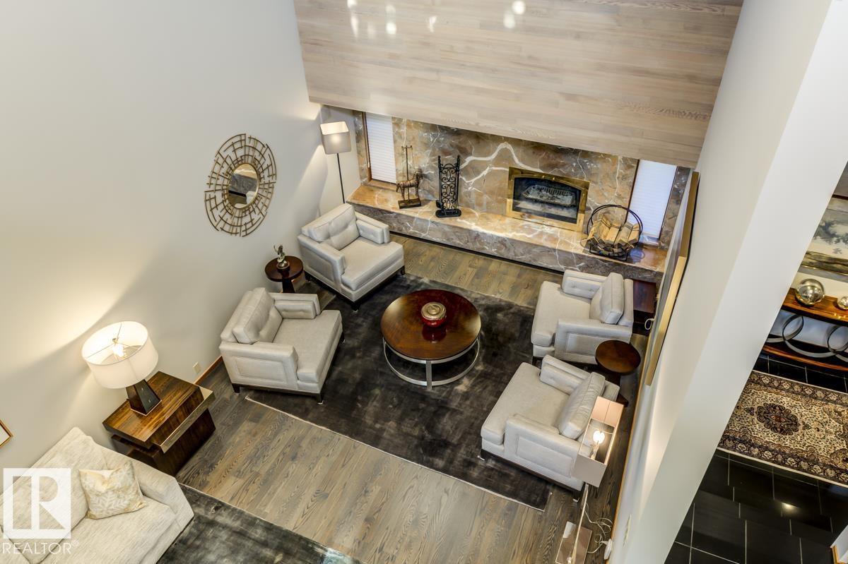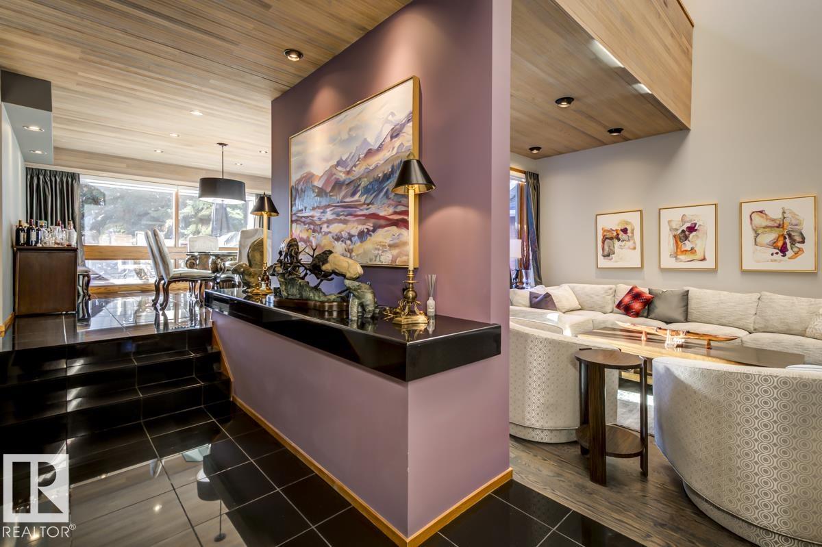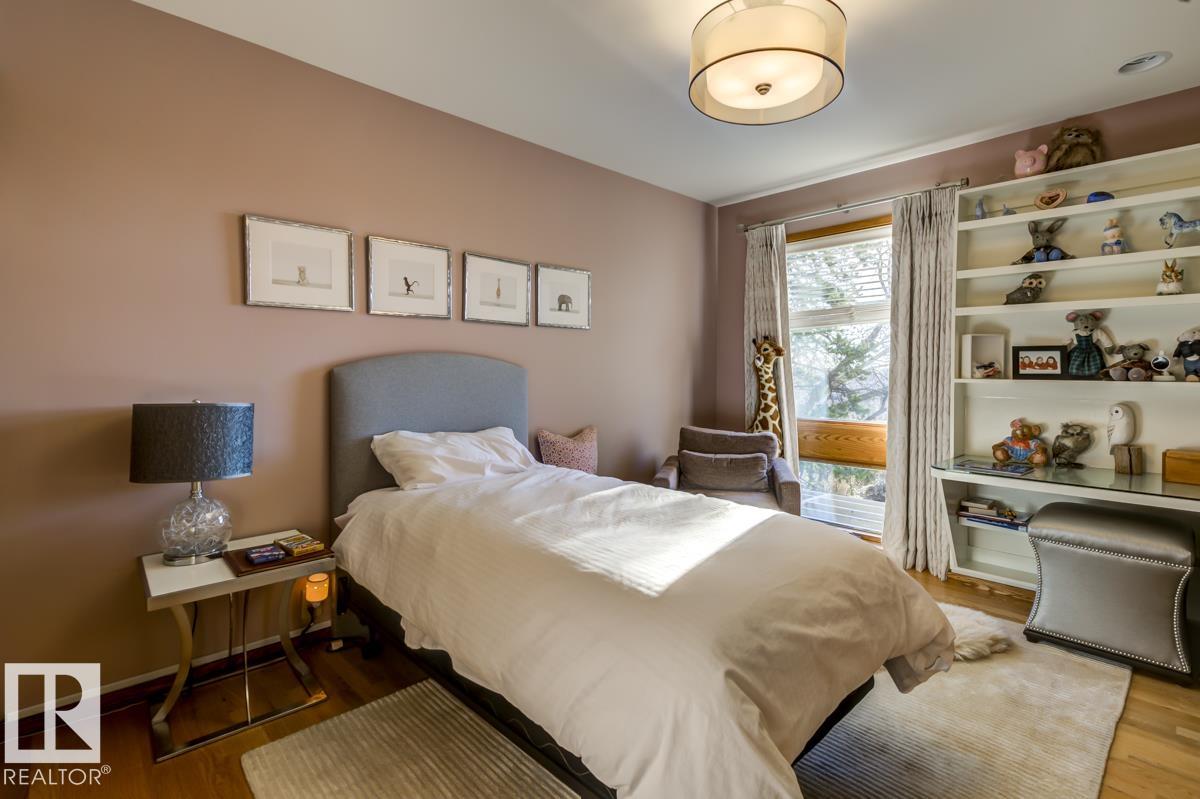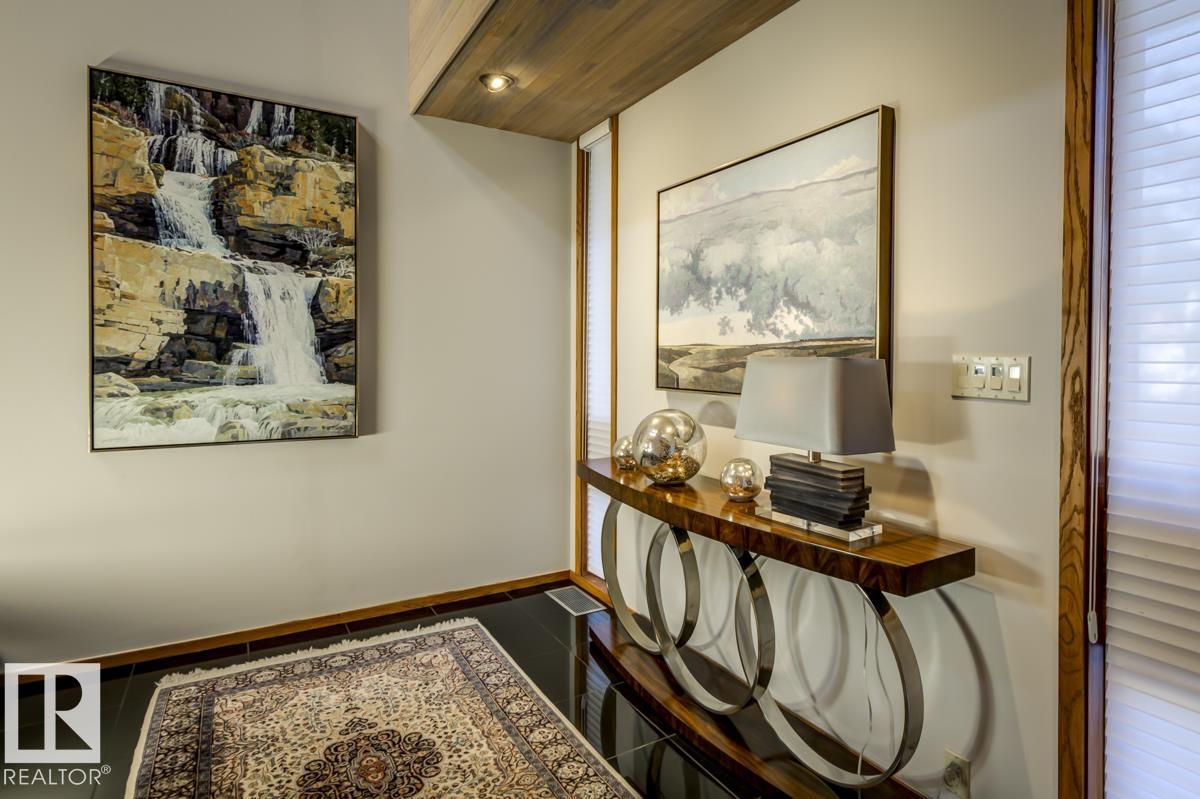 Discover an unparalleled opportunity to own in one of Edmonton?s most coveted river valley locations. This exceptional 6,581 sq.ft (total sq.ft) home rests on an expansive 11,990 sq.ft lot with panoramic views that rarely come to market. Every space captures the beauty of its surroundings, from the vaulted living room with wood-burning fireplace to the chef?s dream kitchen and elegant dining & family rooms. The main floor is designed for both comfort & entertaining, while the upper level showcases a luxurious primary suite with marble steam shower, walk-in closet, & serene river views. Four additional bedrooms, including one with a private balcony, offer room for family & guests. The WALKOUT basement features a spacious rec room with kitchenette, gorgeous wood-paneled office, and a 3pc bath with steam shower. Blending extensive upgrades with timeless craftsmanship, this rare offering invites you to live immersed in the beauty and tranquility of Edmonton?s river valley?where every day feels like a retreat.