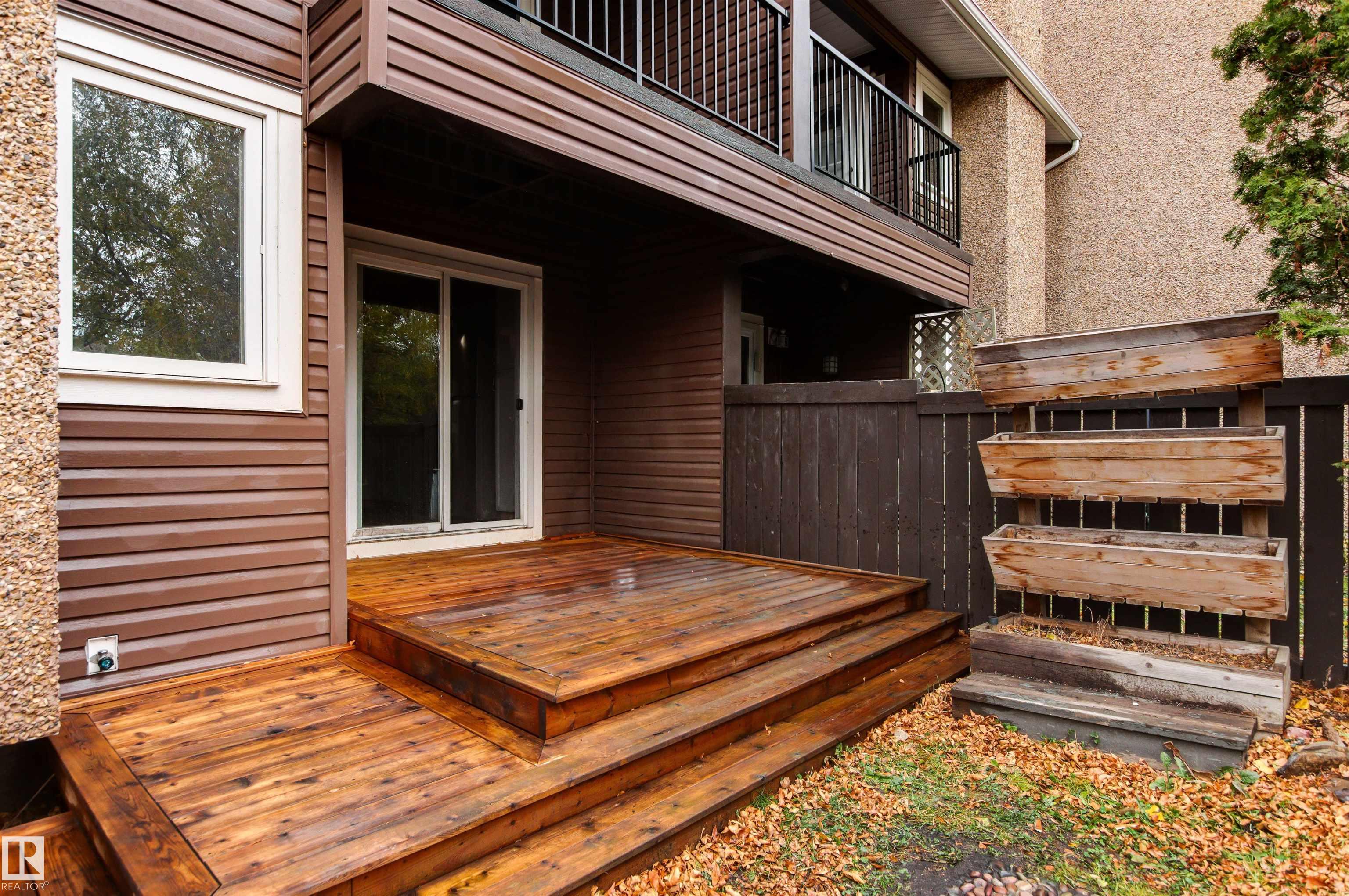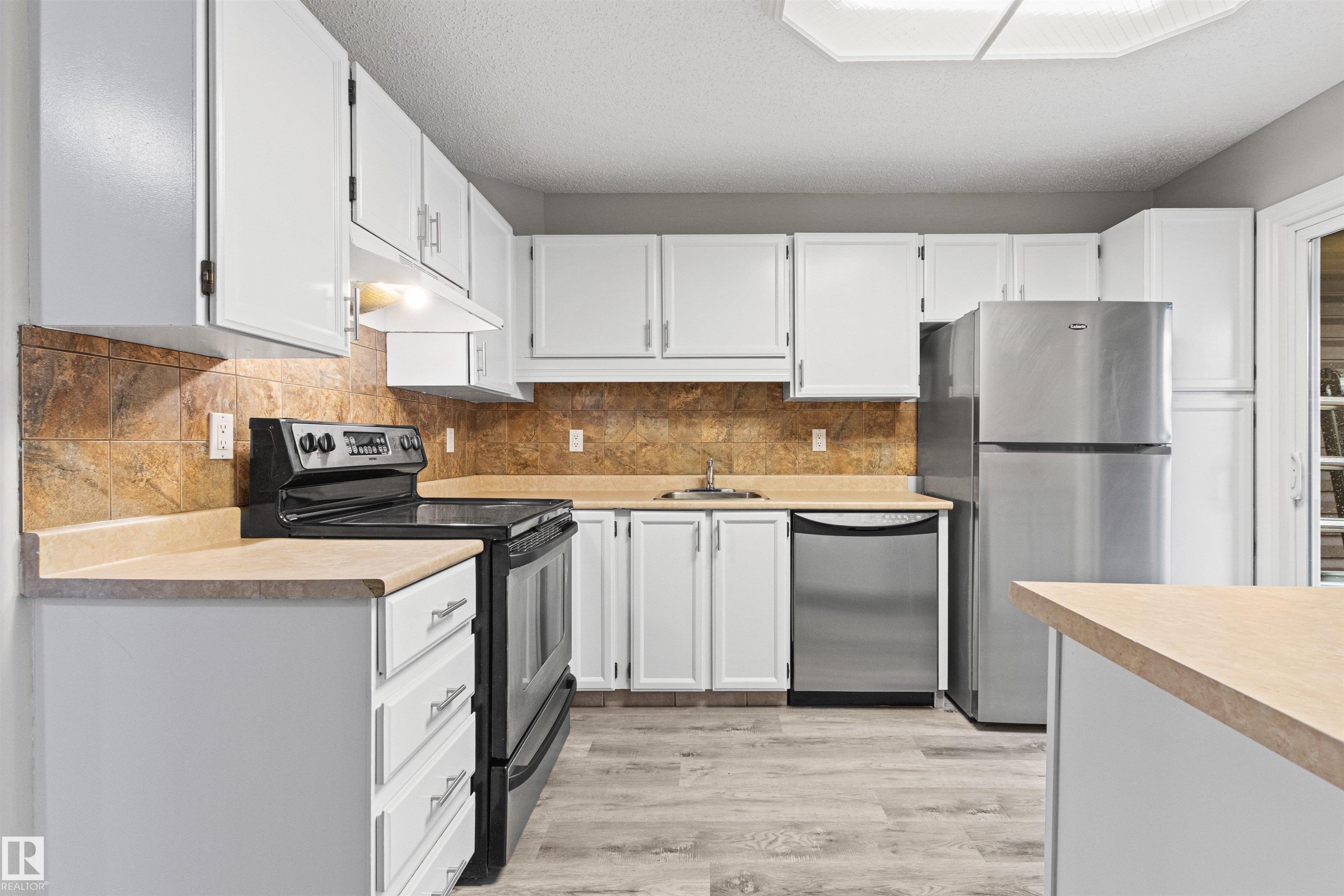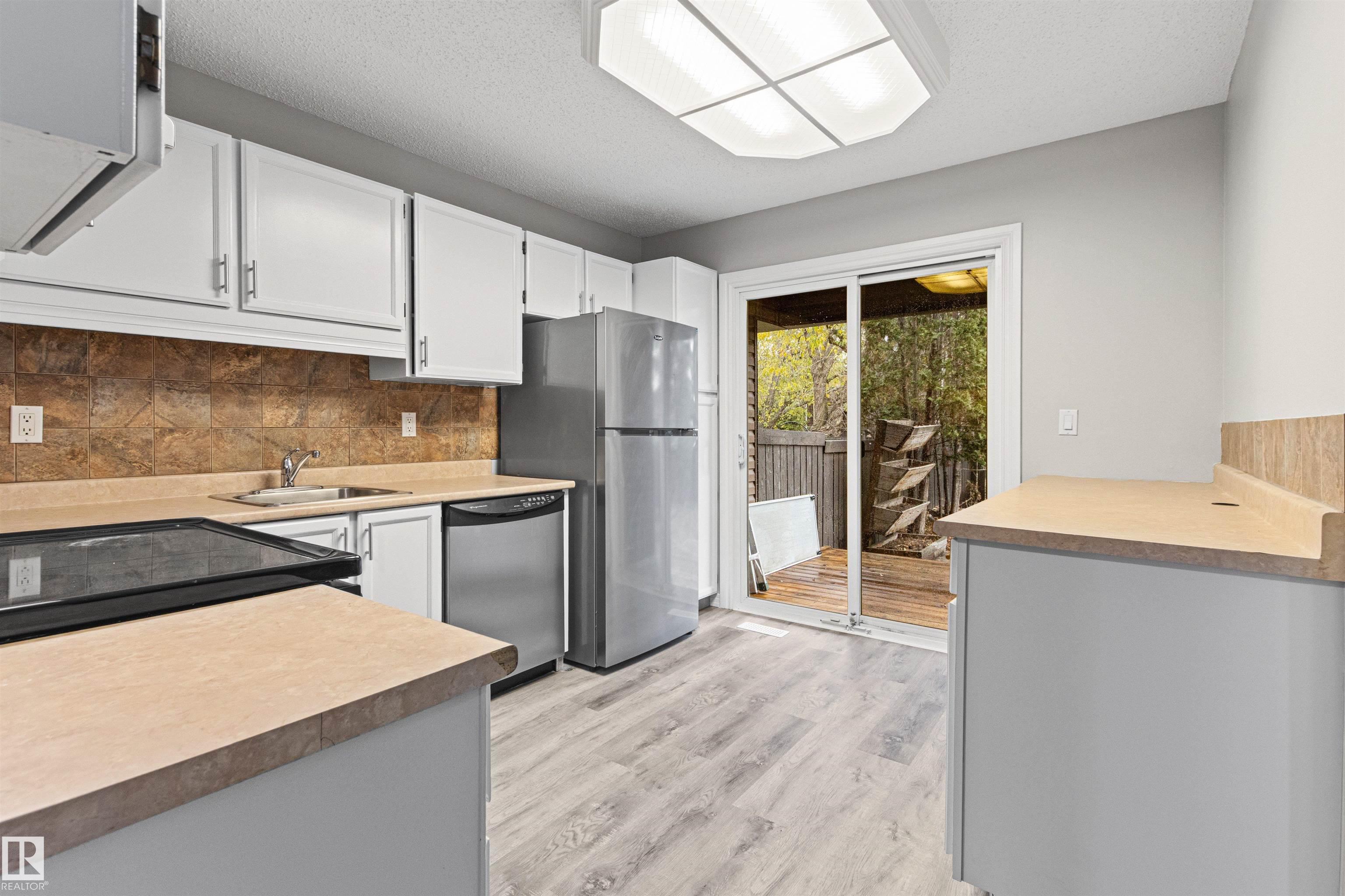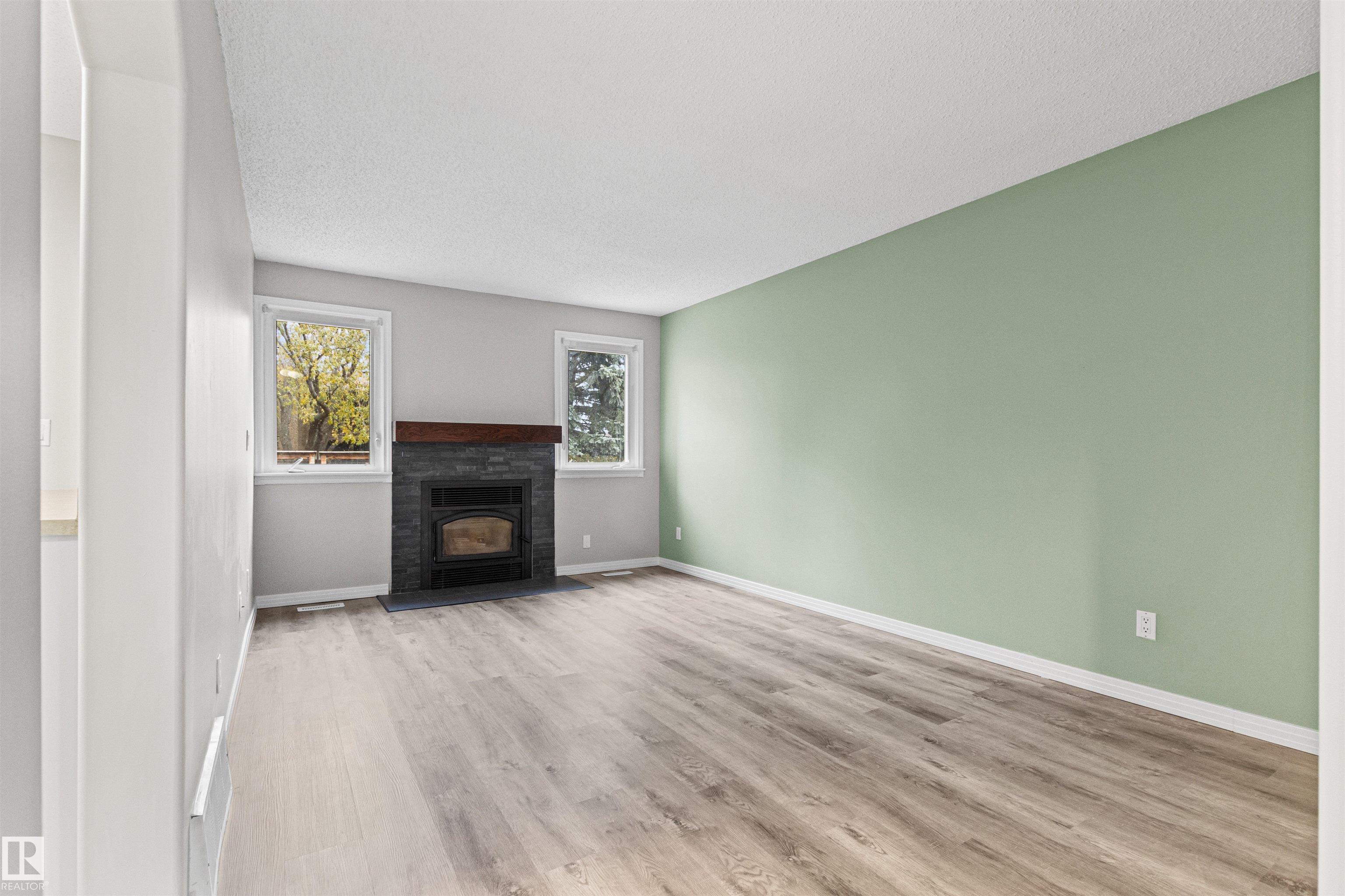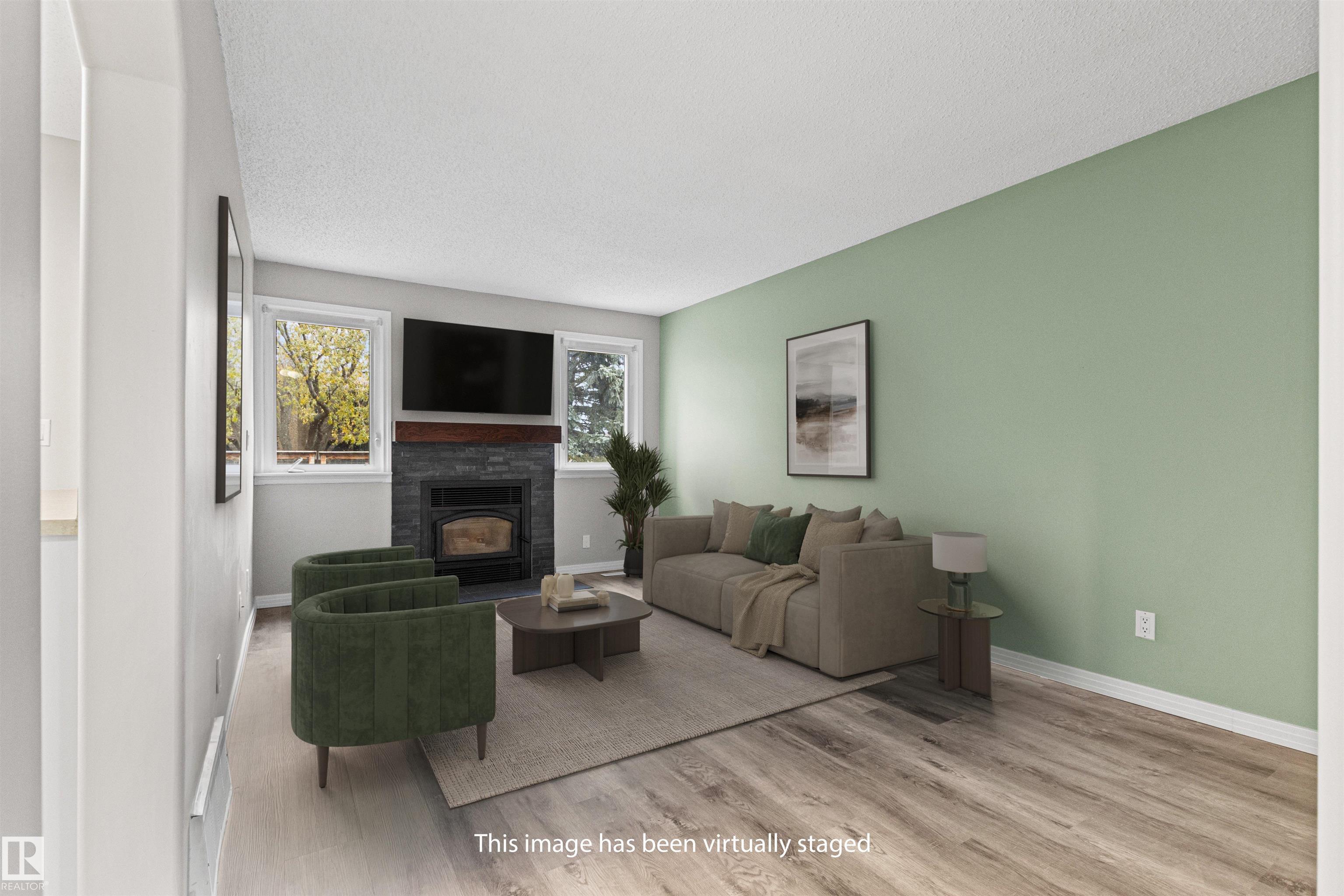 Move in and get cozy by Christmas! This beautifully updated 3-bedroom, 1.5-bath, 2-storey condo in La Perle offers 1,200 sq ft of comfort and the largest private yard in the entire complex! Brand-new luxury vinyl plank flooring and fresh paint set a modern tone. Enjoy easy winter living with a covered parking stall leading to your front patio. Inside, the wood-burning fireplace invites you to stay warm and cozy this holiday season. The bright kitchen features ample cabinets, great counter space, and a view of your private yard, while the dining area is perfect for family or guests. Upstairs, the spacious primary bedroom offers a Juliette balcony and private bath access, with two more bedrooms completing the level. The finished basement adds three versatile spaces for relaxing or hobbies. In the well-run Parklane West complex with condo fees of $419/month, this home is move-in ready ? just in time for Christmas by the fire!
