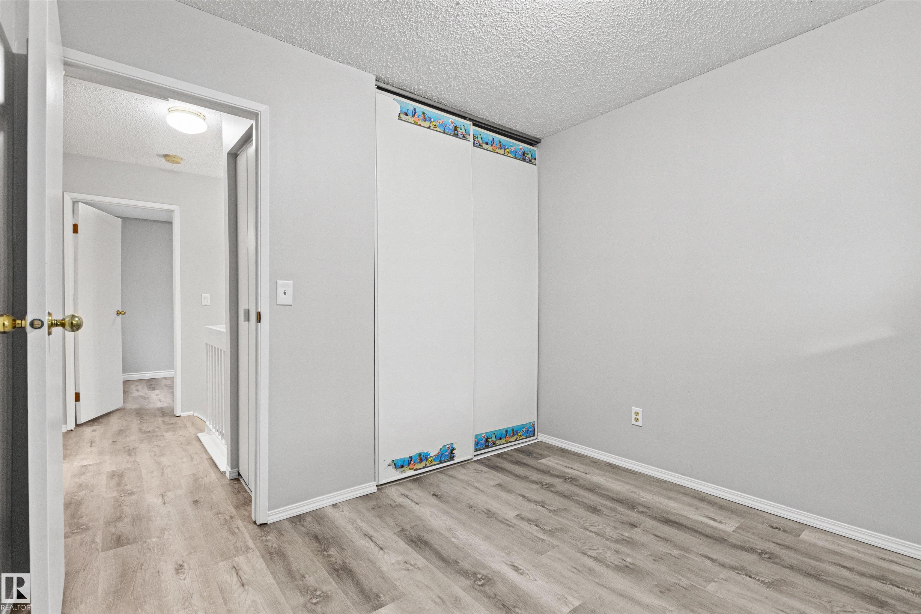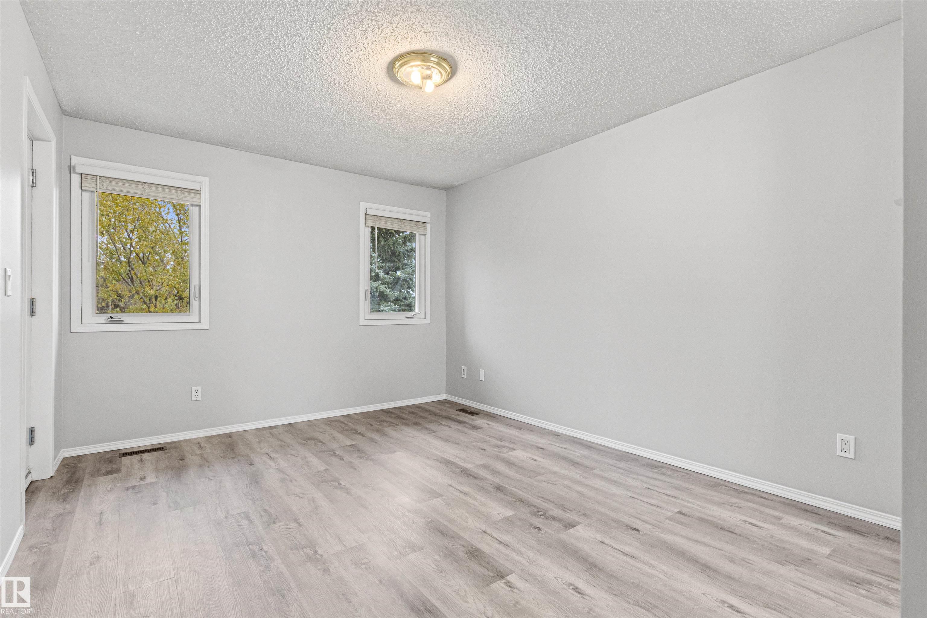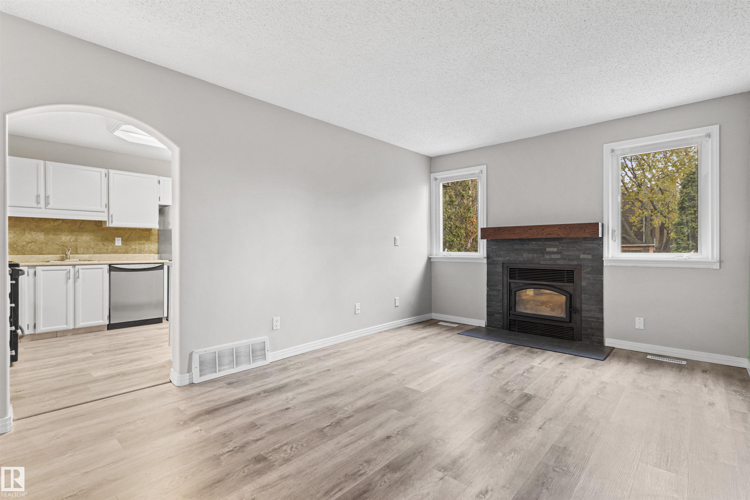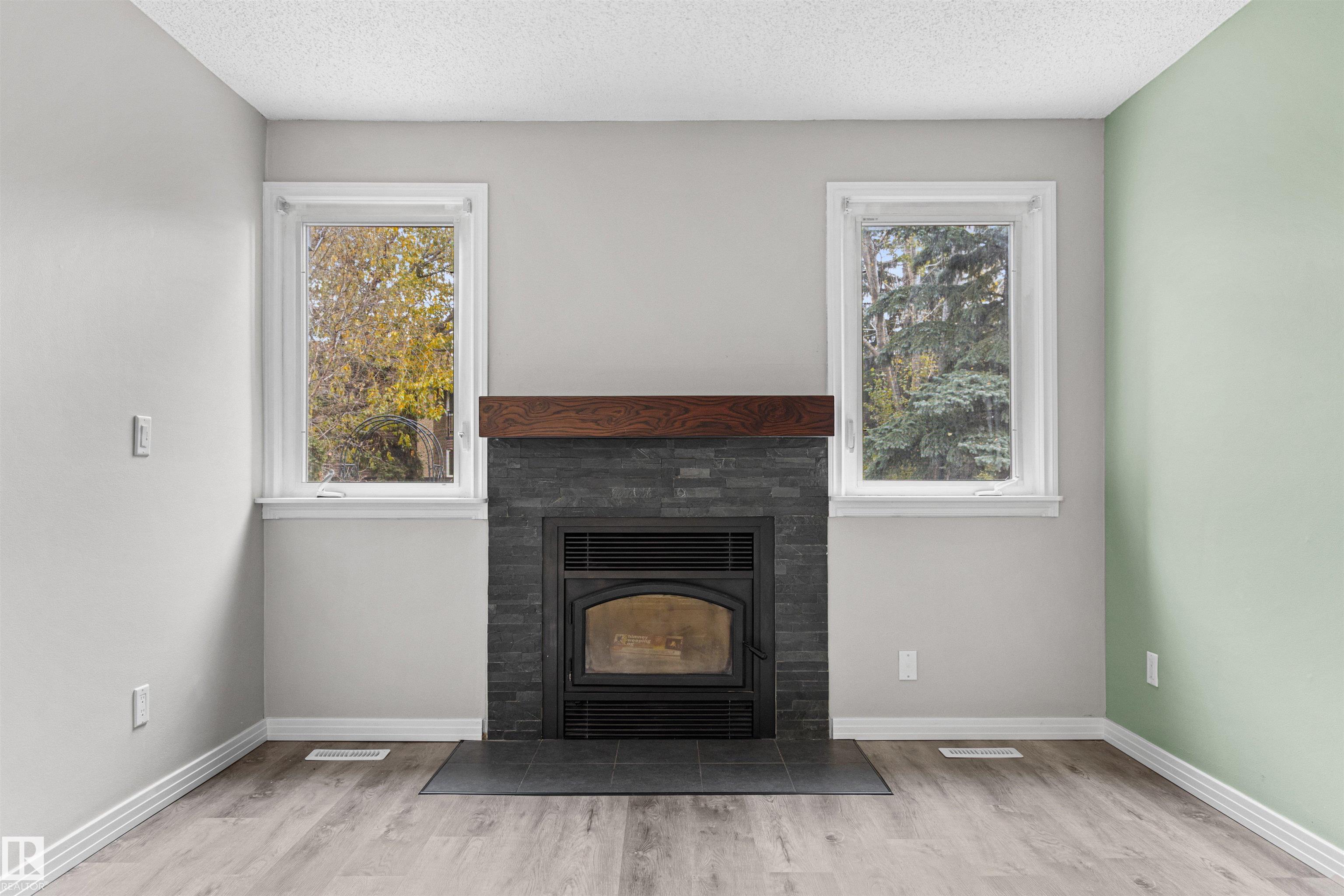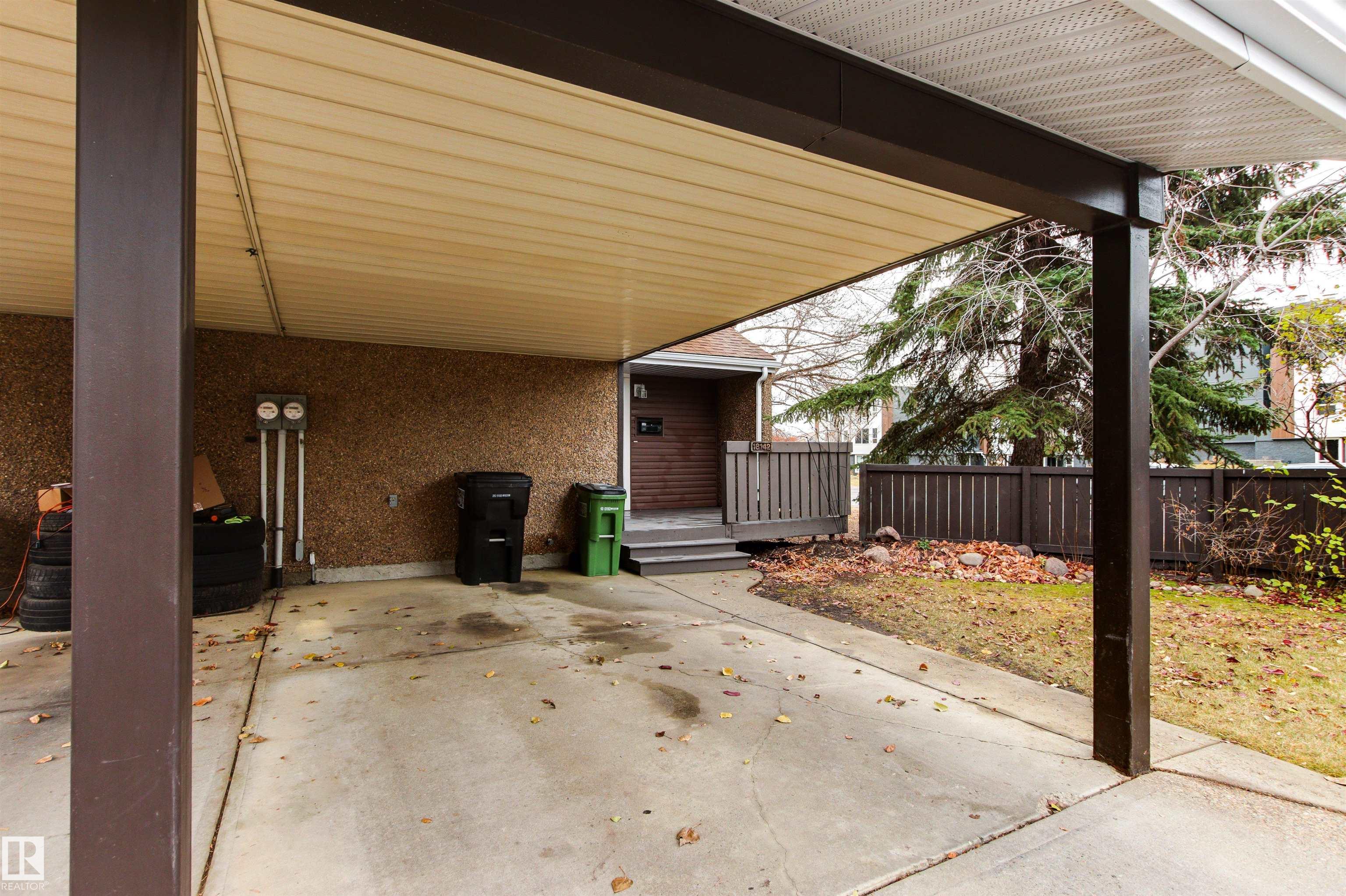Move in and get cozy by Christmas! This beautifully updated 3-bedroom, 1.5-bath, 2-storey condo in La Perle offers 1,200 sq ft of comfort and the largest private yard in the entire complex! Brand-new luxury vinyl plank flooring and fresh paint set a modern tone. Enjoy easy winter living with a covered parking stall leading to your front patio. Inside, the wood-burning fireplace invites you to stay warm and cozy this holiday season. The bright kitchen features ample cabinets, great counter space, and a view of your private yard, while the dining area is perfect for family or guests. Upstairs, the spacious primary bedroom offers a Juliette balcony and private bath access, with two more bedrooms completing the level. The finished basement adds three versatile spaces for relaxing or hobbies. In the well-run Parklane West complex with condo fees of $419/month, this home is move-in ready ? just in time for Christmas by the fire!