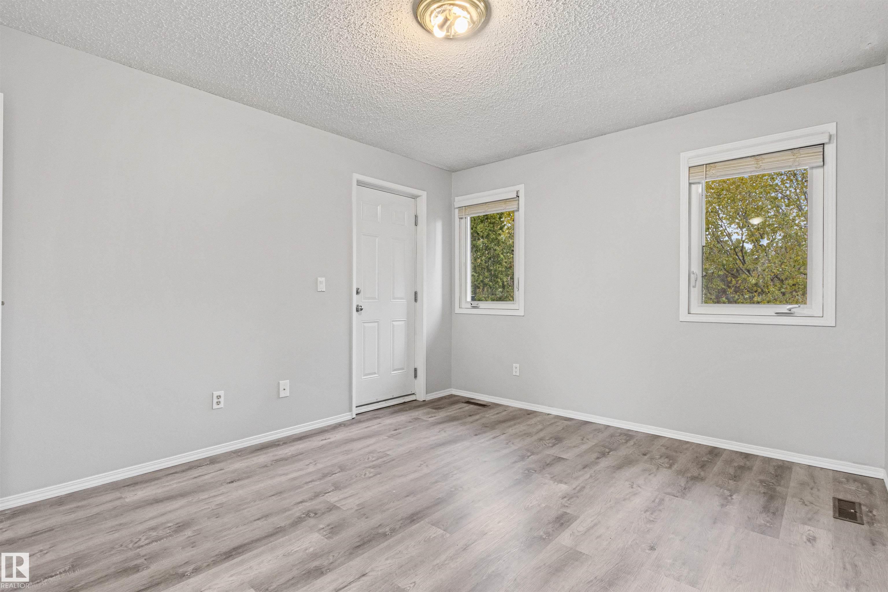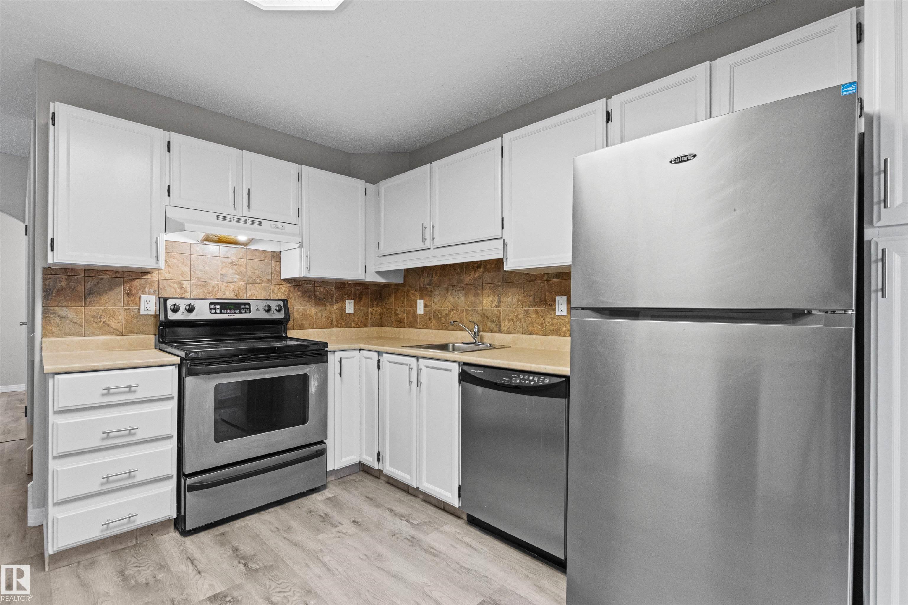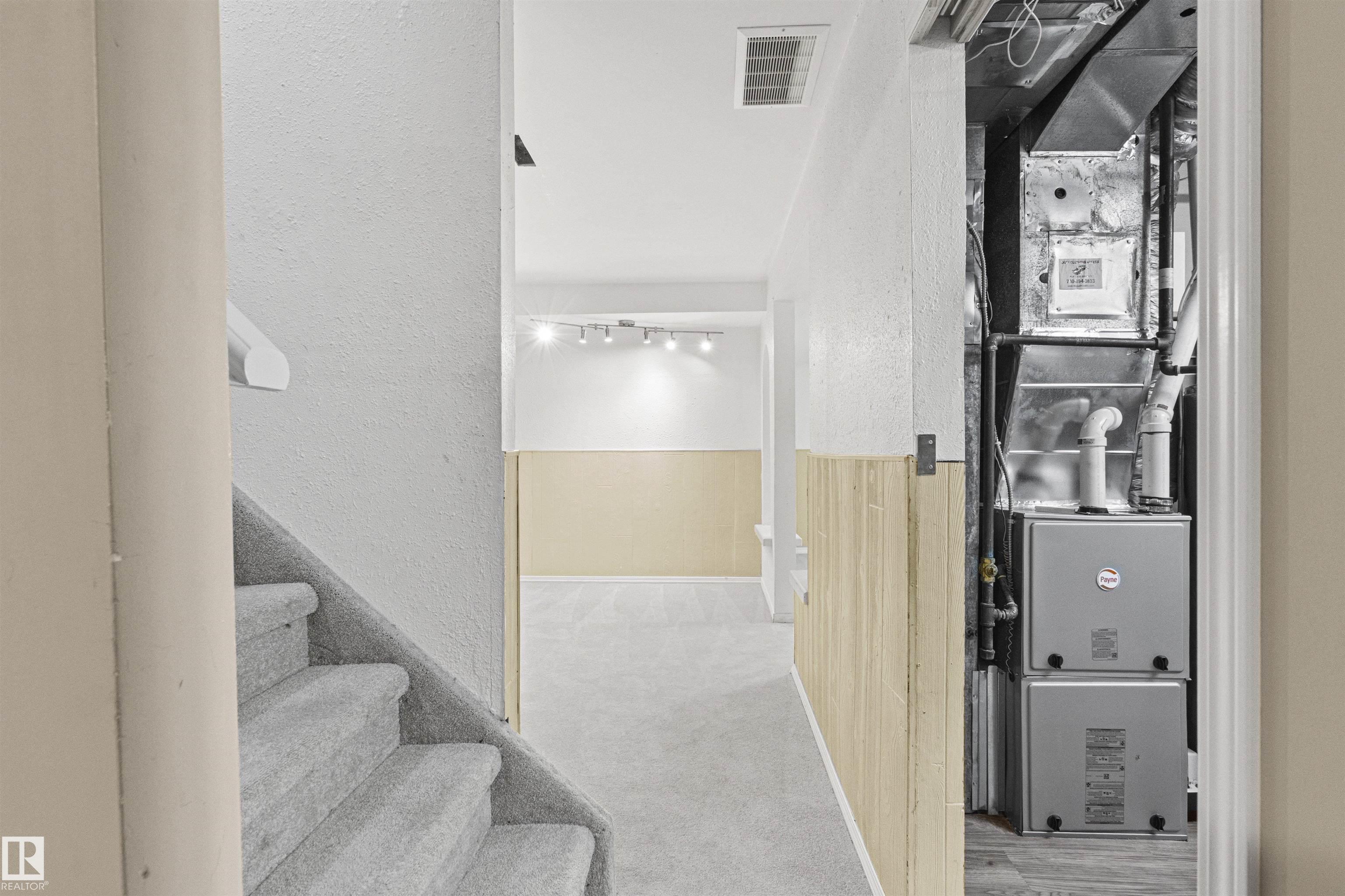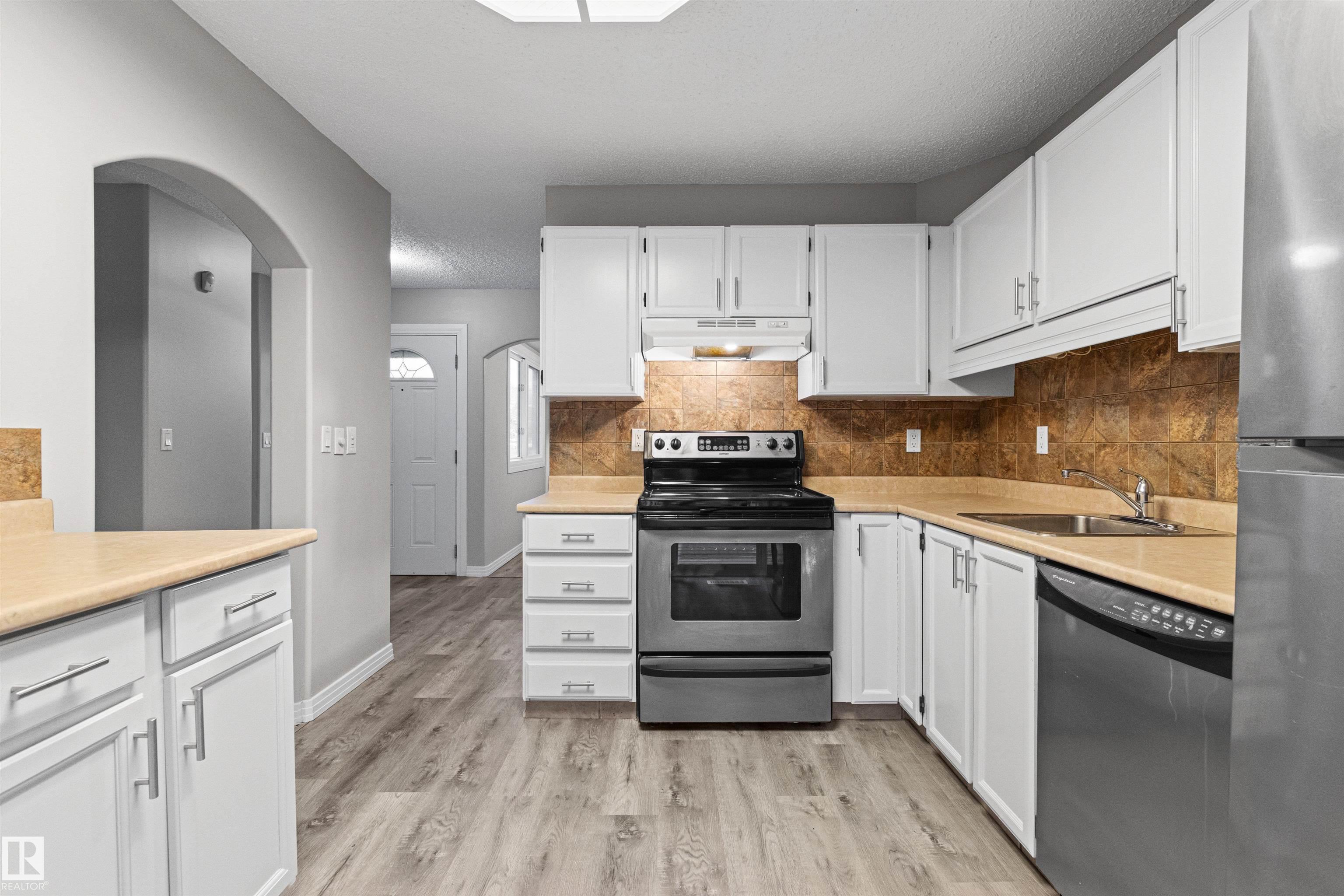 Move in and get cozy by Christmas! This beautifully updated 3-bedroom, 1.5-bath, 2-storey condo in La Perle offers 1,200 sq ft of comfort and the largest private yard in the entire complex! Brand-new luxury vinyl plank flooring and fresh paint set a modern tone. Enjoy easy winter living with a covered parking stall leading to your front patio. Inside, the wood-burning fireplace invites you to stay warm and cozy this holiday season. The bright kitchen features ample cabinets, great counter space, and a view of your private yard, while the dining area is perfect for family or guests. Upstairs, the spacious primary bedroom offers a Juliette balcony and private bath access, with two more bedrooms completing the level. The finished basement adds three versatile spaces for relaxing or hobbies. In the well-run Parklane West complex with condo fees of $419/month, this home is move-in ready ? just in time for Christmas by the fire!