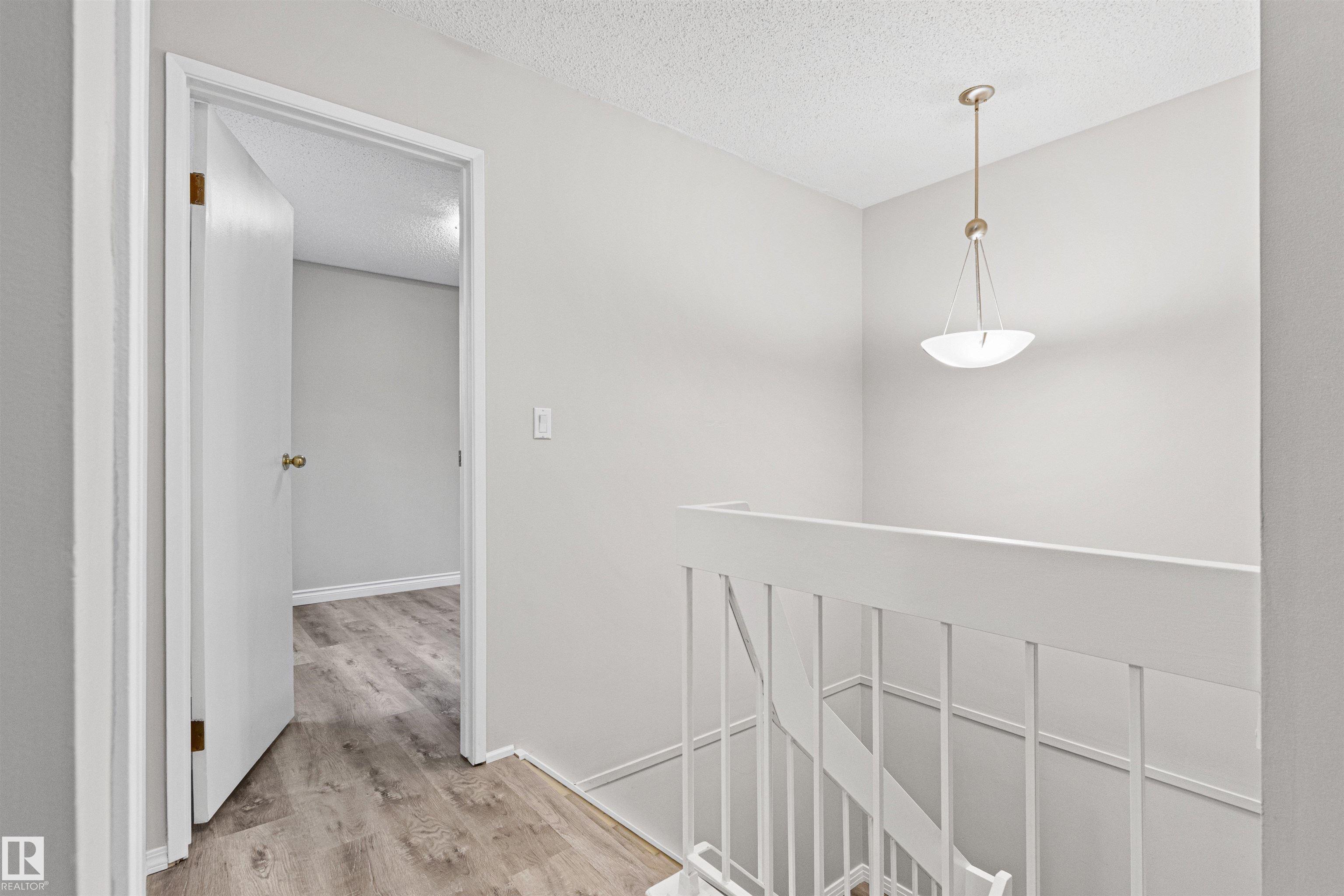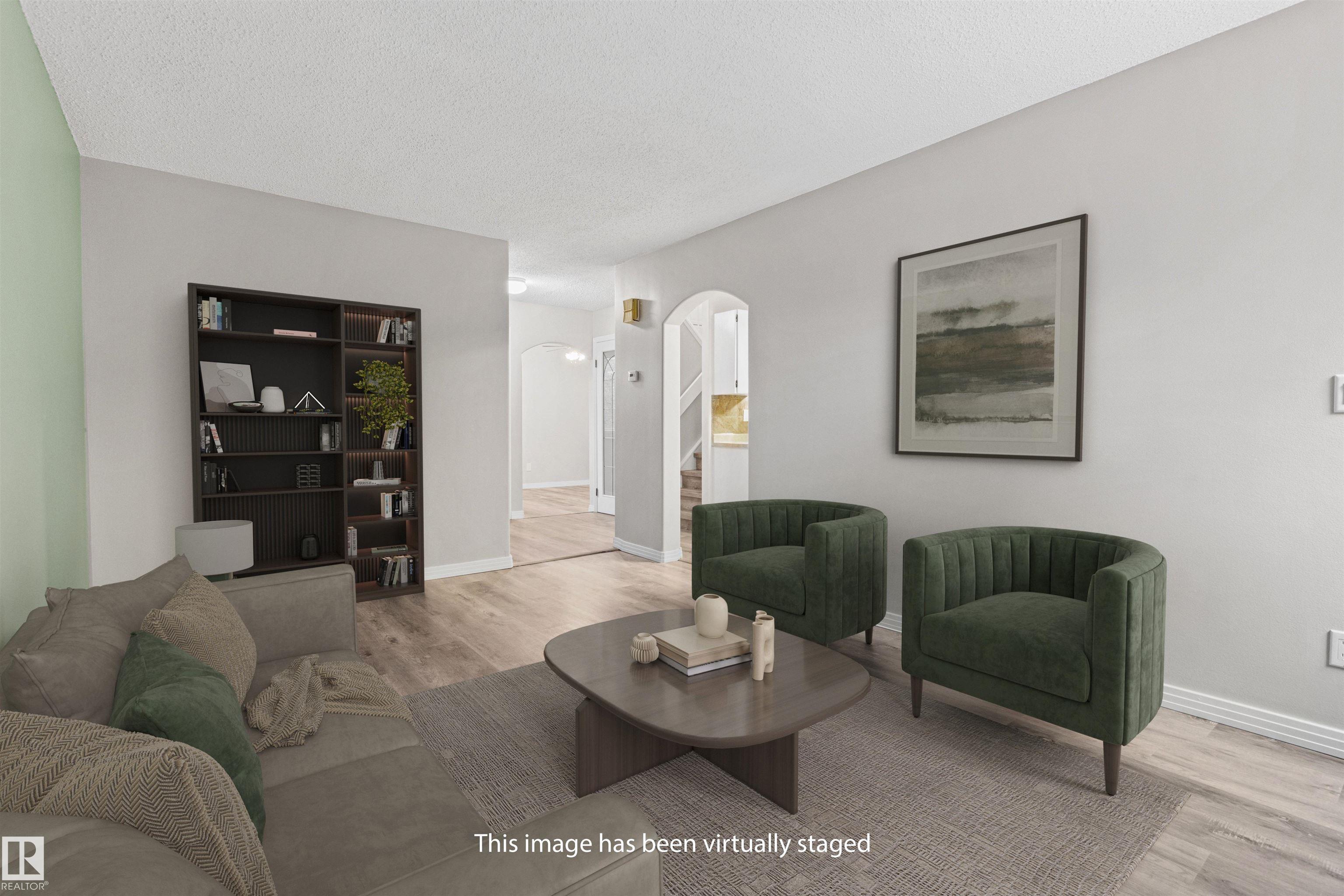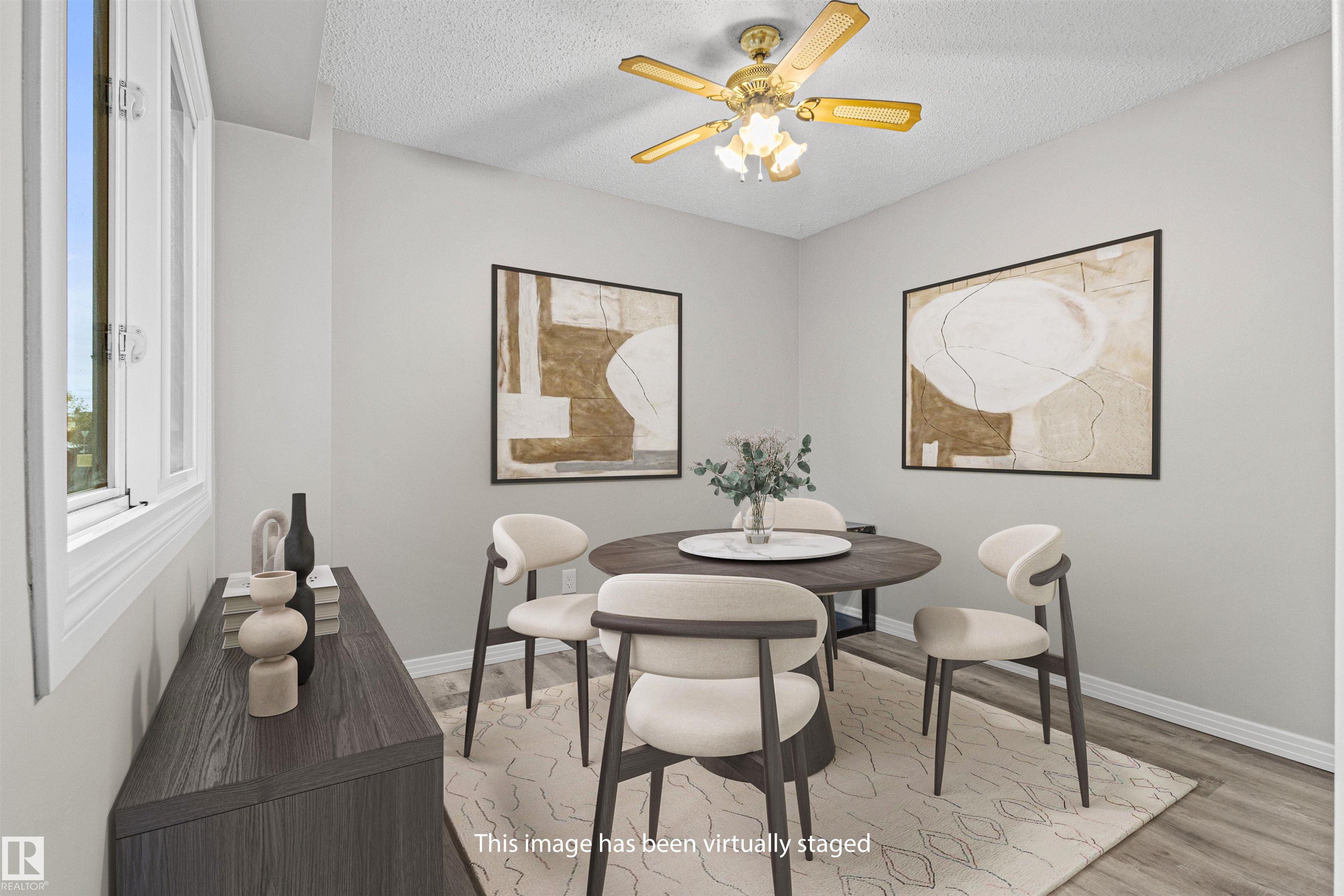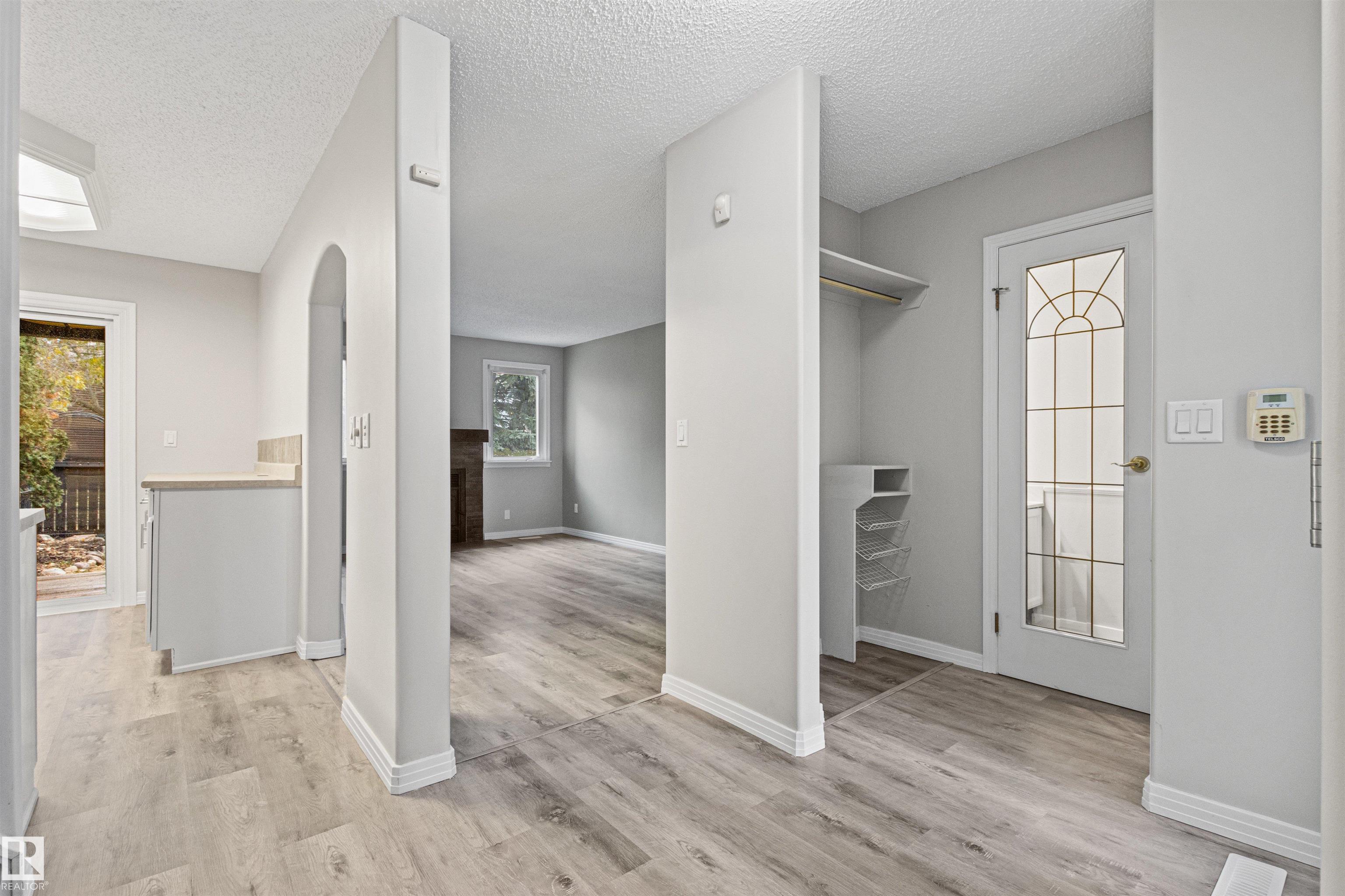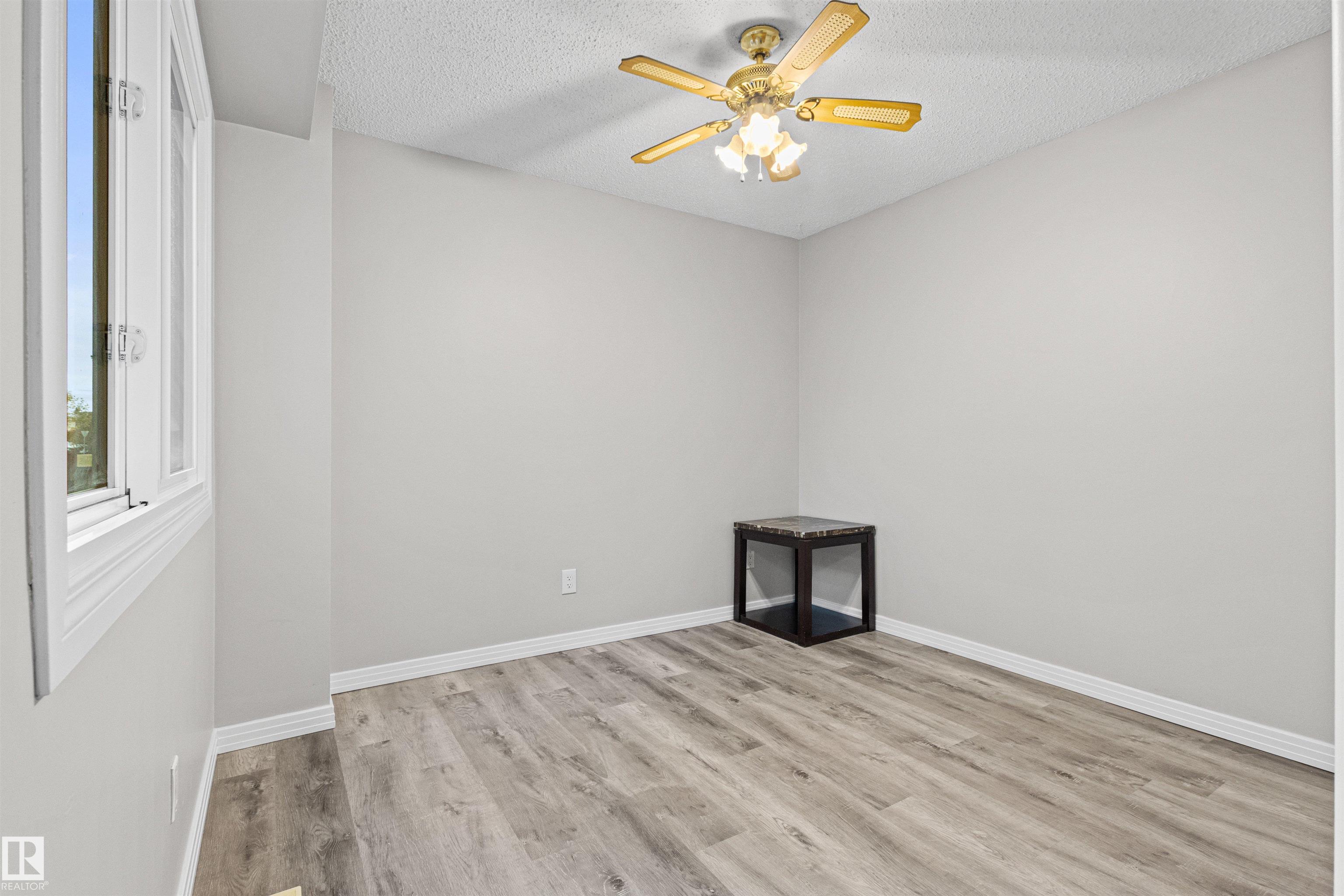 Move in and get cozy by Christmas! This beautifully updated 3-bedroom, 1.5-bath, 2-storey condo in La Perle offers 1,200 sq ft of comfort and the largest private yard in the entire complex! Brand-new luxury vinyl plank flooring and fresh paint set a modern tone. Enjoy easy winter living with a covered parking stall leading to your front patio. Inside, the wood-burning fireplace invites you to stay warm and cozy this holiday season. The bright kitchen features ample cabinets, great counter space, and a view of your private yard, while the dining area is perfect for family or guests. Upstairs, the spacious primary bedroom offers a Juliette balcony and private bath access, with two more bedrooms completing the level. The finished basement adds three versatile spaces for relaxing or hobbies. In the well-run Parklane West complex with condo fees of $419/month, this home is move-in ready ? just in time for Christmas by the fire!