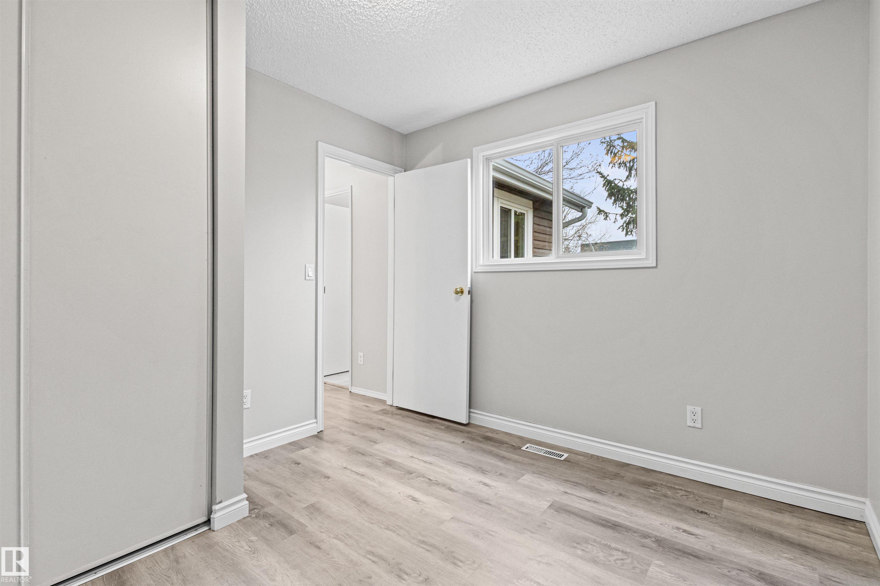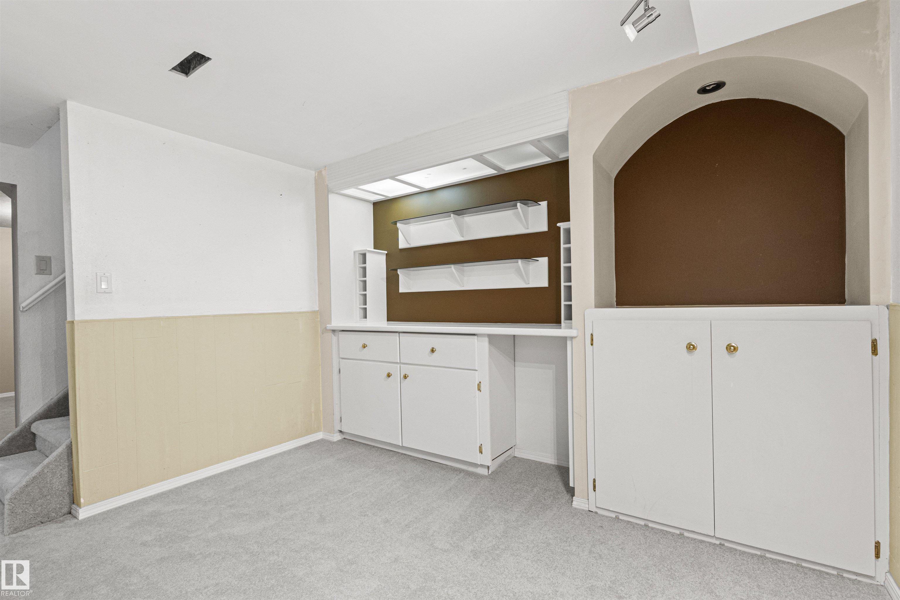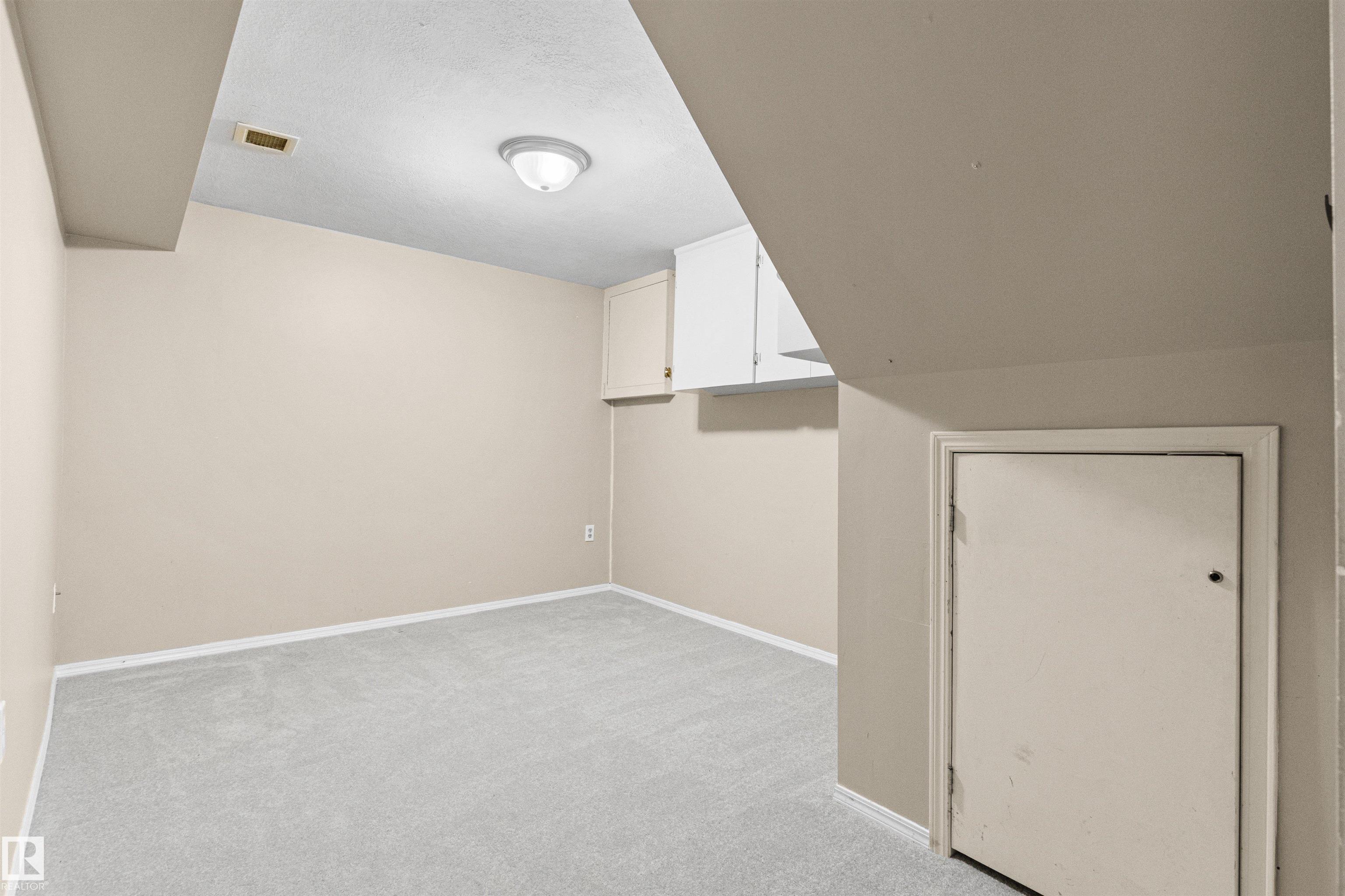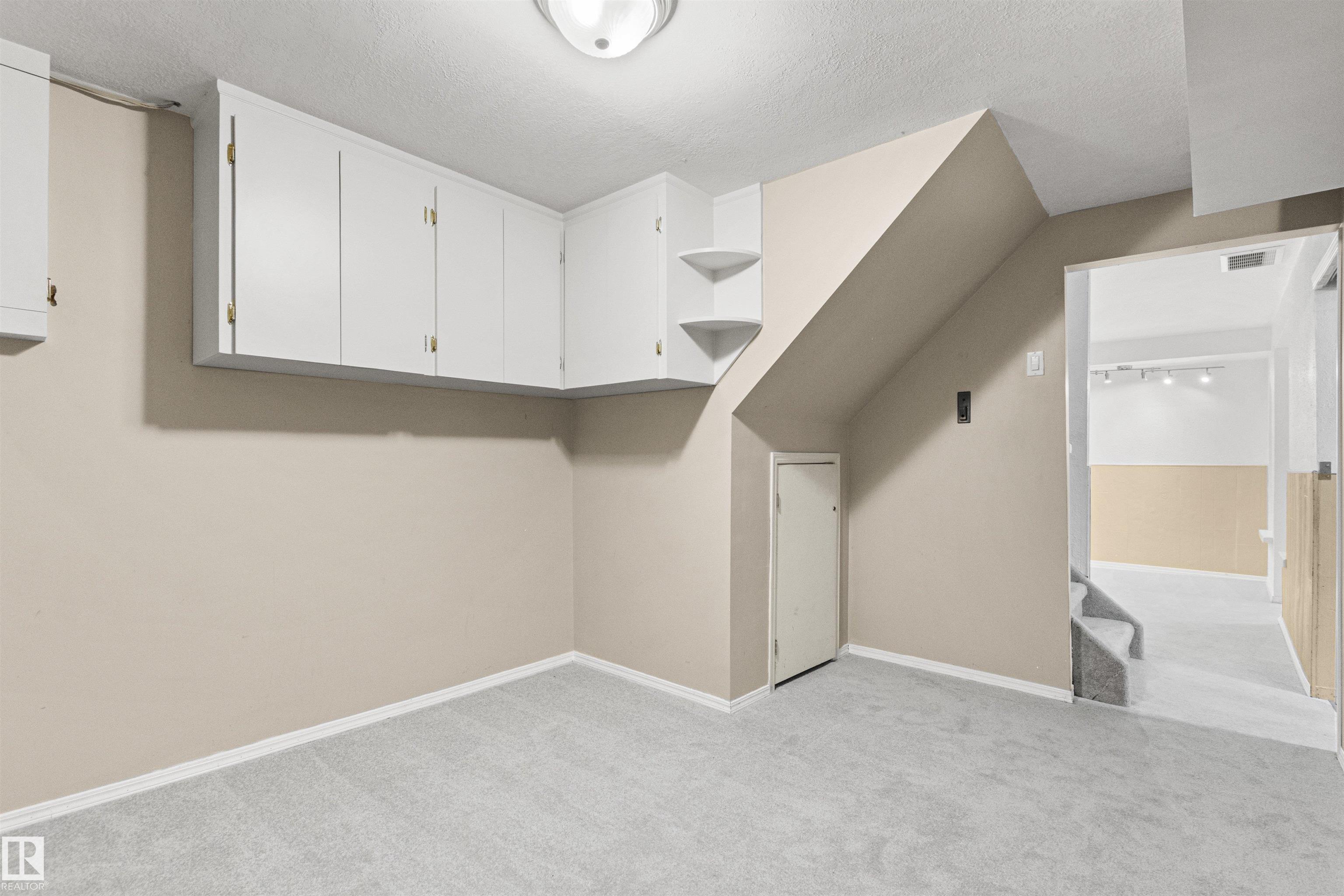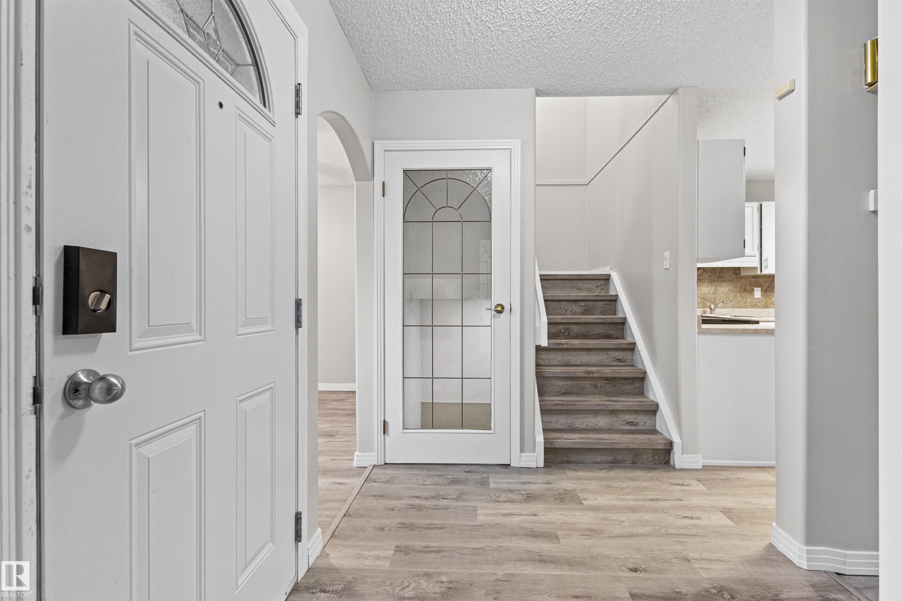 Move in and get cozy by Christmas! This beautifully updated 3-bedroom, 1.5-bath, 2-storey condo in La Perle offers 1,200 sq ft of comfort and the largest private yard in the entire complex! Brand-new luxury vinyl plank flooring and fresh paint set a modern tone. Enjoy easy winter living with a covered parking stall leading to your front patio. Inside, the wood-burning fireplace invites you to stay warm and cozy this holiday season. The bright kitchen features ample cabinets, great counter space, and a view of your private yard, while the dining area is perfect for family or guests. Upstairs, the spacious primary bedroom offers a Juliette balcony and private bath access, with two more bedrooms completing the level. The finished basement adds three versatile spaces for relaxing or hobbies. In the well-run Parklane West complex with condo fees of $419/month, this home is move-in ready ? just in time for Christmas by the fire!