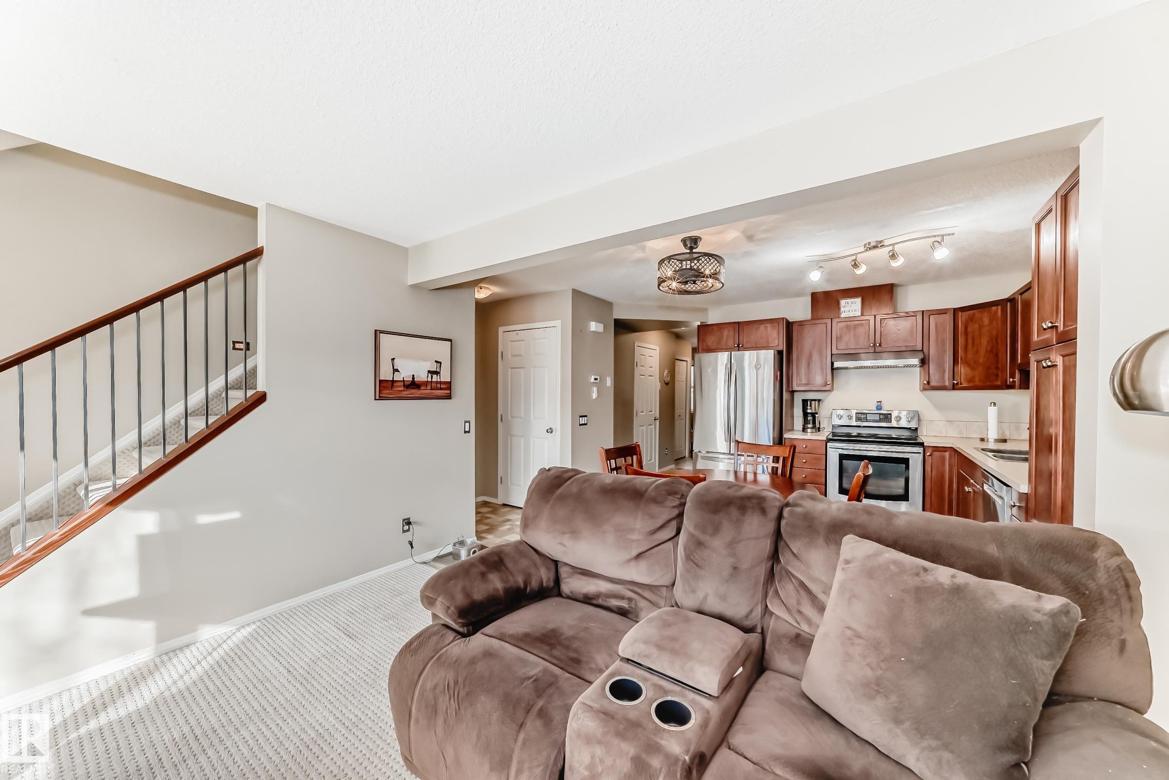 what a great value, over 1200 sq ft above grade, 3 bedrooms townhome in a quiet complex in the Meadows. East facing Master bedroom with a spacious 4 pc ensuite and a walk-in closet, lots of visitor parking, front attached garage with extra parking on driveway. game room in the basement. Back entrance to your private patio for BBQ and leisure. Newer fridge and dishwasher, close to new high school (Elder Dr. Francis Whiskeyjack School ), the Meadows community Recreation centre, Superstore, Banks, restaurants, Anthony Henday are all 5-10 mins away!!.