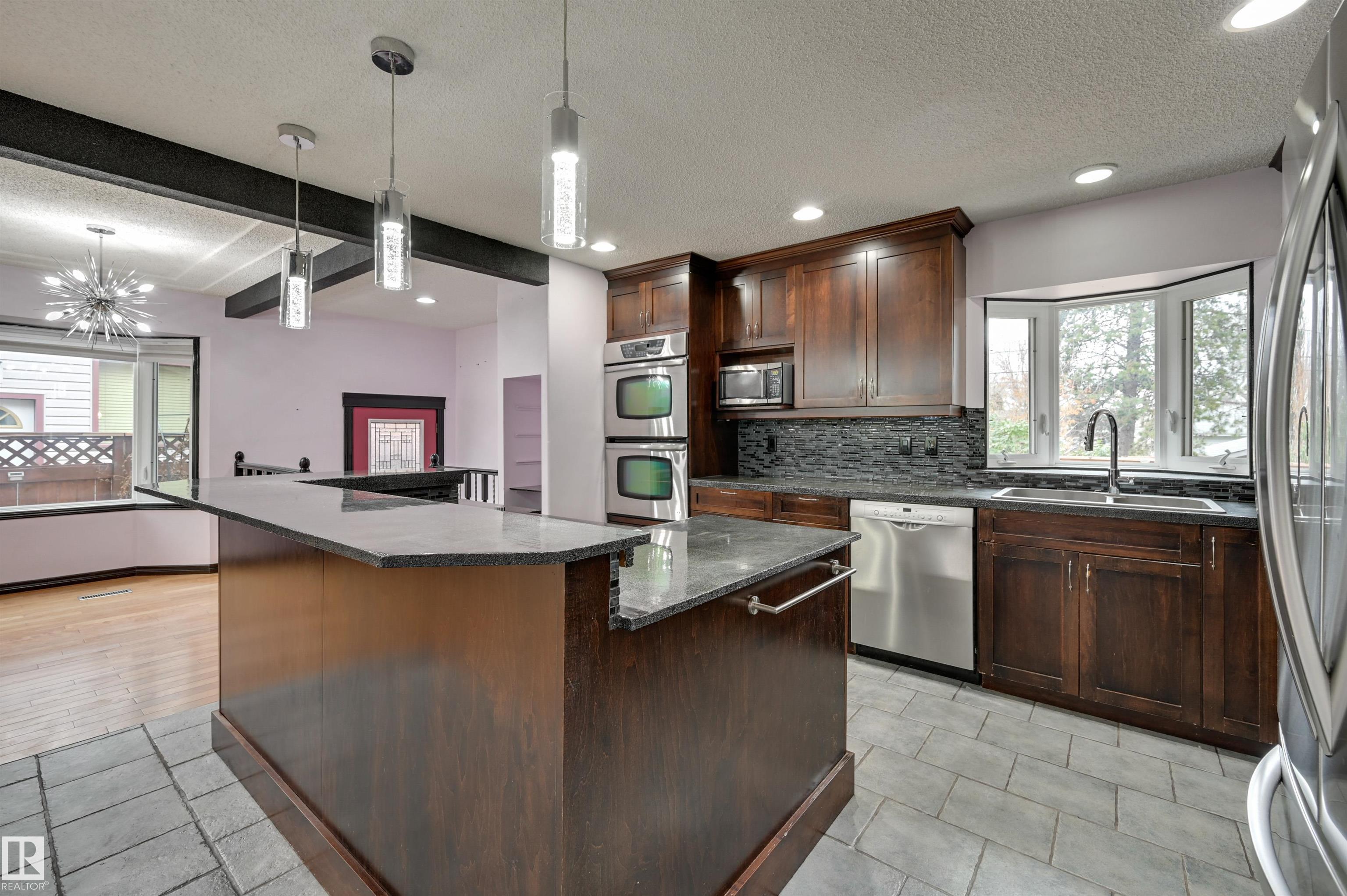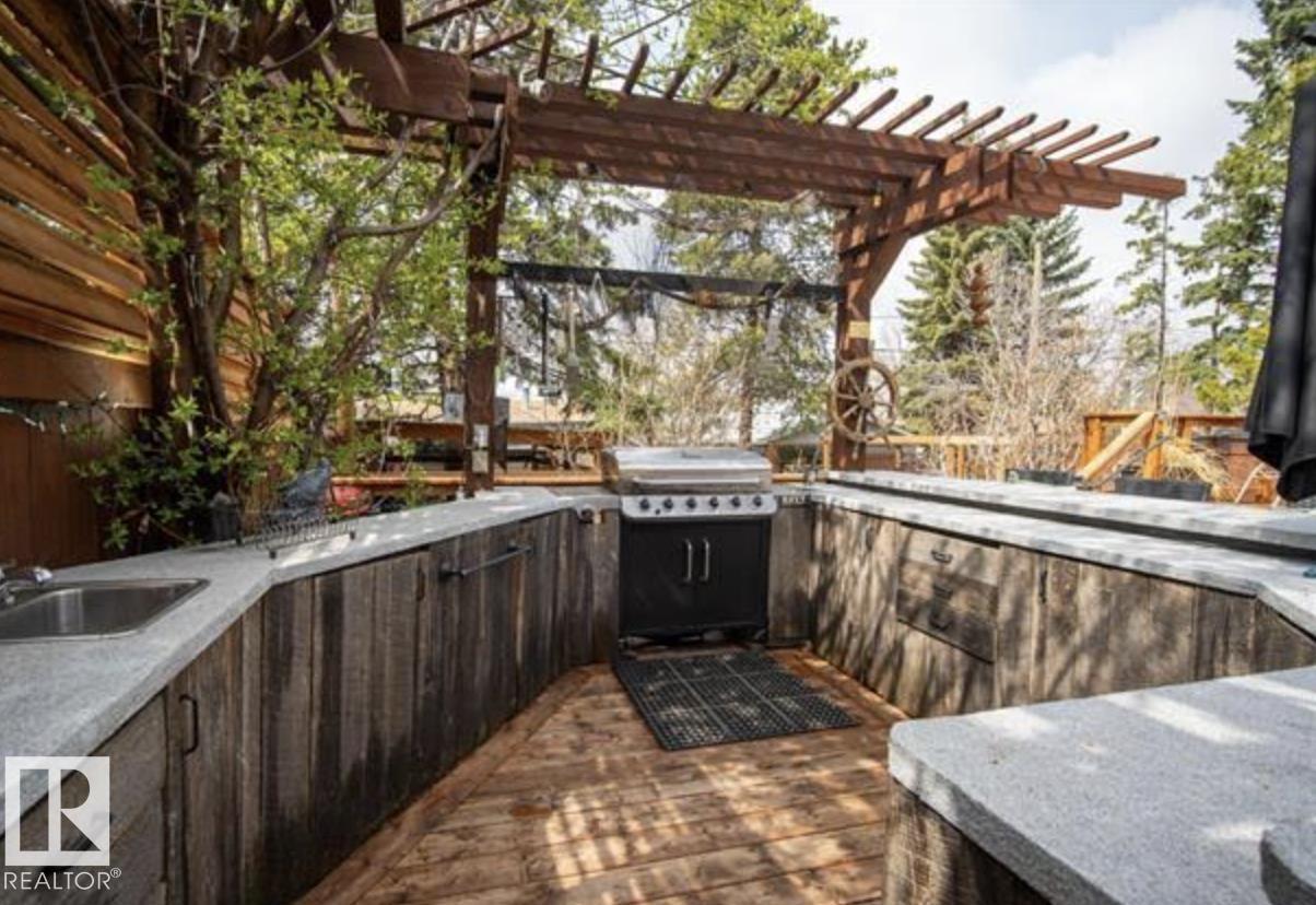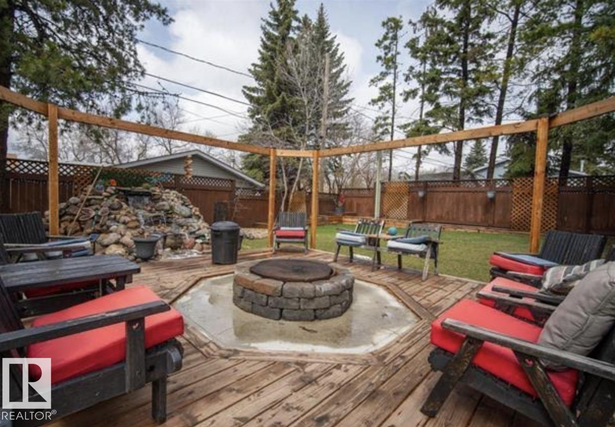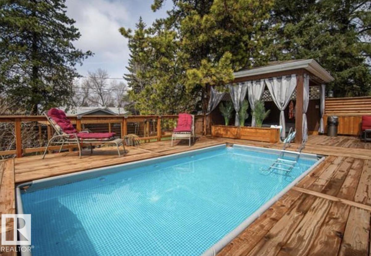 Acreage-Like Living in Sherwood Heights! Experience peaceful living in the heart of the city with this beautifully upgraded home across from a park. Enjoy your private, fully landscaped backyard oasis featuring an above-ground pool with deck, a hot tub with gazebo, a full outdoor bar/kitchen with built-in BBQ , a cozy firepit area, & a tranquil water feature. Inside, the open-concept main floor offers a spacious living room & a kitchen with a large island with stovetop, & stainless steel appliances incl double ovens. The primary bedroom is a true retreat with garden doors leading directly to the pool & hot tub area. The main level also includes two addl bedrooms & a stylish 5-piece bathroom. The fully finished lower level features a large rec room?ideal for movie nights or game time?a fourth bedroom, and a 3-piece bath. Enjoy an active lifestyle. Close to pickleball courts, an ice rink, schools, & shopping. Upgrades incl: widened driveway & RV parking (2020); shingles (2021); 50-gallon HWT, R60 in attic