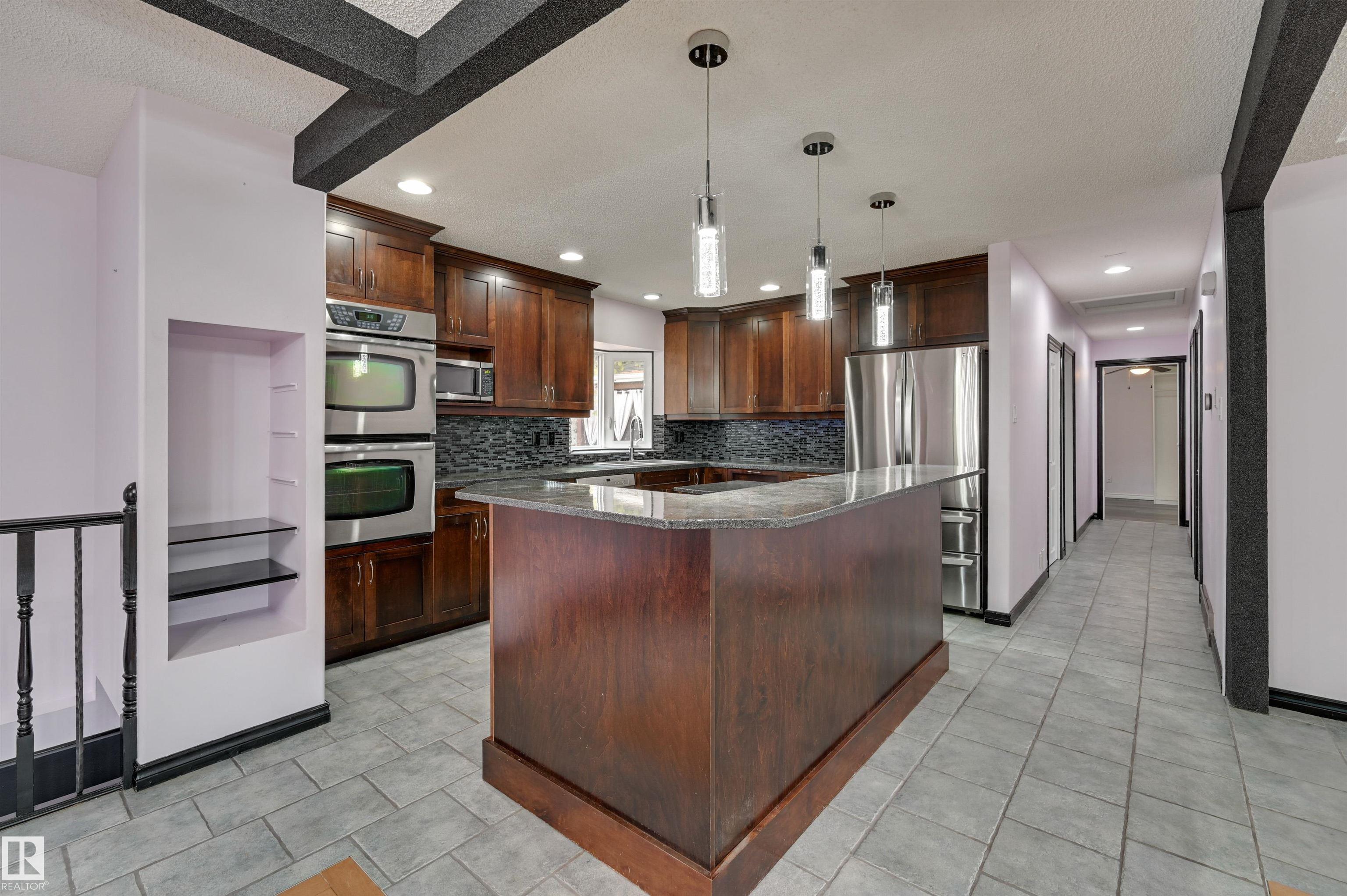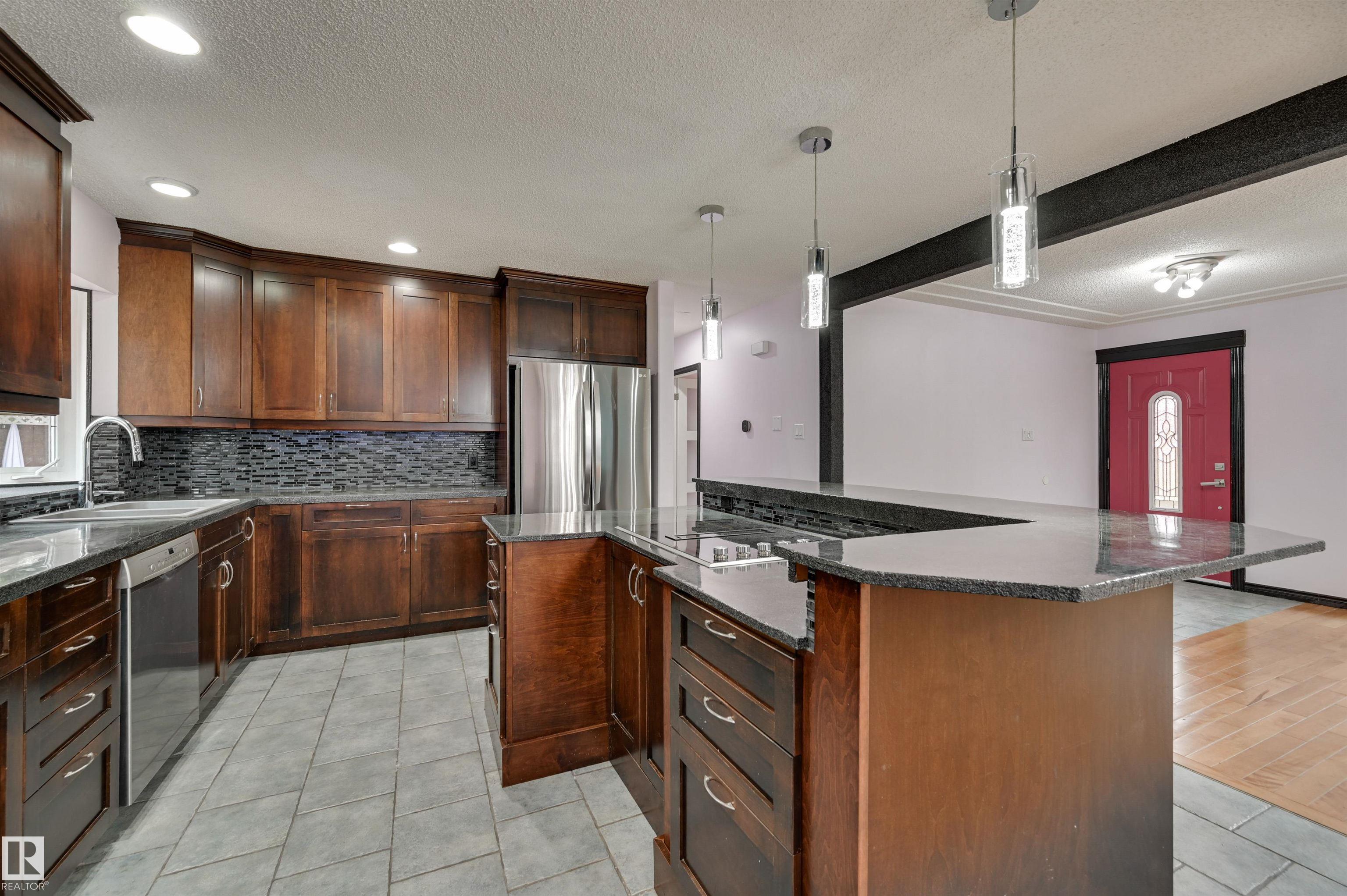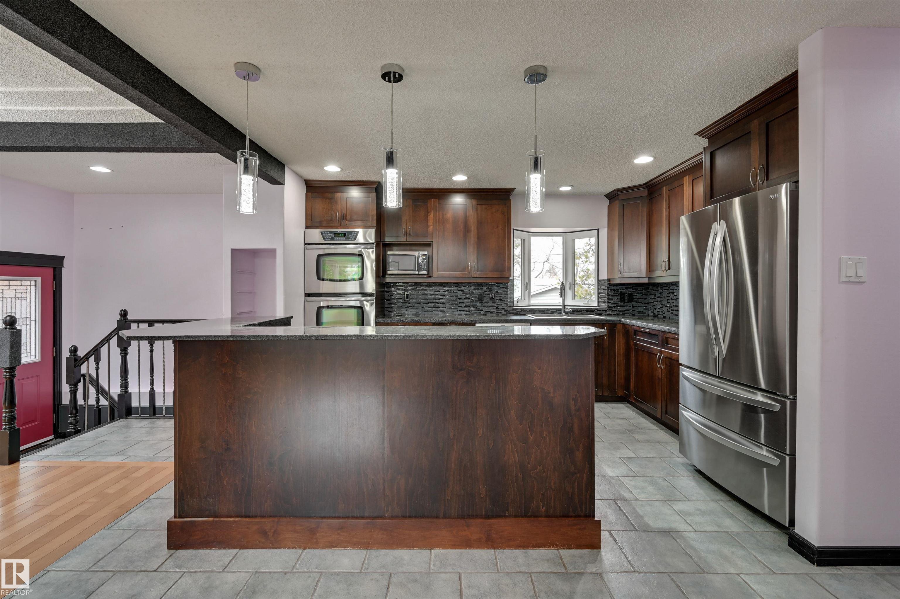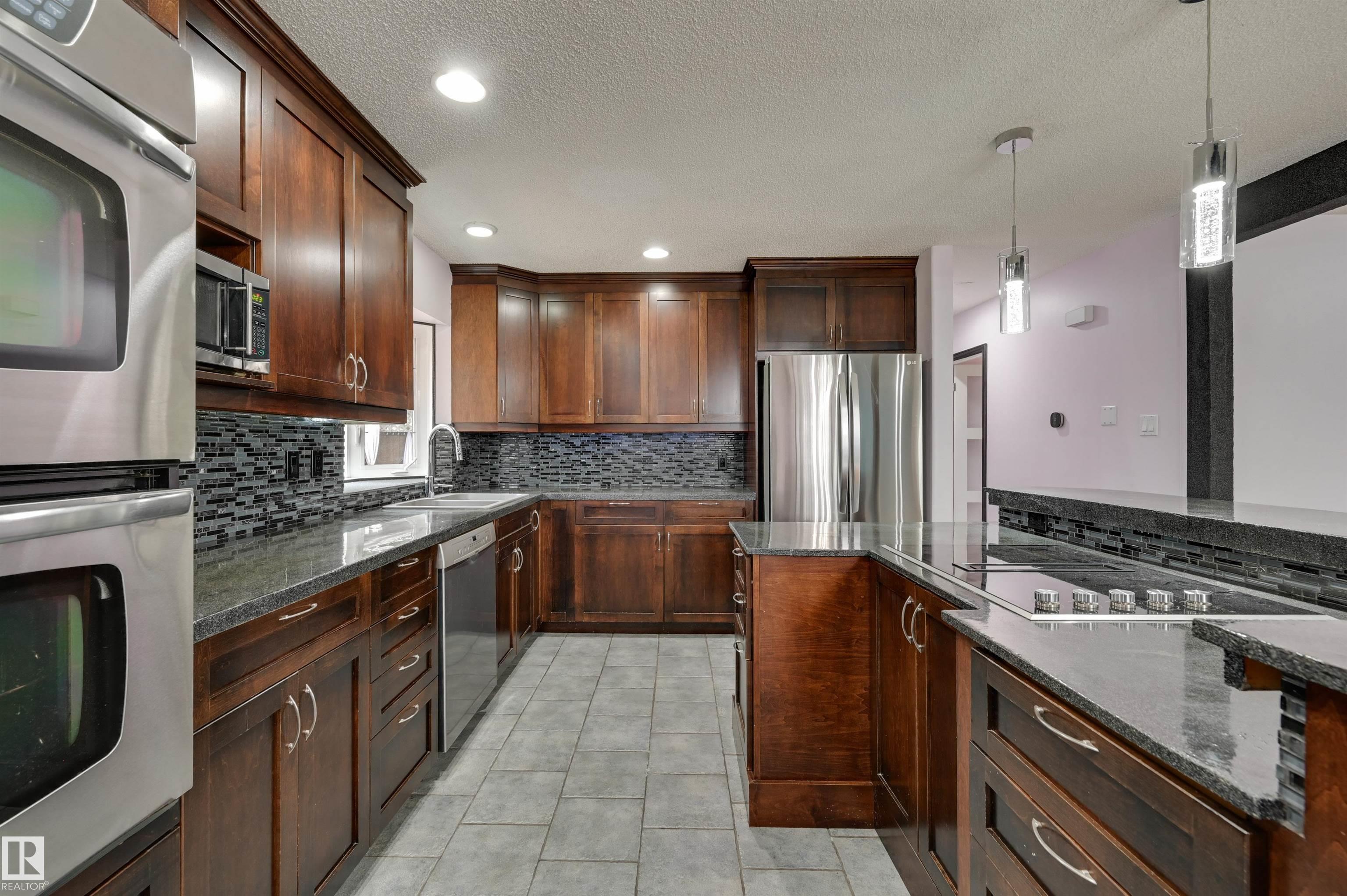 Acreage-Like Living in Sherwood Heights! Experience peaceful living in the heart of the city with this beautifully upgraded home across from a park. Enjoy your private, fully landscaped backyard oasis featuring an above-ground pool with deck, a hot tub with gazebo, a full outdoor bar/kitchen with built-in BBQ , a cozy firepit area, & a tranquil water feature. Inside, the open-concept main floor offers a spacious living room & a kitchen with a large island with stovetop, & stainless steel appliances incl double ovens. The primary bedroom is a true retreat with garden doors leading directly to the pool & hot tub area. The main level also includes two addl bedrooms & a stylish 5-piece bathroom. The fully finished lower level features a large rec room?ideal for movie nights or game time?a fourth bedroom, and a 3-piece bath. Enjoy an active lifestyle. Close to pickleball courts, an ice rink, schools, & shopping. Upgrades incl: widened driveway & RV parking (2020); shingles (2021); 50-gallon HWT, R60 in attic
