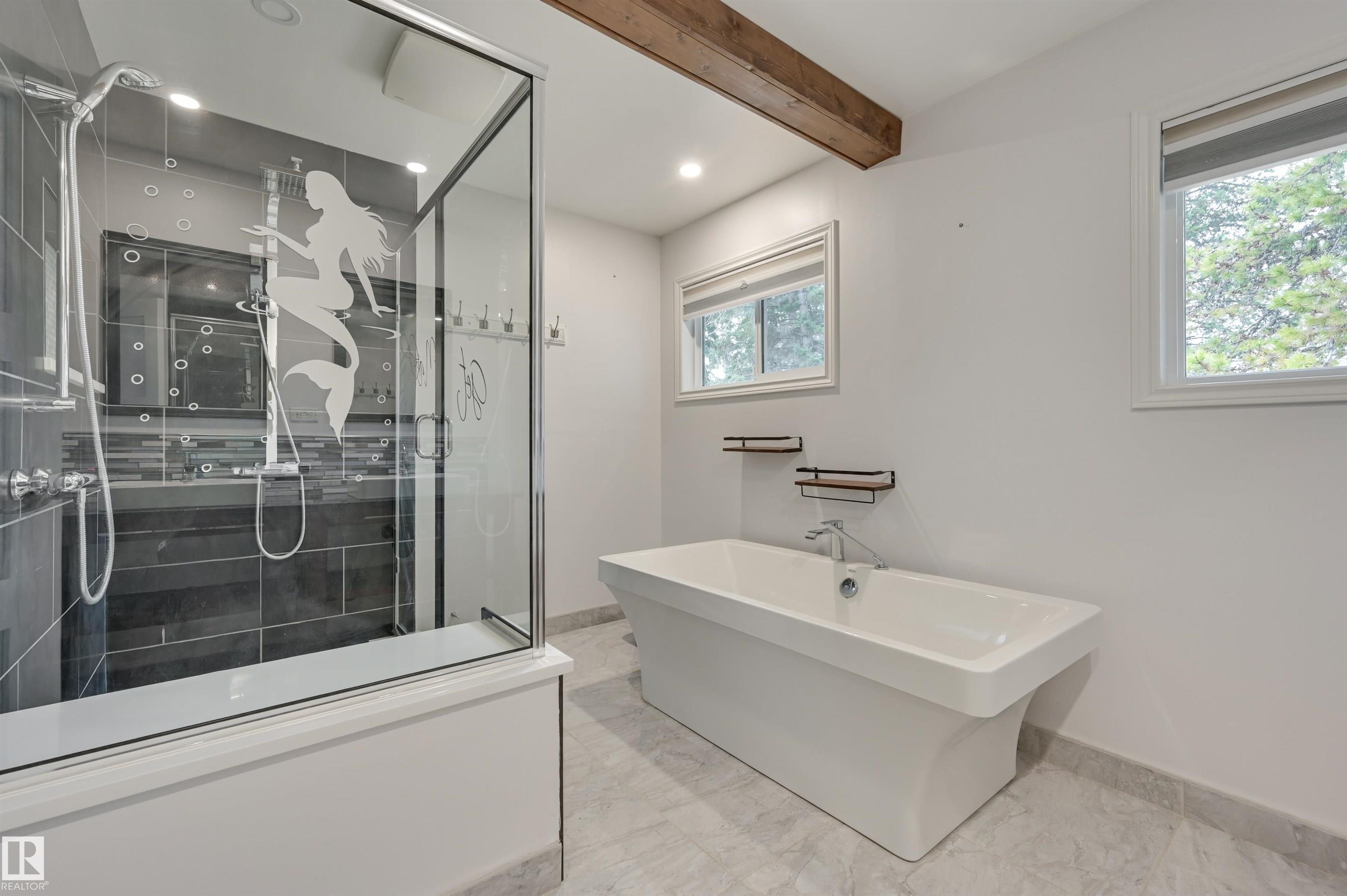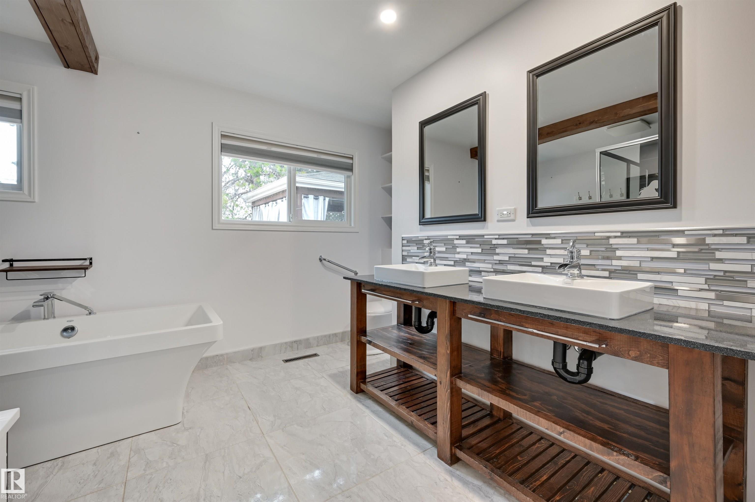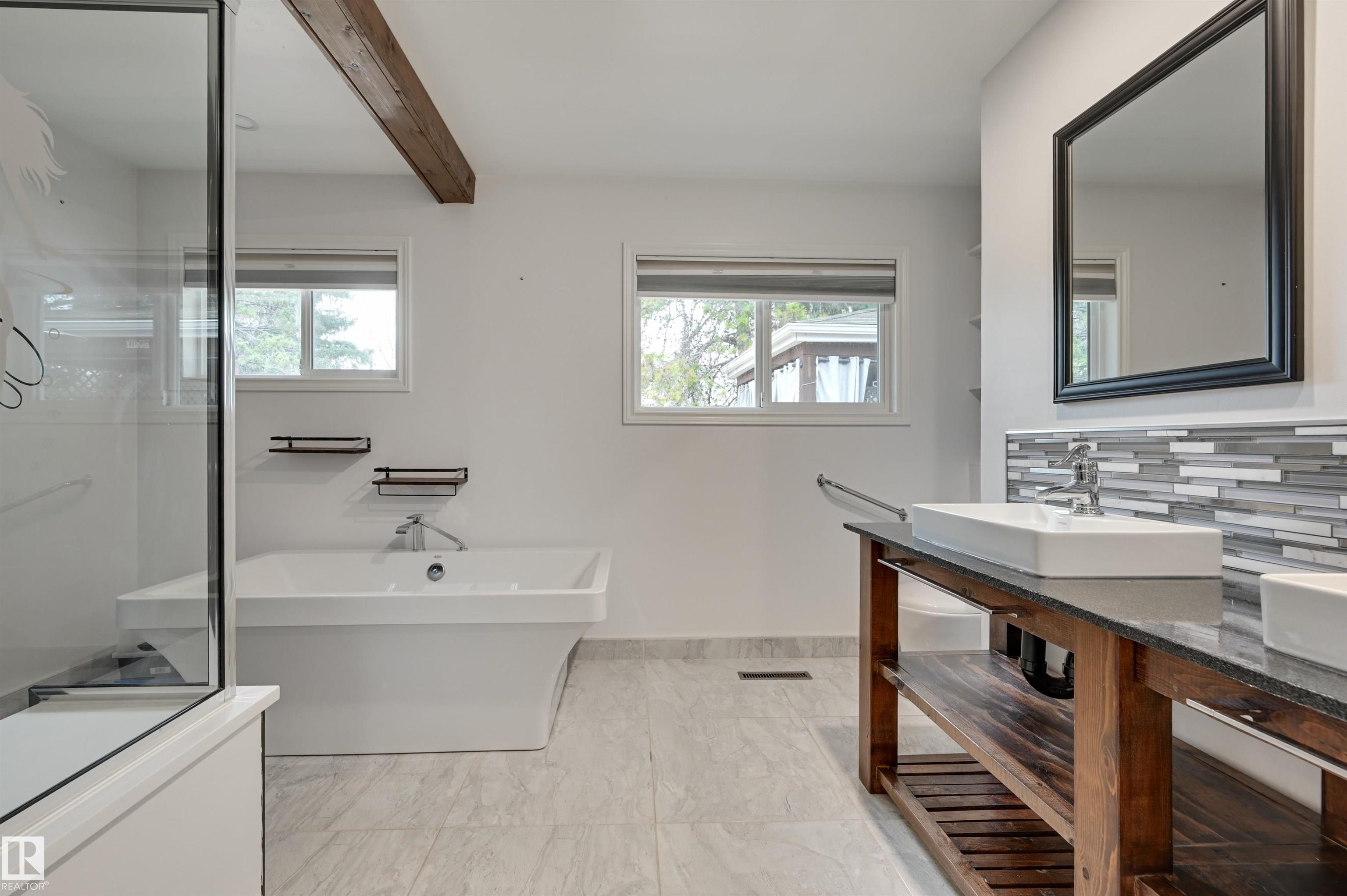 Acreage-Like Living in Sherwood Heights! Experience peaceful living in the heart of the city with this beautifully upgraded home across from a park. Enjoy your private, fully landscaped backyard oasis featuring an above-ground pool with deck, a hot tub with gazebo, a full outdoor bar/kitchen with built-in BBQ , a cozy firepit area, & a tranquil water feature. Inside, the open-concept main floor offers a spacious living room & a kitchen with a large island with stovetop, & stainless steel appliances incl double ovens. The primary bedroom is a true retreat with garden doors leading directly to the pool & hot tub area. The main level also includes two addl bedrooms & a stylish 5-piece bathroom. The fully finished lower level features a large rec room?ideal for movie nights or game time?a fourth bedroom, and a 3-piece bath. Enjoy an active lifestyle. Close to pickleball courts, an ice rink, schools, & shopping. Upgrades incl: widened driveway & RV parking (2020); shingles (2021); 50-gallon HWT, R60 in attic