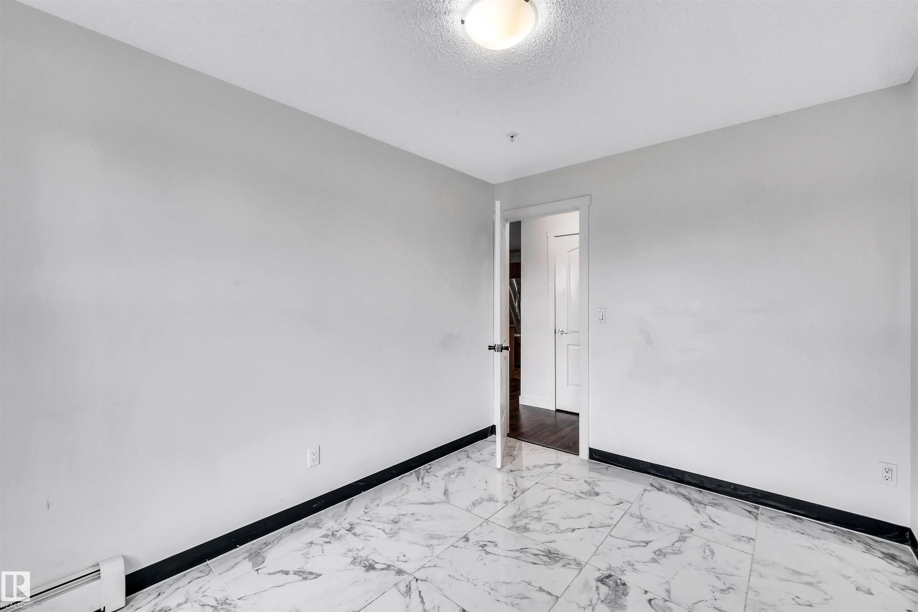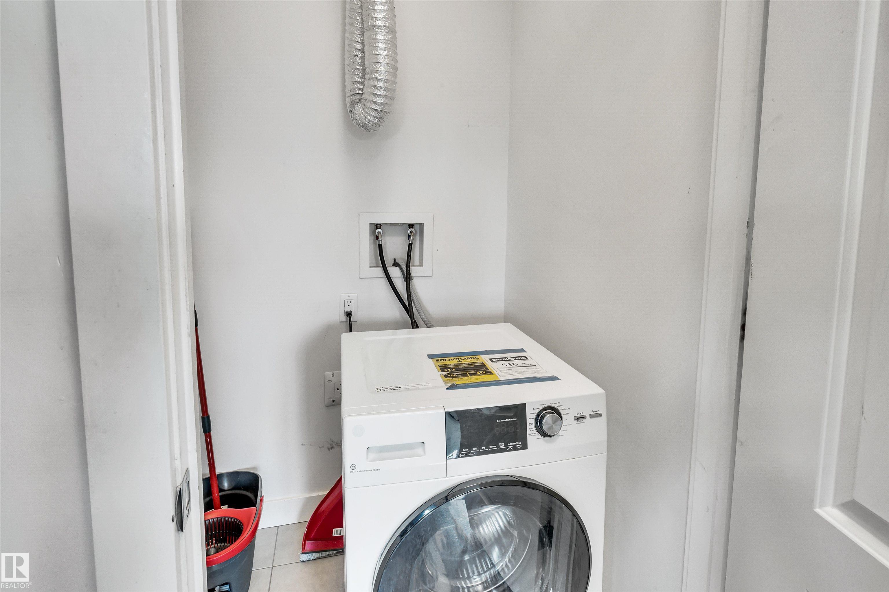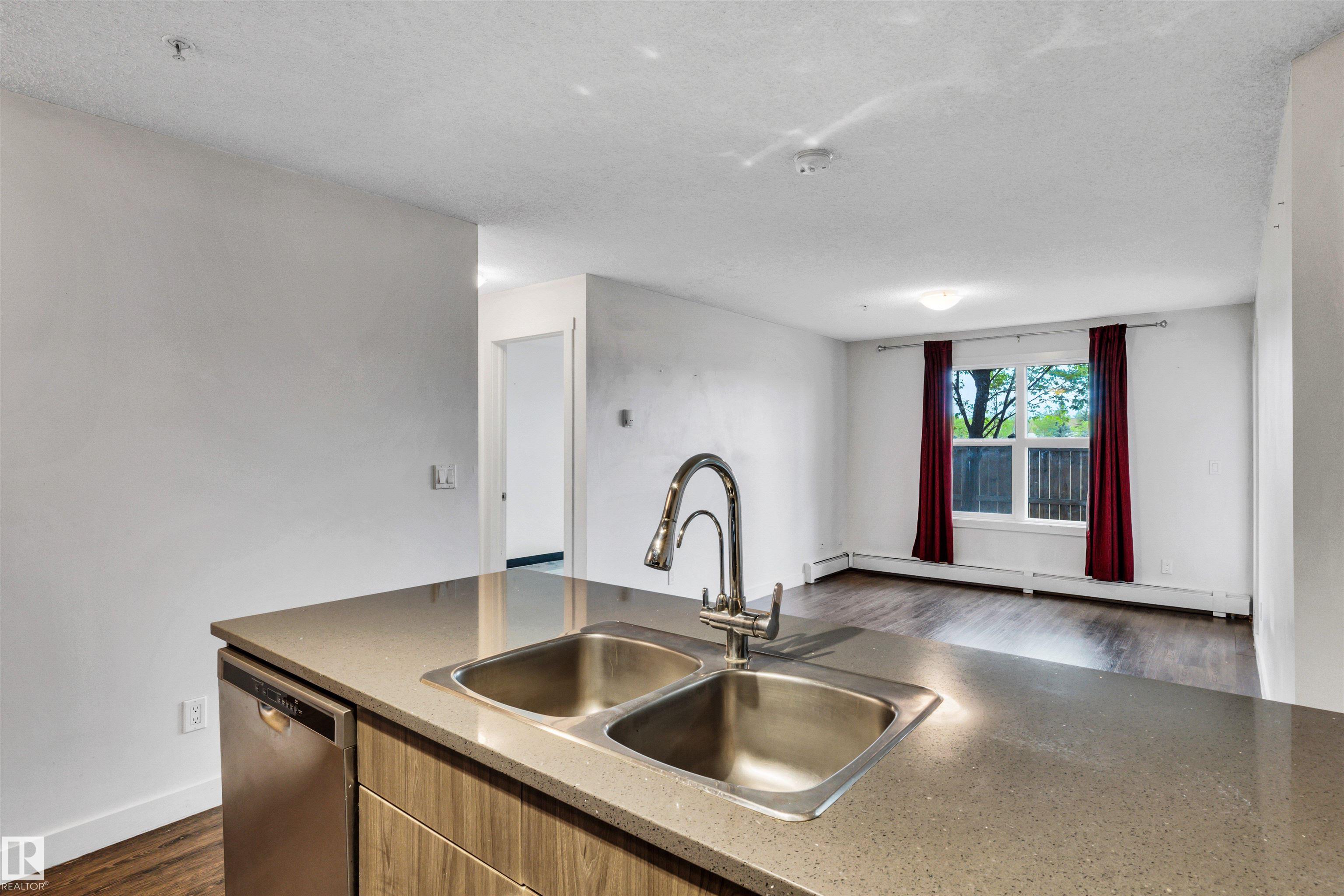 Welcome to this bright and modern main floor condo located in the desirable community of Walker in southwest Edmonton. This spacious unit offers 2 bedrooms and 2 full bathrooms, making it an ideal choice for first-time buyers, downsizers, or investors. Built in 2014, the home features a functional open layout with stainless steel appliances, an in-suite washer and dryer, and a bonus water purifier. Both bedrooms are finished with elegant marble flooring, while the living room offers durable laminate, ensuring there is no carpet throughout the unit. Enjoy the convenience of direct ground-level access and a private patio, perfect for relaxing outdoors. A parking stall is located just steps from your door for added ease. With a little personal touch, this condo can easily become your perfect home or a smart investment. Enjoy being minutes away from shopping, restaurants, schools, and public transit.