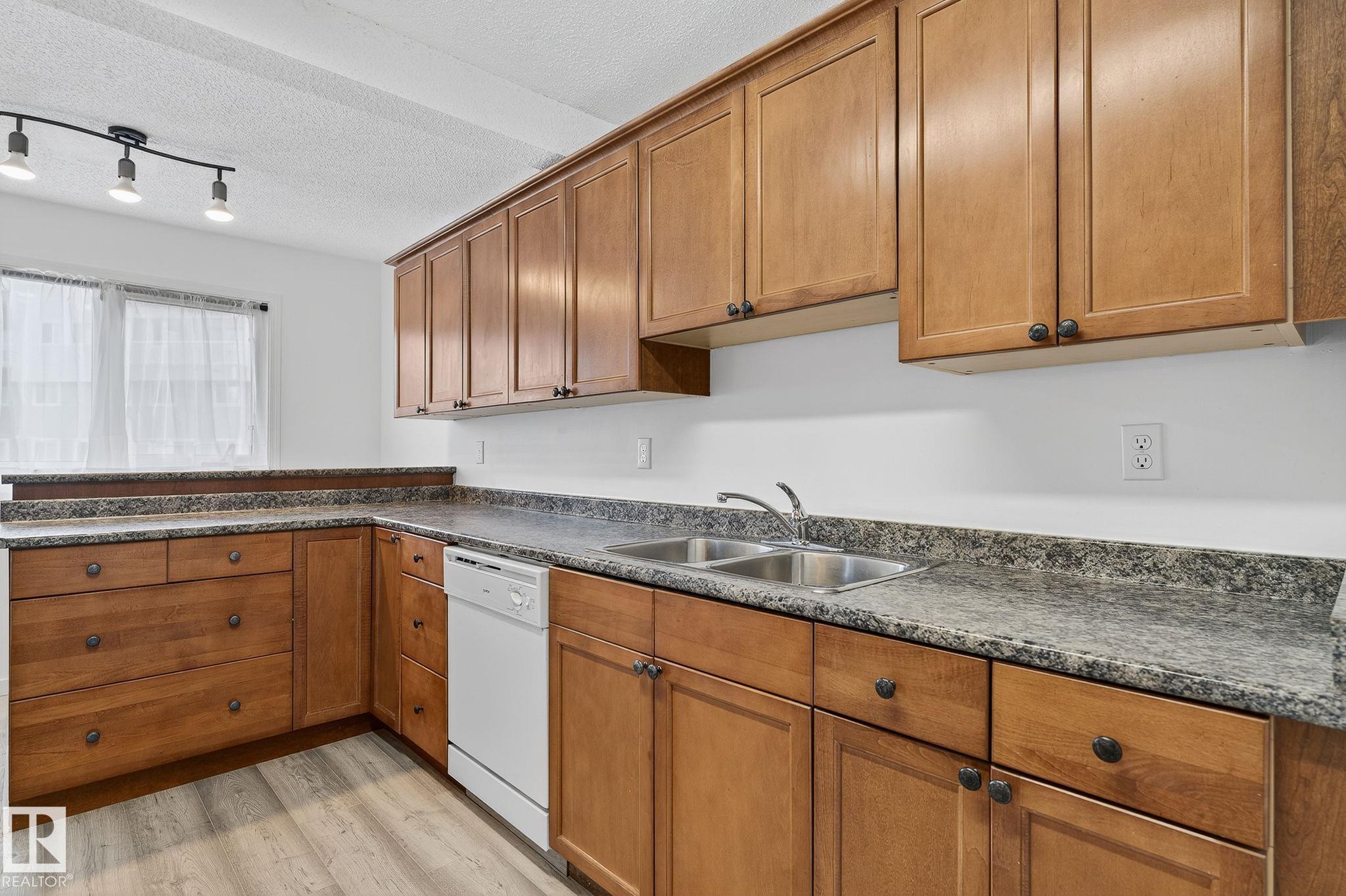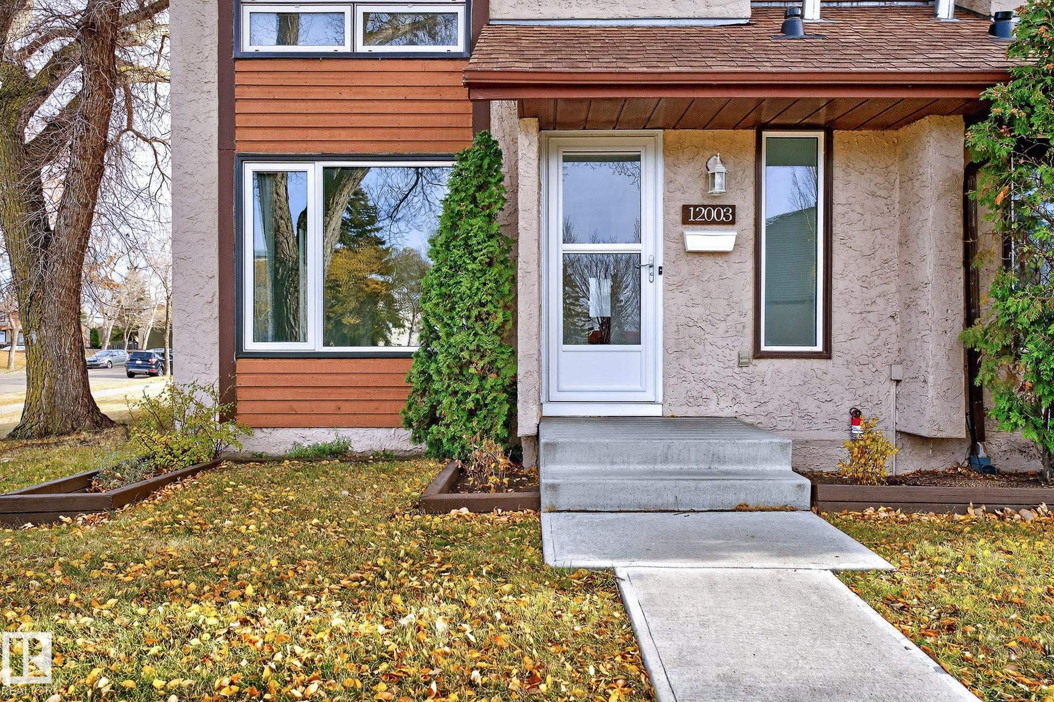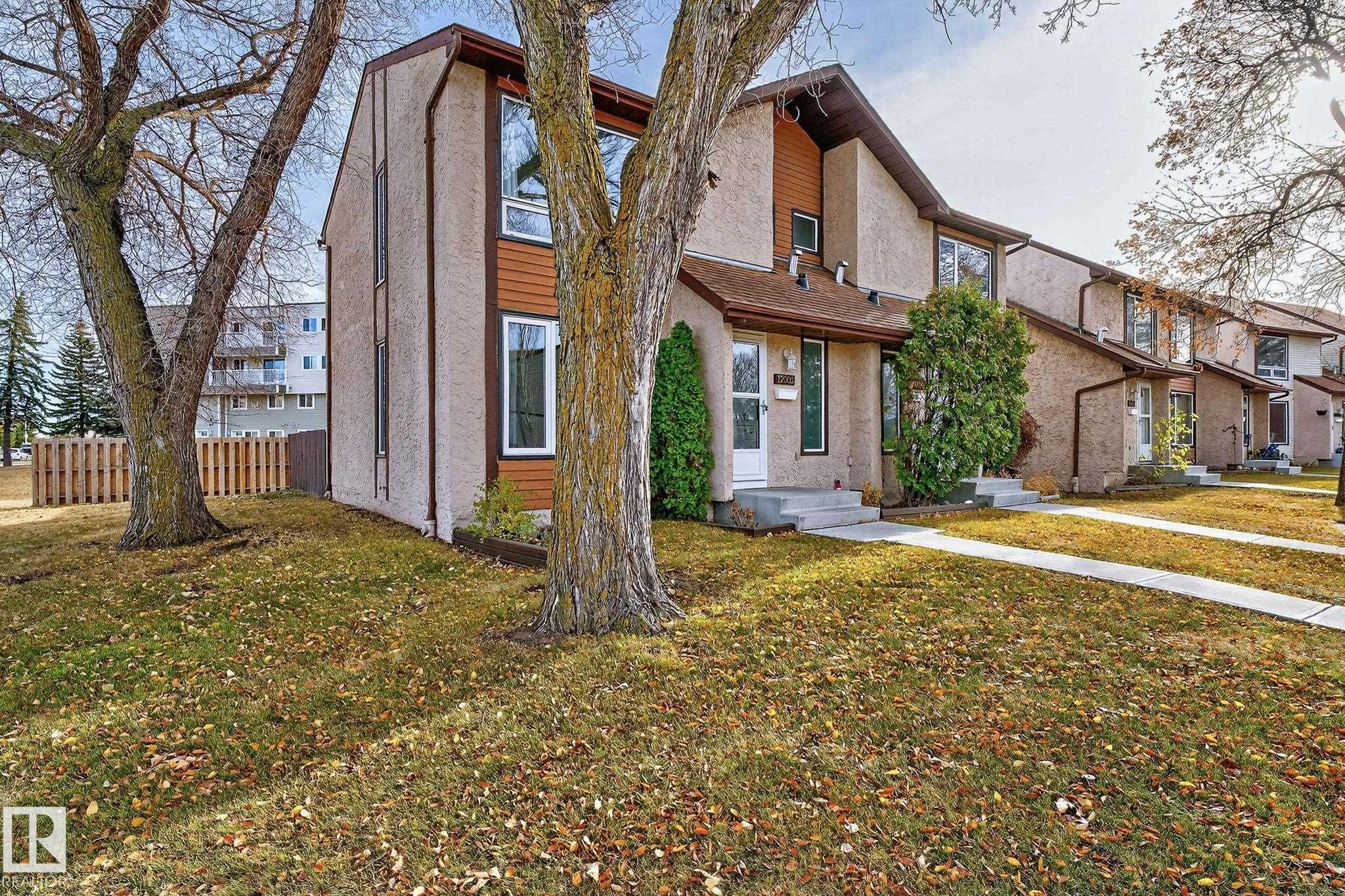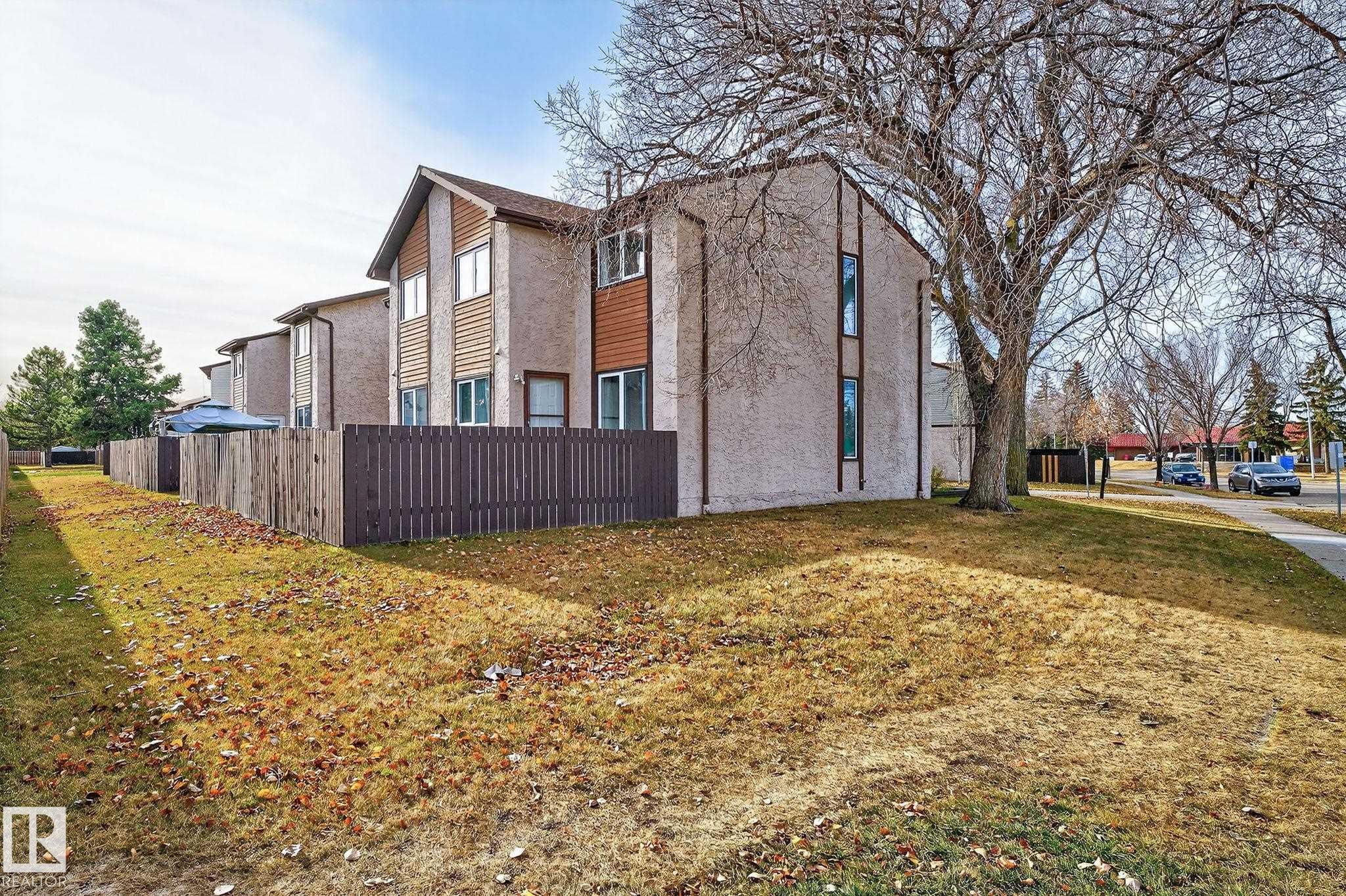 Welcome home to this bright 1,223sq ft end-unit townhouse backing greenspace in Dunluce, with two parking stalls in front. Step inside to find large windows filling the main floor with natural light. Easy-care flooring flows through the home and with no carpet anywhere it's perfect for the family with a busy lifestyle. The open living room connects seamlessly to a generous dining area, ideal for entertaining. The kitchen offers plenty of cabinetry, counter space, and a cozy eat-in nook. A convenient 2-piece bath completes the main floor. Upstairs, discover three bedrooms including a large primary suite with full-length closets, plus a 4-piece family bath. The fully finished basement adds a rec room, flex space, and tons of storage. Outside, enjoy a private fenced yard?great for summer BBQs. Located across from a park, within walking distance to schools and playgrounds, and minutes from shopping, dining, and transit?this is comfortable, convenient living at its best! A must see to truly be appreciated.