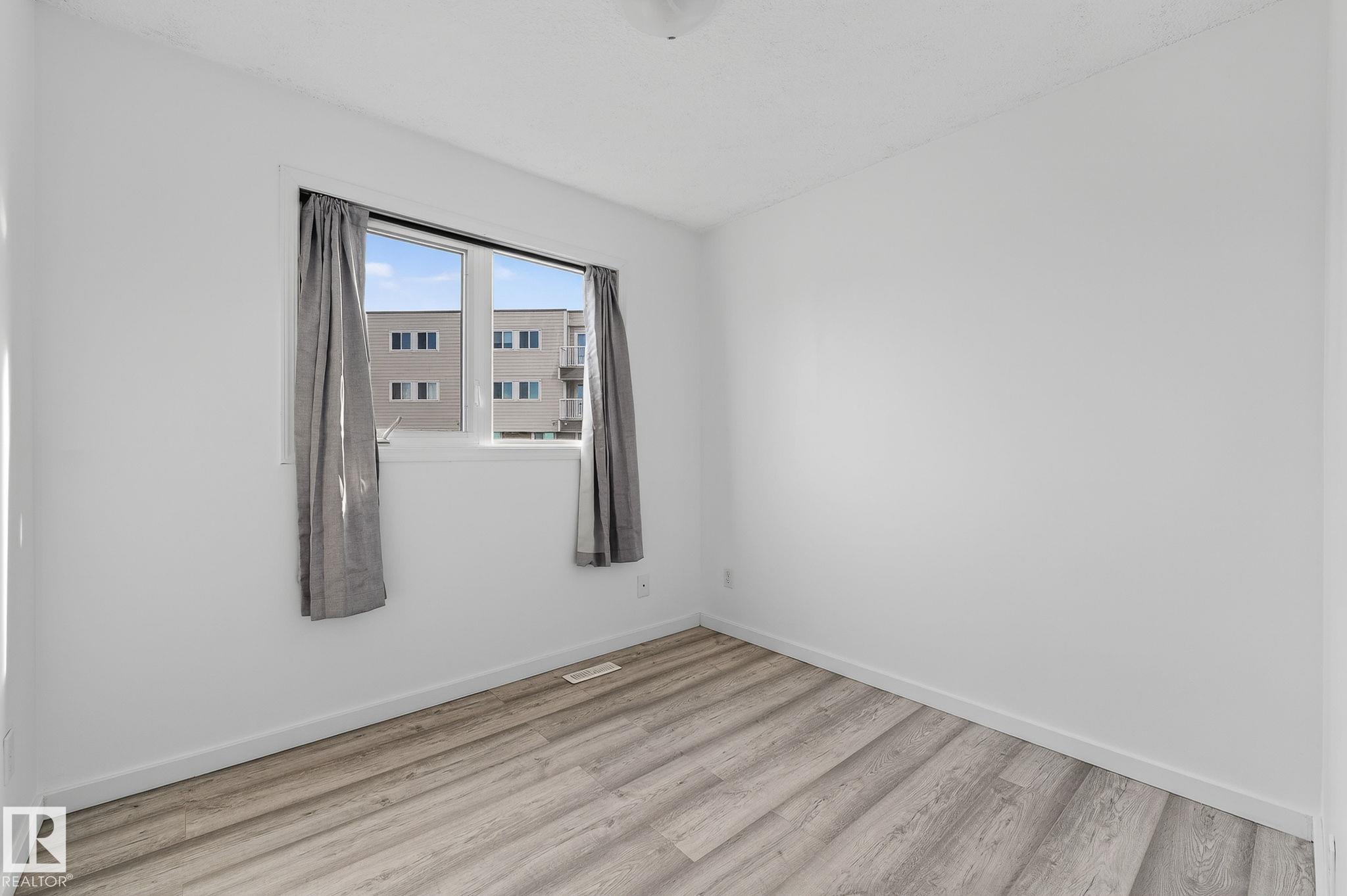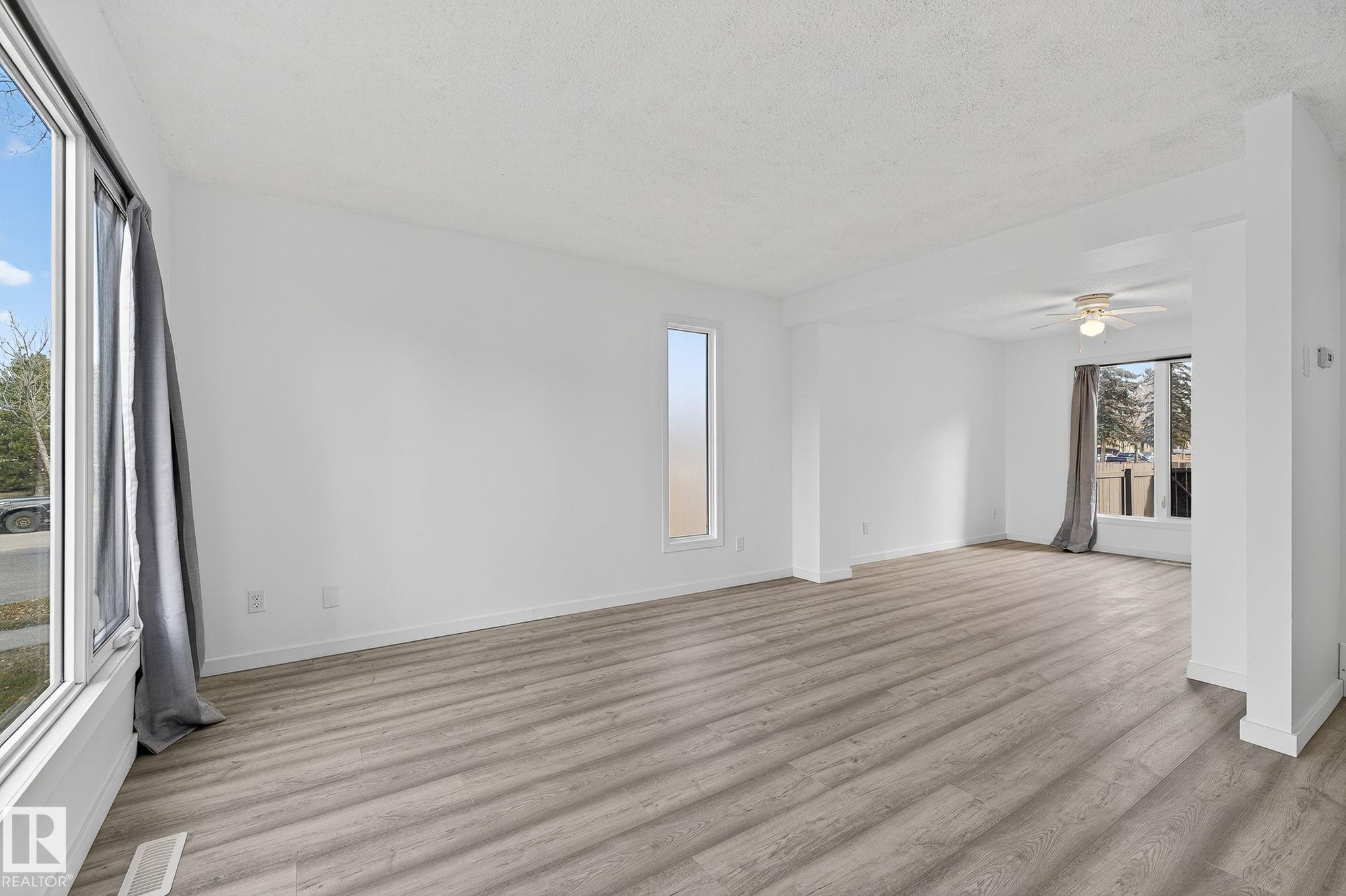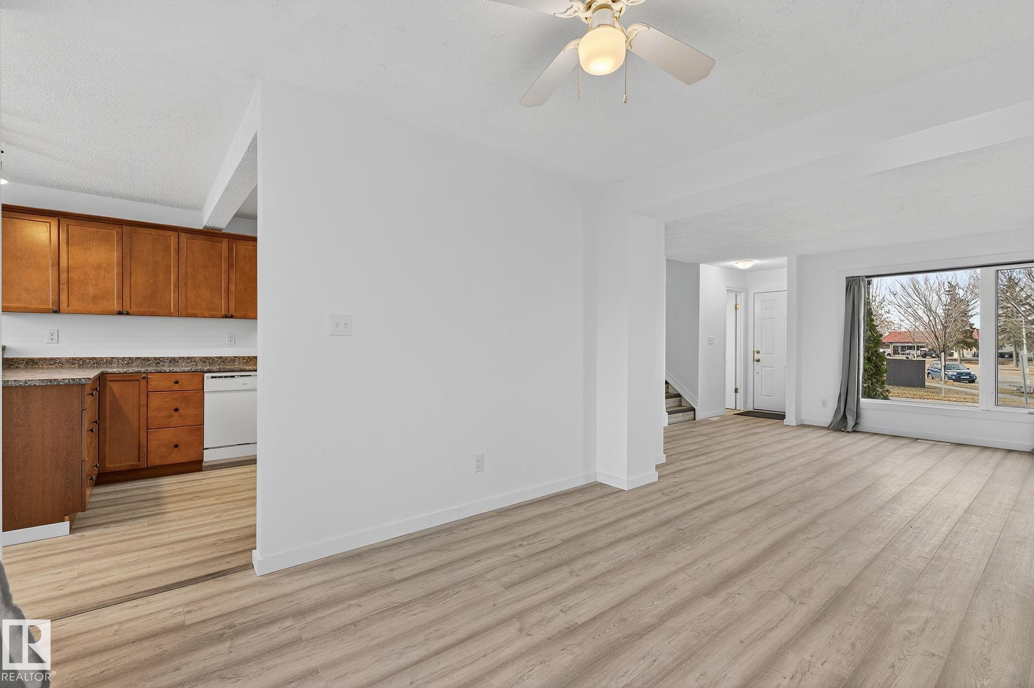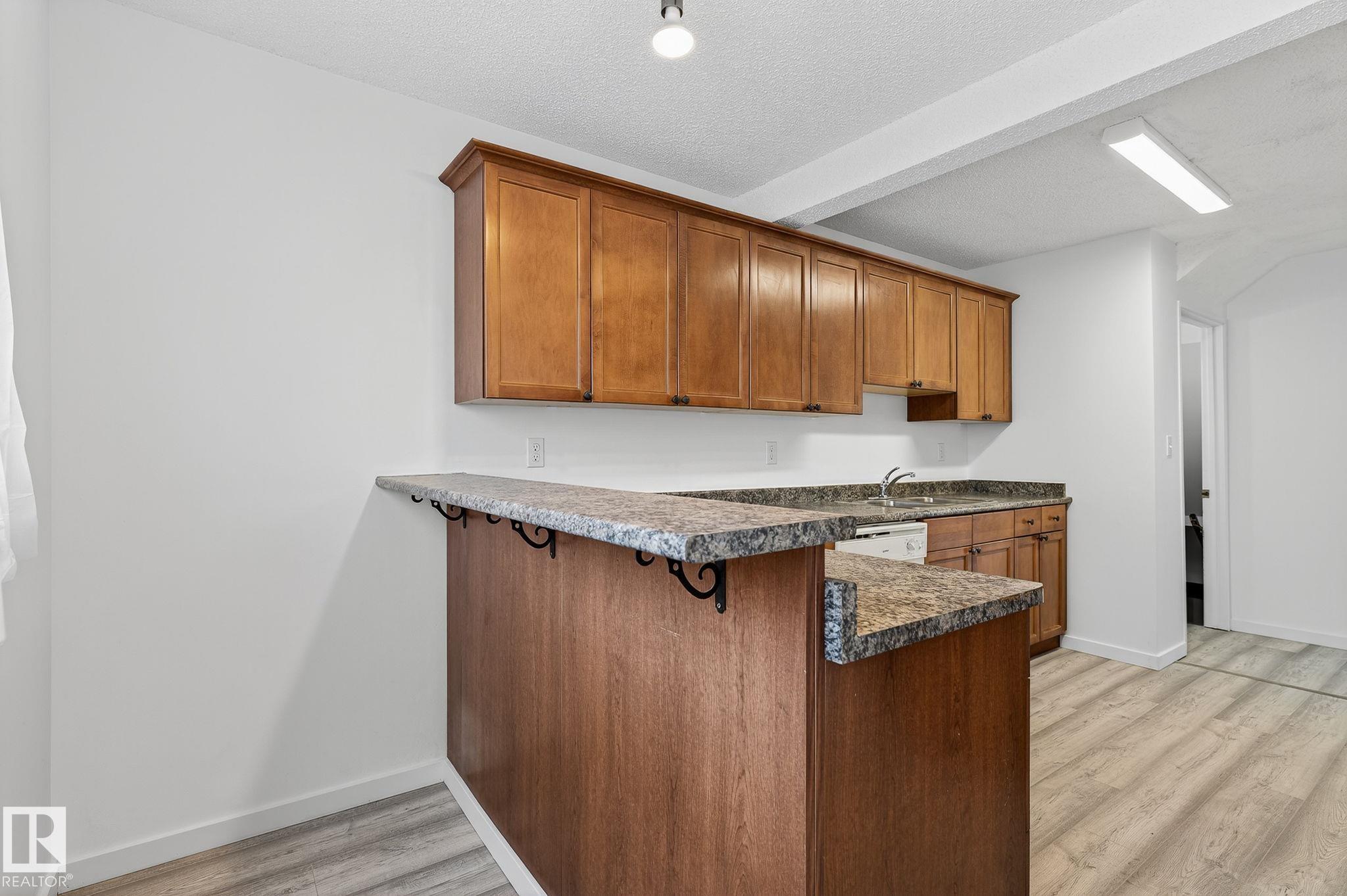 Welcome home to this bright 1,223sq ft end-unit townhouse backing greenspace in Dunluce, with two parking stalls in front. Step inside to find large windows filling the main floor with natural light. Easy-care flooring flows through the home and with no carpet anywhere it's perfect for the family with a busy lifestyle. The open living room connects seamlessly to a generous dining area, ideal for entertaining. The kitchen offers plenty of cabinetry, counter space, and a cozy eat-in nook. A convenient 2-piece bath completes the main floor. Upstairs, discover three bedrooms including a large primary suite with full-length closets, plus a 4-piece family bath. The fully finished basement adds a rec room, flex space, and tons of storage. Outside, enjoy a private fenced yard?great for summer BBQs. Located across from a park, within walking distance to schools and playgrounds, and minutes from shopping, dining, and transit?this is comfortable, convenient living at its best! A must see to truly be appreciated.