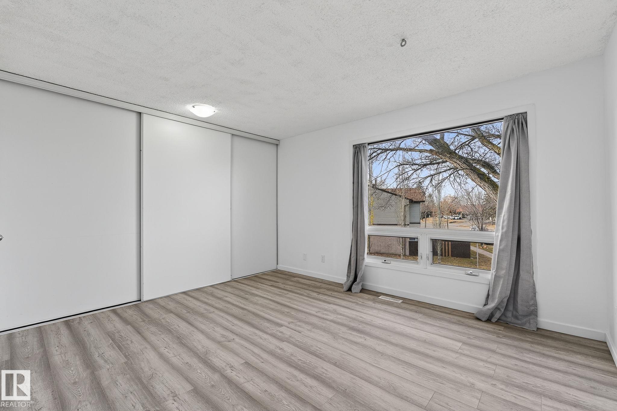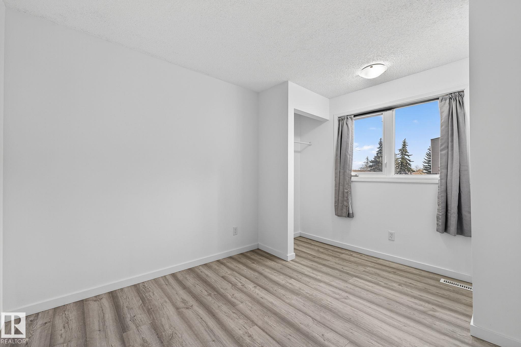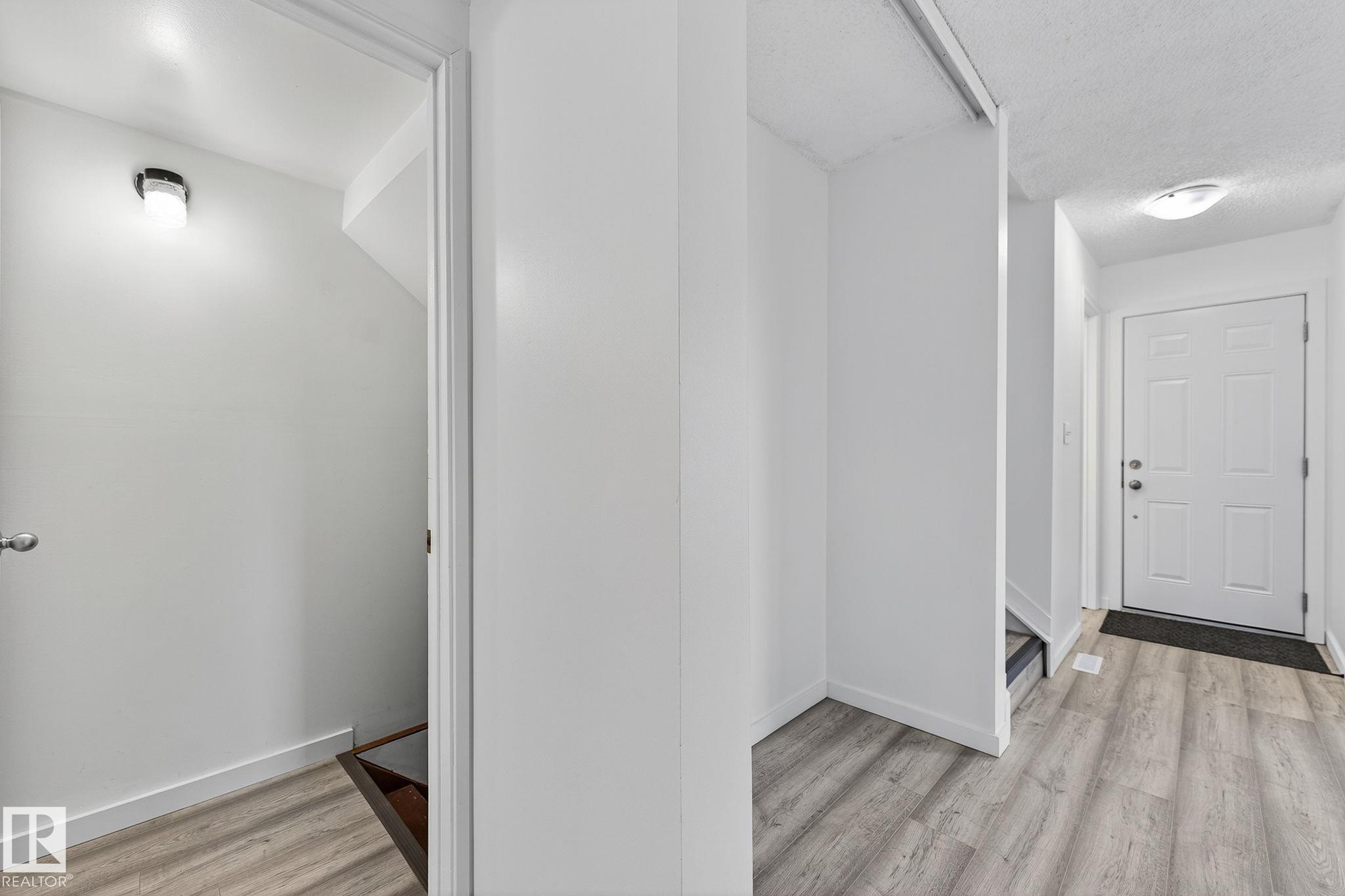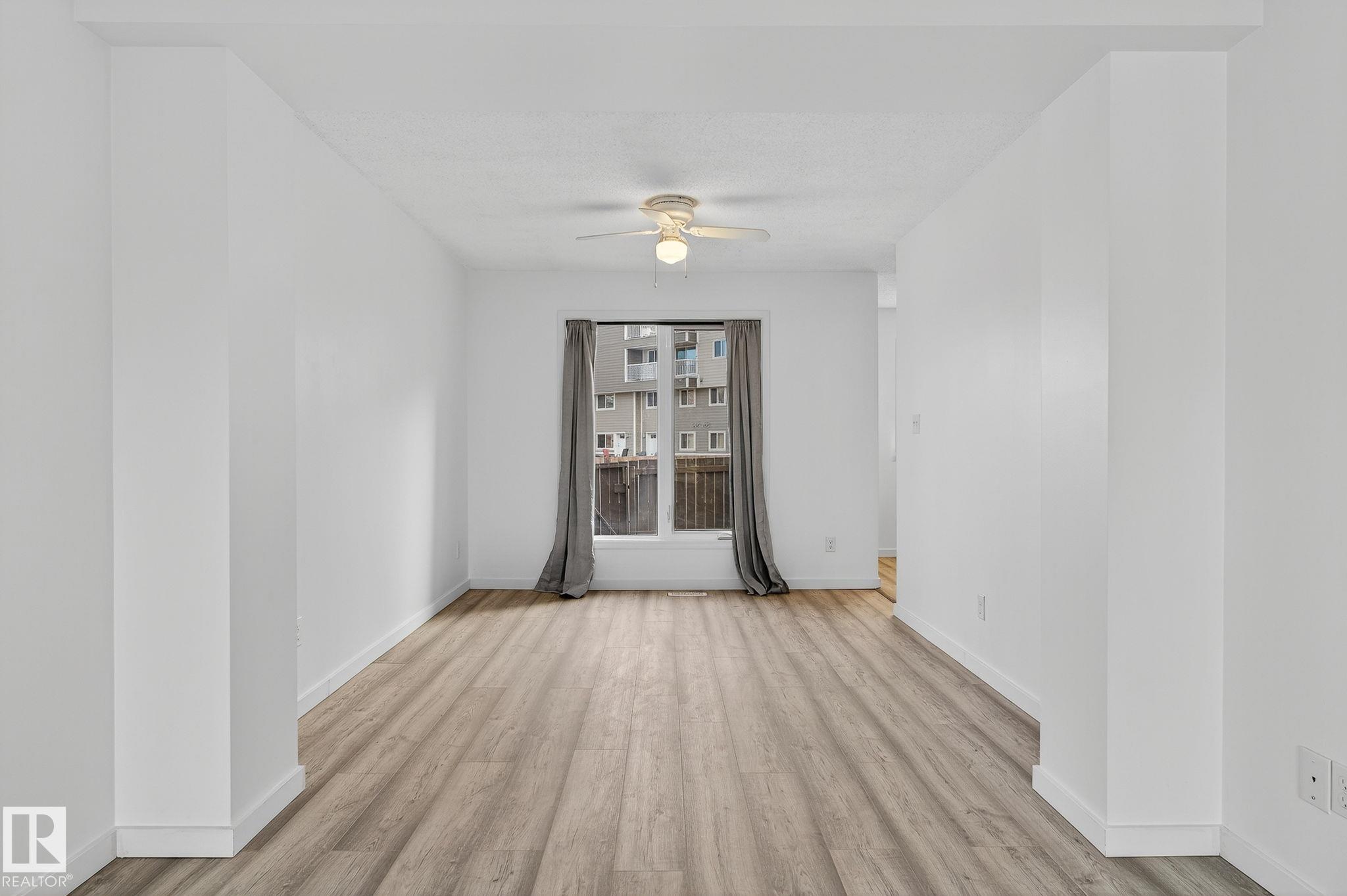 Welcome home to this bright 1,223sq ft end-unit townhouse backing greenspace in Dunluce, with two parking stalls in front. Step inside to find large windows filling the main floor with natural light. Easy-care flooring flows through the home and with no carpet anywhere it's perfect for the family with a busy lifestyle. The open living room connects seamlessly to a generous dining area, ideal for entertaining. The kitchen offers plenty of cabinetry, counter space, and a cozy eat-in nook. A convenient 2-piece bath completes the main floor. Upstairs, discover three bedrooms including a large primary suite with full-length closets, plus a 4-piece family bath. The fully finished basement adds a rec room, flex space, and tons of storage. Outside, enjoy a private fenced yard?great for summer BBQs. Located across from a park, within walking distance to schools and playgrounds, and minutes from shopping, dining, and transit?this is comfortable, convenient living at its best! A must see to truly be appreciated.