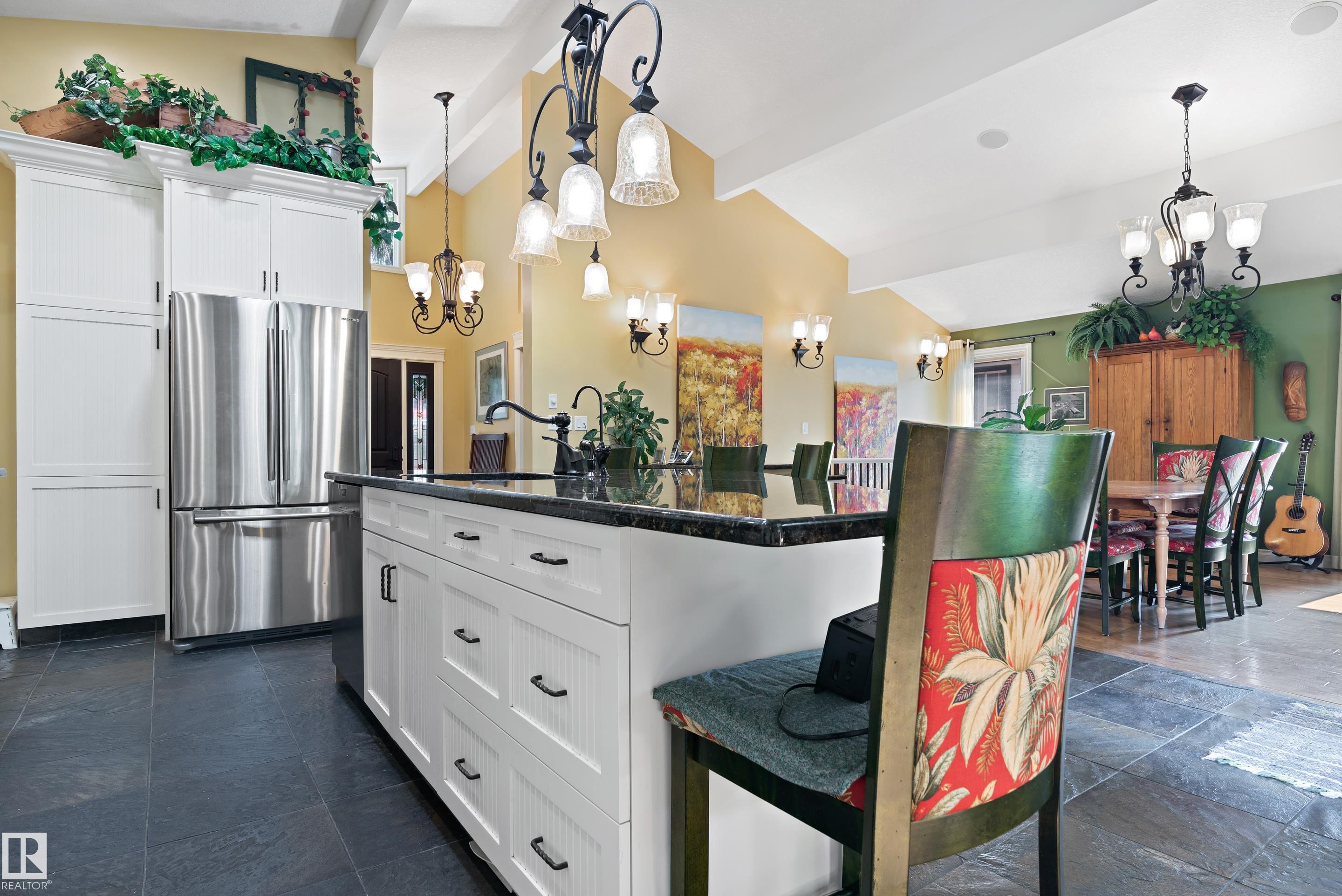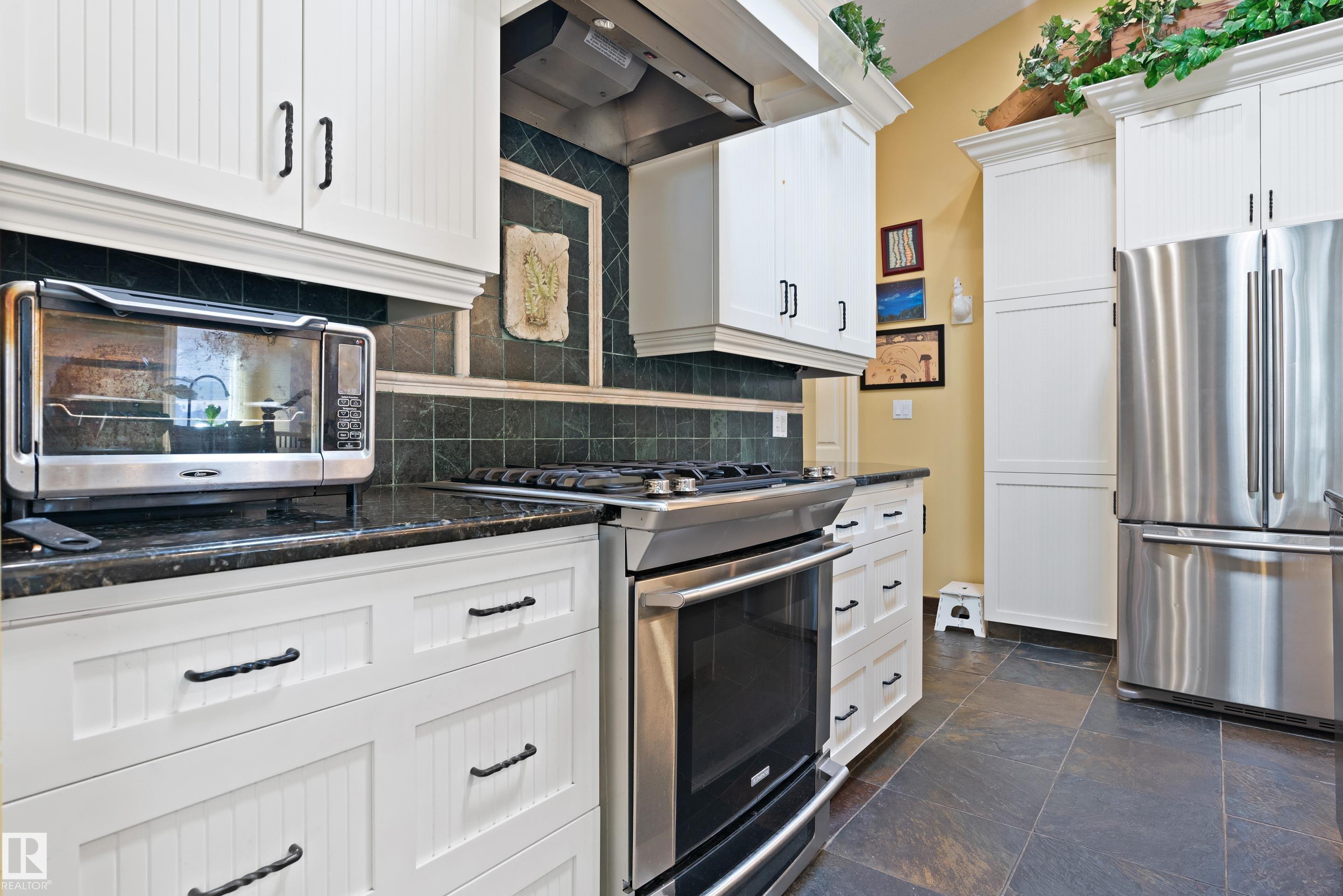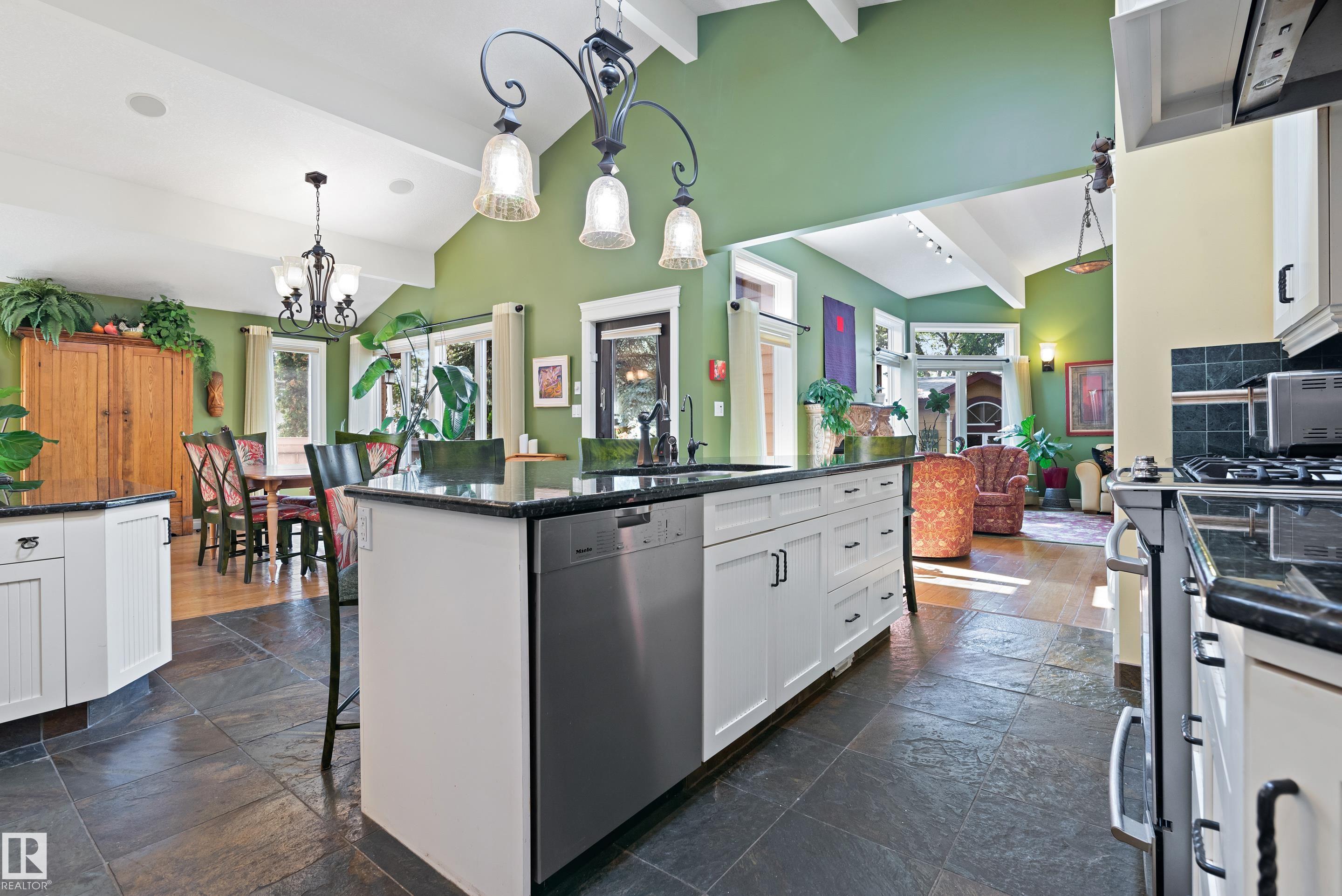 Outstanding! Majorly renovated and upgraded bungalow in a very desirable location. Some of the notable features include the open beam vaulted ceilings throughout the main floor, the huge chef's kitchen with antique finish shaker maple cabinets, dark granite counters and walk in pantry, quality hand scraped engineered hardwood and slate tile flooring. The large living room with gas fireplace, 2 bedrooms, 2 full bathrooms, an amazing den with a library plus the laundry room complete the main level. The primary bdrm has a walk in closet and a spa like ensuite bathroom with walk in shower. The finished basement has spacious family room with wet bar, a 3rd bedroom, 3 pc bathroom and dry sauna. Double detached garage plus a separate heated workshop. The back yard is quite private, is fully landscaped with mature trees and perennials and there is a welcoming composite deck across the back of the home. Fantastic property, rare opportunity in Brookside!