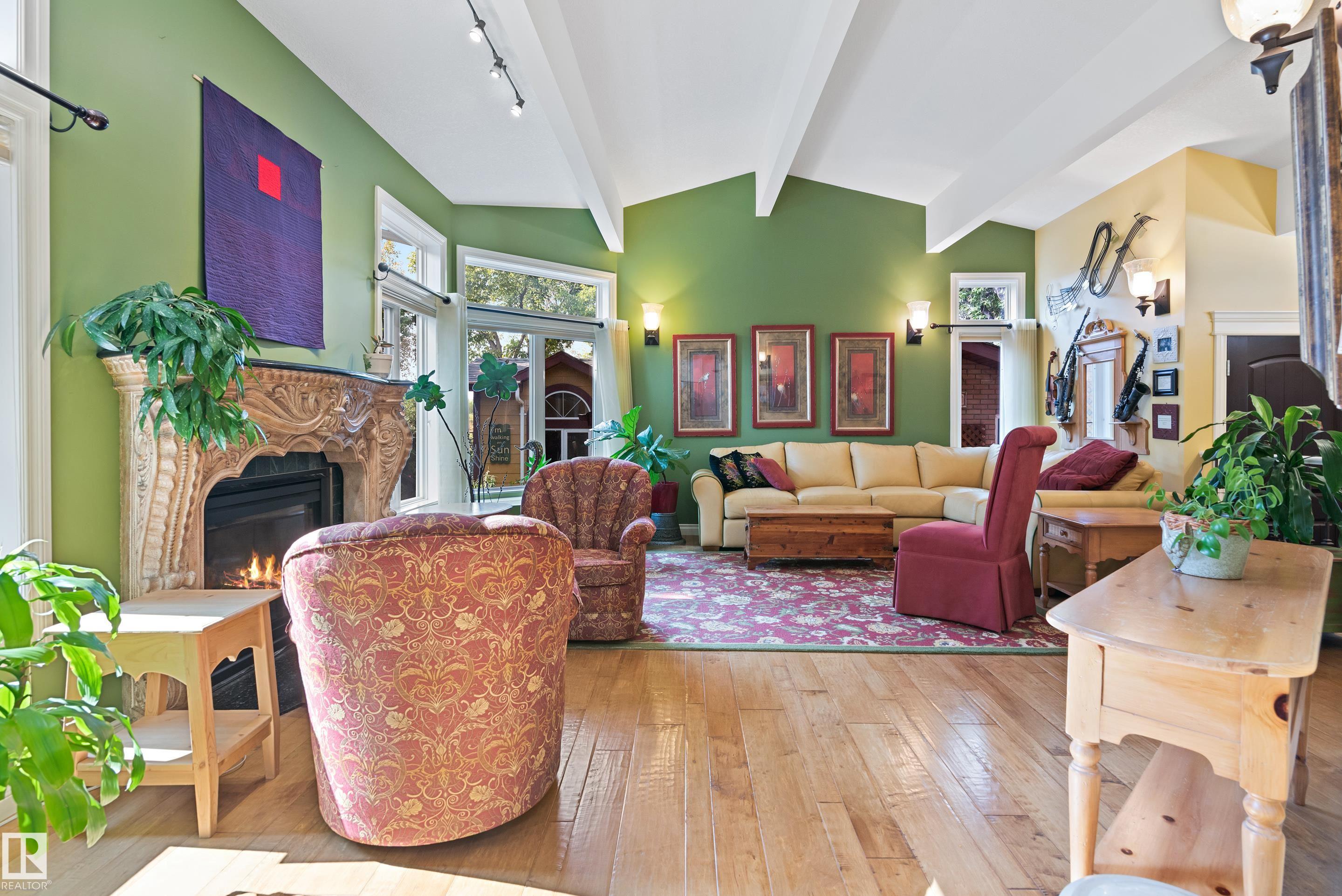 Outstanding! Majorly renovated and upgraded bungalow in a very desirable location. Some of the notable features include the open beam vaulted ceilings throughout the main floor, the huge chef's kitchen with antique finish shaker maple cabinets, dark granite counters and walk in pantry, quality hand scraped engineered hardwood and slate tile flooring. The large living room with gas fireplace, 2 bedrooms, 2 full bathrooms, an amazing den with a library plus the laundry room complete the main level. The primary bdrm has a walk in closet and a spa like ensuite bathroom with walk in shower. The finished basement has spacious family room with wet bar, a 3rd bedroom, 3 pc bathroom and dry sauna. Double detached garage plus a separate heated workshop. The back yard is quite private, is fully landscaped with mature trees and perennials and there is a welcoming composite deck across the back of the home.  Fantastic property, rare opportunity in Brookside!