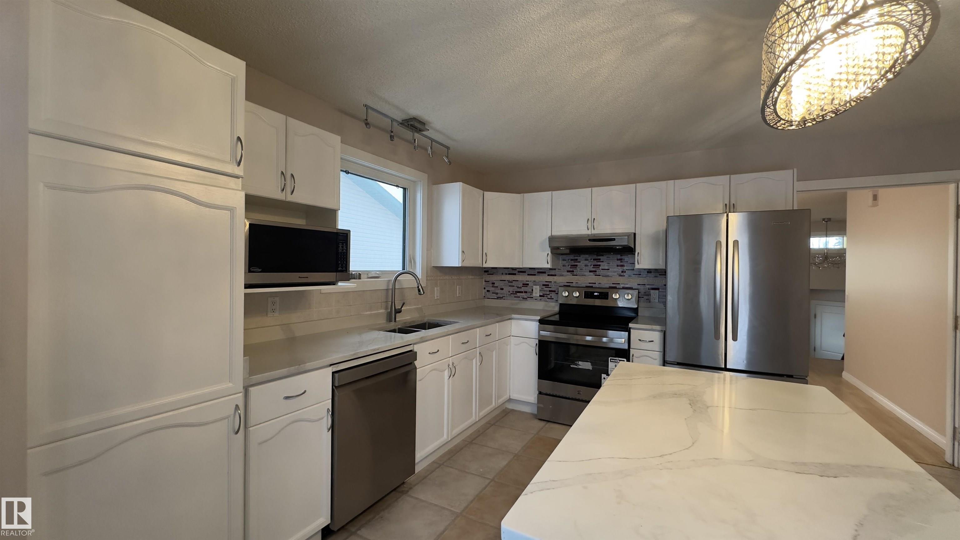 Spacious 1993 bi-level home with abundant natural light through triple-pane windows. Open concept main floor with large dining and living areas, ideal for entertaining. Kitchen features stainless steel appliances and glass sliding doors leading to the outdoor deck overlooking the backyard. Primary bedroom includes walk-in closet and renovated ensuite. Two additional bedrooms and a renovated 4-piece main bath complete the main floor. Lower level is freshly painted with large windows, a versatile nook for exercise or wet bar, a 4th bedroom, and a large basement bath with jetted tub. Home includes air conditioning, high-efficiency furnace, tankless hot water, and insulated garage door. Conveniently located 200m from off-leash dog area and close to all shopping amenities.