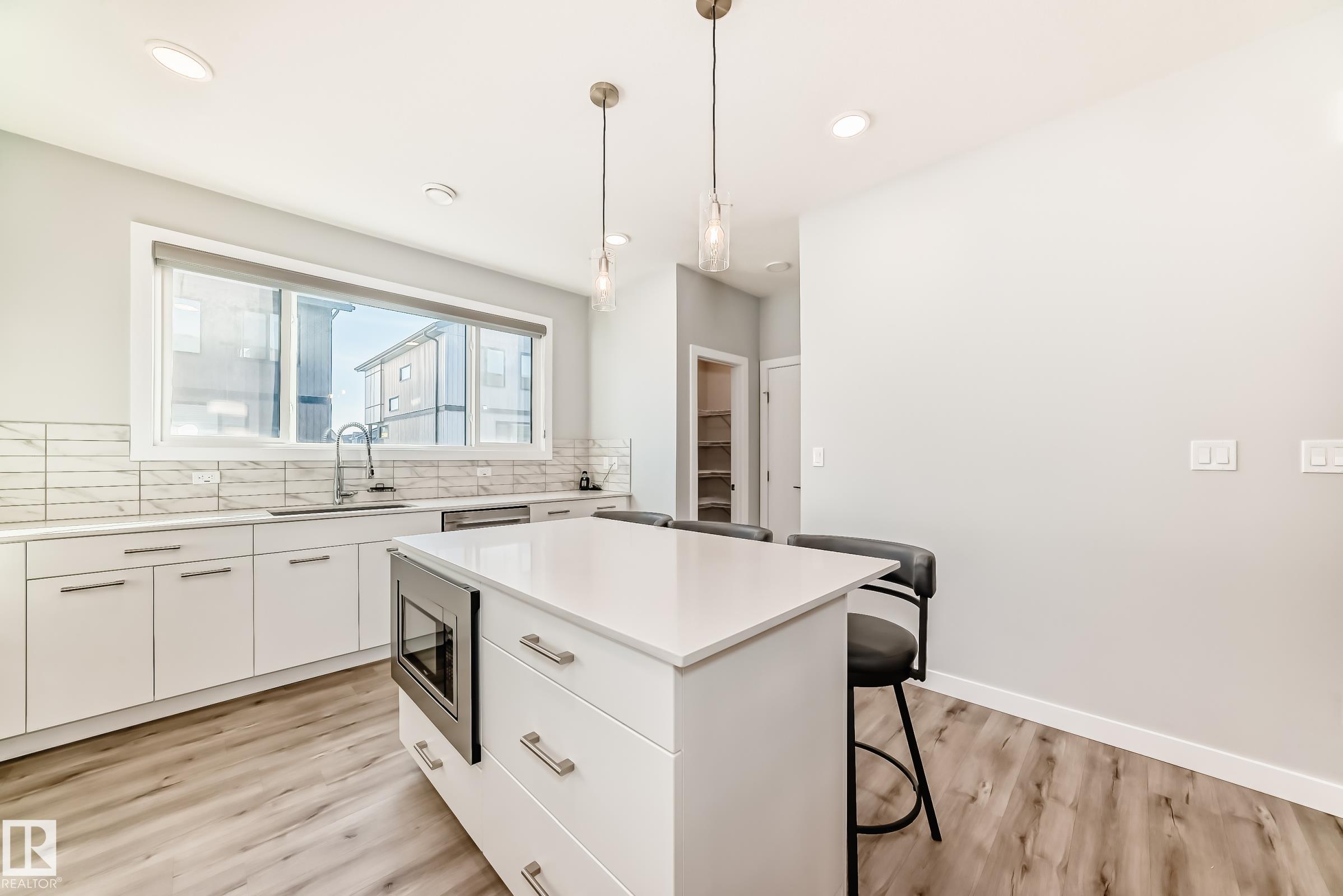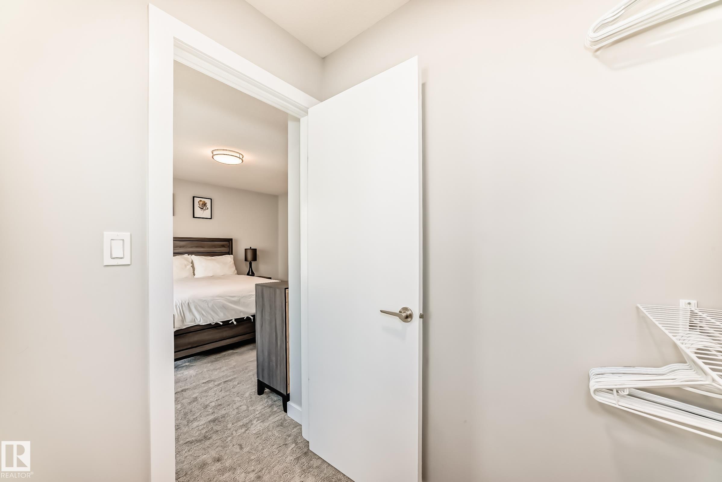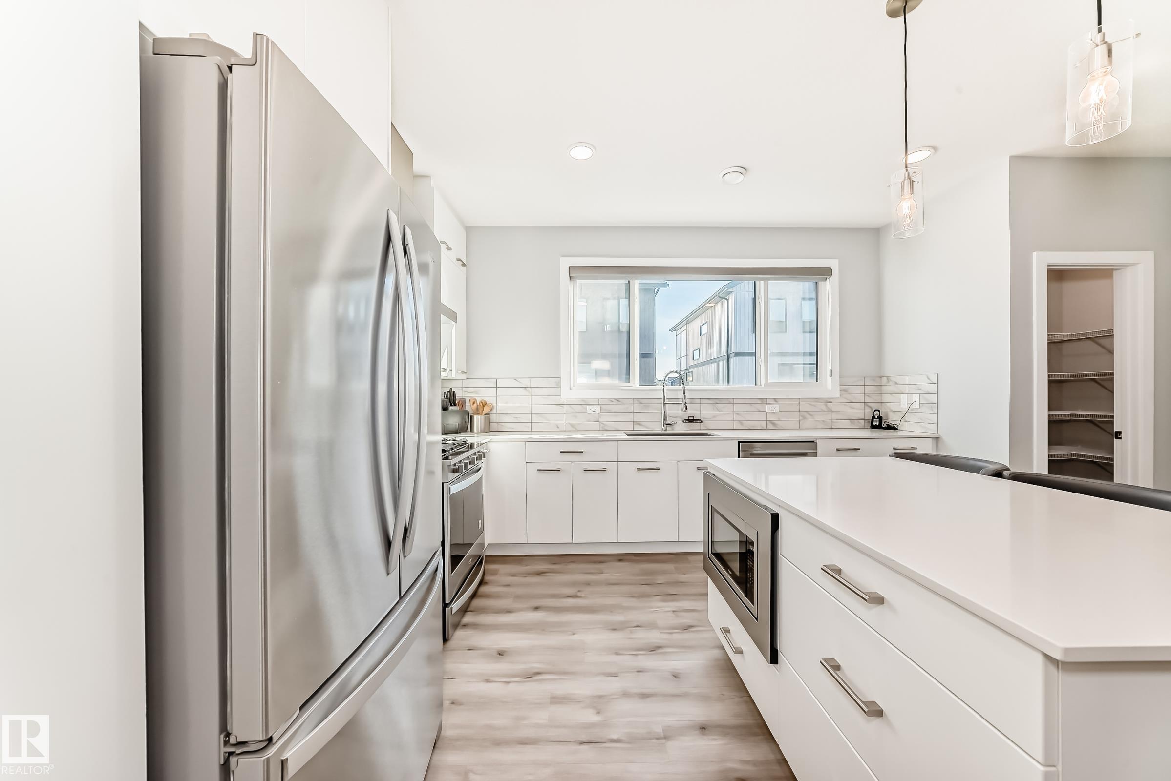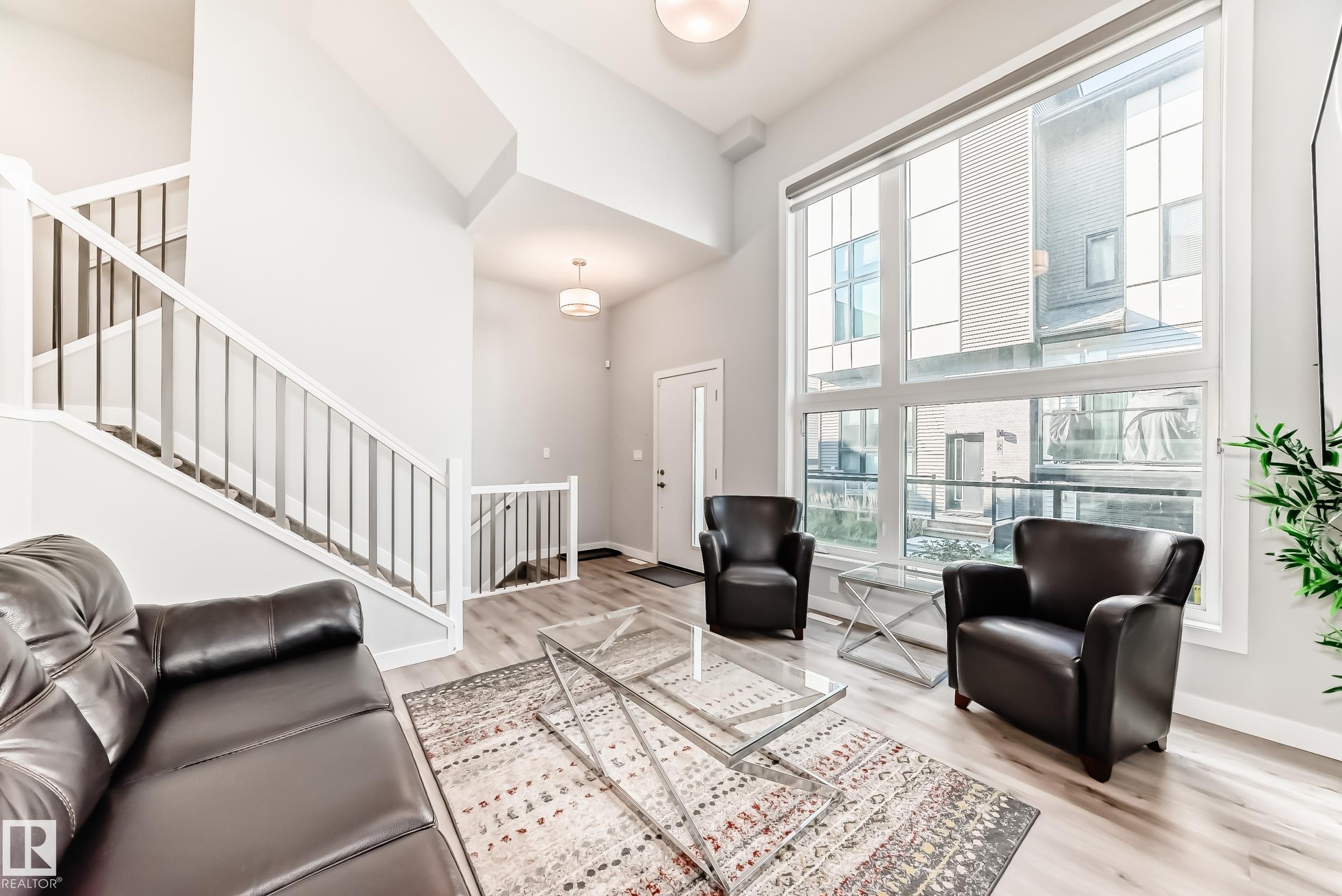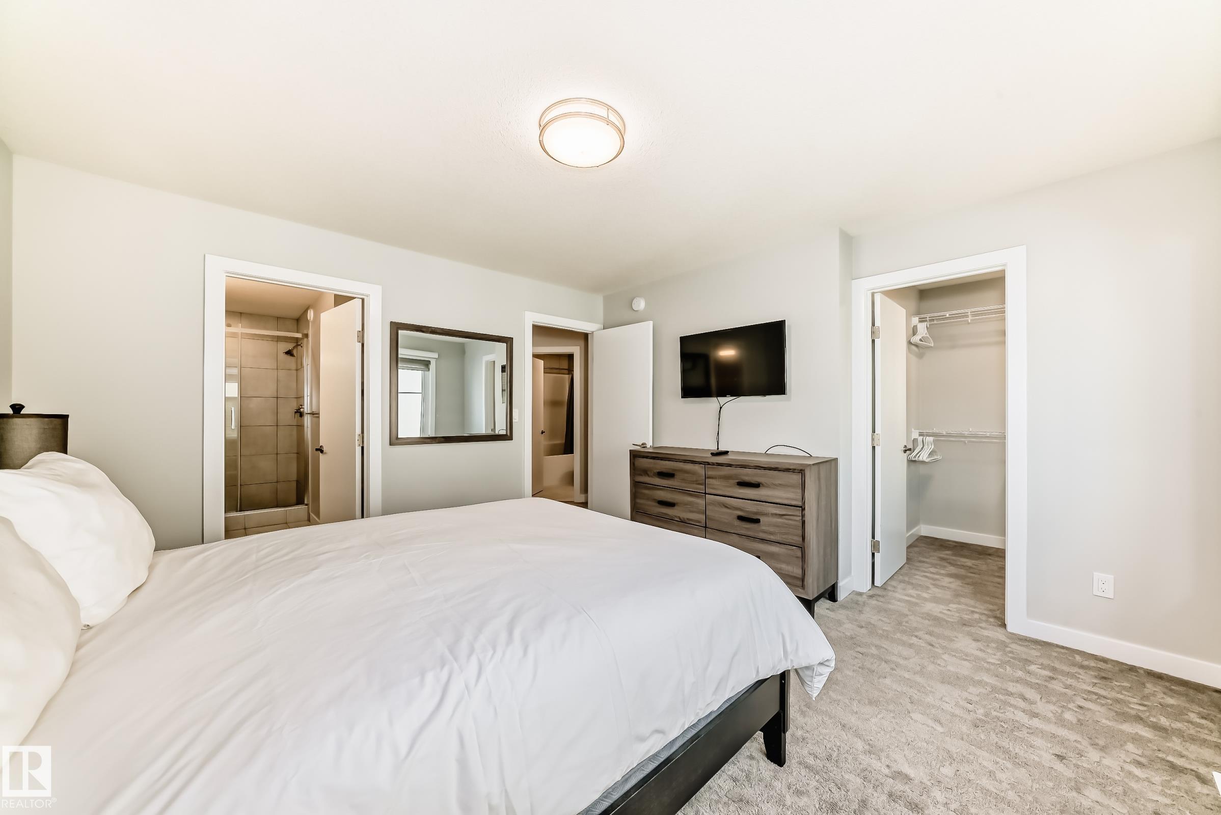 Extremely well-maintained 2-storey home in sought-after Emerald Hills, just steps from all amenities! This Paris II model by Cantiro Homes offers charming curb appeal with a front veranda and BBQ gas line. Inside, the welcoming foyer opens to a stunning living room with soaring vaulted ceilings, highlighted by an electric fireplace with a floor to ceiling tile surround. The bright kitchen overlooks the living room and features stainless steel appliances, a central island, and quartz countertops. Upstairs, the spacious primary suite boasts a walk-in closet and 4 piece ensuite. Two additional bedrooms and the convenience of upper-level laundry complete the Upstairs. The basement provides a large flex space perfect for a home office, gym, or extra storage along with direct access to the double attached garage.