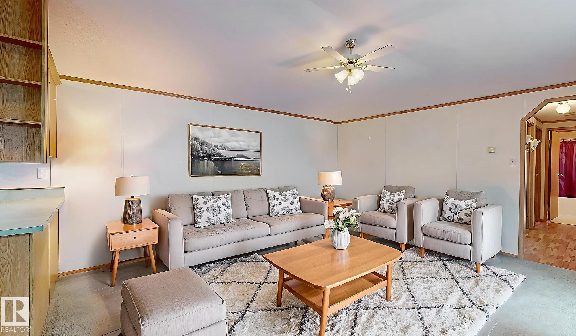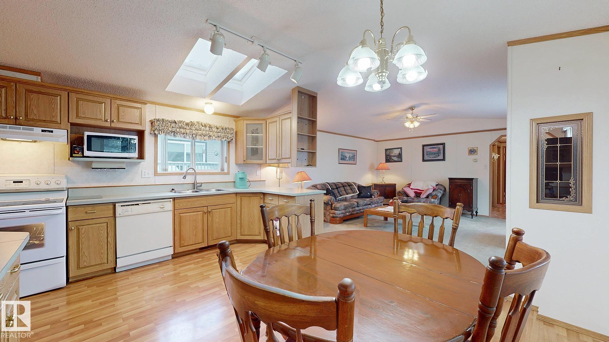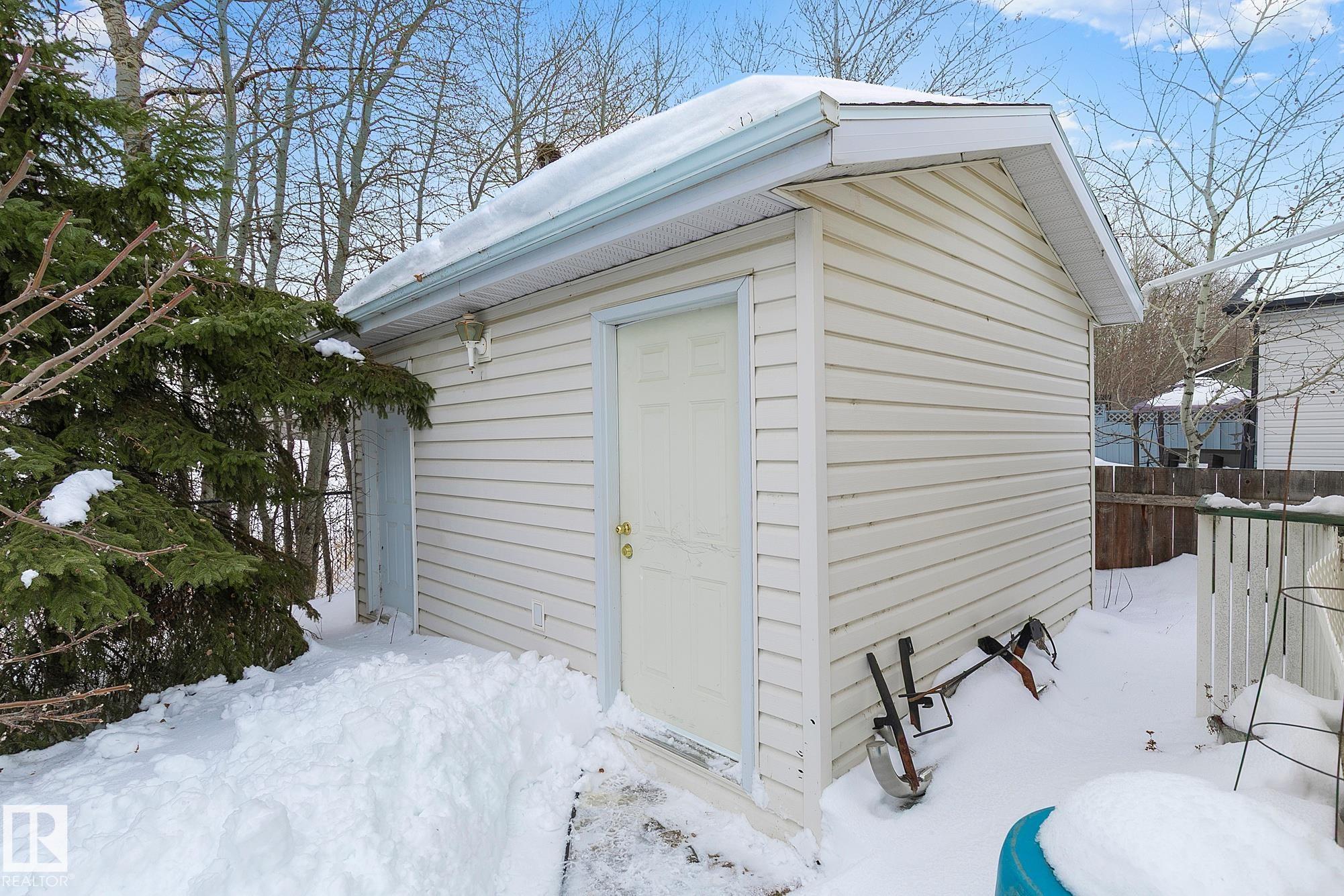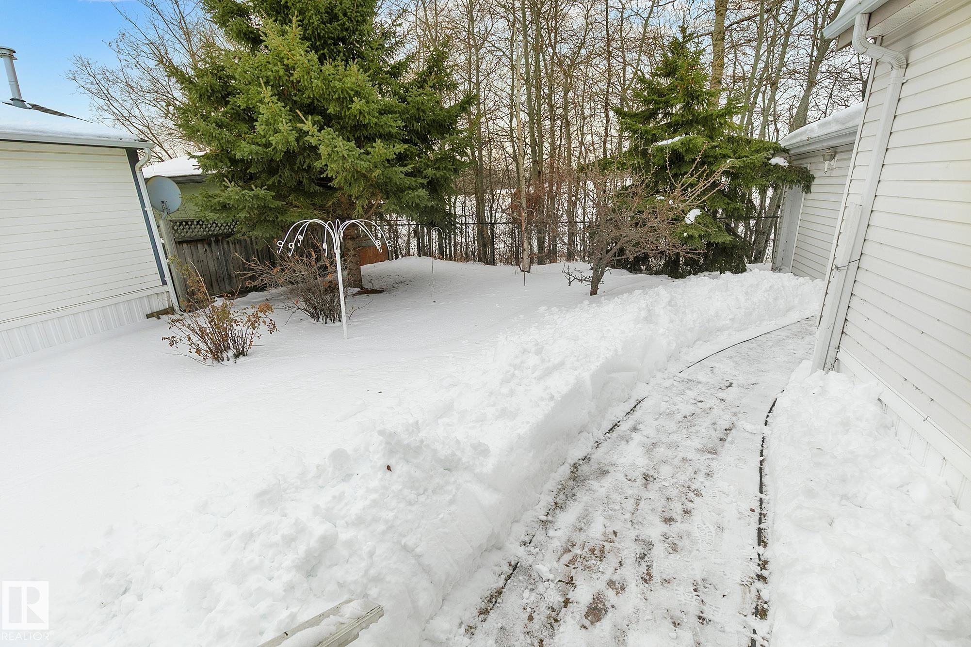 Welcome home! Perfect for the first-time buyer, young family, or empty nester! Three bedrooms, a full four-piece main bathroom, and a 3-piece spa-like ensuite. Bright and airy open concept living, dining and kitchen areas. Enjoy the fully fenced, private backyard with no neighbours behind. Large 10 x 12 2006 shed holds all the tools and toys you may need! The electric outdoor chair lift is included in the sale. Amenities include shopping, dining, a gas station, walking trails, playgrounds, and a community center, just minutes to Edmonton, St Albert and Spruce Grove. Activities, events, youth groups, parents and tots, coffee and crafts... what a fantastic social community. This place feels like home. Make it yours! *Some photos are virtually staged to highlight furniture placement ideas*