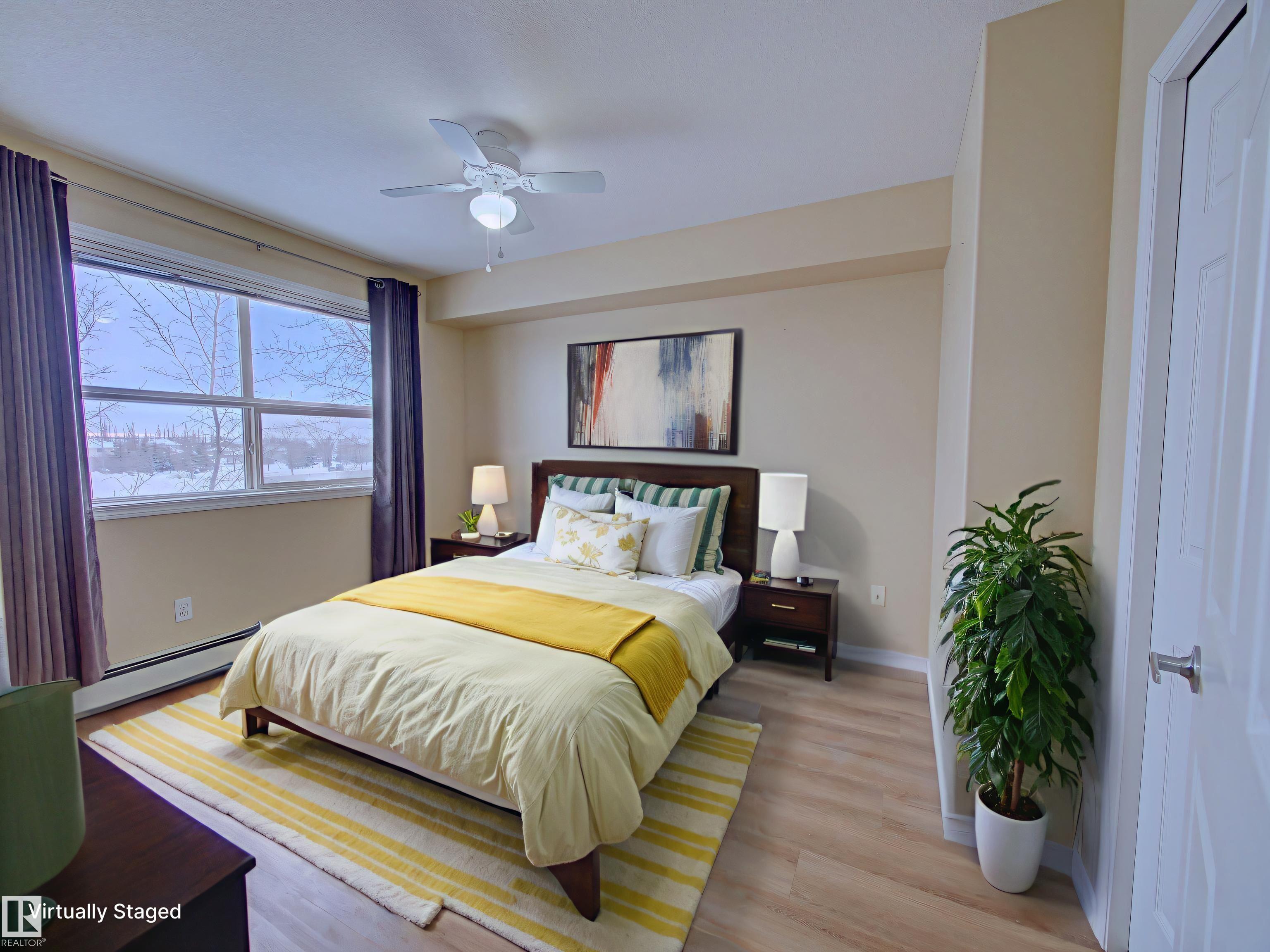 Welcome to this third-floor, air-conditioned one-bedroom condo in the sought-after Gardens of South Fort. Offering 496 square feet of well-designed living space, this home features an east-facing balcony, perfect for enjoying morning sunshine. The unit includes a cozy kitchen with eating area, a comfortable living space, and a versatile flex area with garden door access to the balcony. The 3-piece bathroom is thoughtfully designed with wide door access, making it ideal for wheelchair or walker use, and features a walk-in shower for added convenience and safety. Residents enjoy an impressive range of amenities, including a recreation room with billiards and shuffleboard, a dining hall, fitness room, craft room, and a variety of social programs?all designed to support an active and connected lifestyle. A wonderful opportunity for comfortable, low-maintenance living in a welcoming community.
