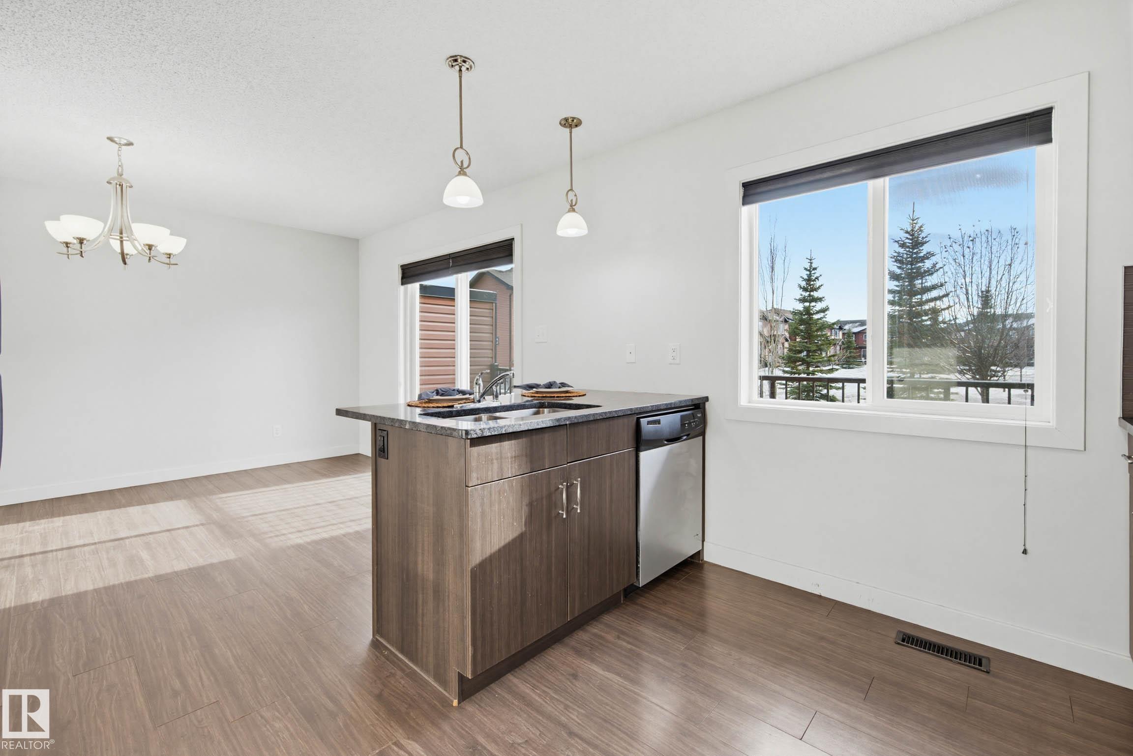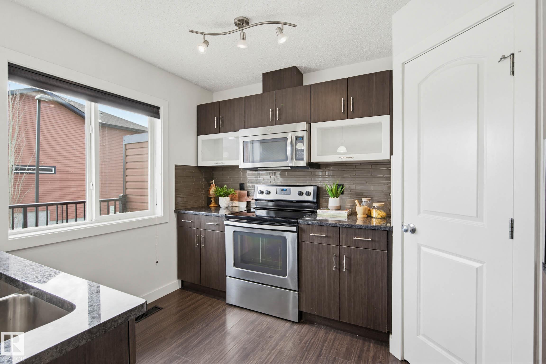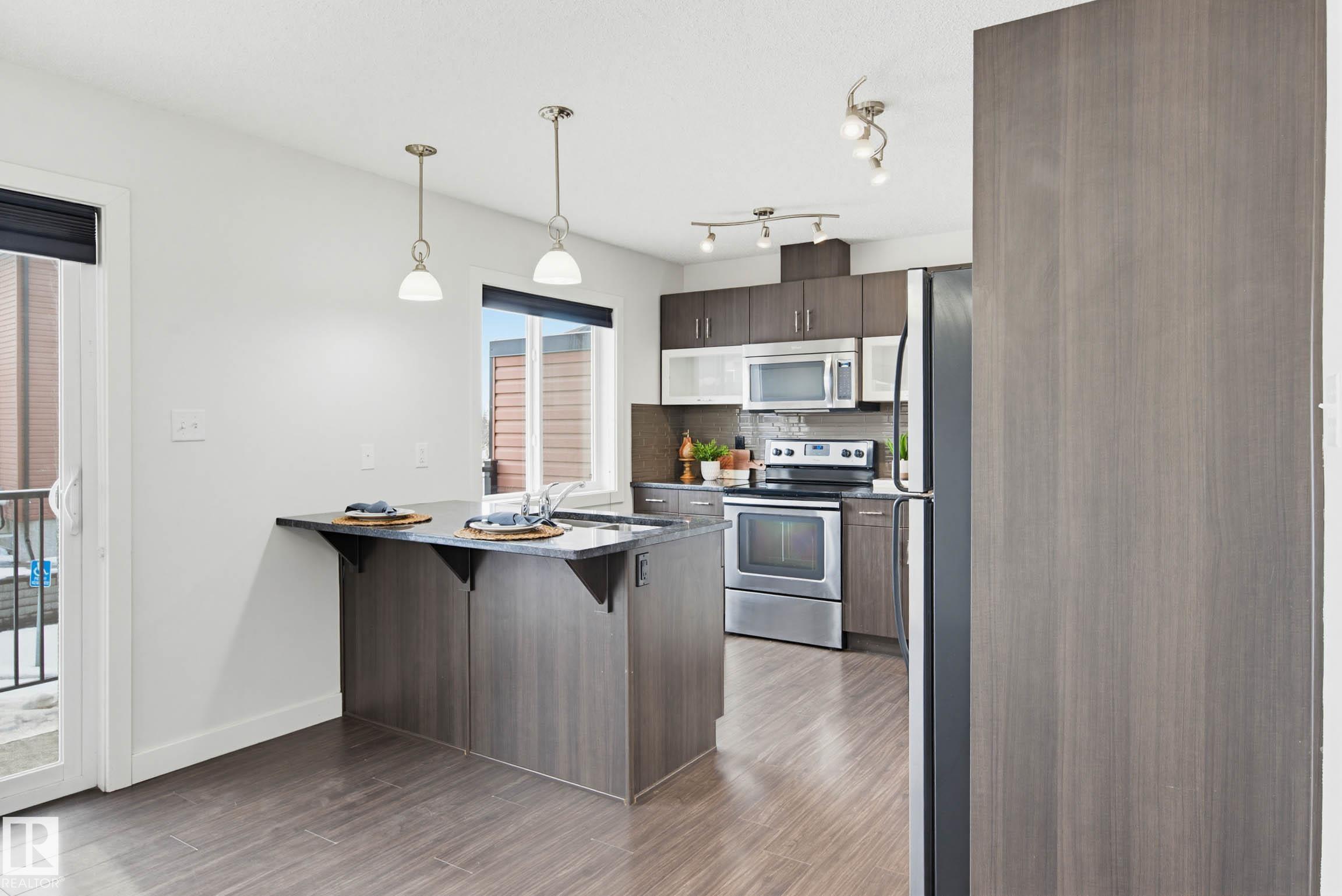 Welcome to Princeton Court! This beautifully appointed two-storey condo townhome with reasonable condo fees offers an unbeatable location! Quick access to Hwy 16 & Anthony Henday, plus nearby restaurants, shopping, schools, parks & scenic walking trails. Enjoy a sun-soaked, south-facing back patio overlooking the courtyard?arguably the best spot in the complex for relaxing, sunbathing & summer BBQs. Inside, you?ll find numerous upgrades including rich dark laminate flooring, SS appliances & an open-concept kitchen featuring abundant cabinetry, granite countertops & dedicated eating area w/sliding doors framing that spectacular courtyard view. Upstairs, the spacious primary bedroom includes a private ensuite, complemented by two additional generously sized bedrooms & a full 4-piece bath?perfect for a growing family. The fully developed basement adds versatility with a Rec Room that can convert to a home office. Dble attached garage provides convenience & extra storage. Great for 1st time buyers/investors!!