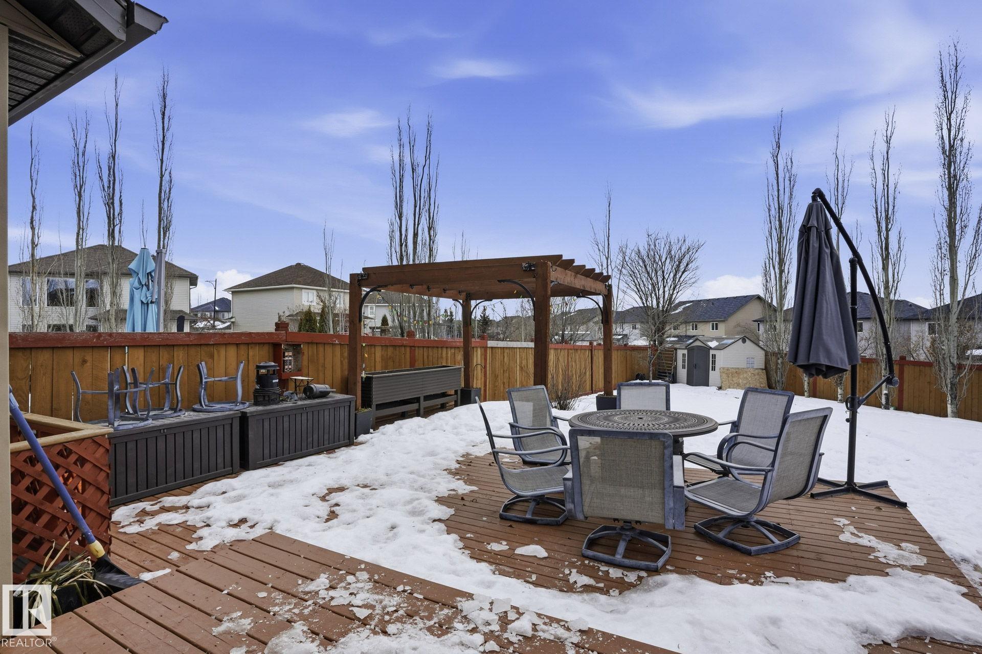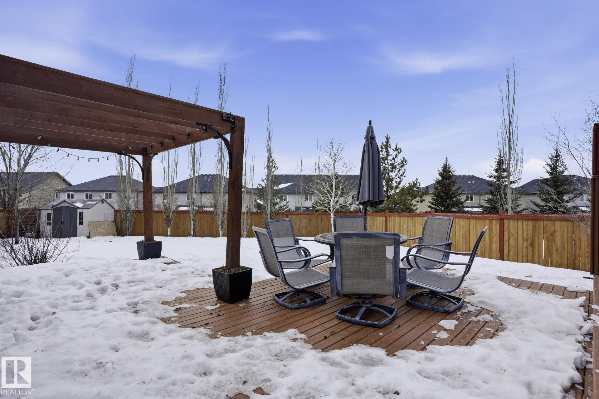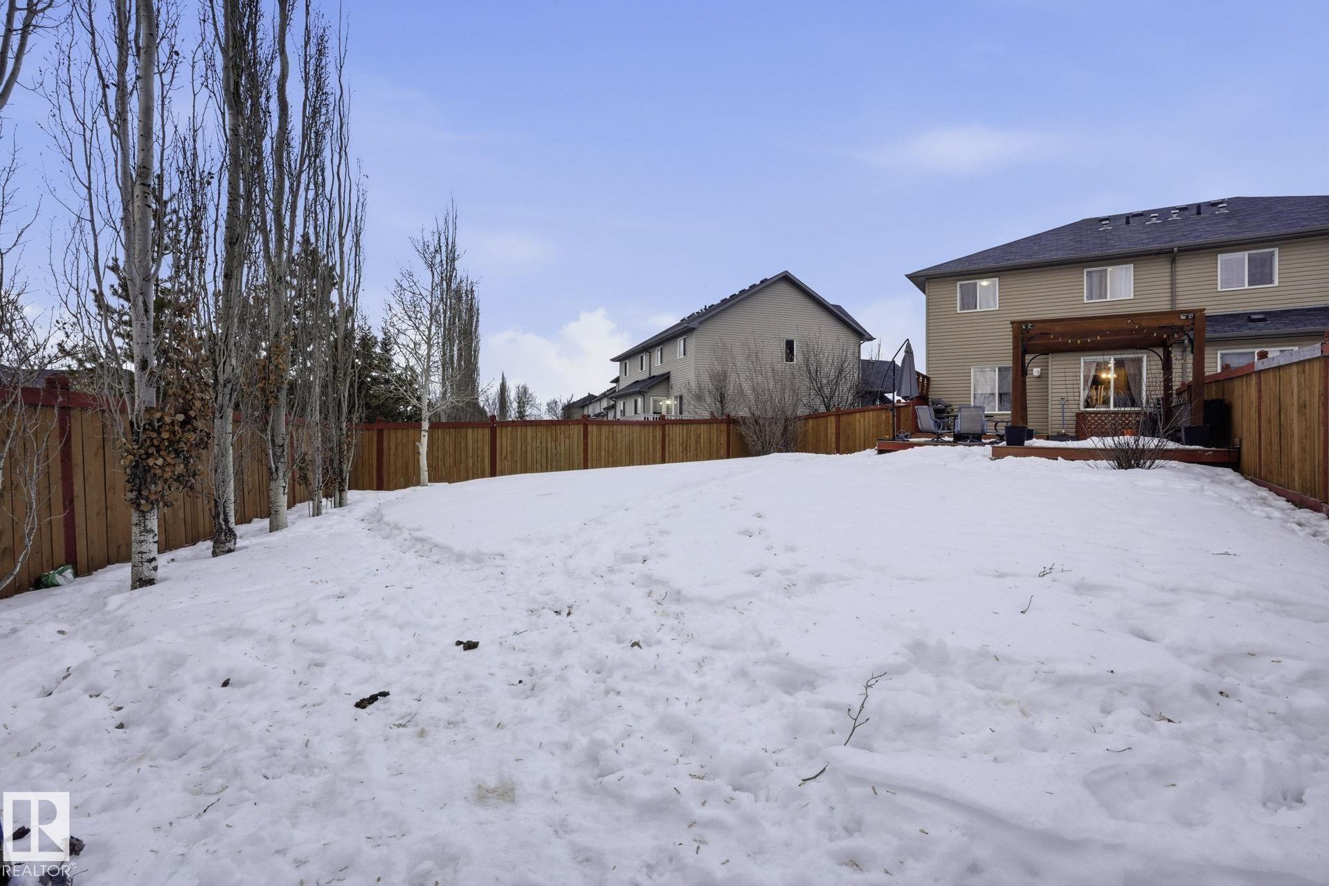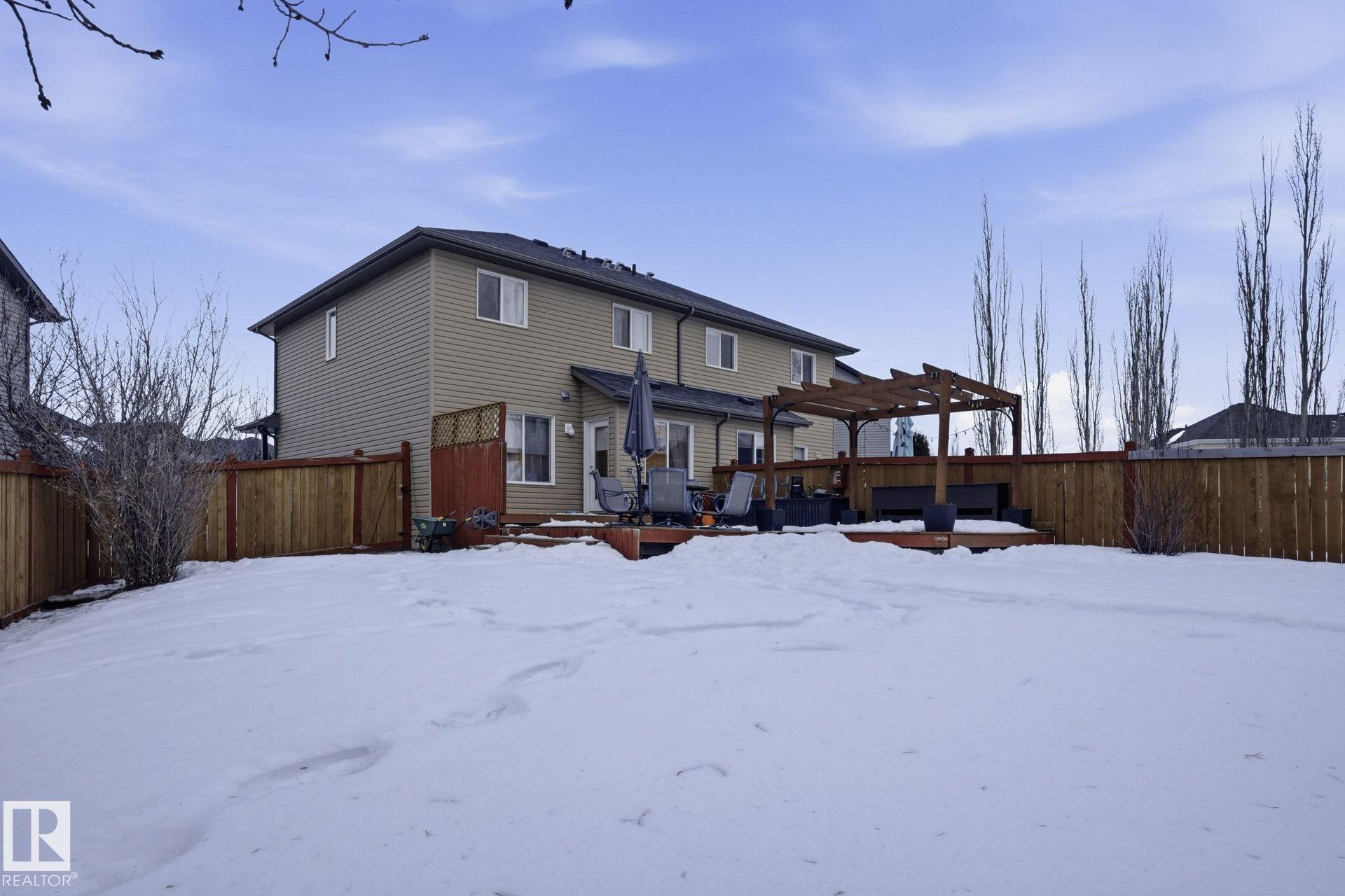 Welcome to this fully finished half duplex on a huge lot in the sought-after community of Montalet. A spacious entryway leads into a bright open-concept main floor. The living room features a large window with views of the expansive rear yard and flows seamlessly into the kitchen, complete with ample cabinetry, a central island, and a convenient walk-through pantry. The dining area easily fits a large family table and offers direct access to the rear deck and yard?ideal for entertaining. Completing the main floor are a 2-piece powder room and main-floor laundry. Upstairs, enjoy a tranquil primary suite with a 4-piece ensuite and a generous walk-in closet, plus two additional spacious bedrooms and a 4-piece main bath. Outside, the huge south-facing yard boasts a deck, gazebo, and plenty of room for kids, pets, or gatherings. the feel of a detached home without the detached price. Exceptional value in a fantastic neighborhood.
