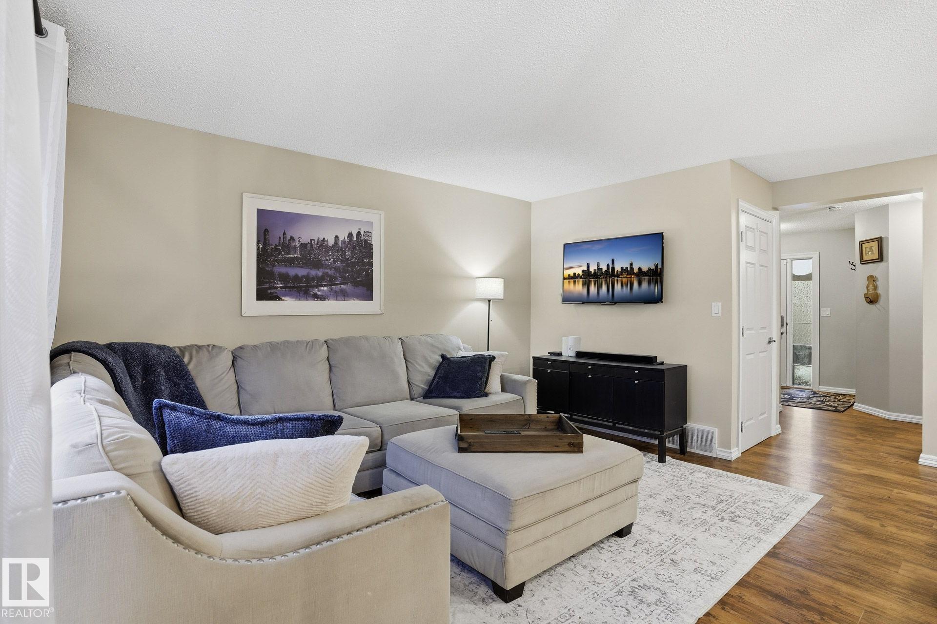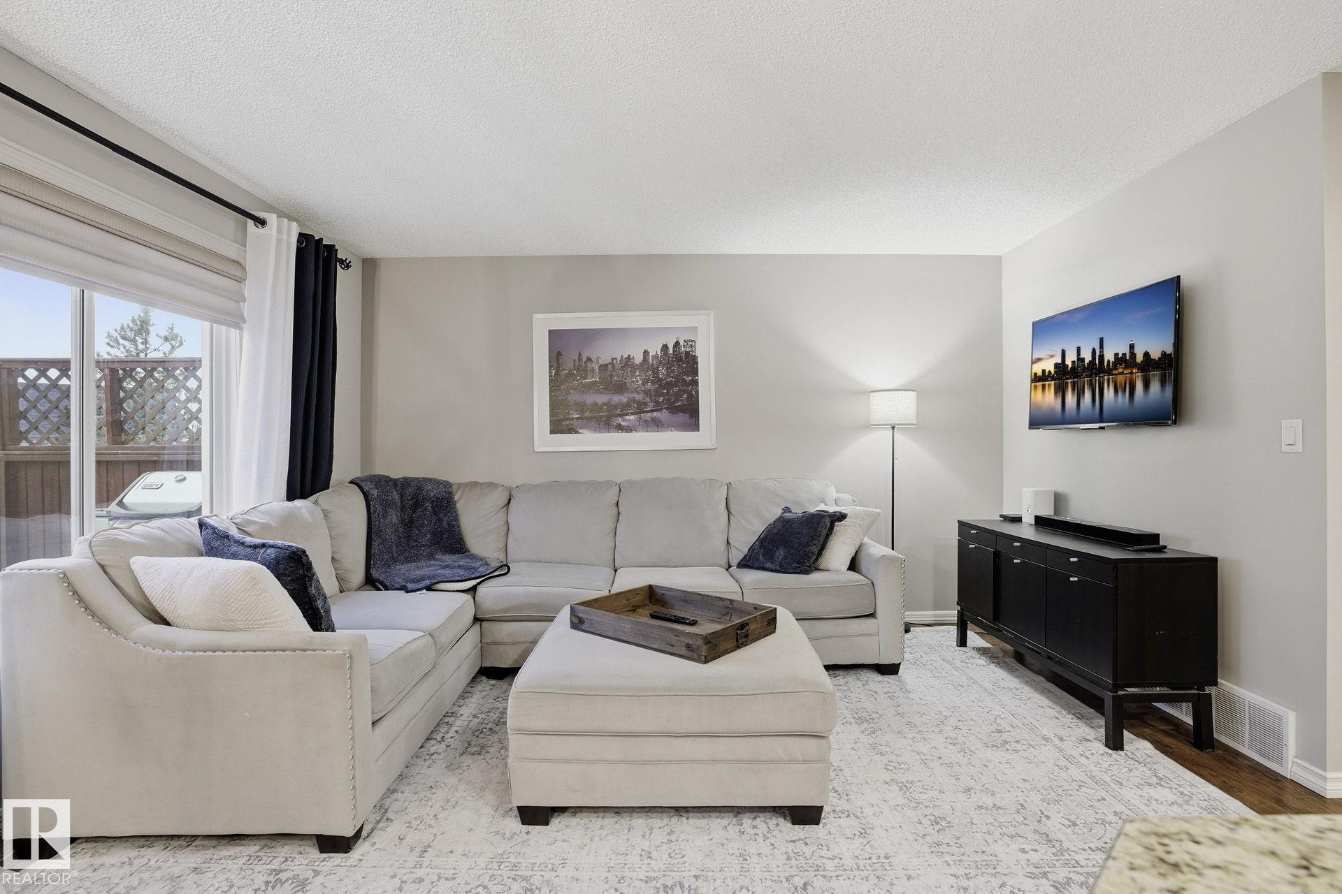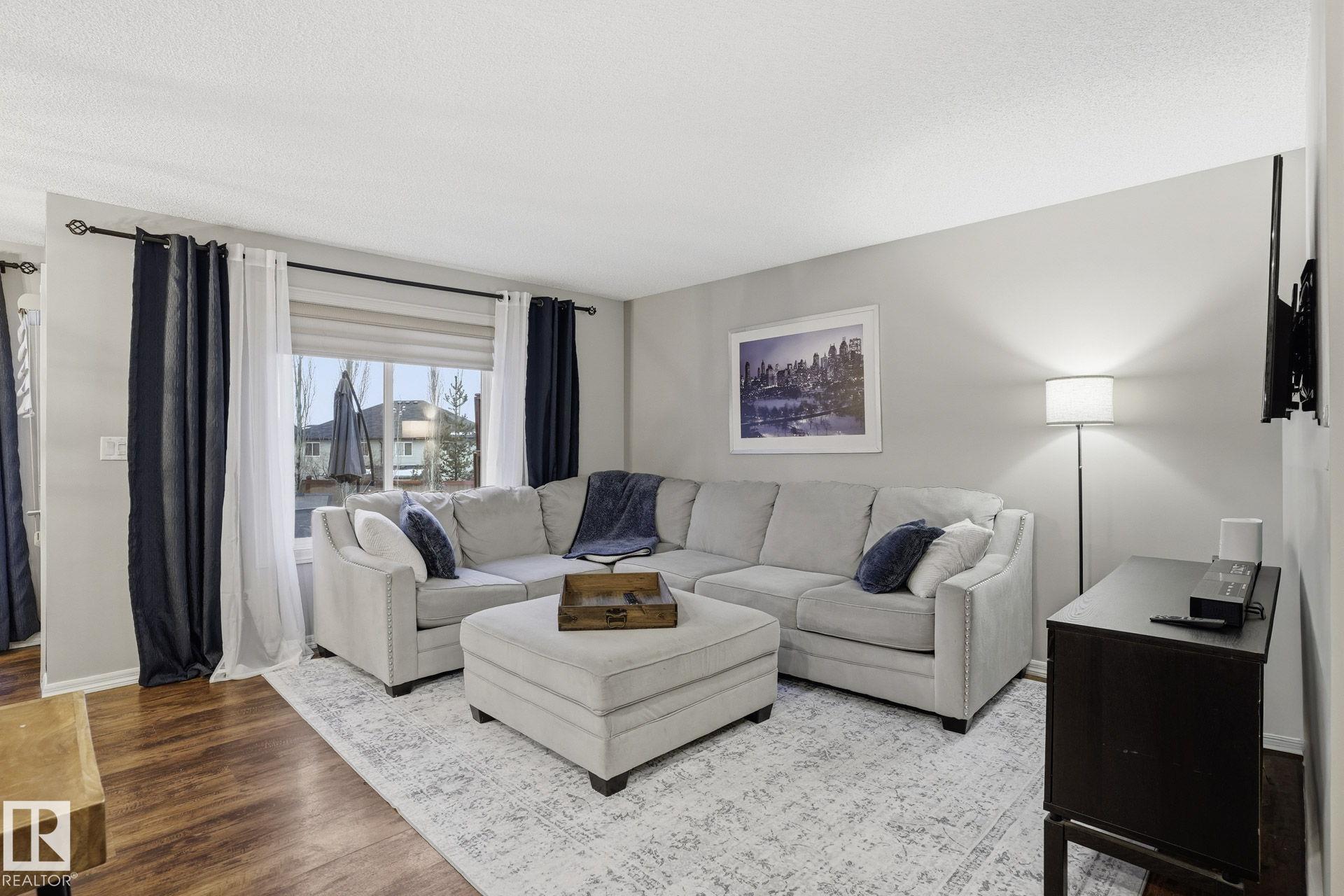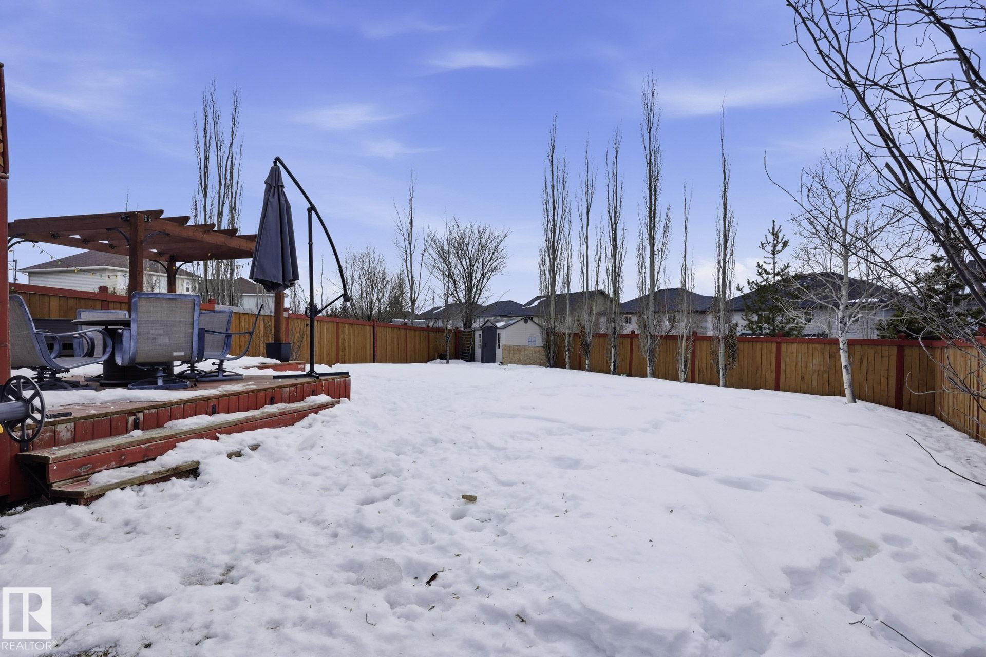 Welcome to this fully finished half duplex on a huge lot in the sought-after community of Montalet. A spacious entryway leads into a bright open-concept main floor. The living room features a large window with views of the expansive rear yard and flows seamlessly into the kitchen, complete with ample cabinetry, a central island, and a convenient walk-through pantry. The dining area easily fits a large family table and offers direct access to the rear deck and yard?ideal for entertaining. Completing the main floor are a 2-piece powder room and main-floor laundry. Upstairs, enjoy a tranquil primary suite with a 4-piece ensuite and a generous walk-in closet, plus two additional spacious bedrooms and a 4-piece main bath. Outside, the huge south-facing yard boasts a deck, gazebo, and plenty of room for kids, pets, or gatherings. the feel of a detached home without the detached price. Exceptional value in a fantastic neighborhood.