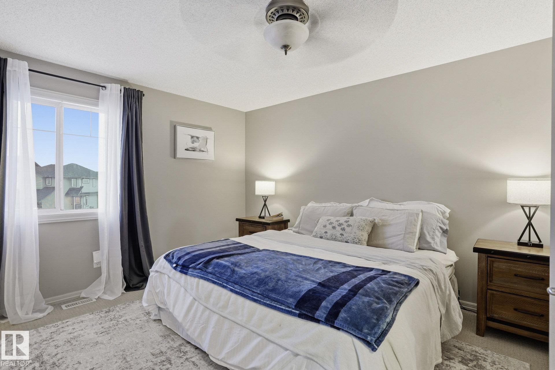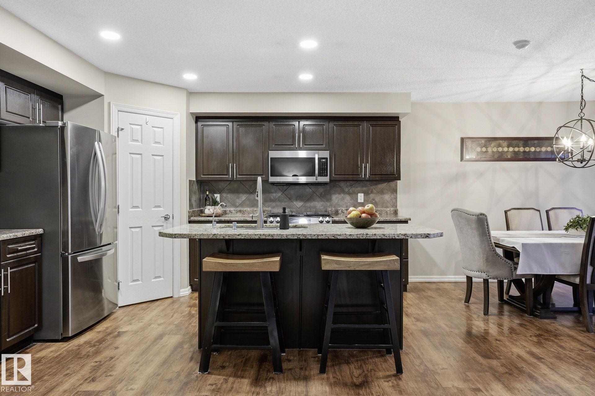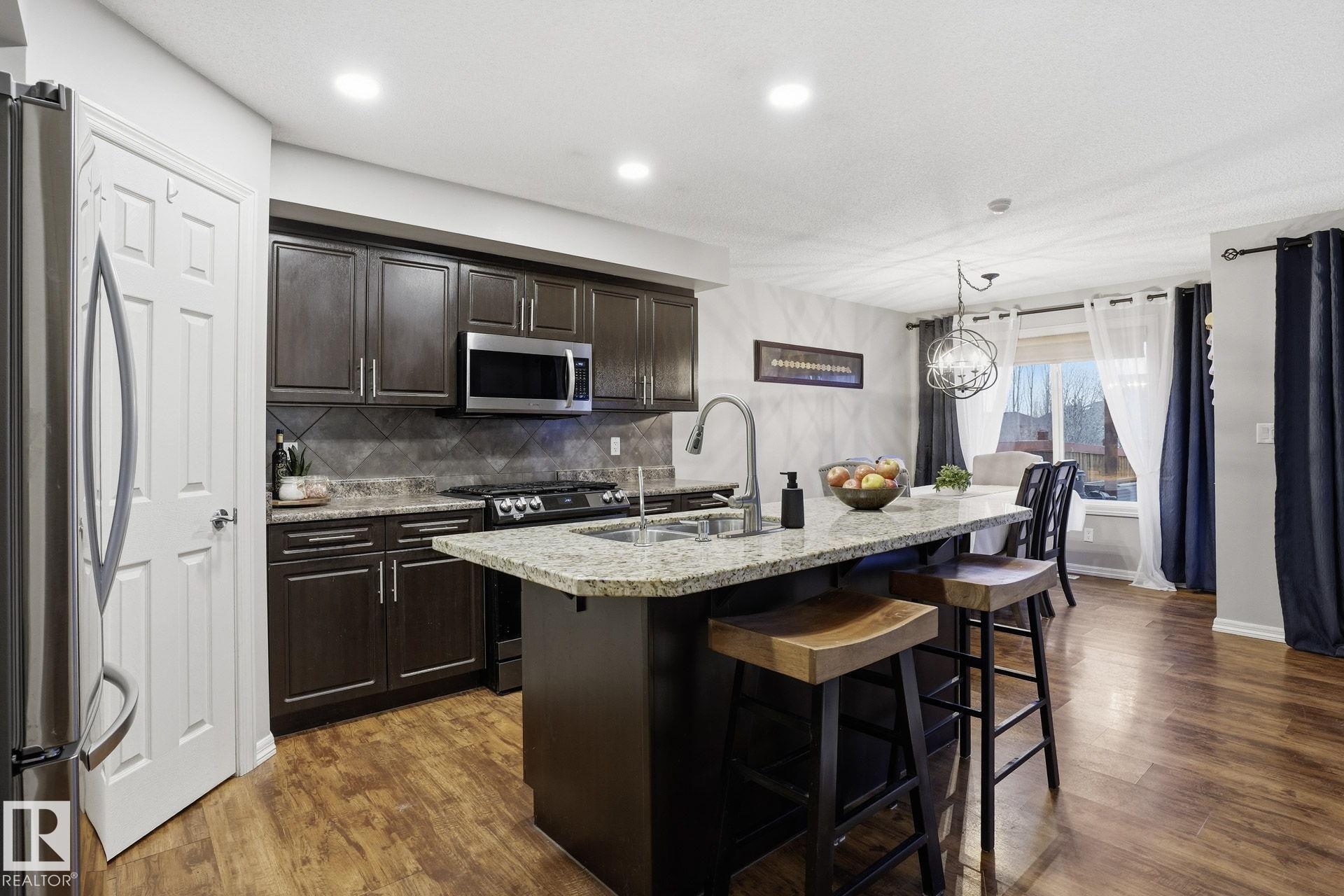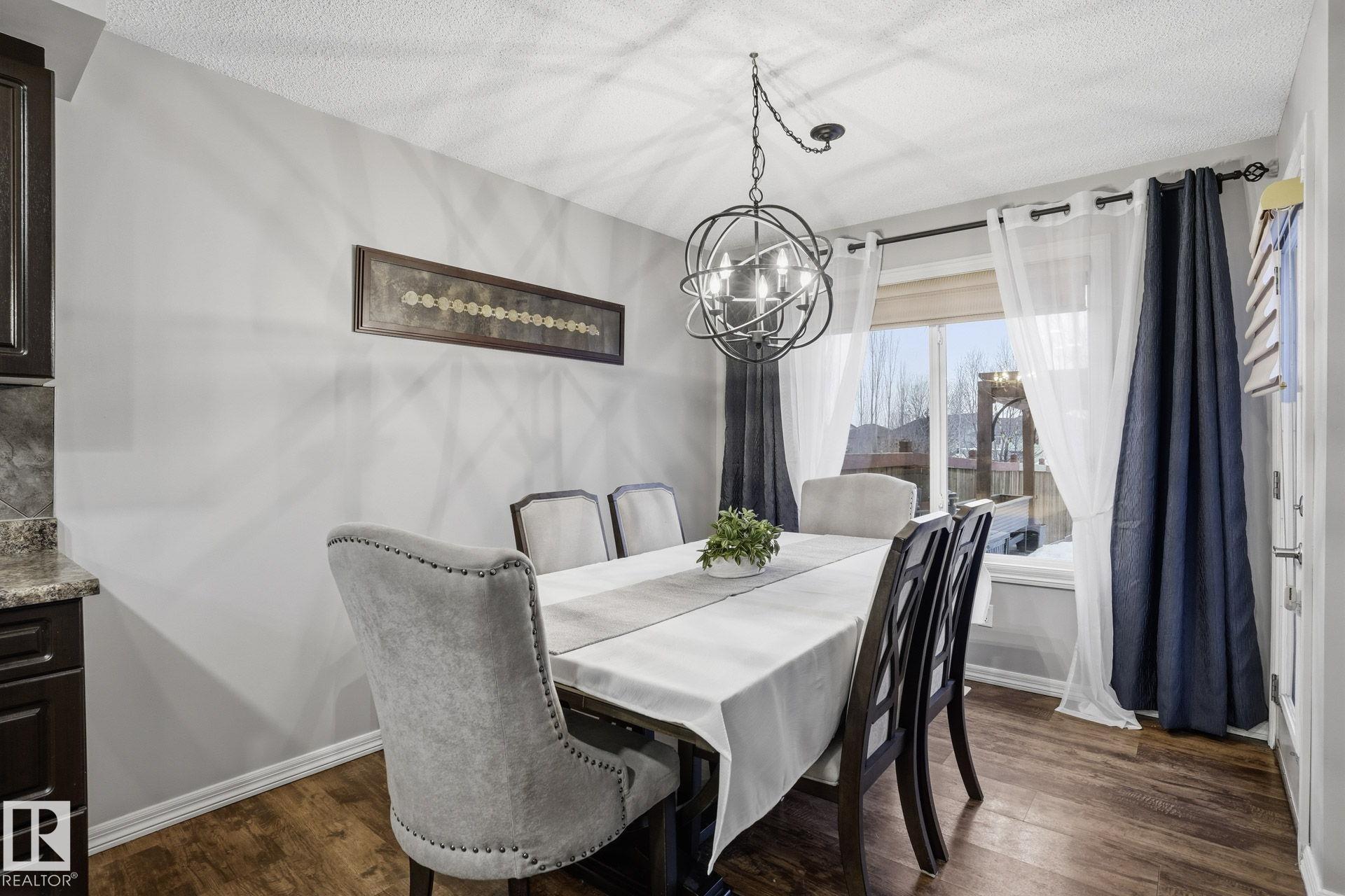 Welcome to this fully finished half duplex on a huge lot in the sought-after community of Montalet. A spacious entryway leads into a bright open-concept main floor. The living room features a large window with views of the expansive rear yard and flows seamlessly into the kitchen, complete with ample cabinetry, a central island, and a convenient walk-through pantry. The dining area easily fits a large family table and offers direct access to the rear deck and yard?ideal for entertaining. Completing the main floor are a 2-piece powder room and main-floor laundry. Upstairs, enjoy a tranquil primary suite with a 4-piece ensuite and a generous walk-in closet, plus two additional spacious bedrooms and a 4-piece main bath. Outside, the huge south-facing yard boasts a deck, gazebo, and plenty of room for kids, pets, or gatherings. the feel of a detached home without the detached price. Exceptional value in a fantastic neighborhood.