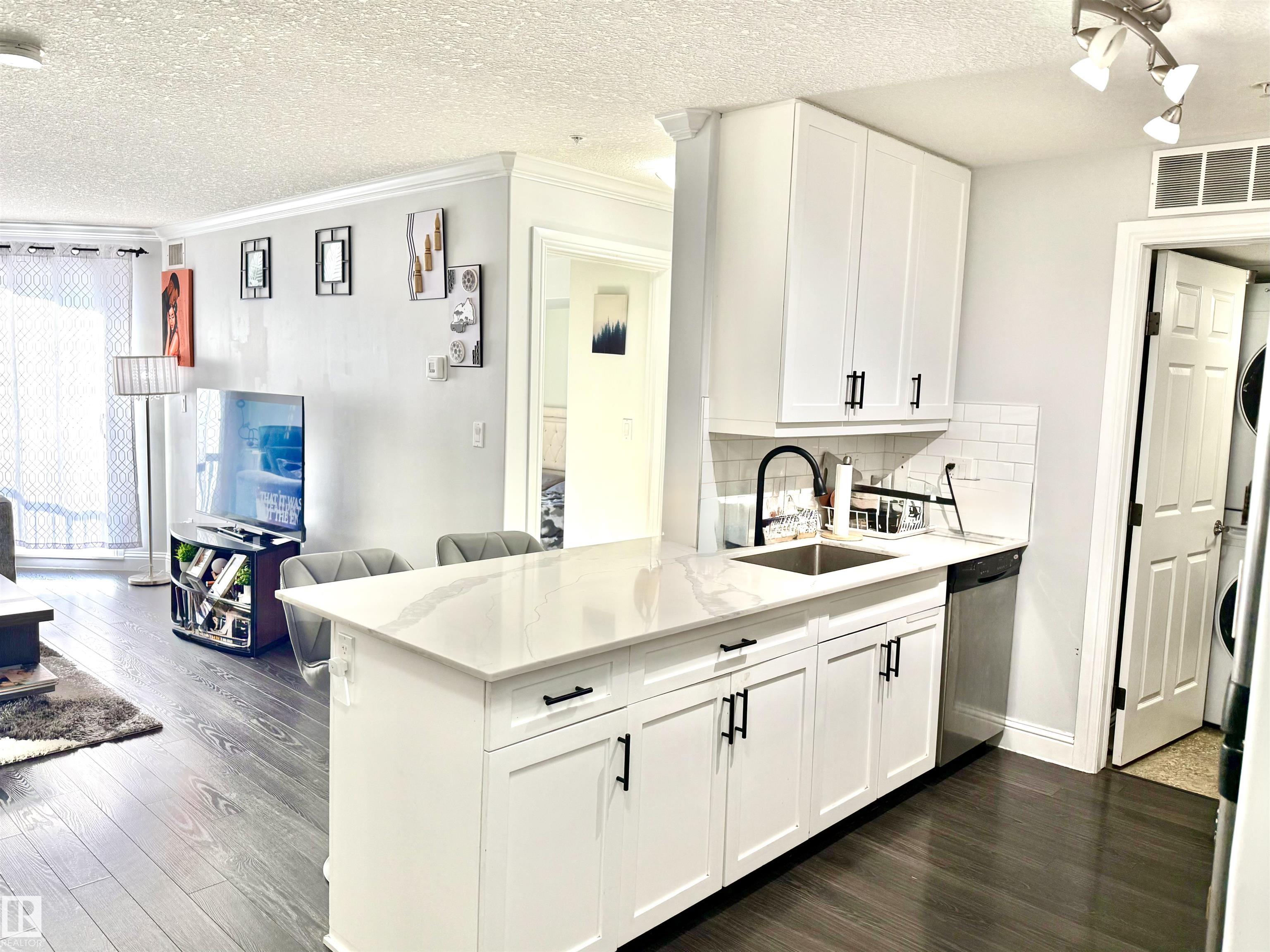 Perfect Starter home for young couples or Investors! Beautiful 2 bedroom, 2 full bath condo conveniently located in Northwest Edmonton. Well designed kitchen with quartz counter tops, stainless steel appliances, microwave hood fan and laminate flooring. This condo has an open floor plan with enough space for a dining area and living room. Generous sized primary bedroom with full ensuite bath and walk in closet. Stay cool all summer with an in unit air conditioning. Underground parking stall with caged storage. This condo is closed to all amenities like shopping, schools, parks, and recreation centers. Hurry! Don't miss this great opportunity!